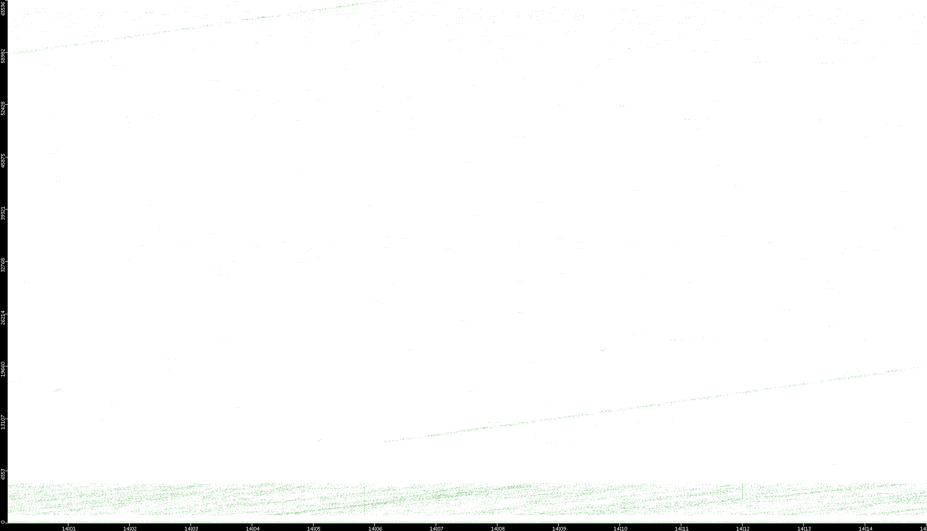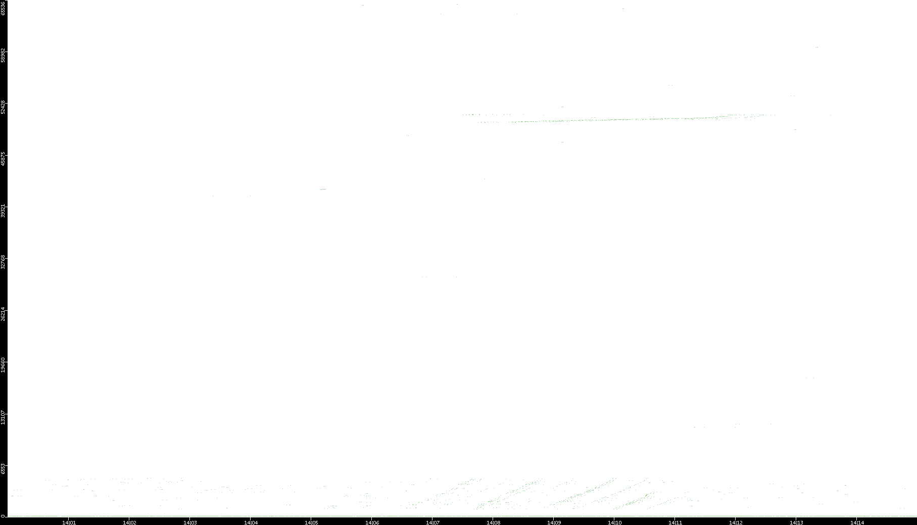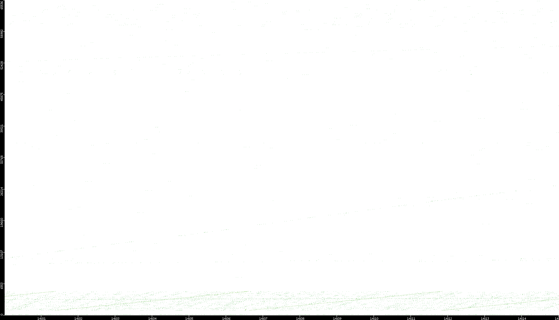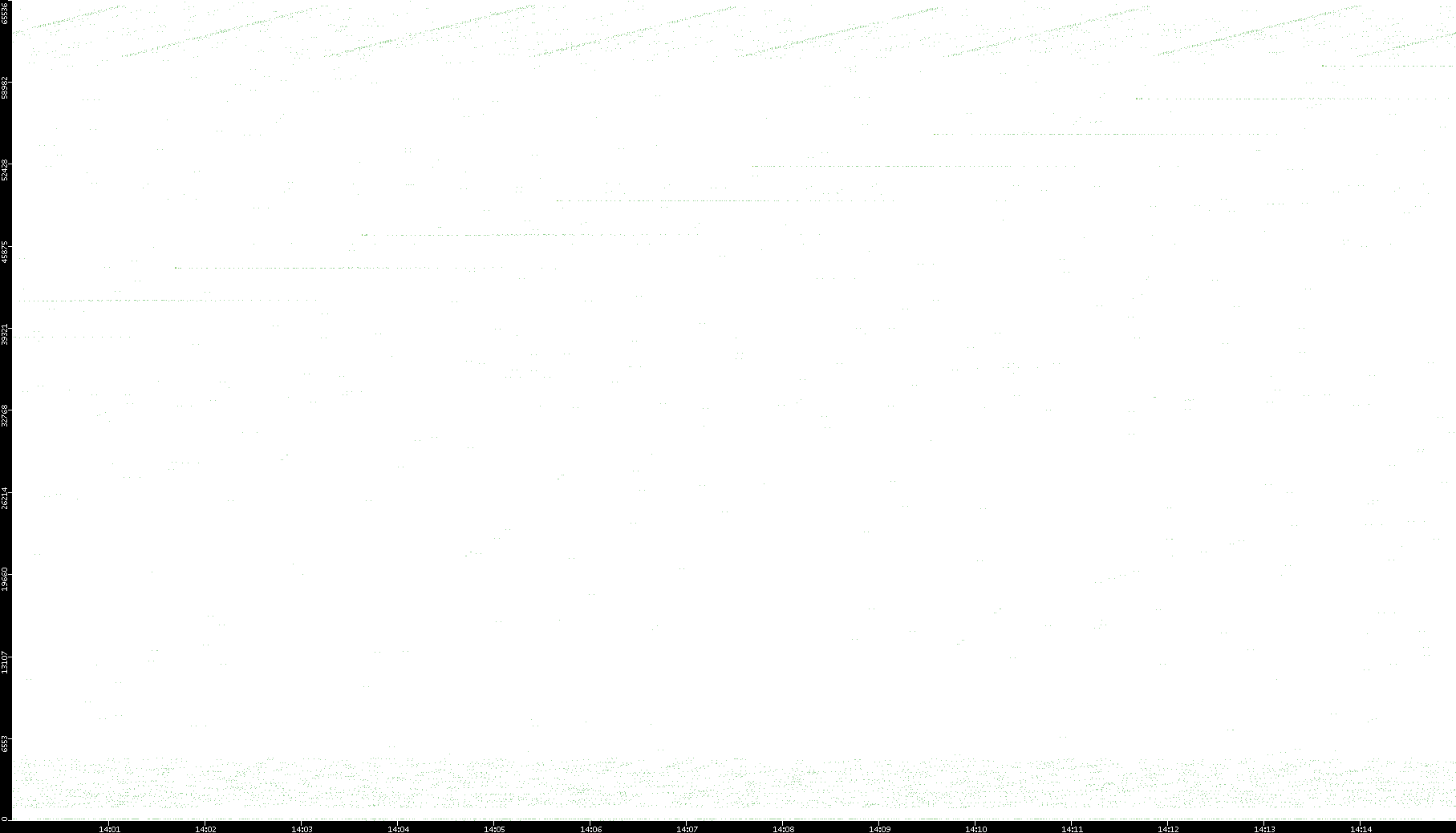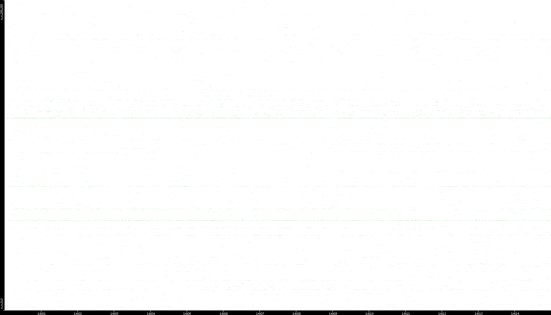2006/02/13 Dest. IP vs. Time Dest. Port vs. Time Src. IP vs. Time Src. Port vs. Time Nb. of Packets vs. Time Throughput vs. Time Average Packet Size vs. Time Entropy of Port vs. Time
