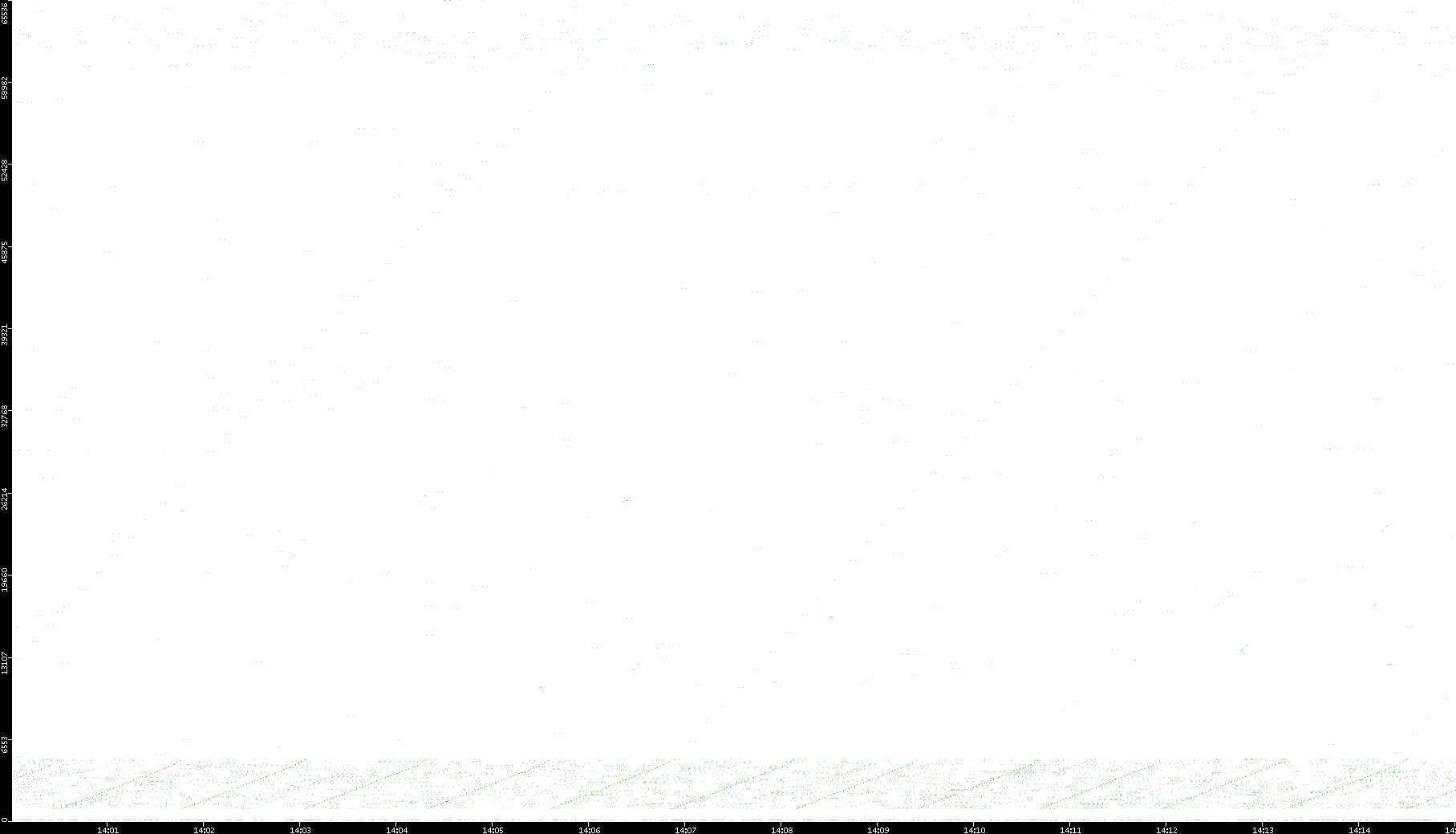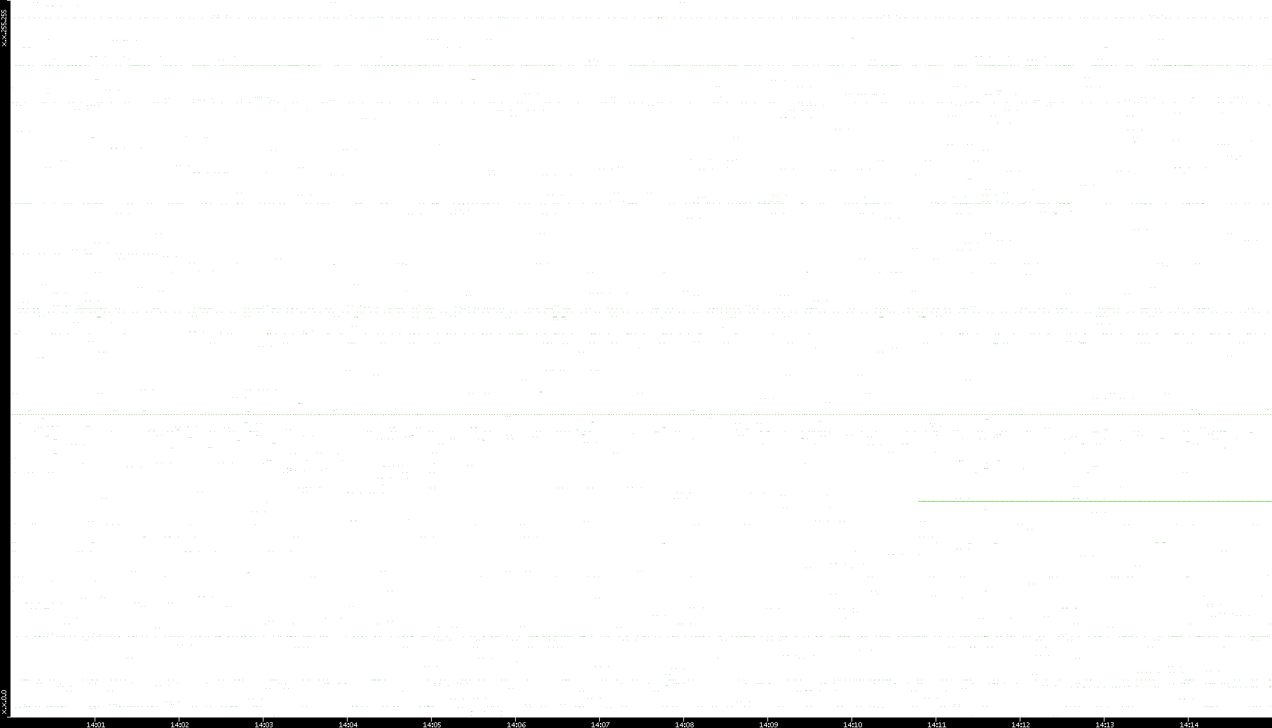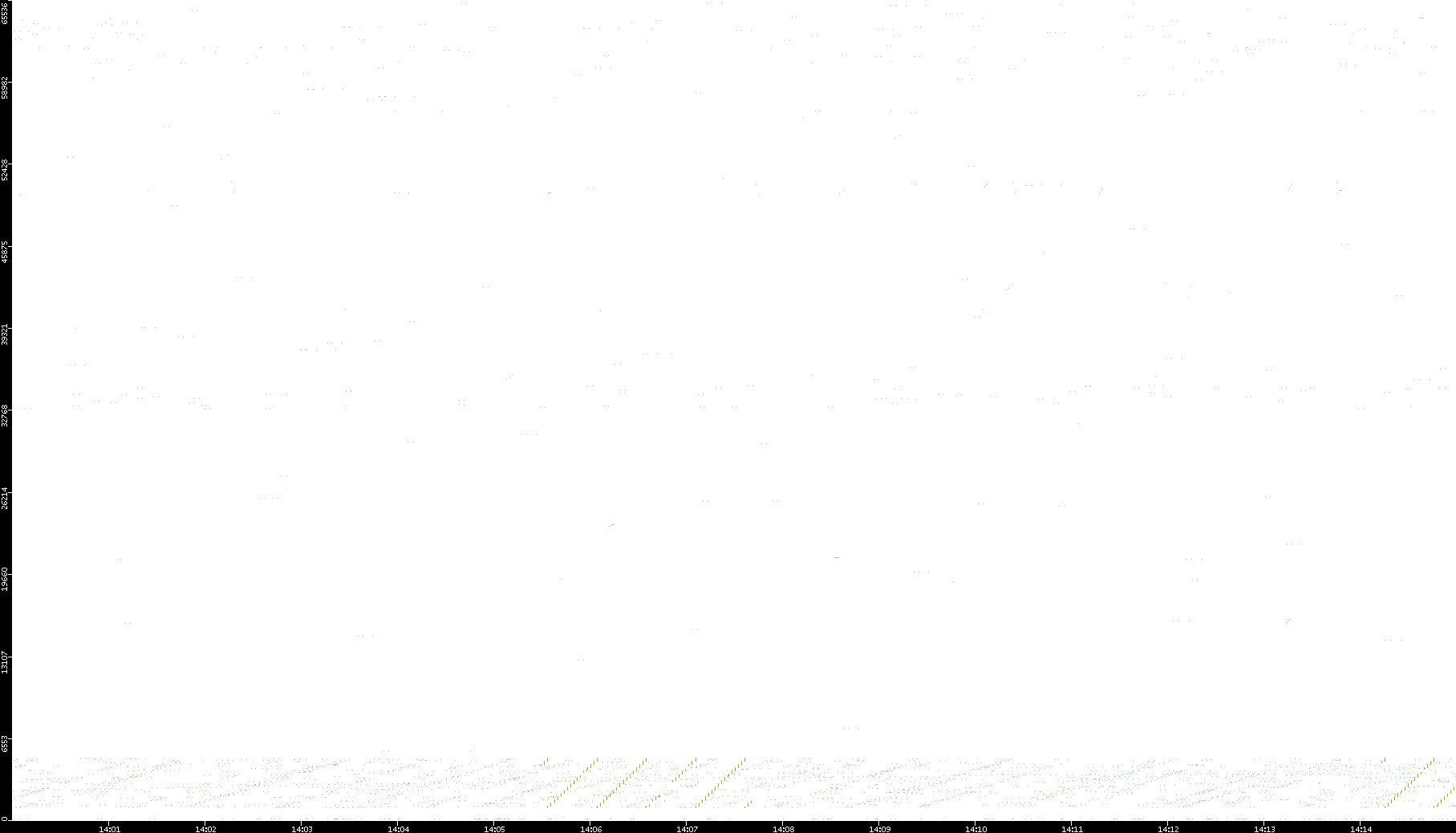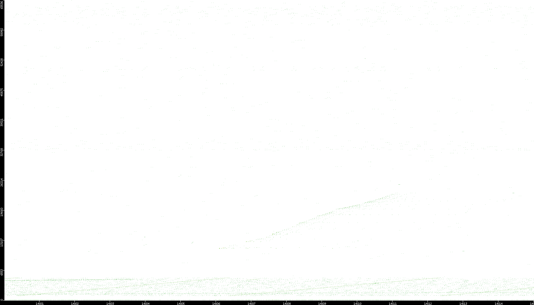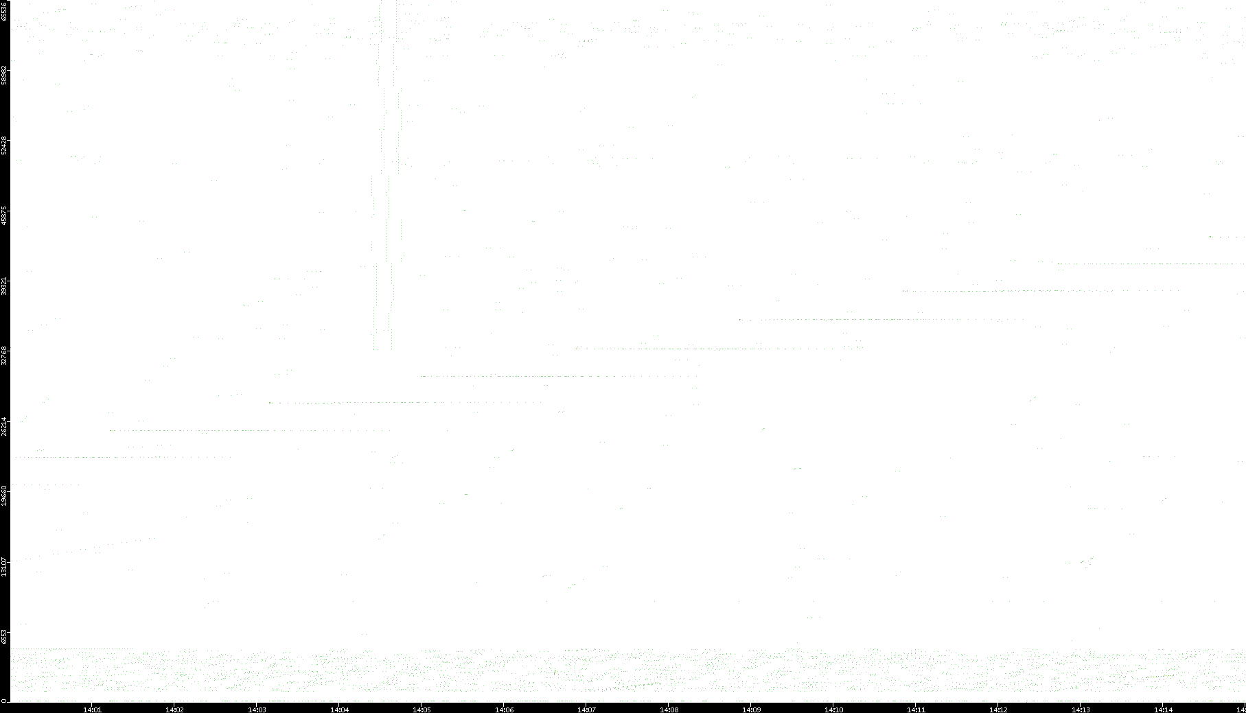2006/02/13 Dest. IP vs. Time Dest. Port vs. Time Src. IP vs. Time Src. Port vs. Time Nb. of Packets vs. Time Throughput vs. Time Average Packet Size vs. Time Entropy of Port vs. Time