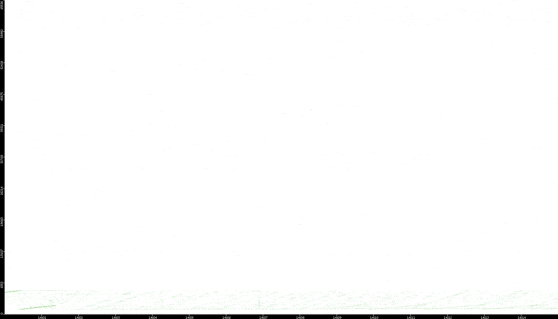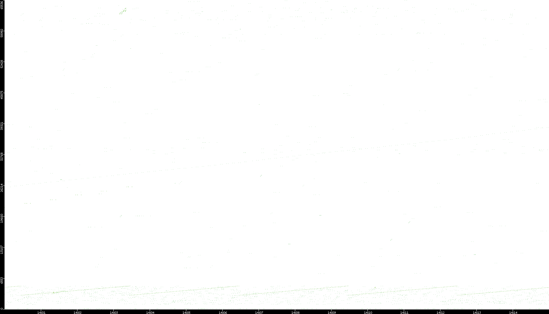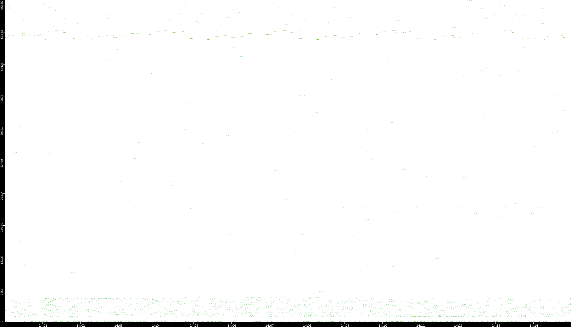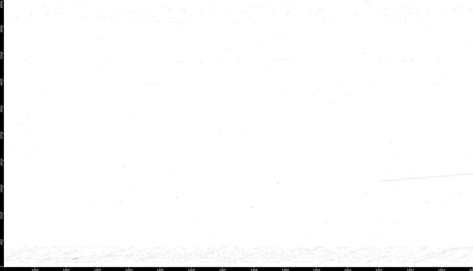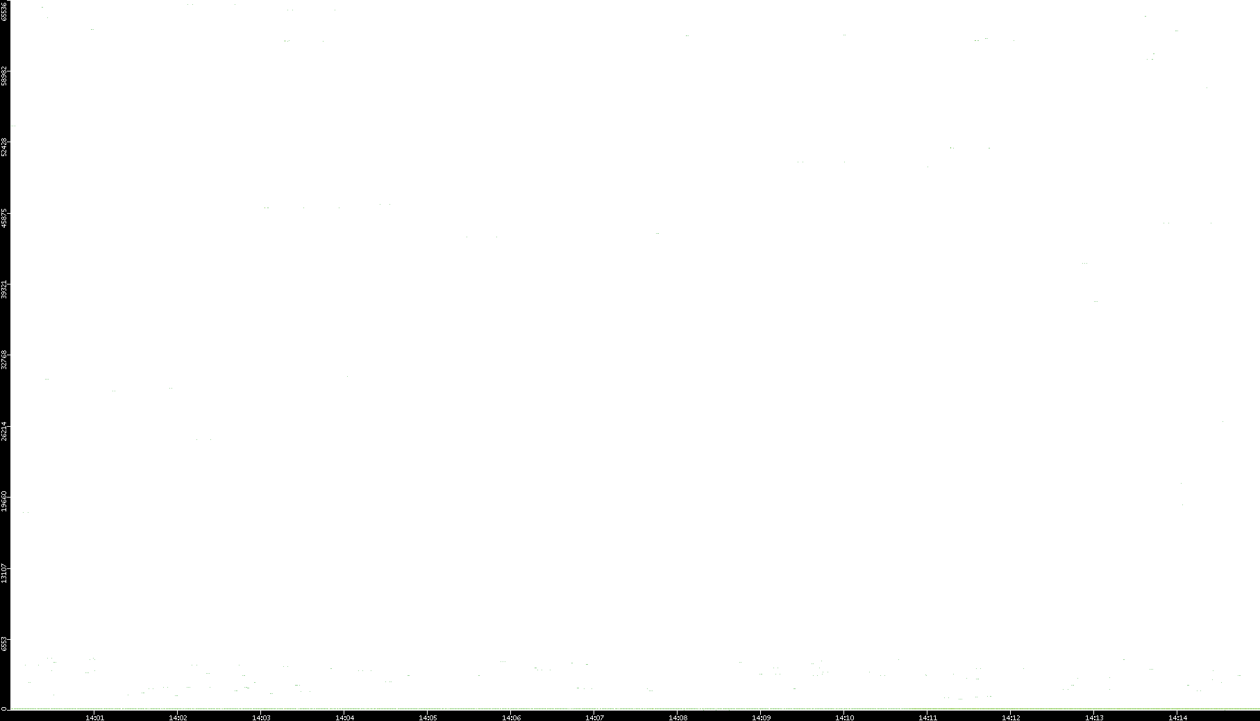 2006/02/13 Dest. IP vs. Time Dest. Port vs. Time Src. IP vs. Time Src. Port vs. Time Nb. of Packets vs. Time Throughput vs. Time Average Packet Size vs. Time Entropy of Port vs. Time