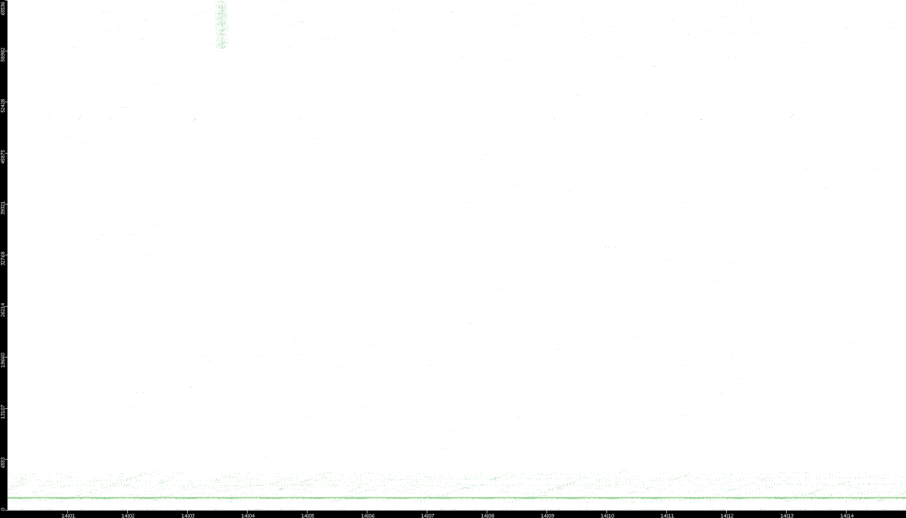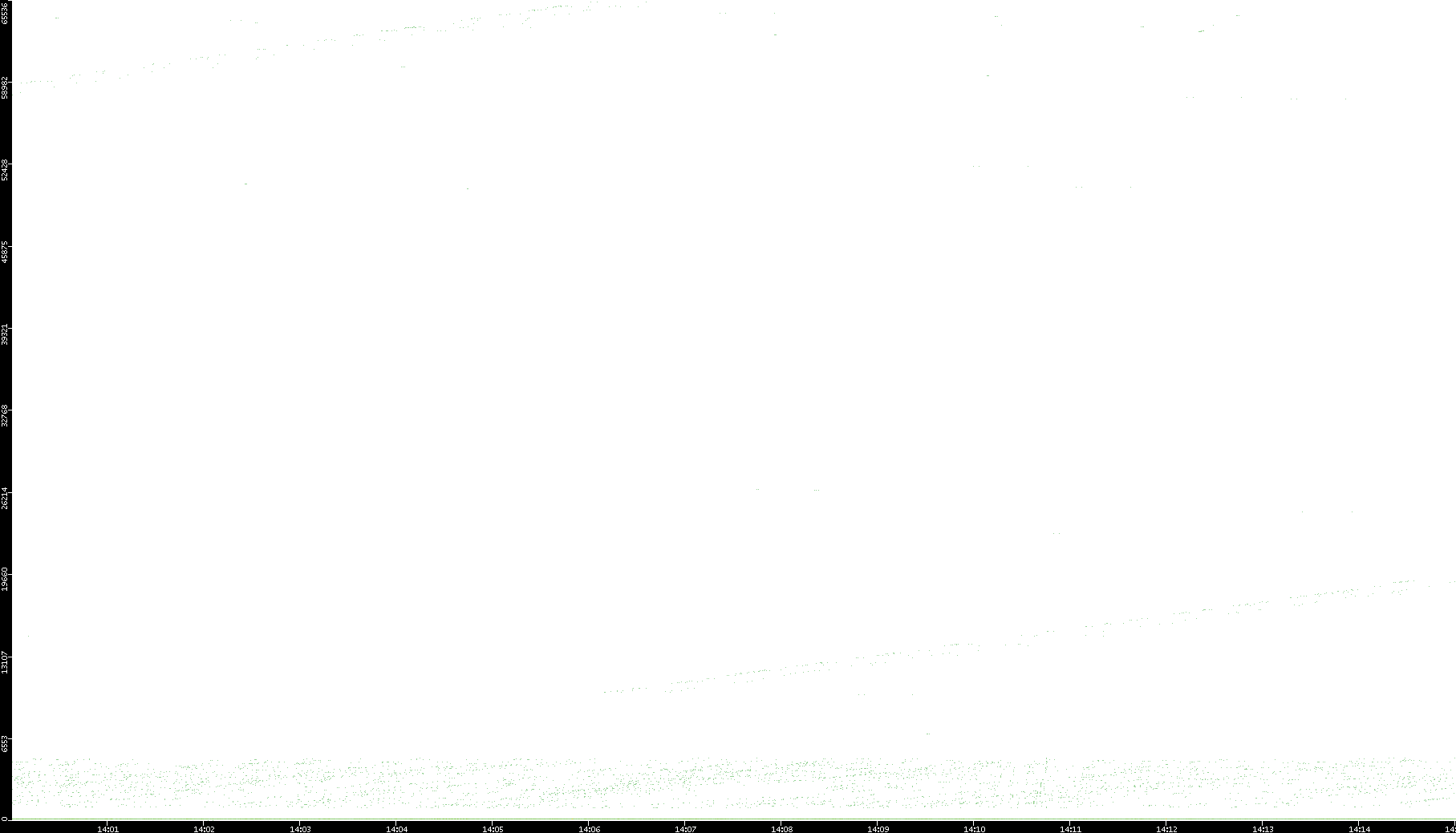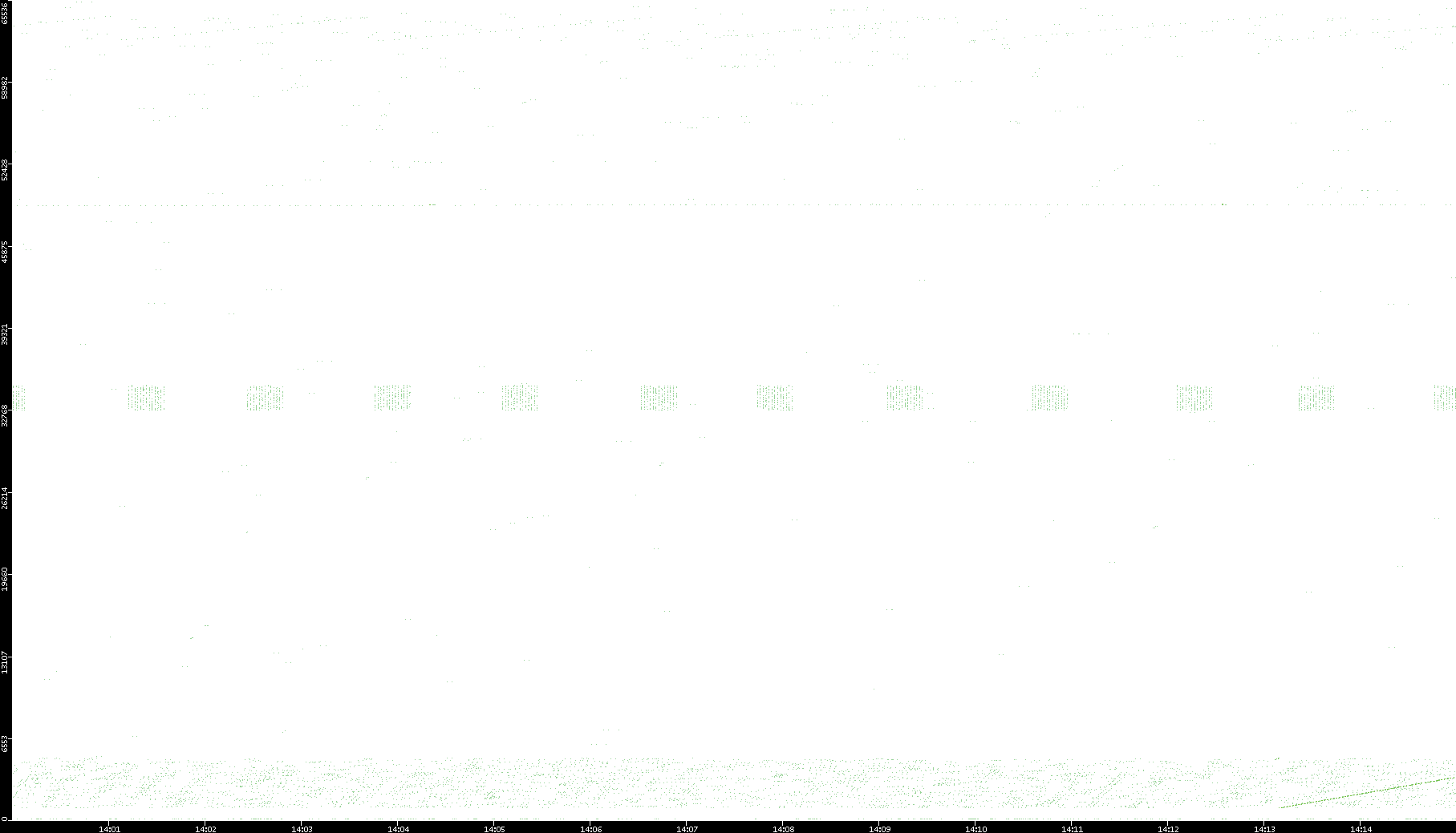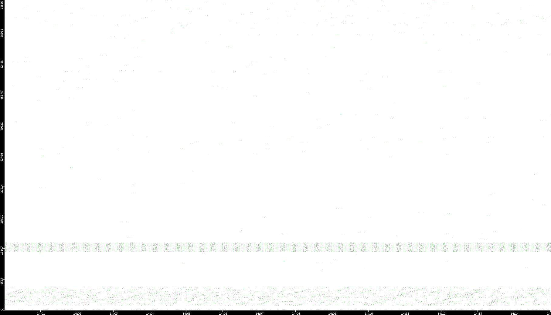 2006/02/13 Dest. IP vs. Time Dest. Port vs. Time Src. IP vs. Time Src. Port vs. Time Nb. of Packets vs. Time Throughput vs. Time Average Packet Size vs. Time Entropy of Port vs. Time