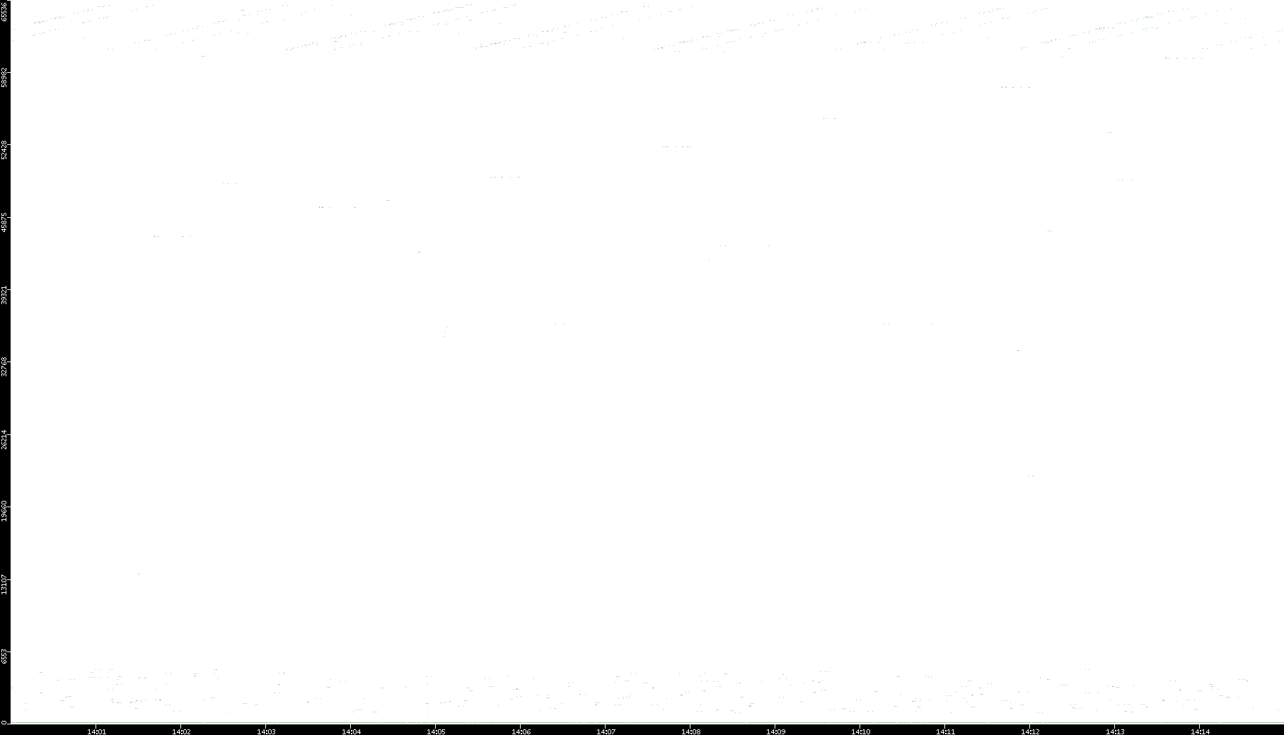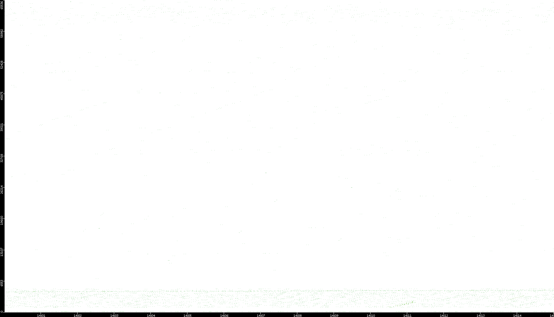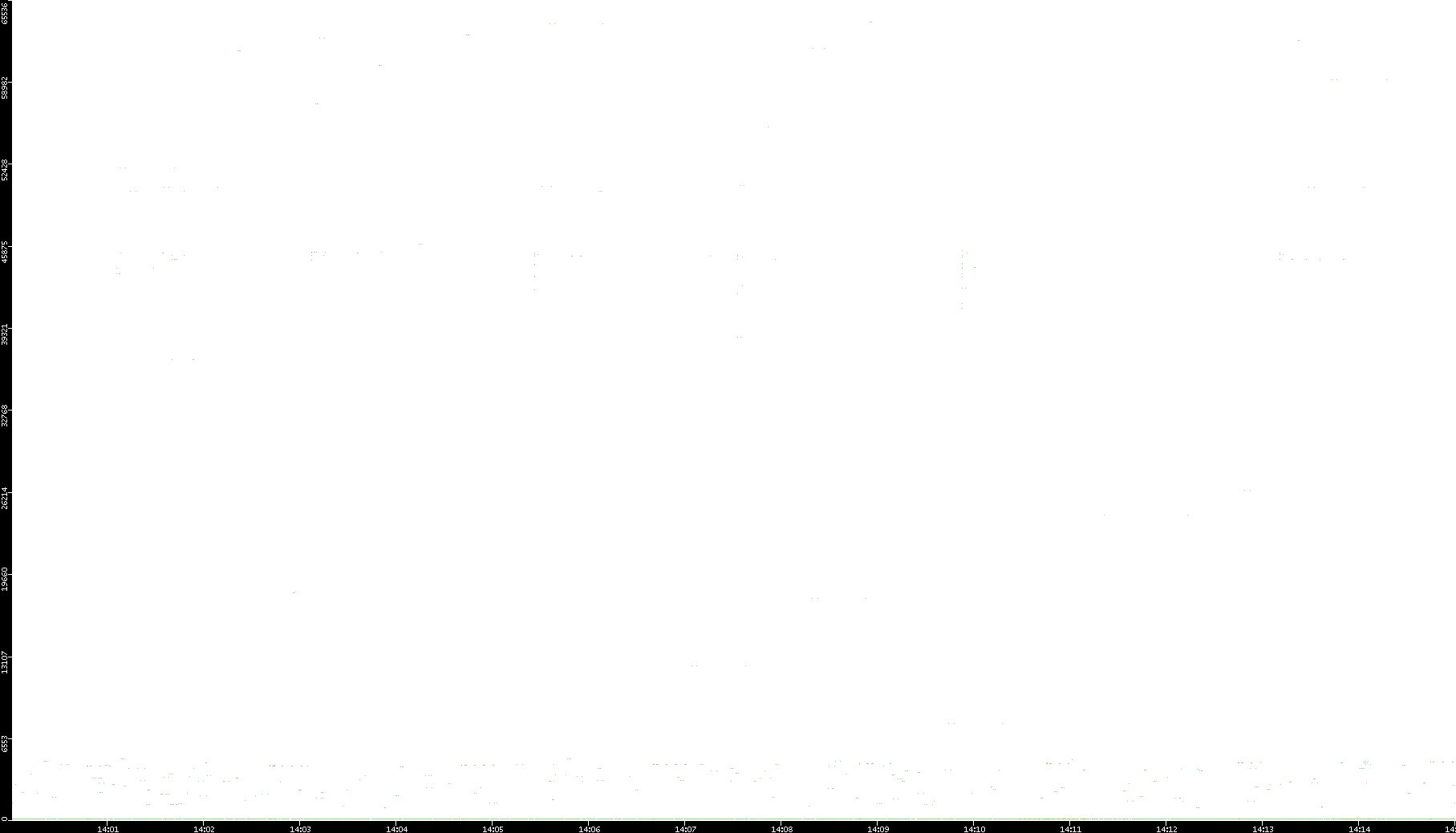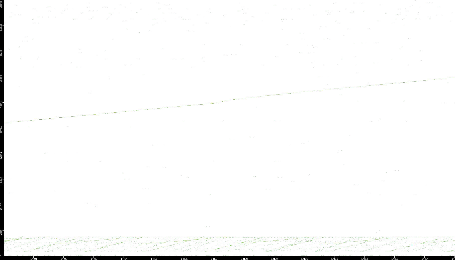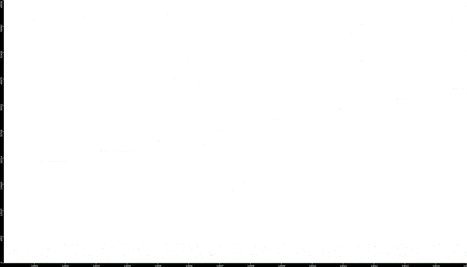 2006/02/13 Dest. IP vs. Time Dest. Port vs. Time Src. IP vs. Time Src. Port vs. Time Nb. of Packets vs. Time Throughput vs. Time Average Packet Size vs. Time Entropy of Port vs. Time