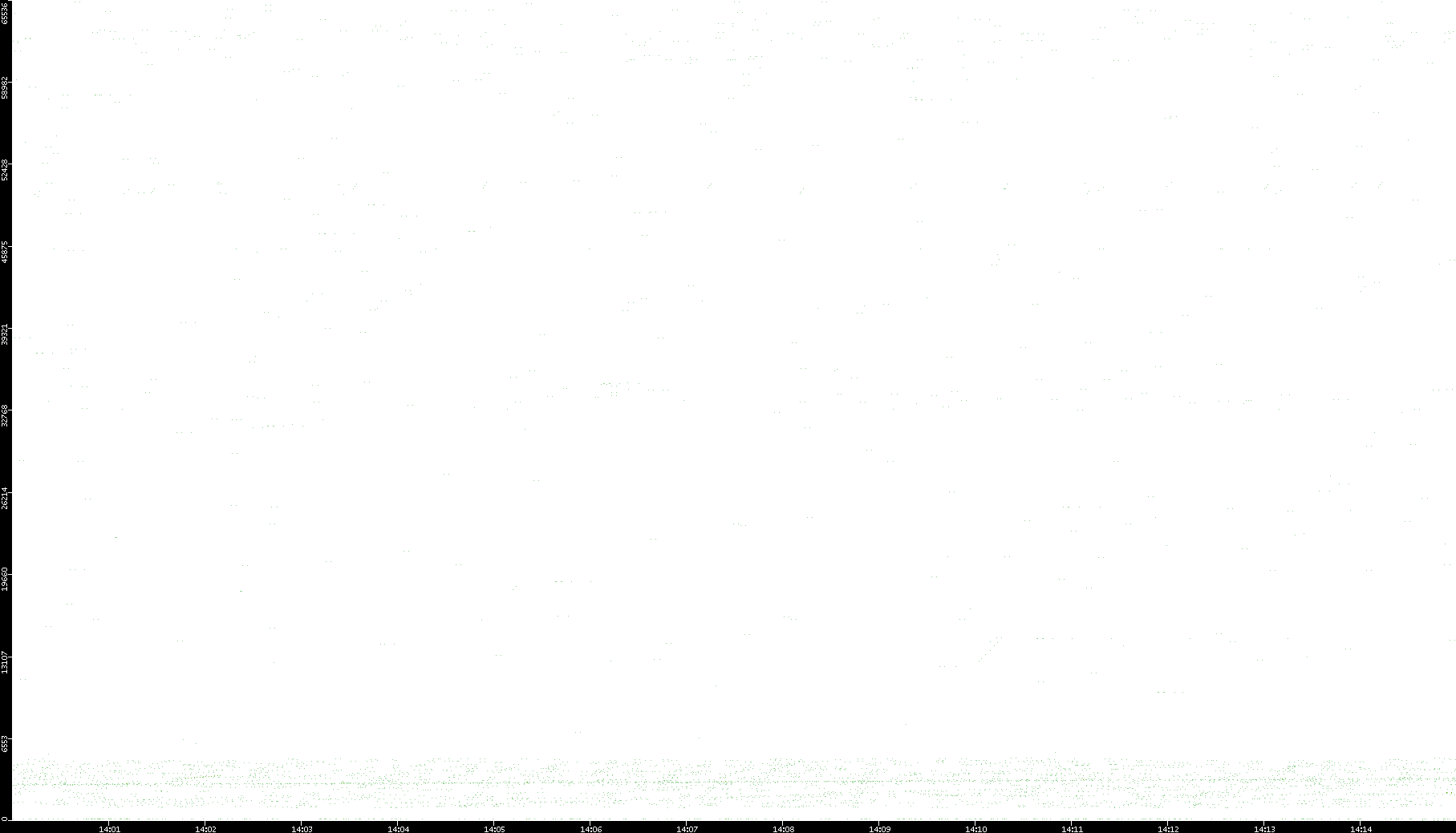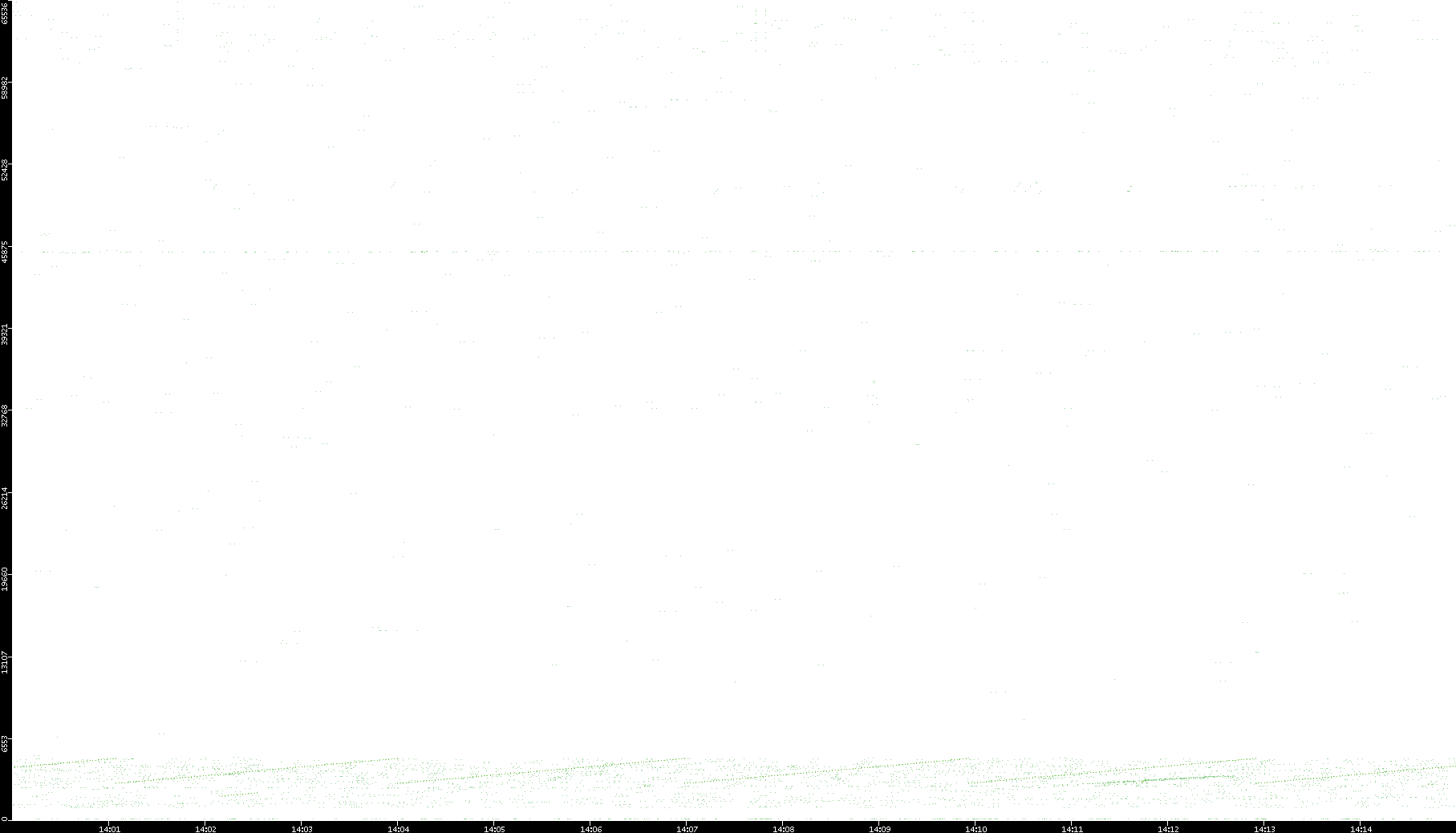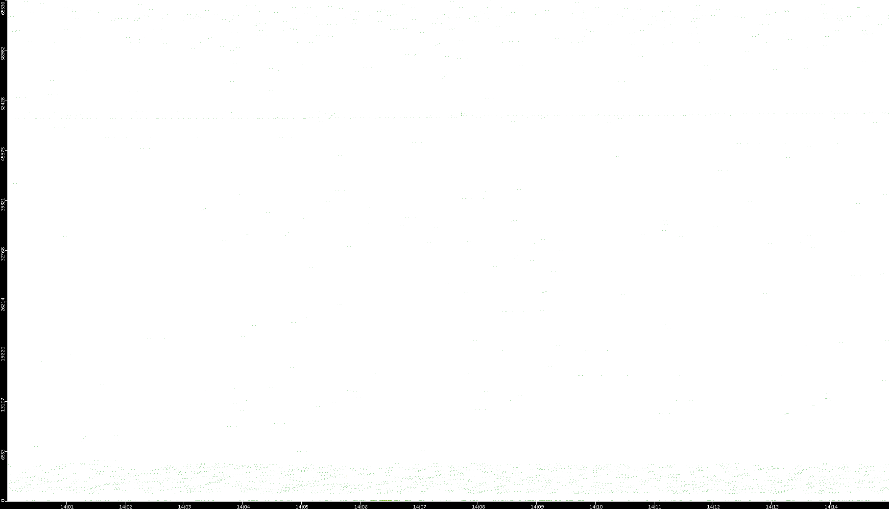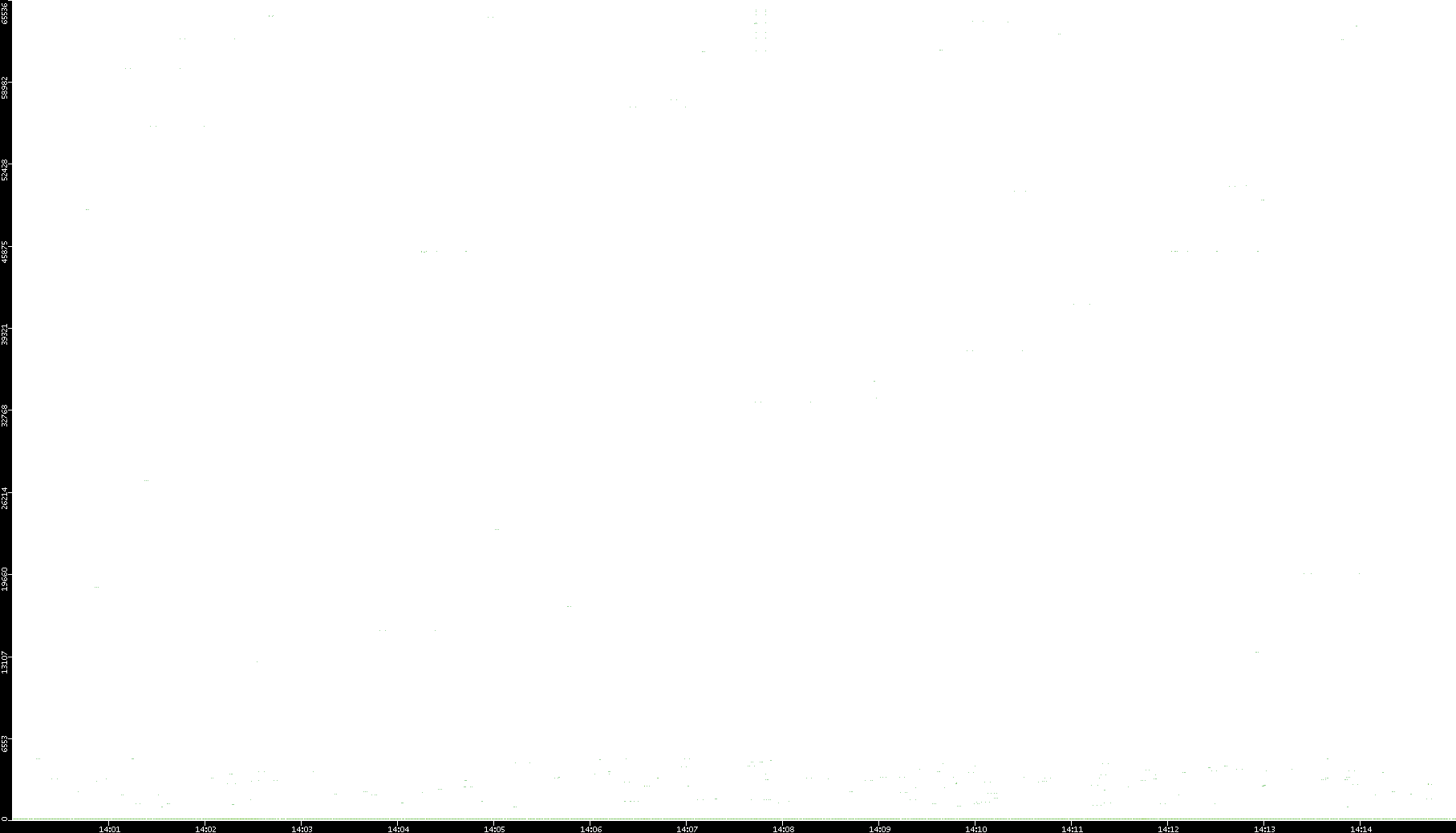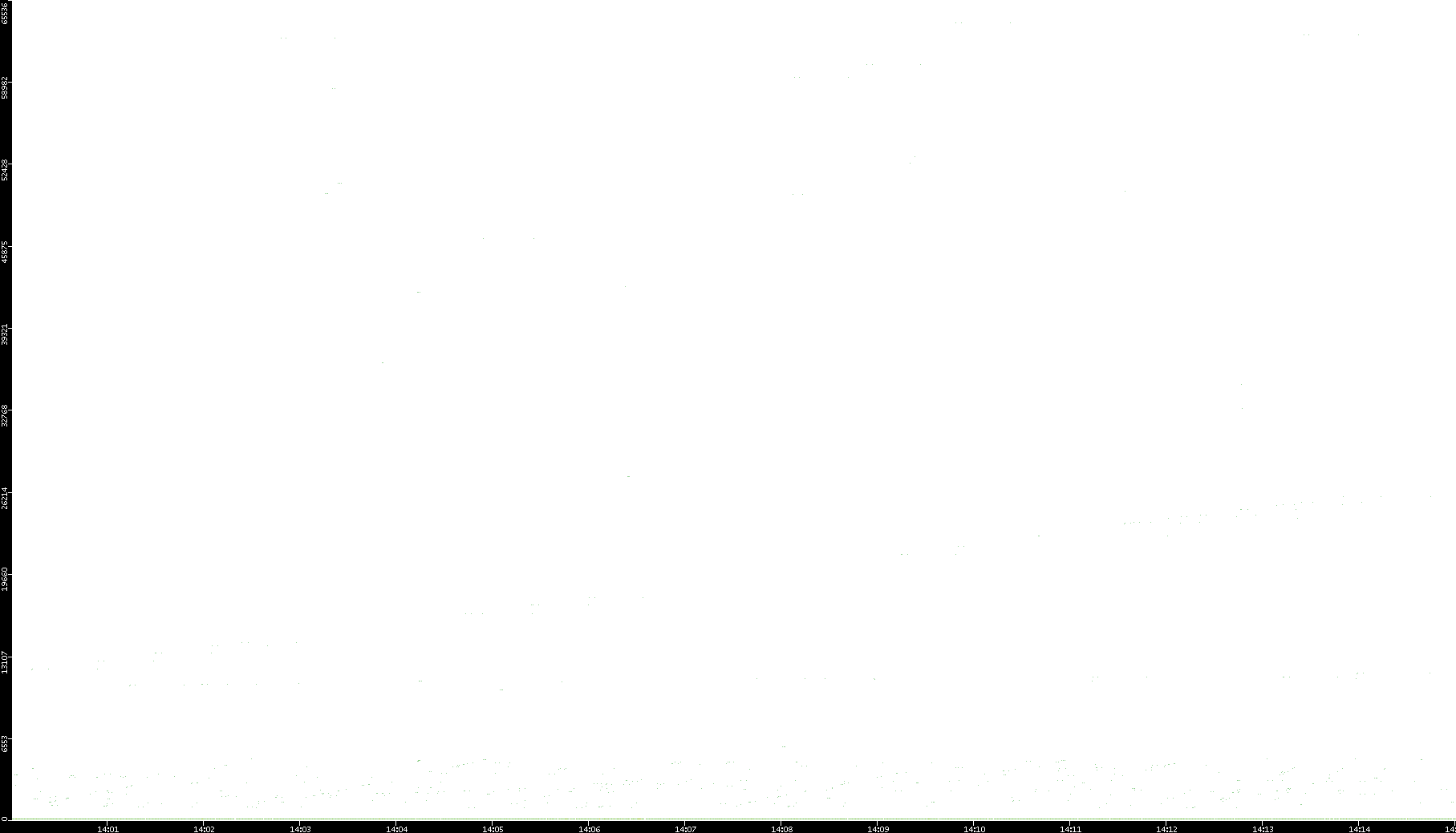 2006/02/13 Dest. IP vs. Time Dest. Port vs. Time Src. IP vs. Time Src. Port vs. Time Nb. of Packets vs. Time Throughput vs. Time Average Packet Size vs. Time Entropy of Port vs. Time