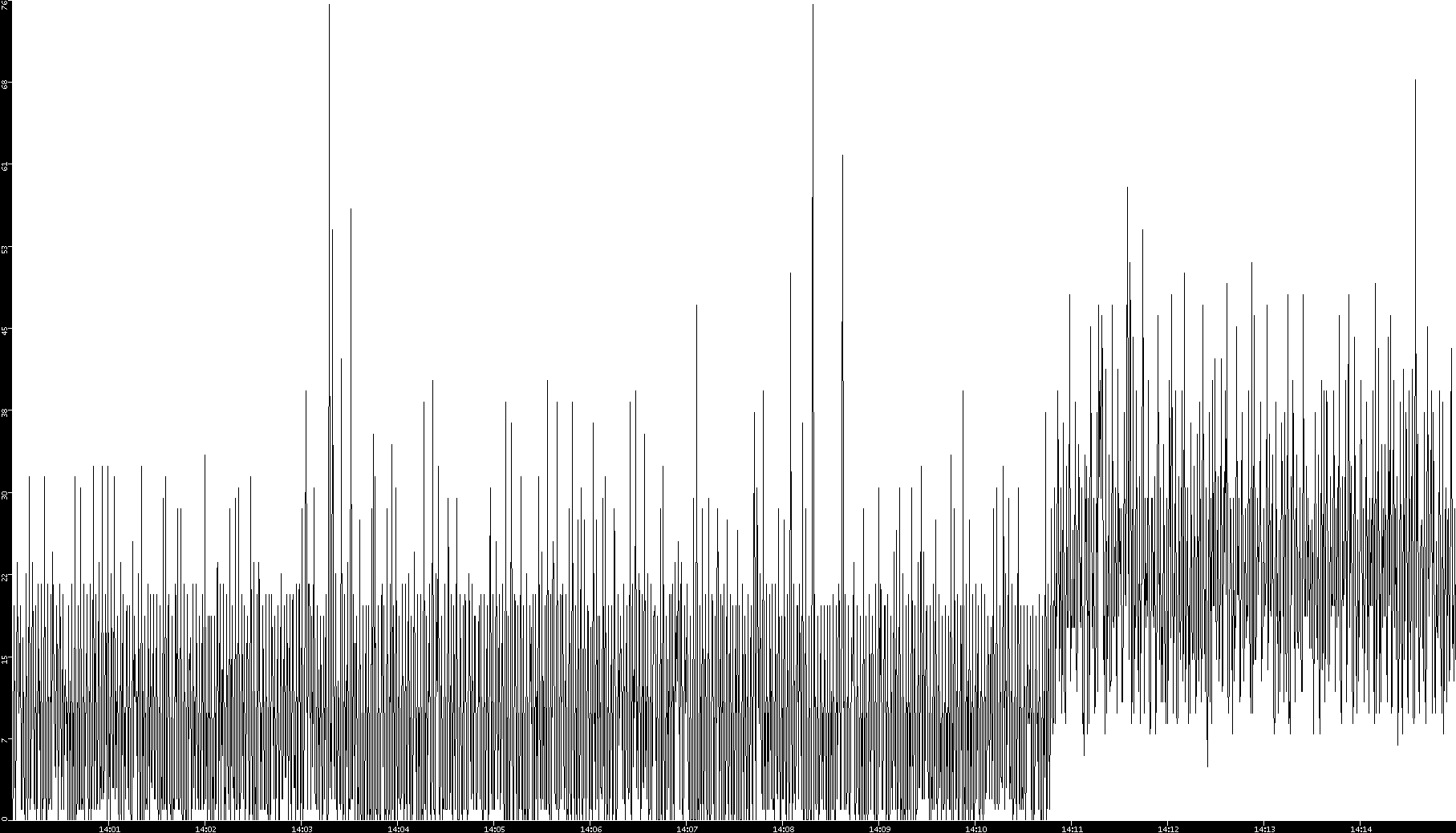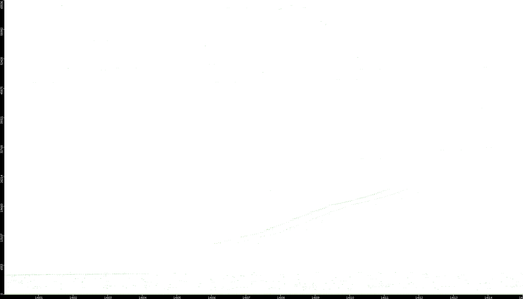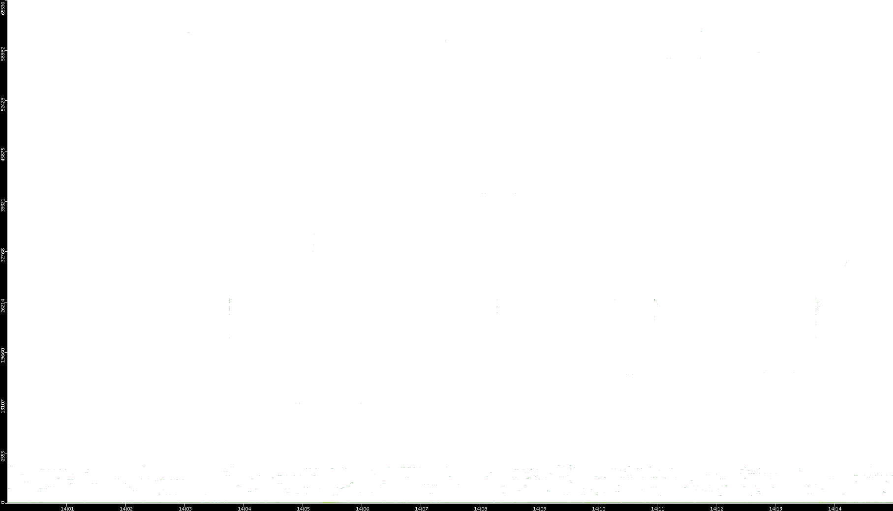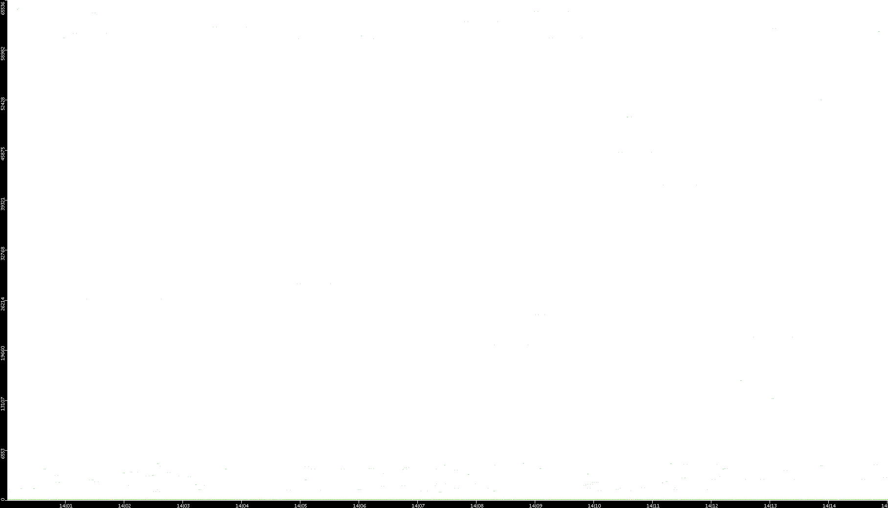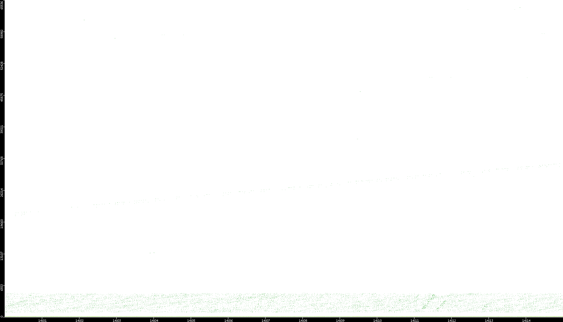 2006/02/13 Dest. IP vs. Time Dest. Port vs. Time Src. IP vs. Time Src. Port vs. Time Nb. of Packets vs. Time Throughput vs. Time Average Packet Size vs. Time Entropy of Port vs. Time