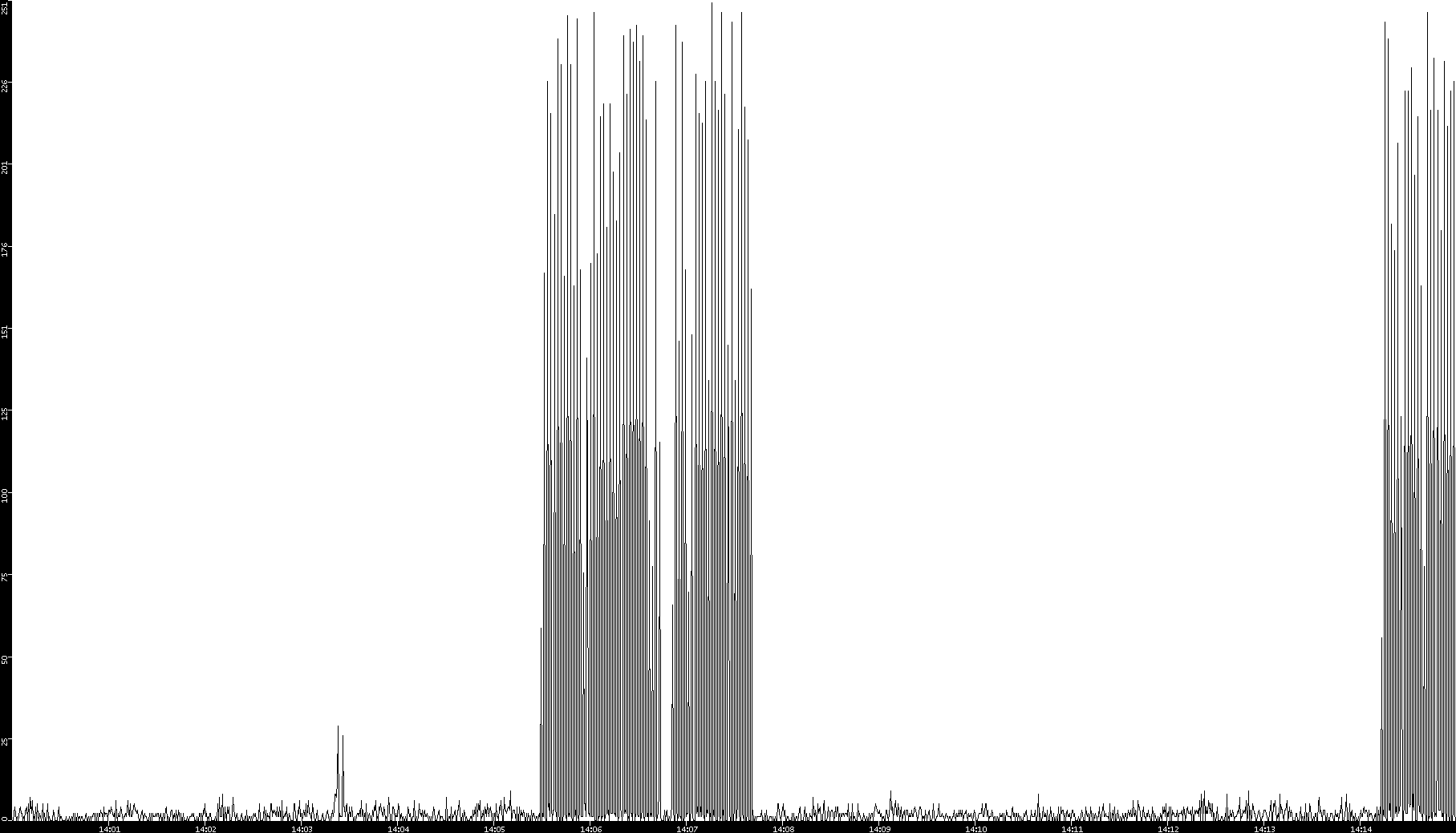 2006/02/01 Dest. IP vs. Time Dest. Port vs. Time Src. IP vs. Time Src. Port vs. Time Nb. of Packets vs. Time Throughput vs. Time Average Packet Size vs. Time Entropy of Port vs. Time