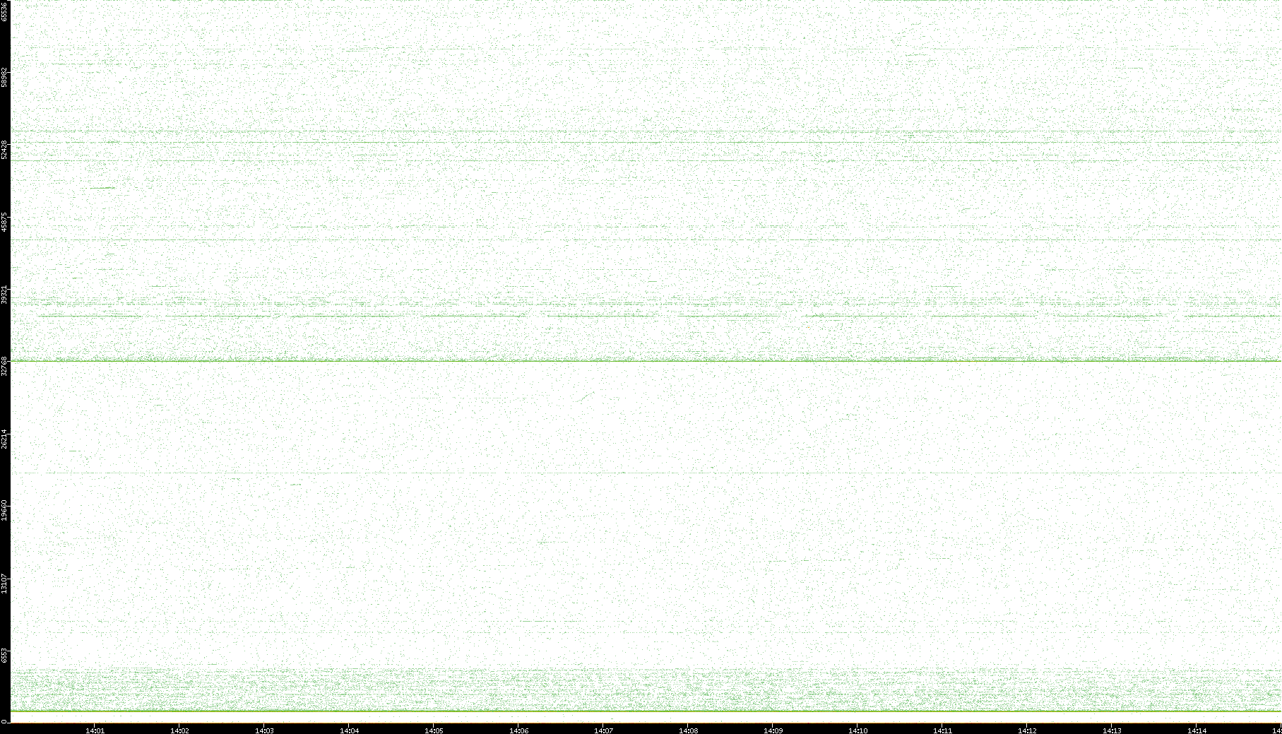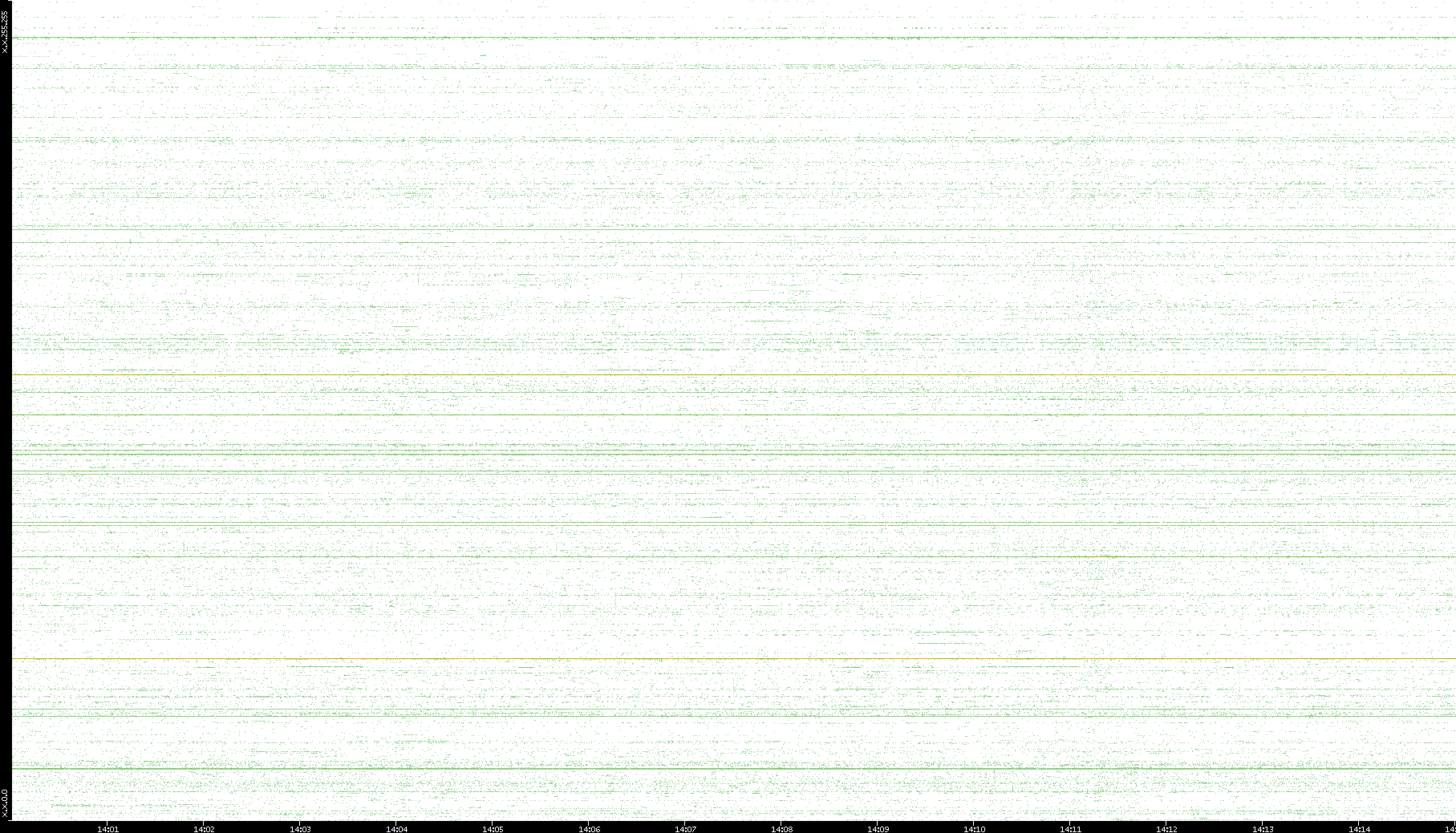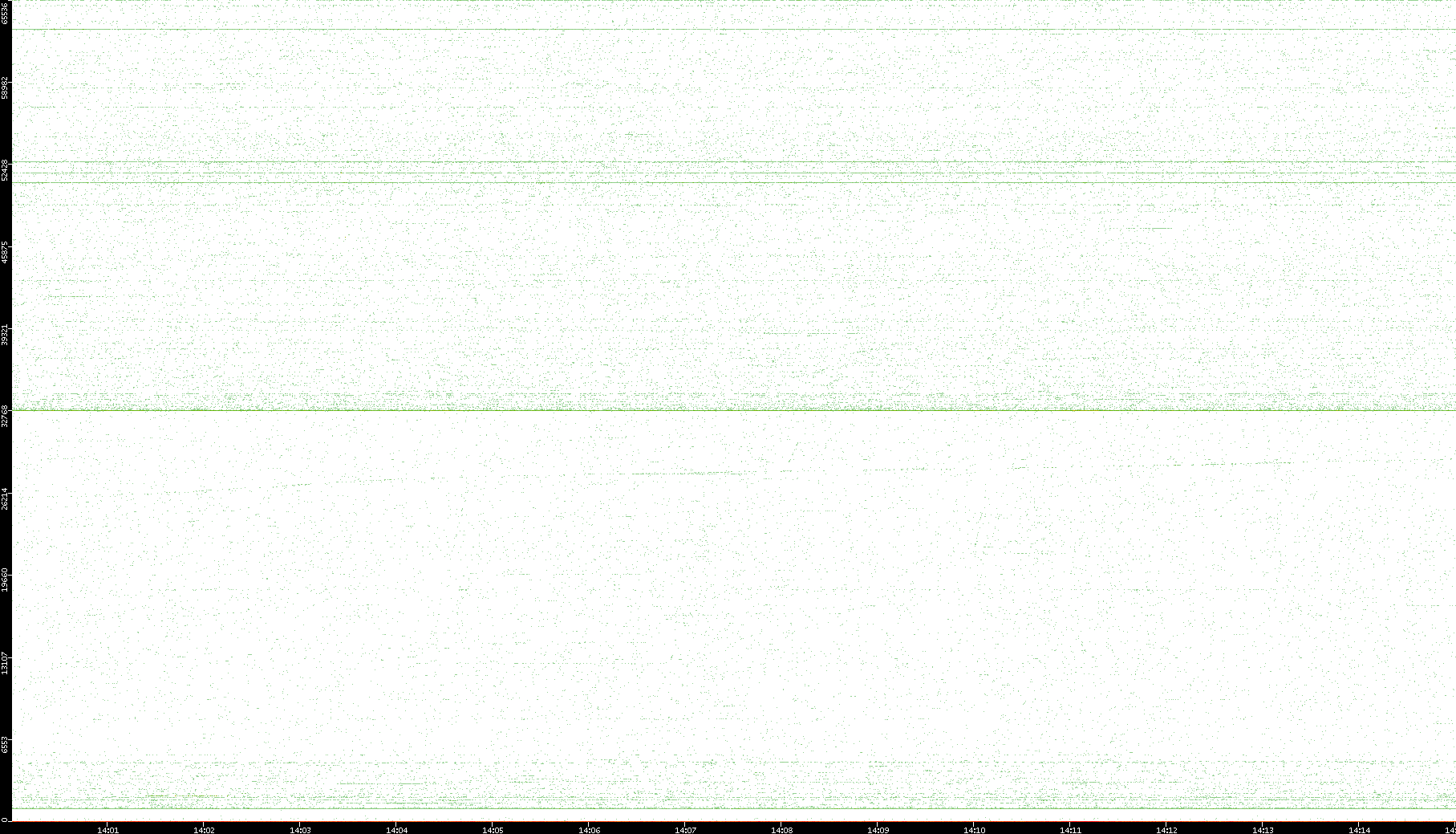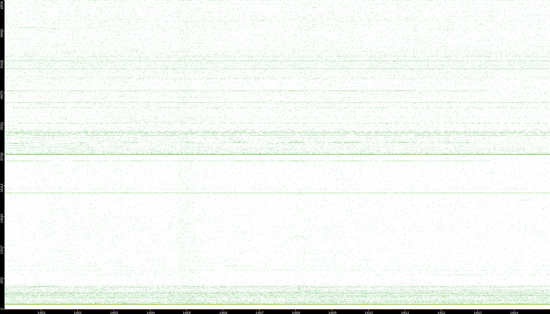 | Date | Dest. IP vs. Time | Dest. Port vs. Time | Src. IP vs. Time | Src. Port vs. Time | Nb. of Packets vs. Time | Throughput vs. Time | Average Packet Size vs. Time | Entropy of Port vs. Time |