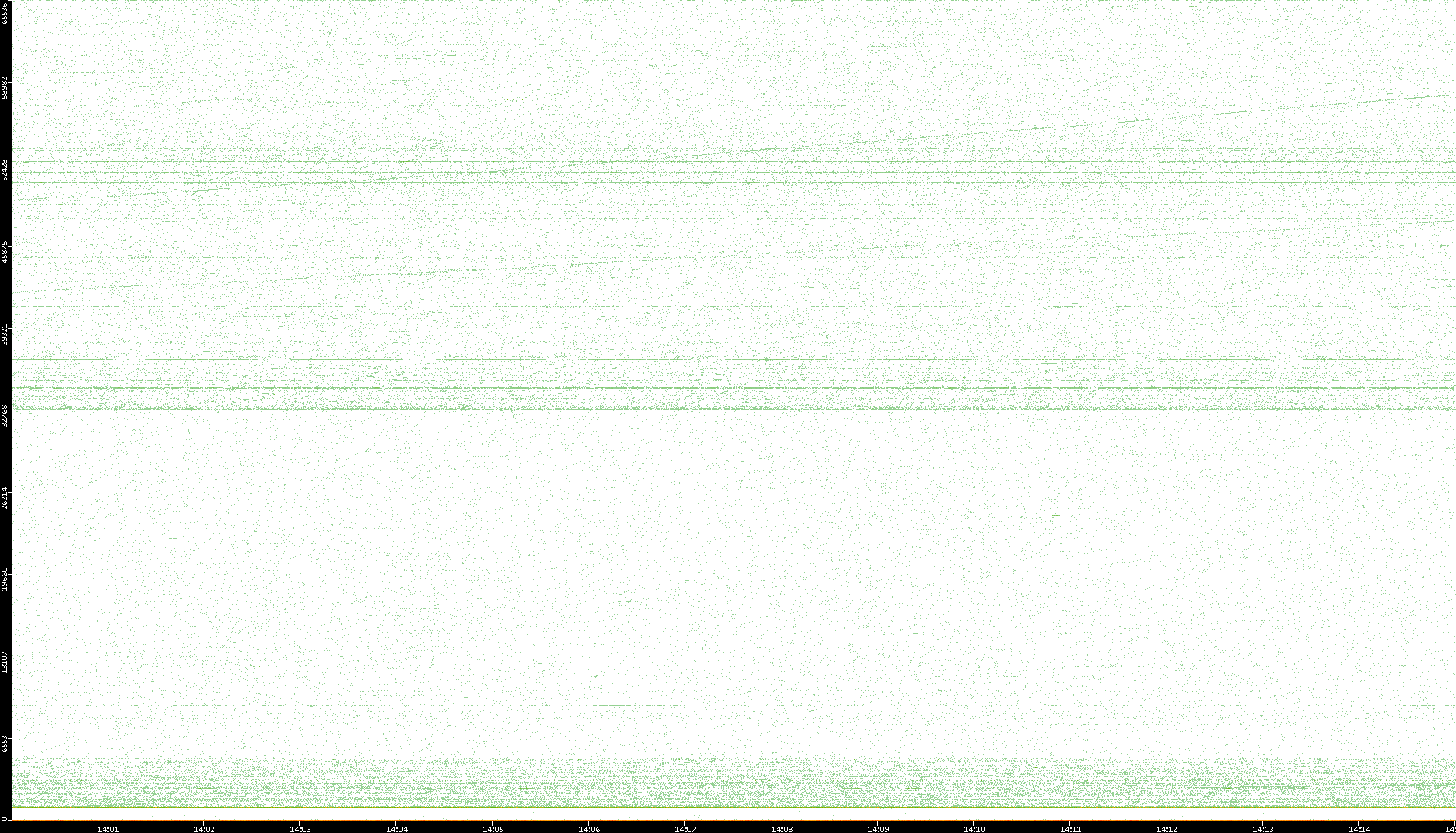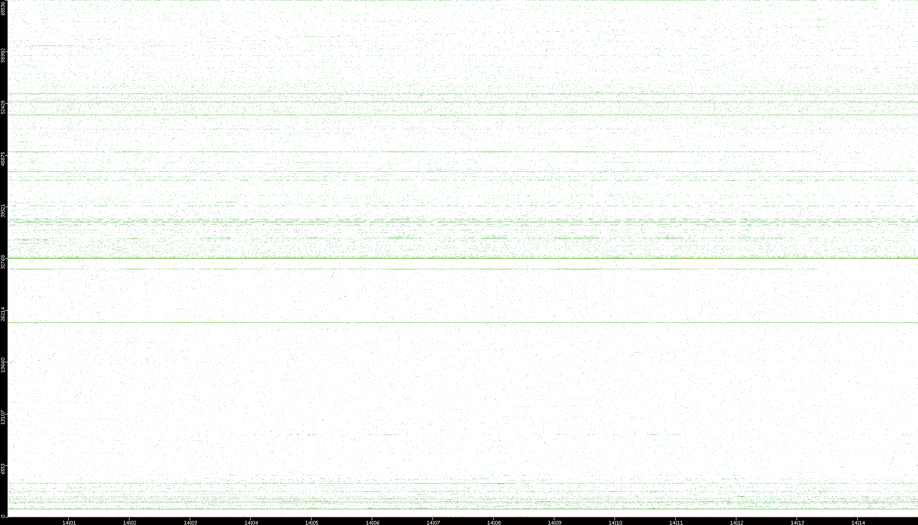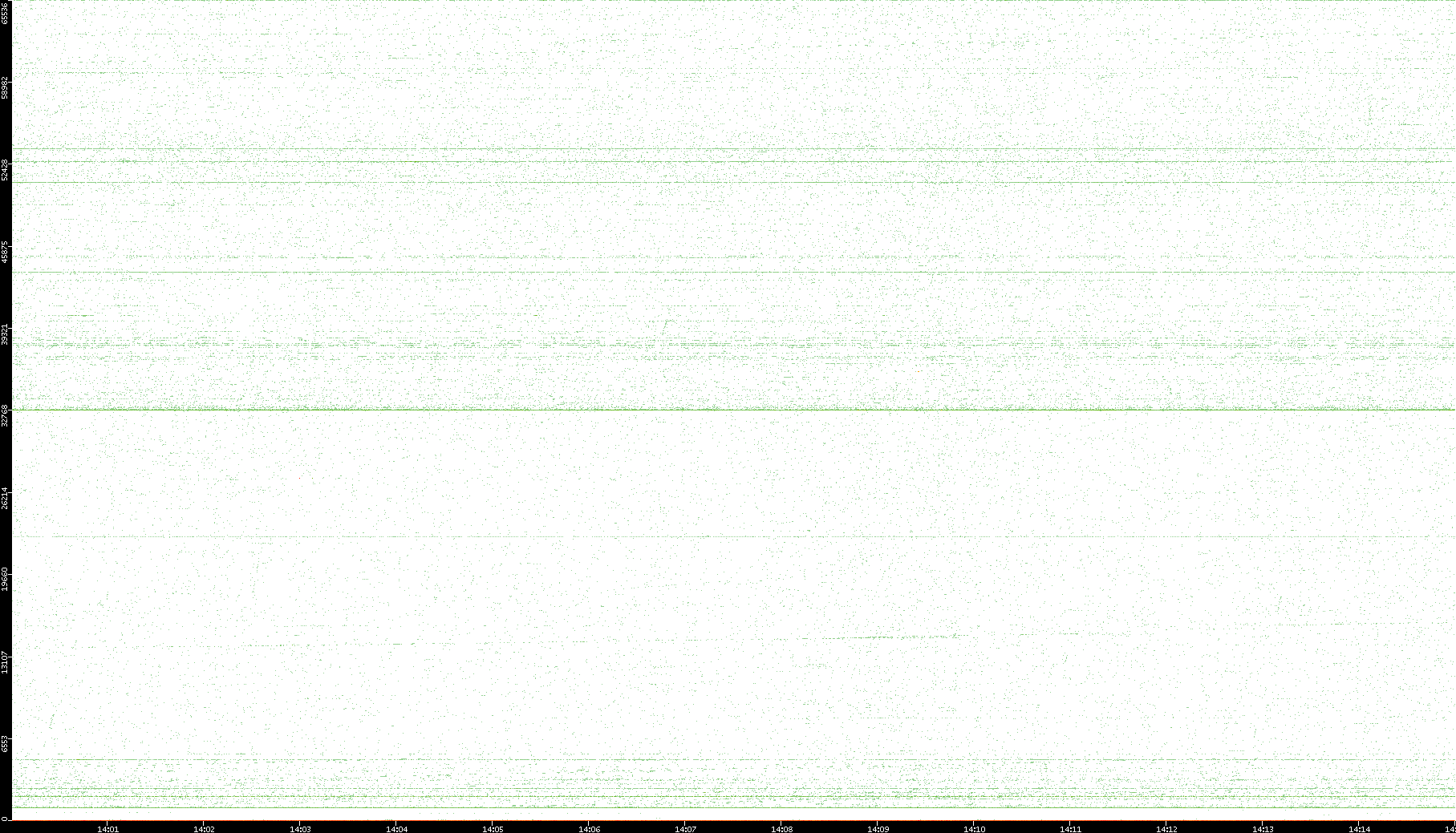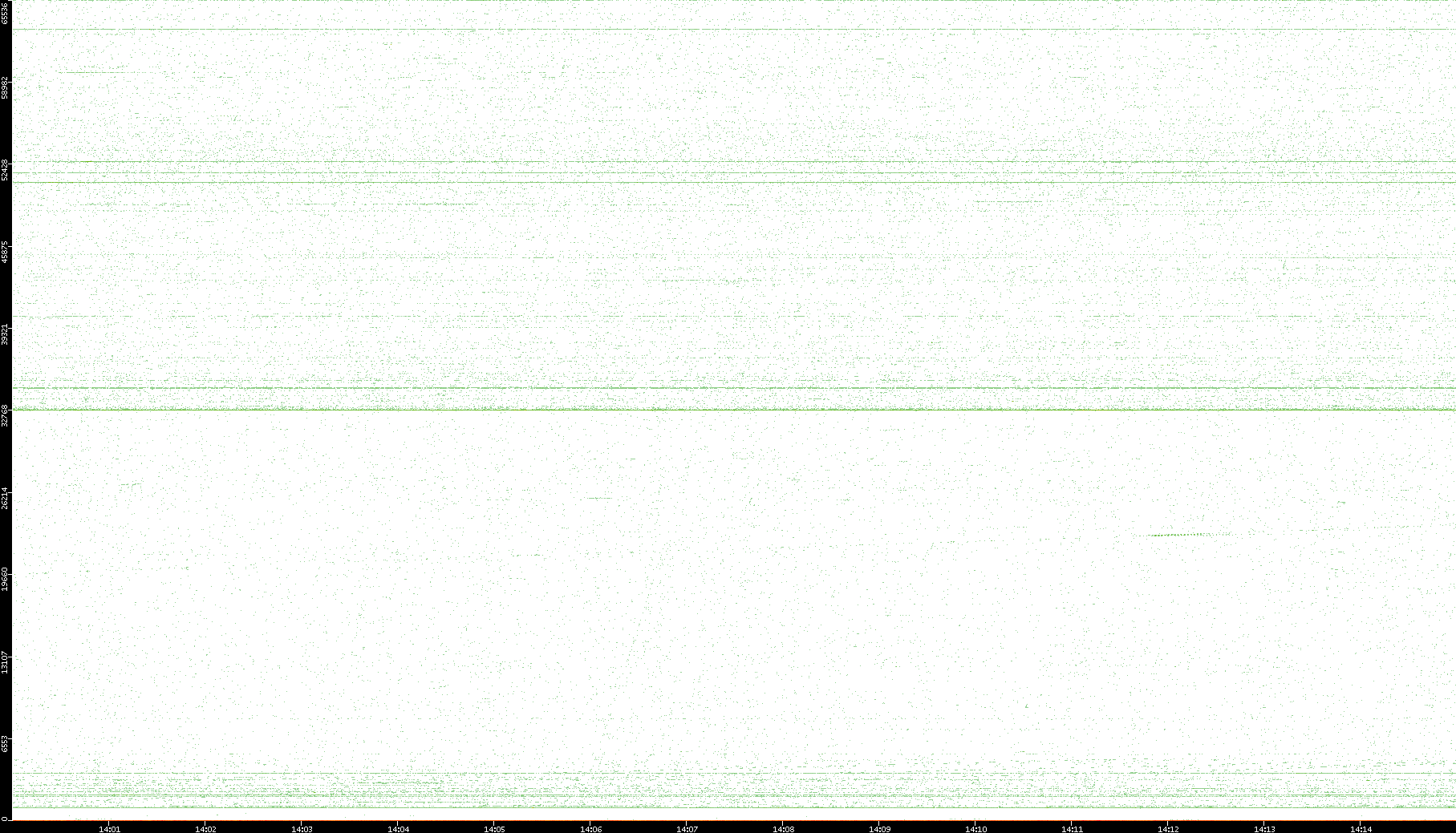 | Date | Dest. IP vs. Time | Dest. Port vs. Time | Src. IP vs. Time | Src. Port vs. Time | Nb. of Packets vs. Time | Throughput vs. Time | Average Packet Size vs. Time | Entropy of Port vs. Time |