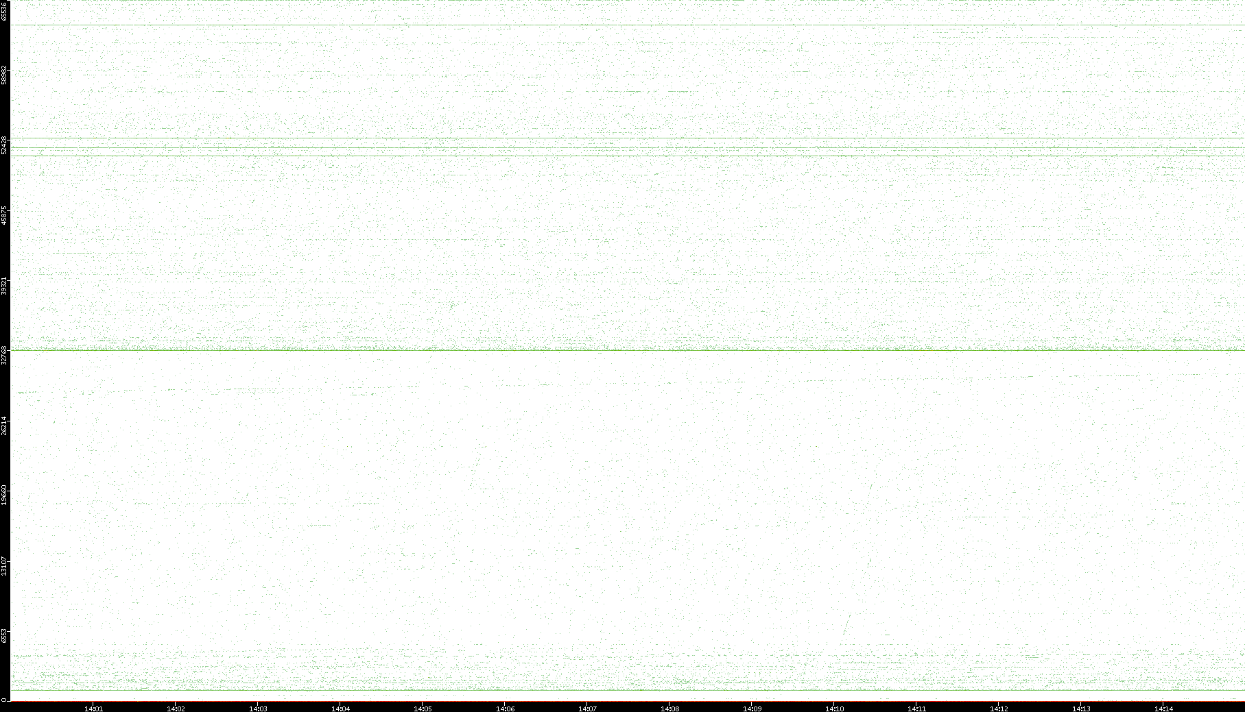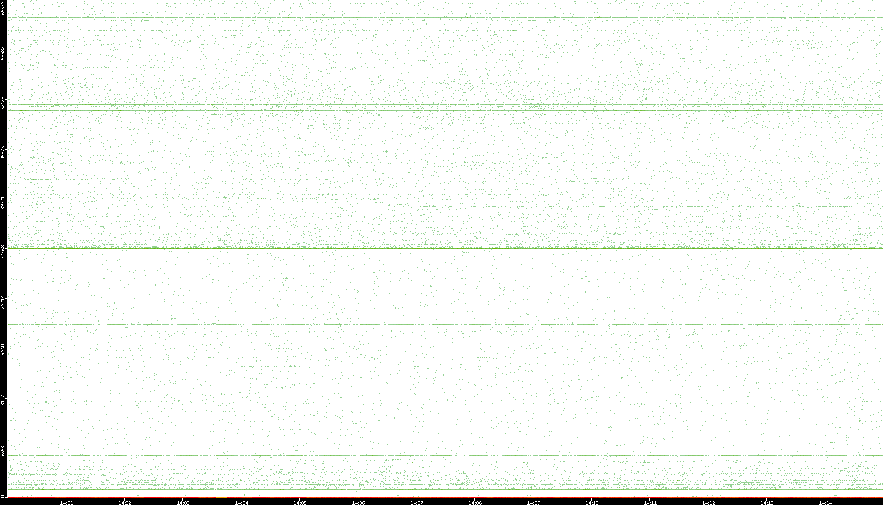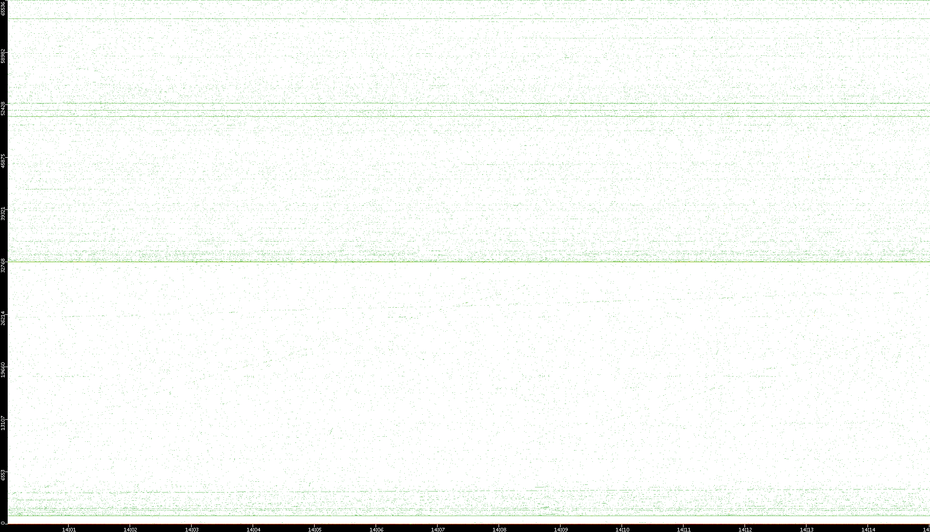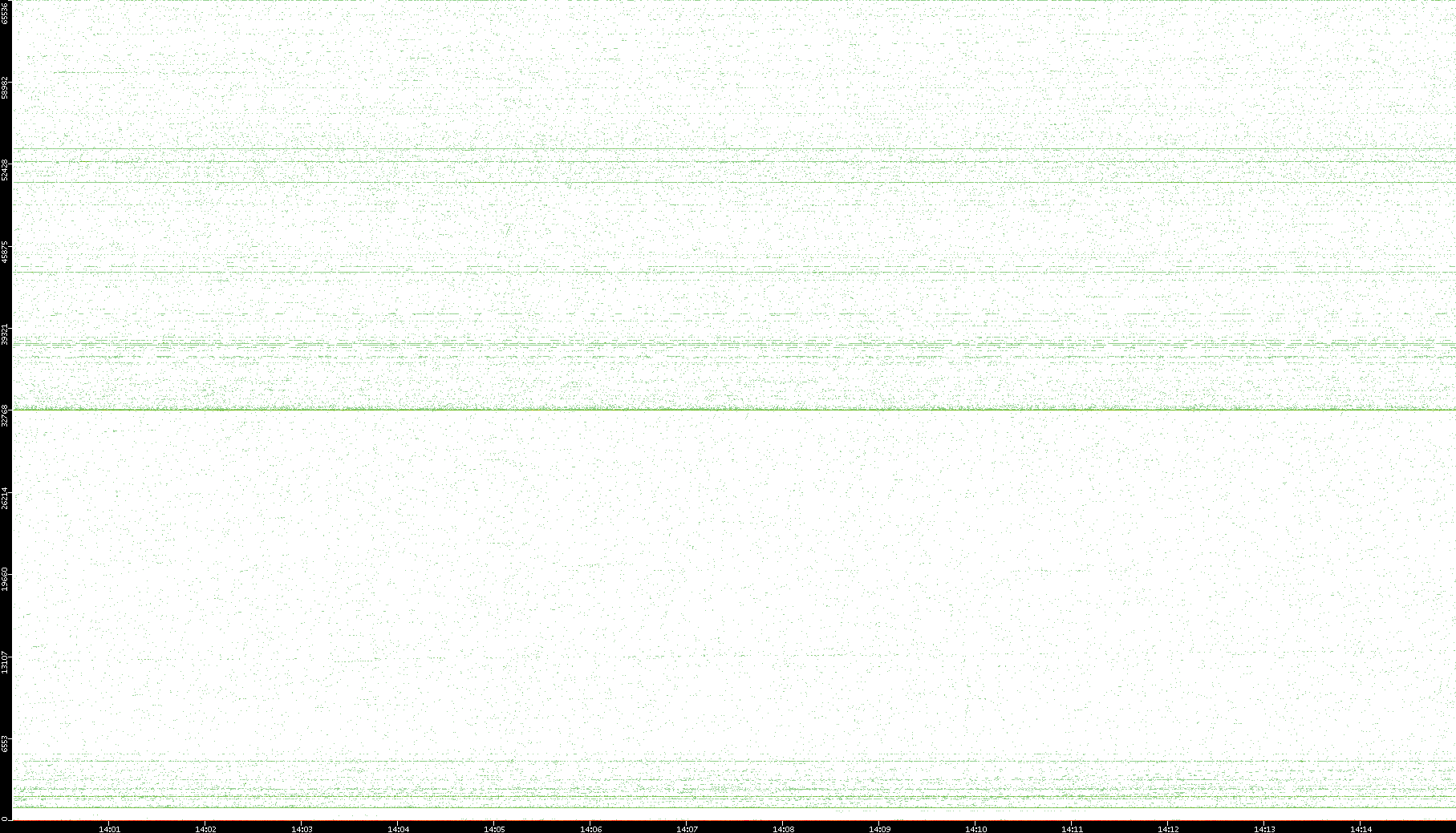 | Date | Dest. IP vs. Time | Dest. Port vs. Time | Src. IP vs. Time | Src. Port vs. Time | Nb. of Packets vs. Time | Throughput vs. Time | Average Packet Size vs. Time | Entropy of Port vs. Time |