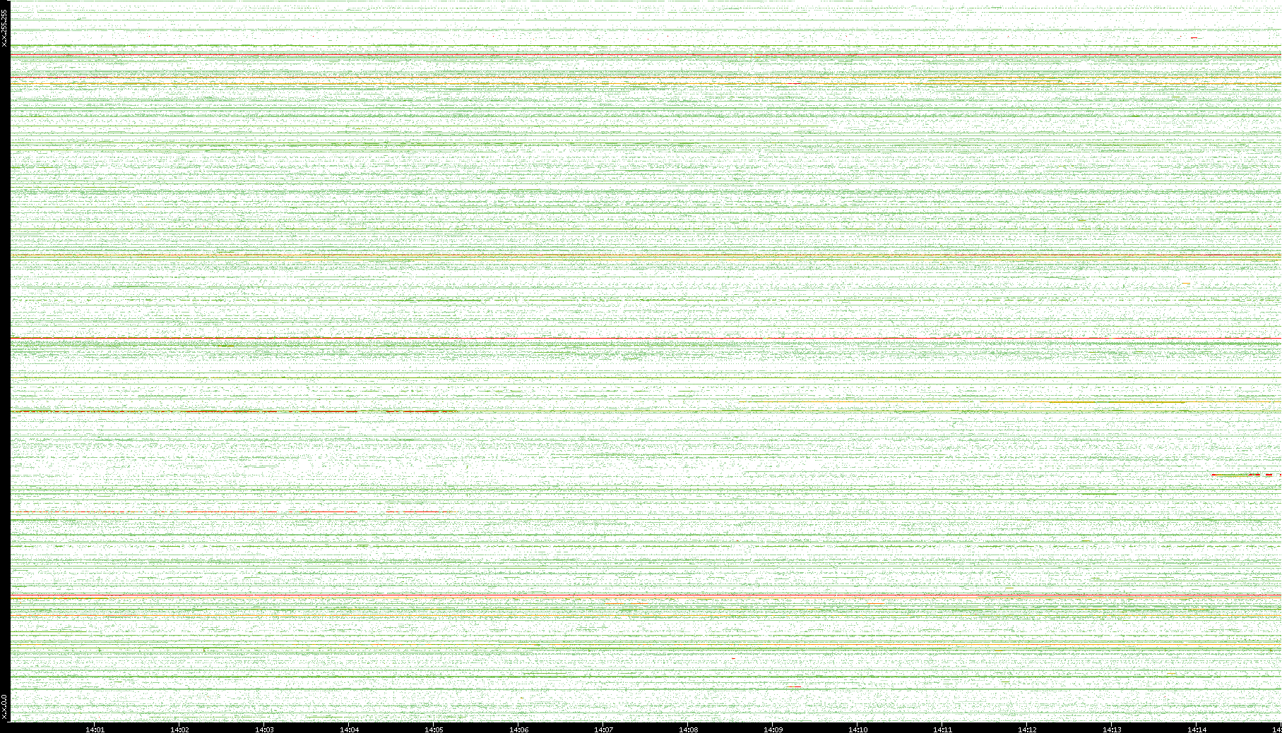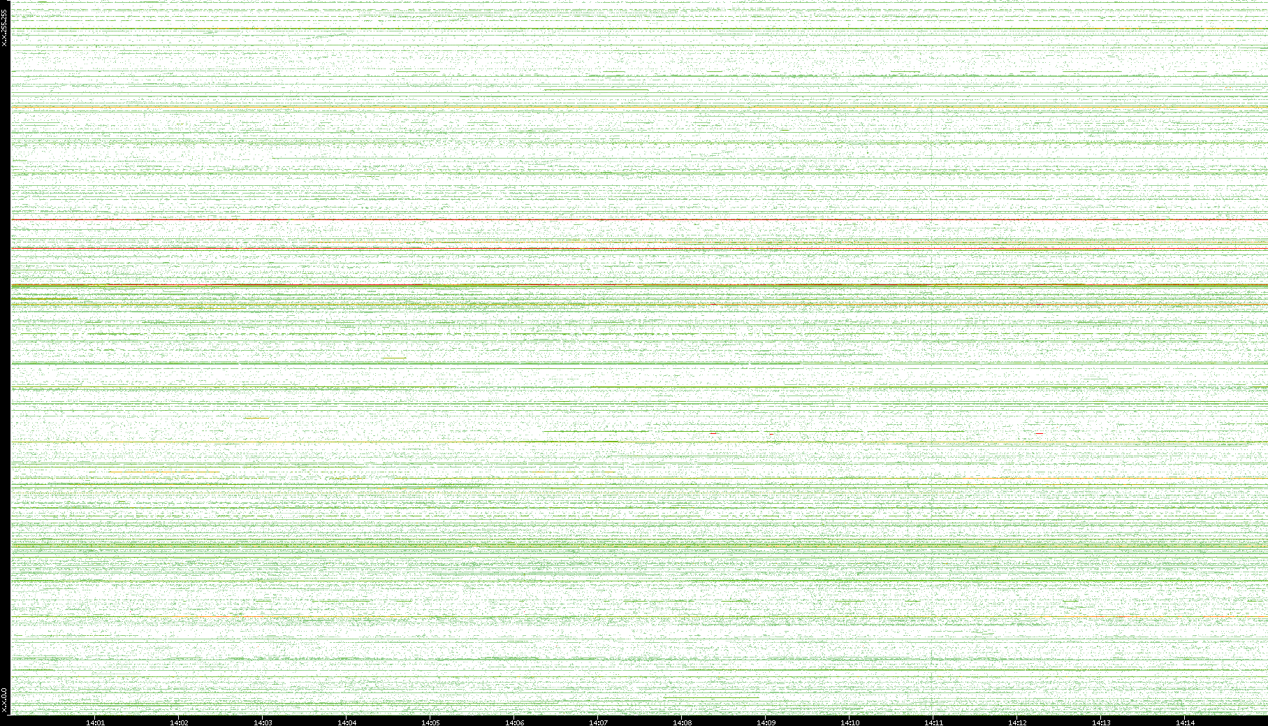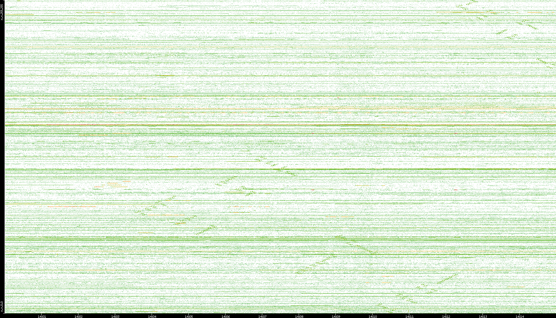2006/09/01 Dest. IP vs. Time Dest. Port vs. Time Src. IP vs. Time Src. Port vs. Time Nb. of Packets vs. Time Throughput vs. Time Average Packet Size vs. Time Entropy of Port vs. Time