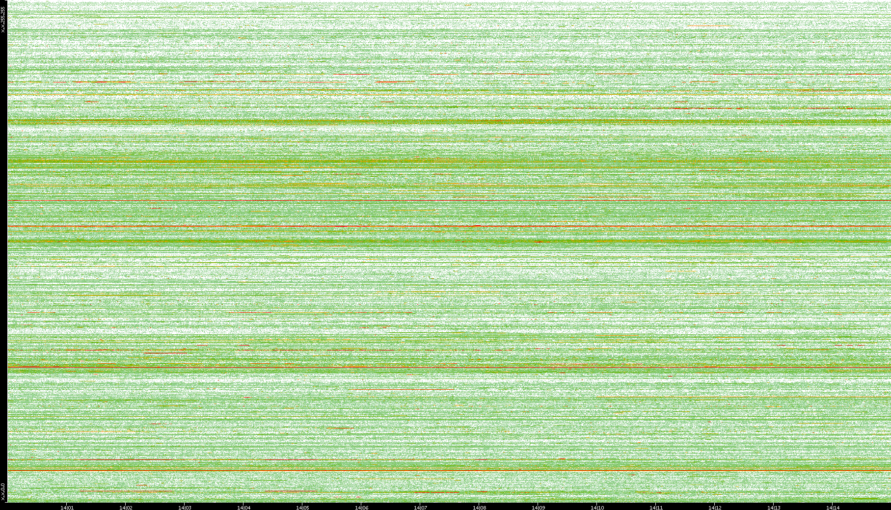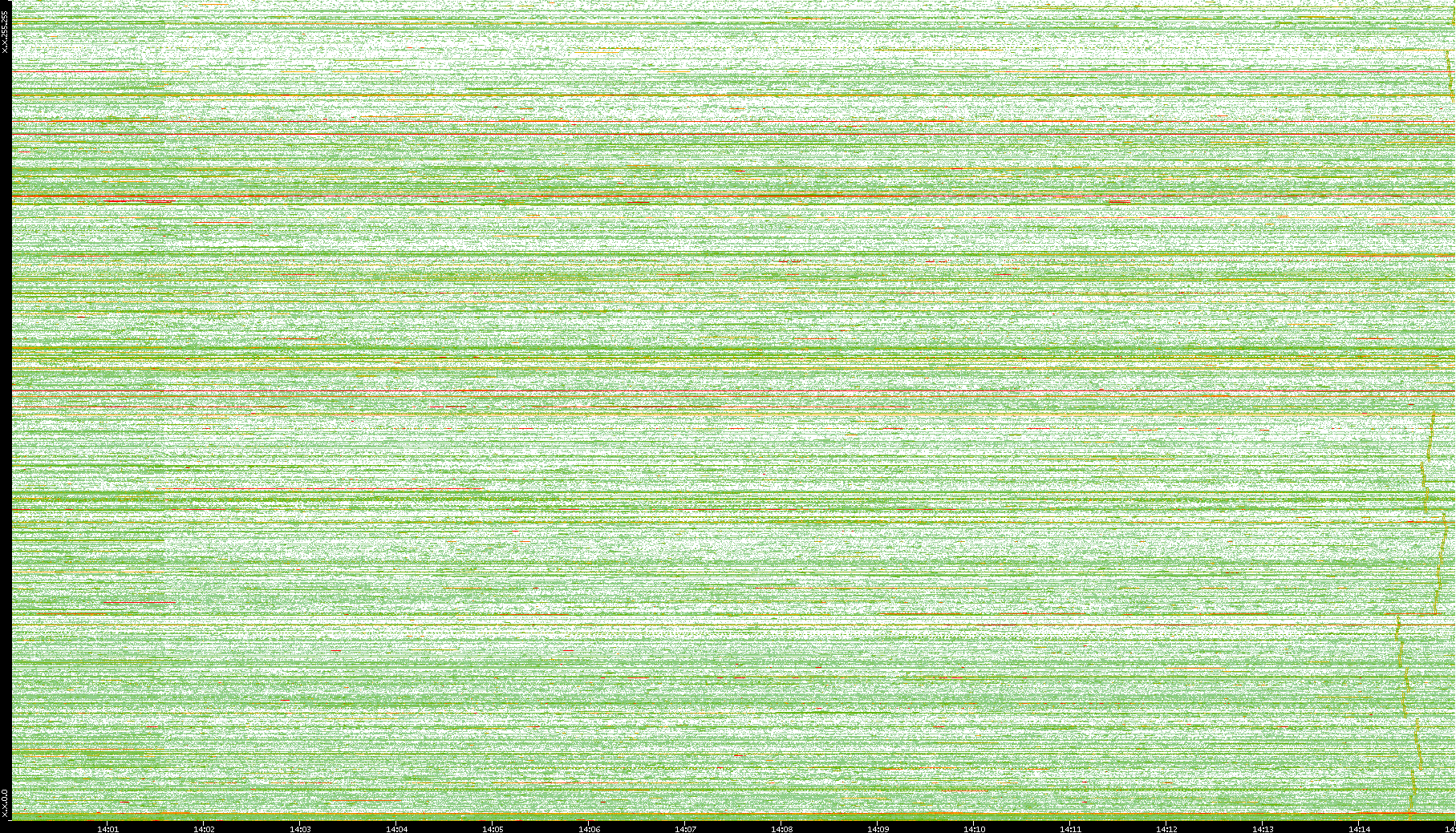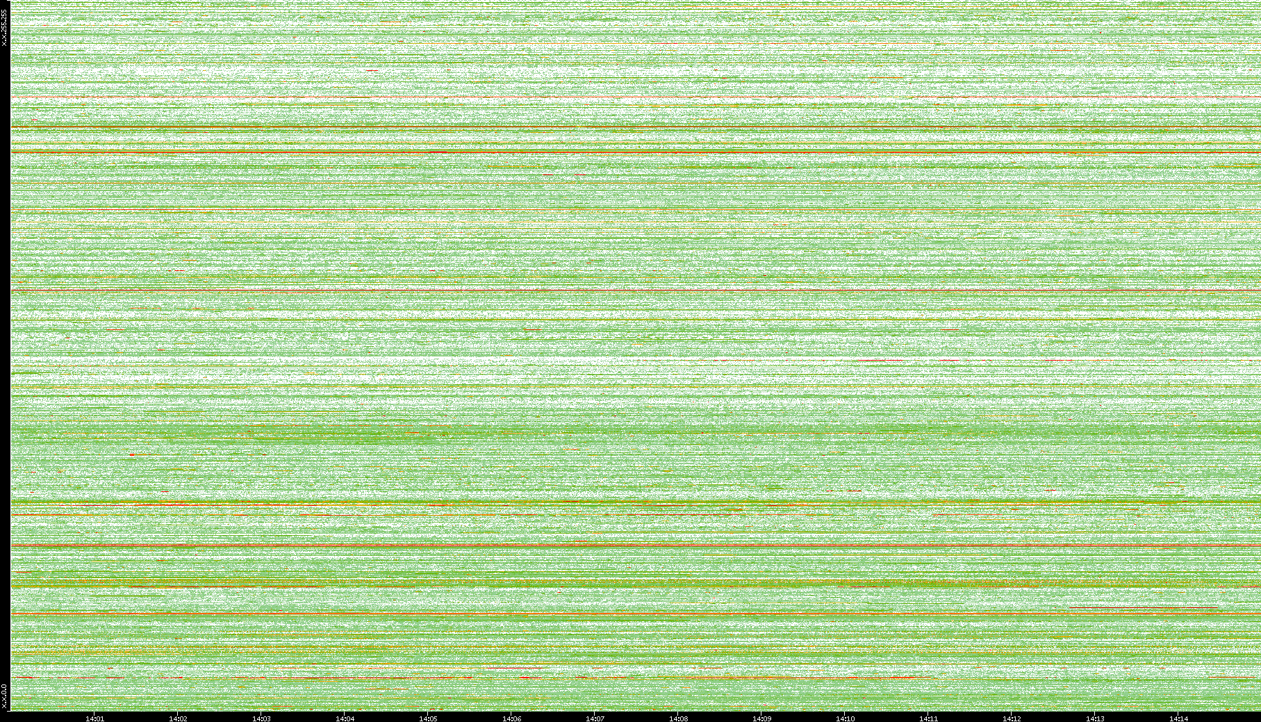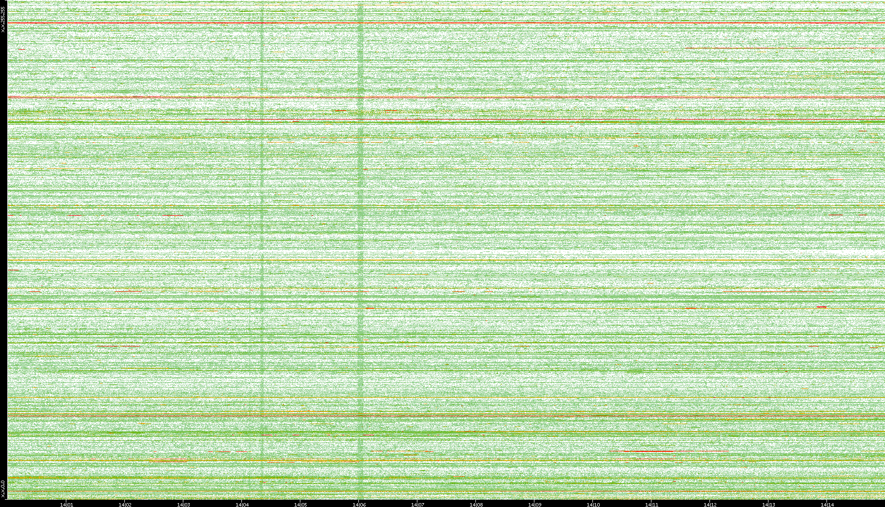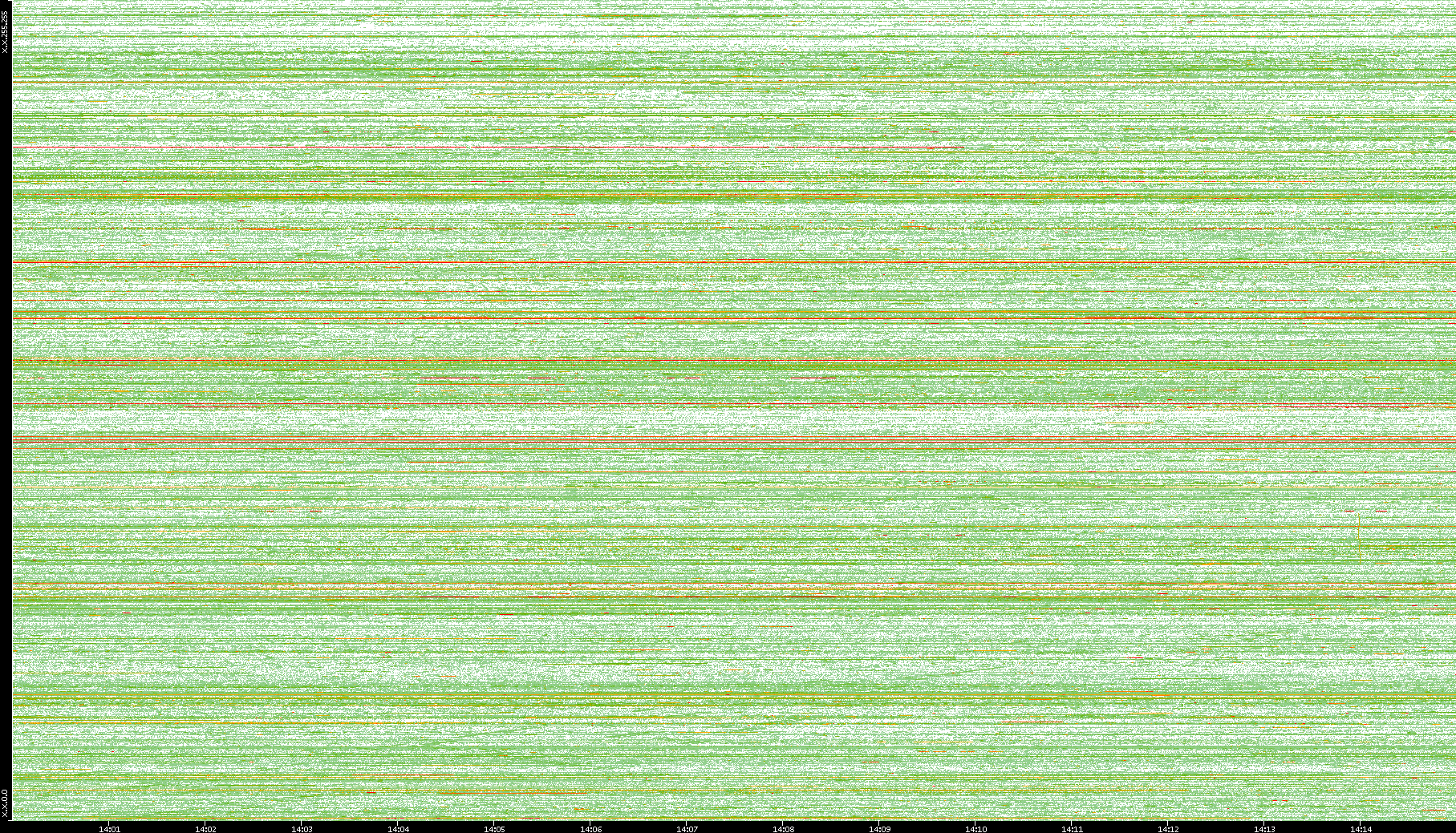 | Date | Dest. IP vs. Time | Dest. Port vs. Time | Src. IP vs. Time | Src. Port vs. Time | Nb. of Packets vs. Time | Throughput vs. Time | Average Packet Size vs. Time | Entropy of Port vs. Time |