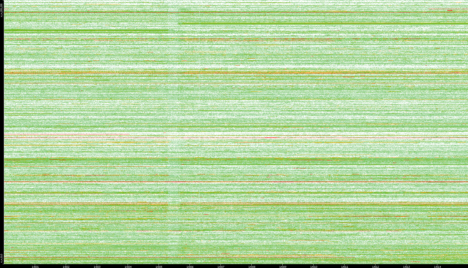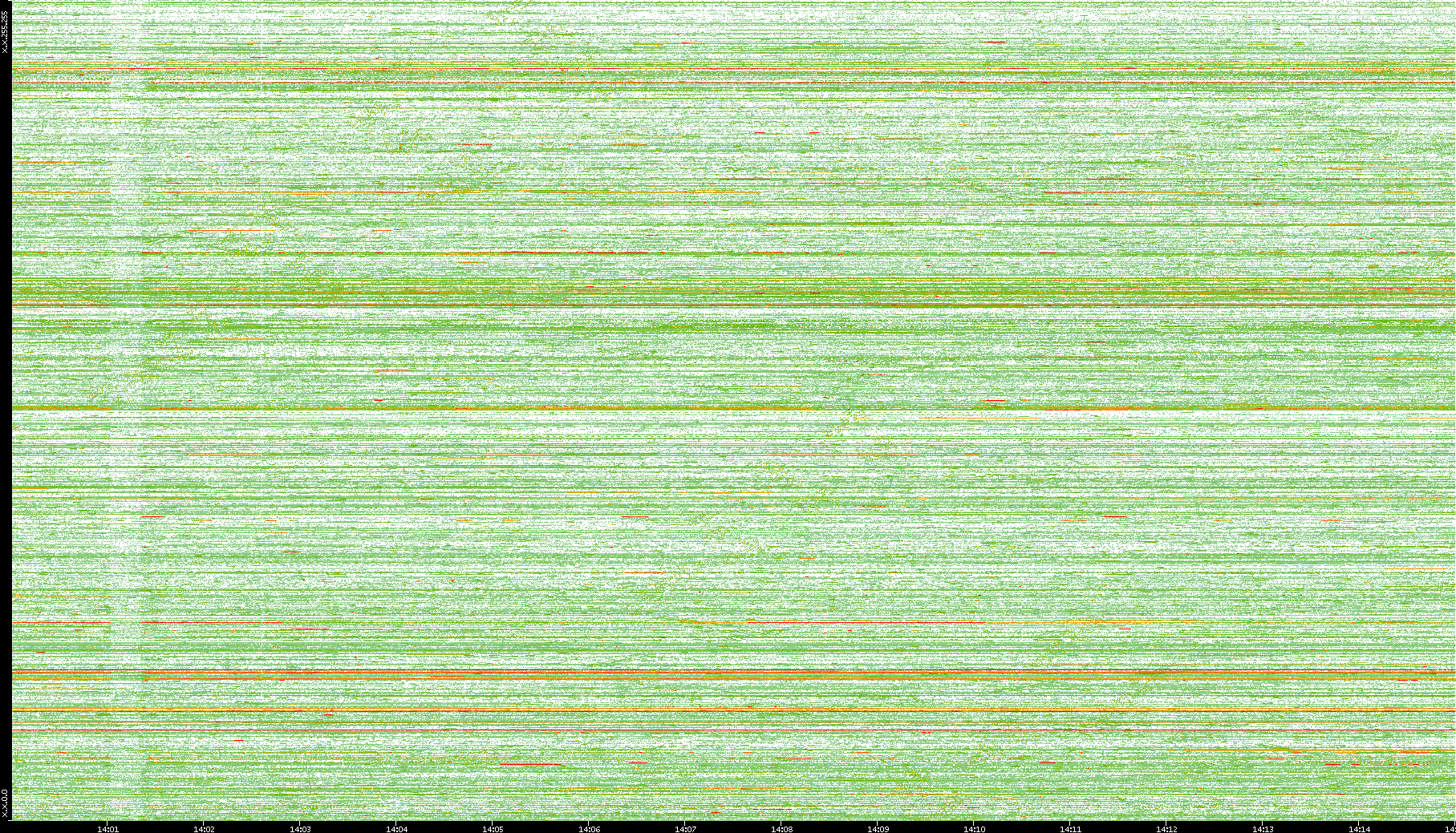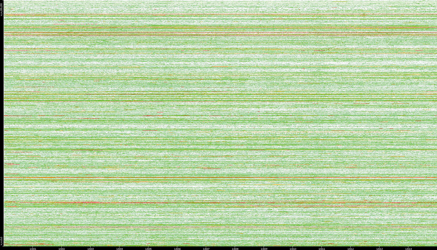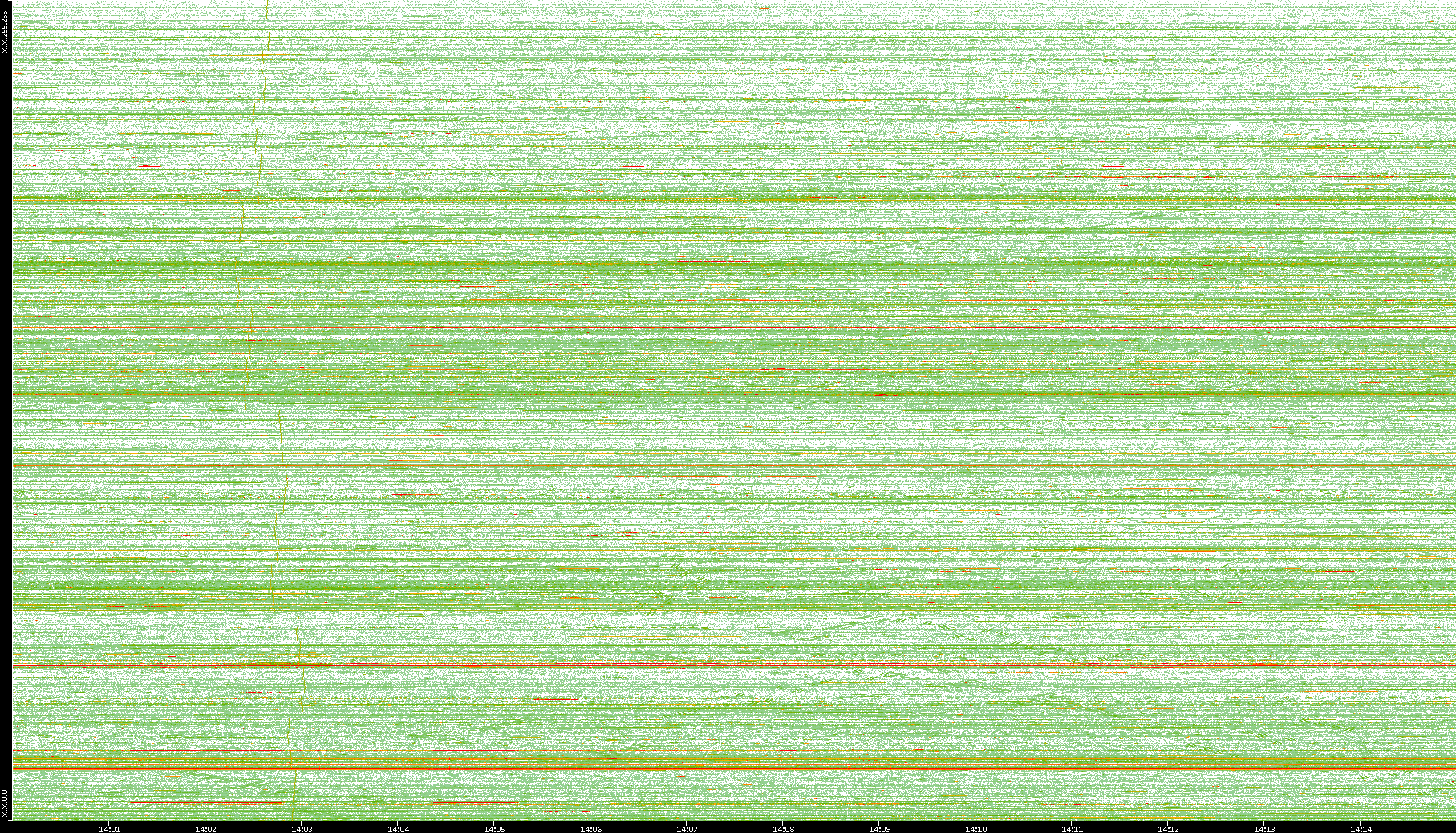 | Date | Dest. IP vs. Time | Dest. Port vs. Time | Src. IP vs. Time | Src. Port vs. Time | Nb. of Packets vs. Time | Throughput vs. Time | Average Packet Size vs. Time | Entropy of Port vs. Time |