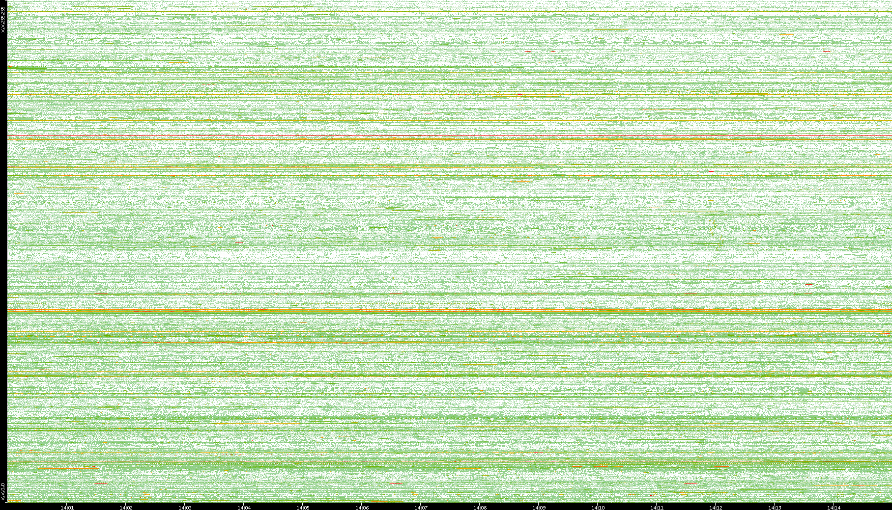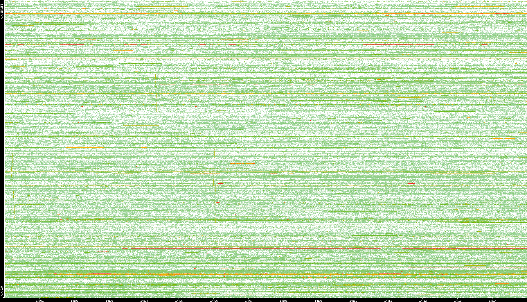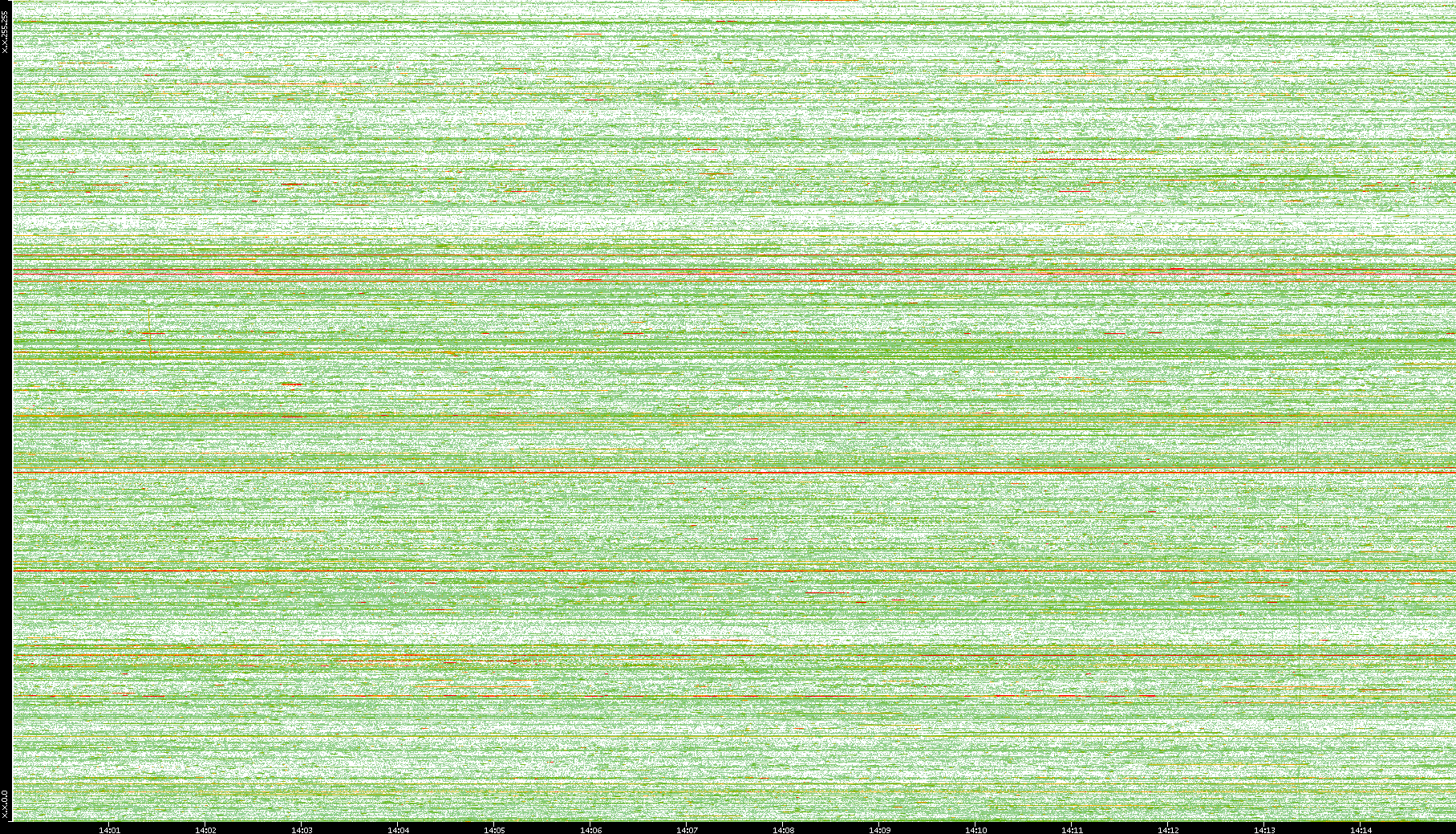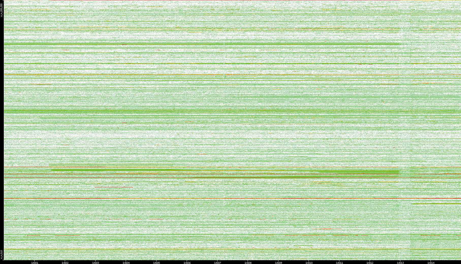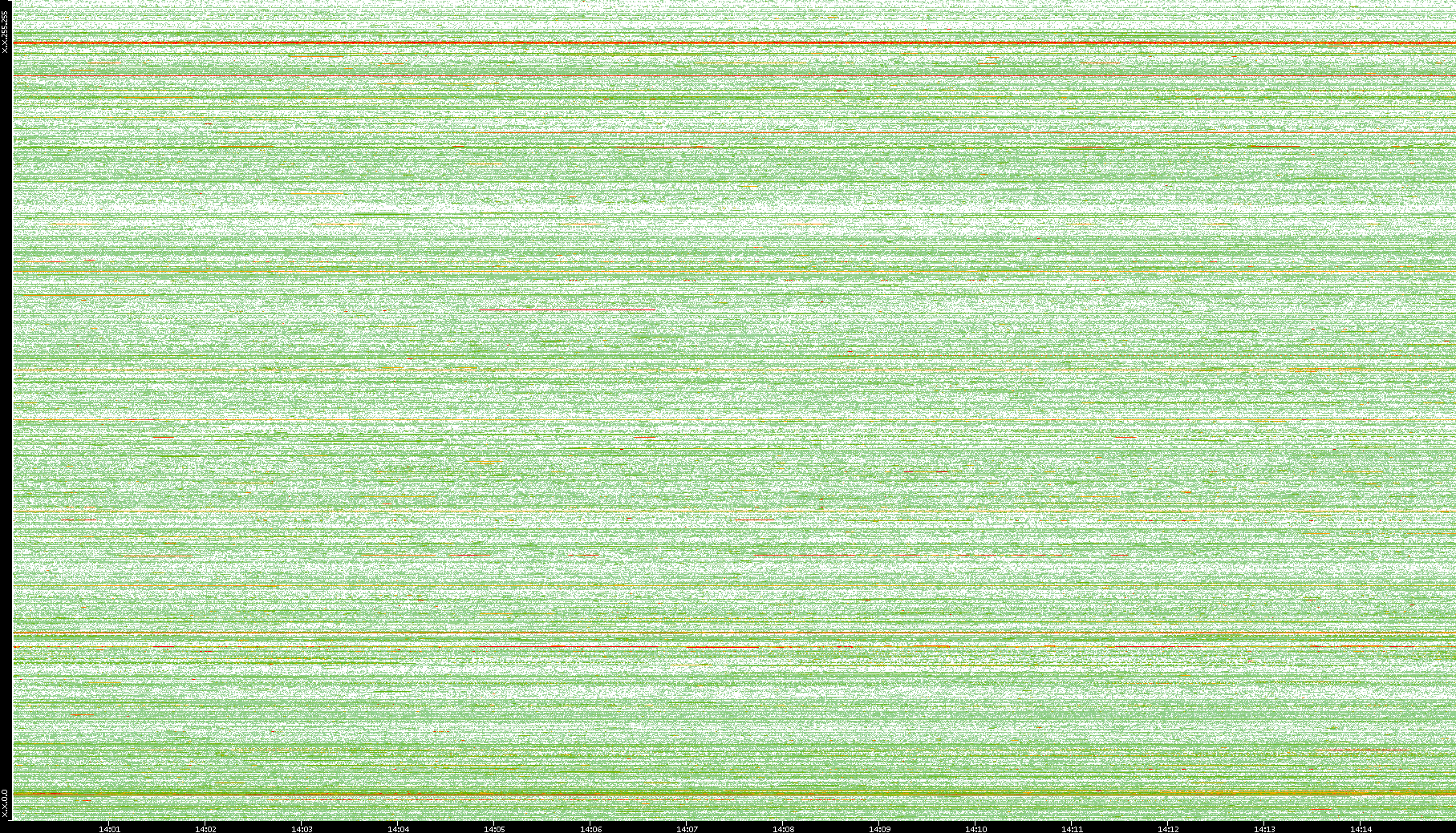 | Date | Dest. IP vs. Time | Dest. Port vs. Time | Src. IP vs. Time | Src. Port vs. Time | Nb. of Packets vs. Time | Throughput vs. Time | Average Packet Size vs. Time | Entropy of Port vs. Time |