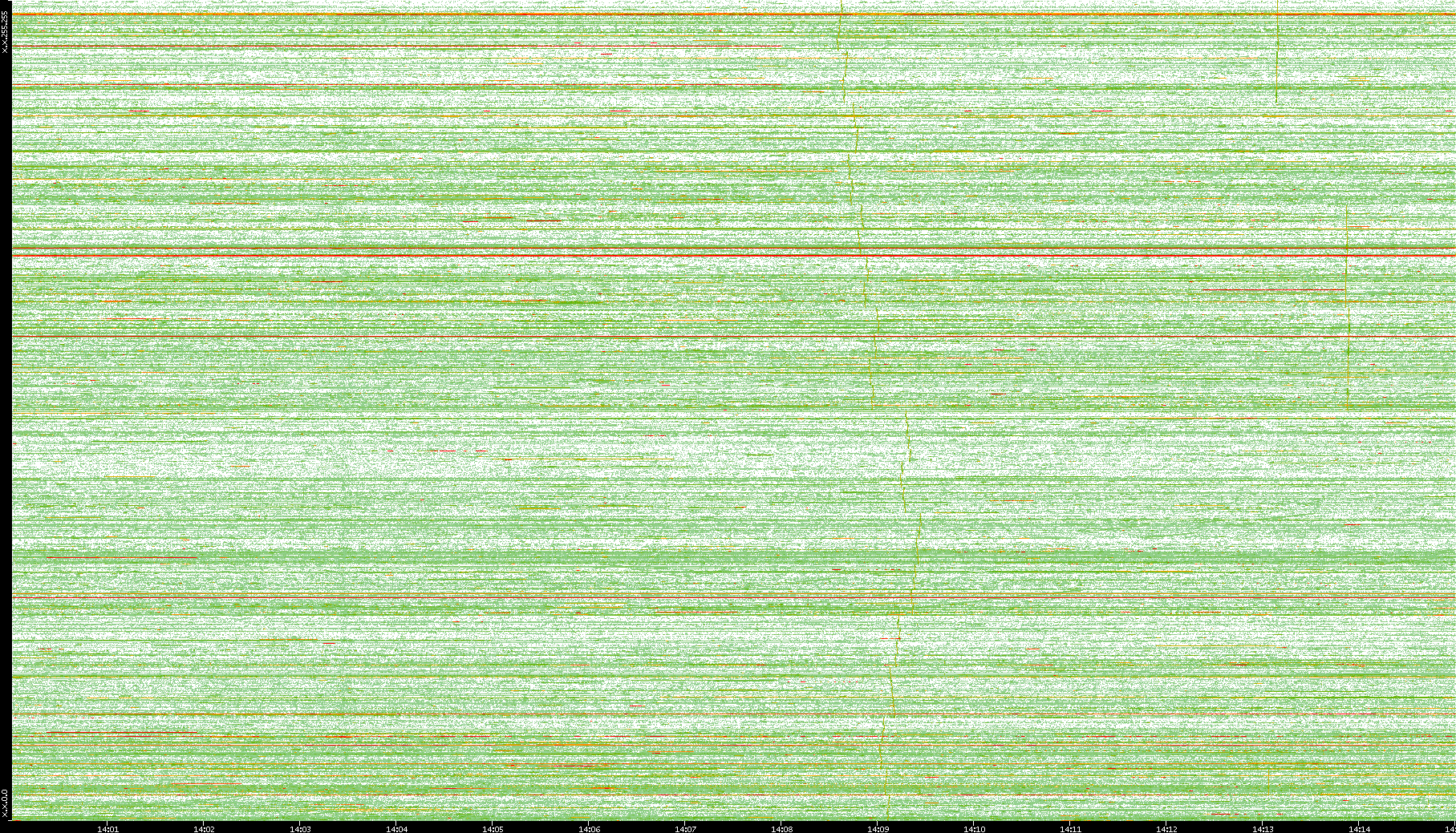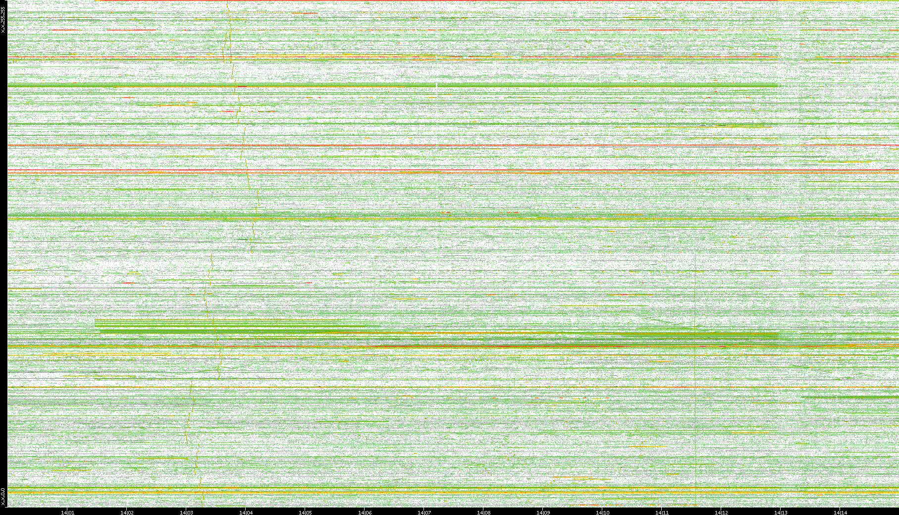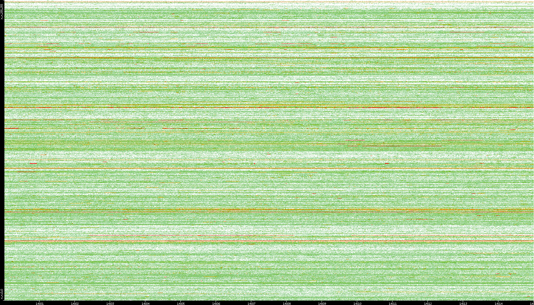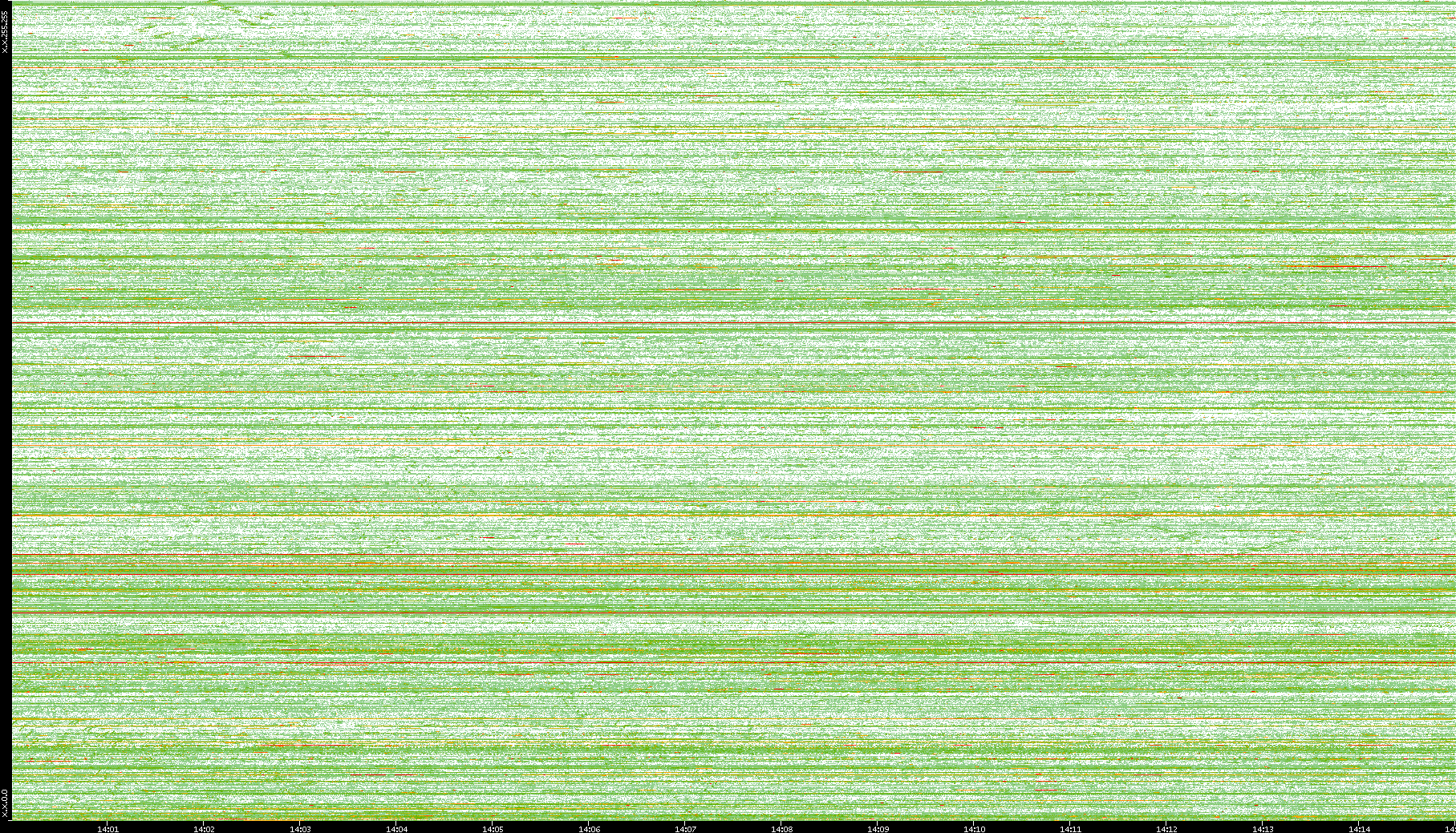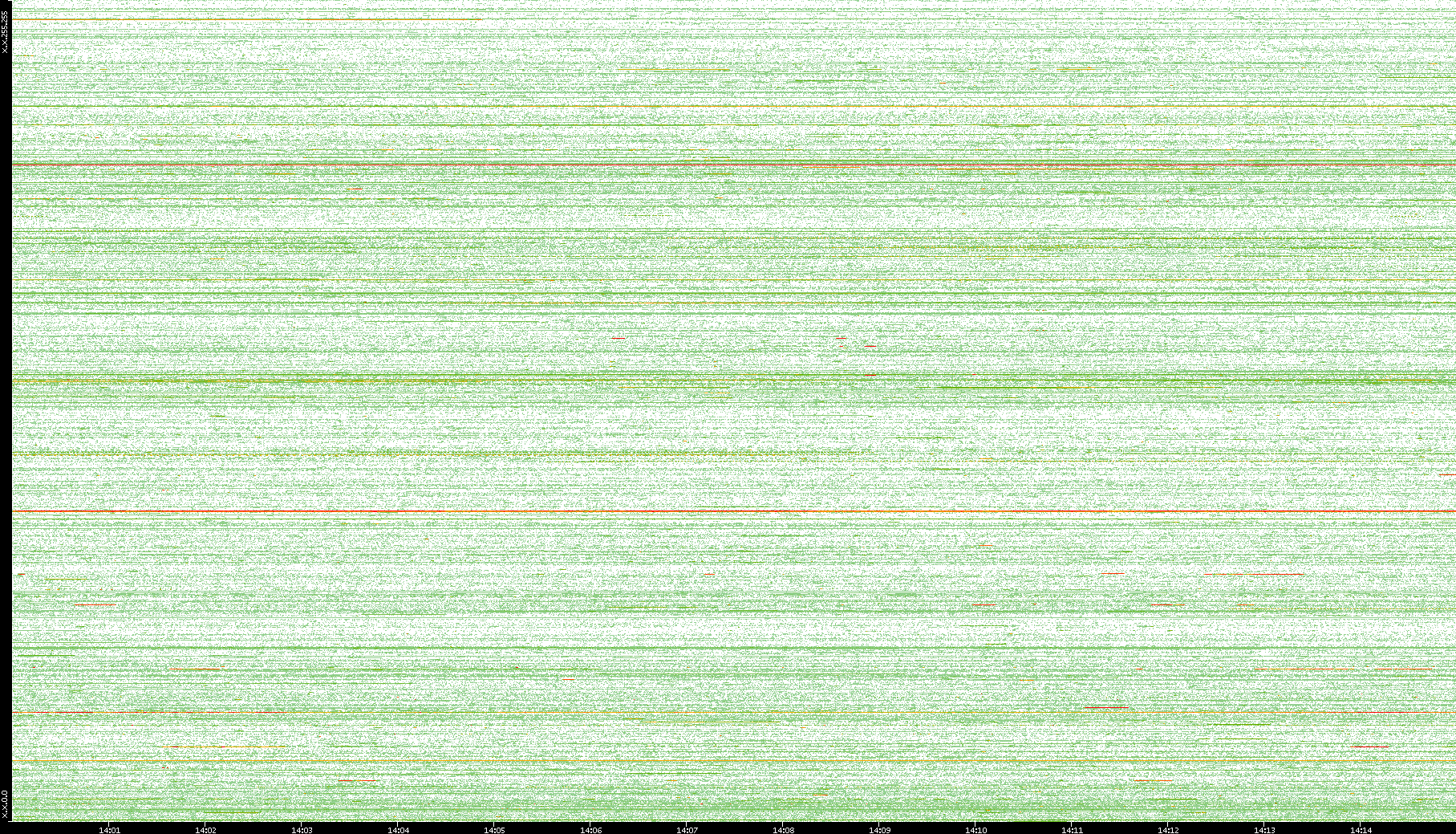 | Date | Dest. IP vs. Time | Dest. Port vs. Time | Src. IP vs. Time | Src. Port vs. Time | Nb. of Packets vs. Time | Throughput vs. Time | Average Packet Size vs. Time | Entropy of Port vs. Time |