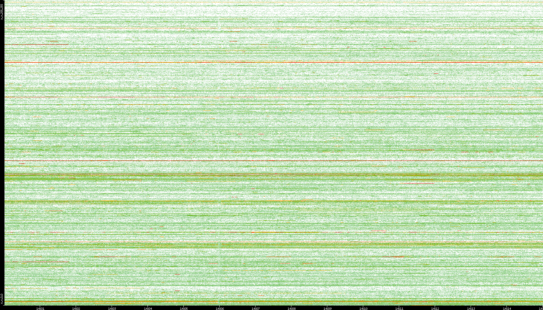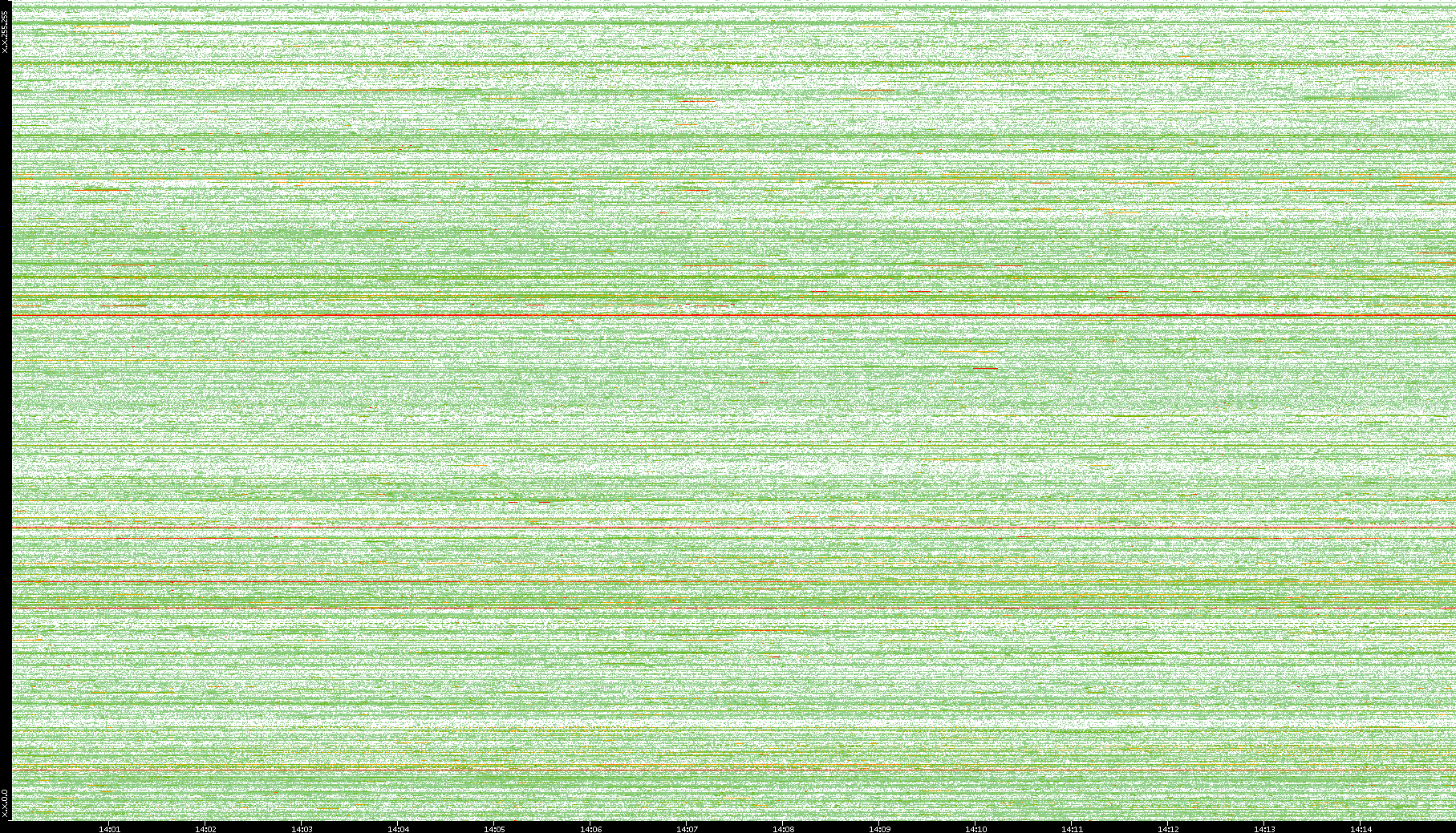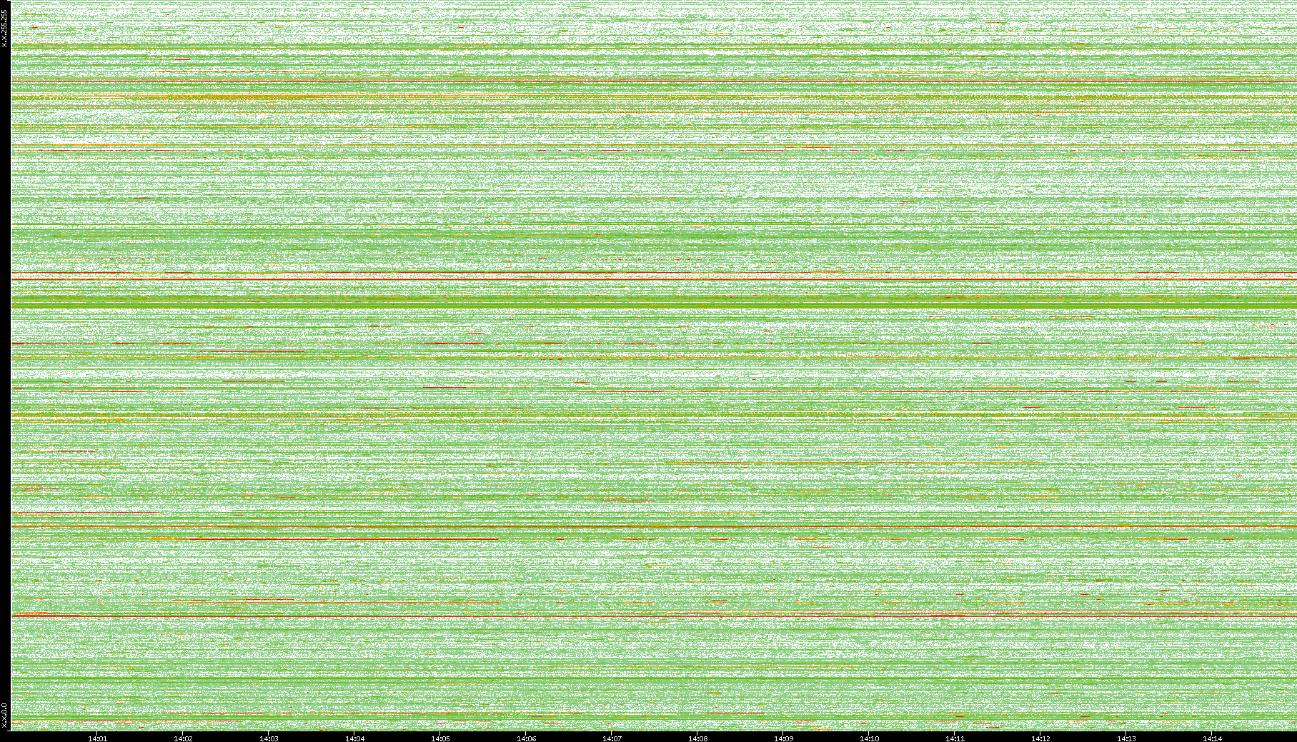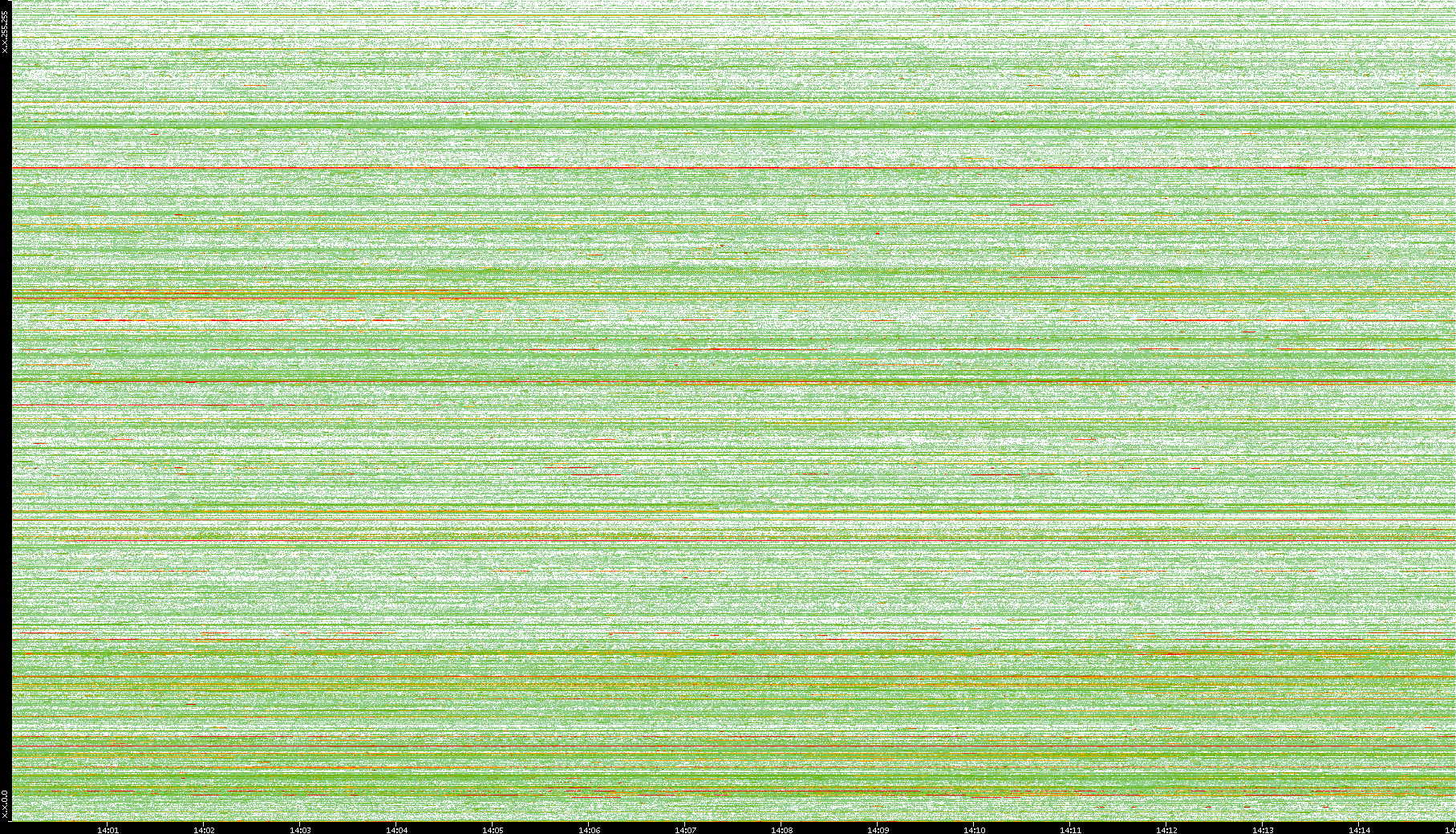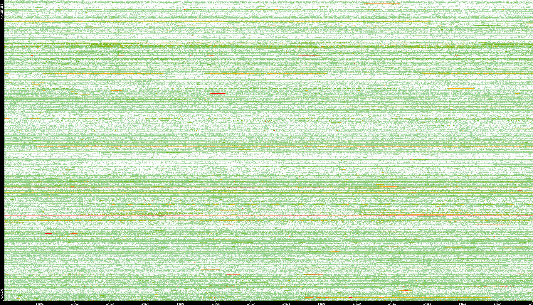 | Date | Dest. IP vs. Time | Dest. Port vs. Time | Src. IP vs. Time | Src. Port vs. Time | Nb. of Packets vs. Time | Throughput vs. Time | Average Packet Size vs. Time | Entropy of Port vs. Time |