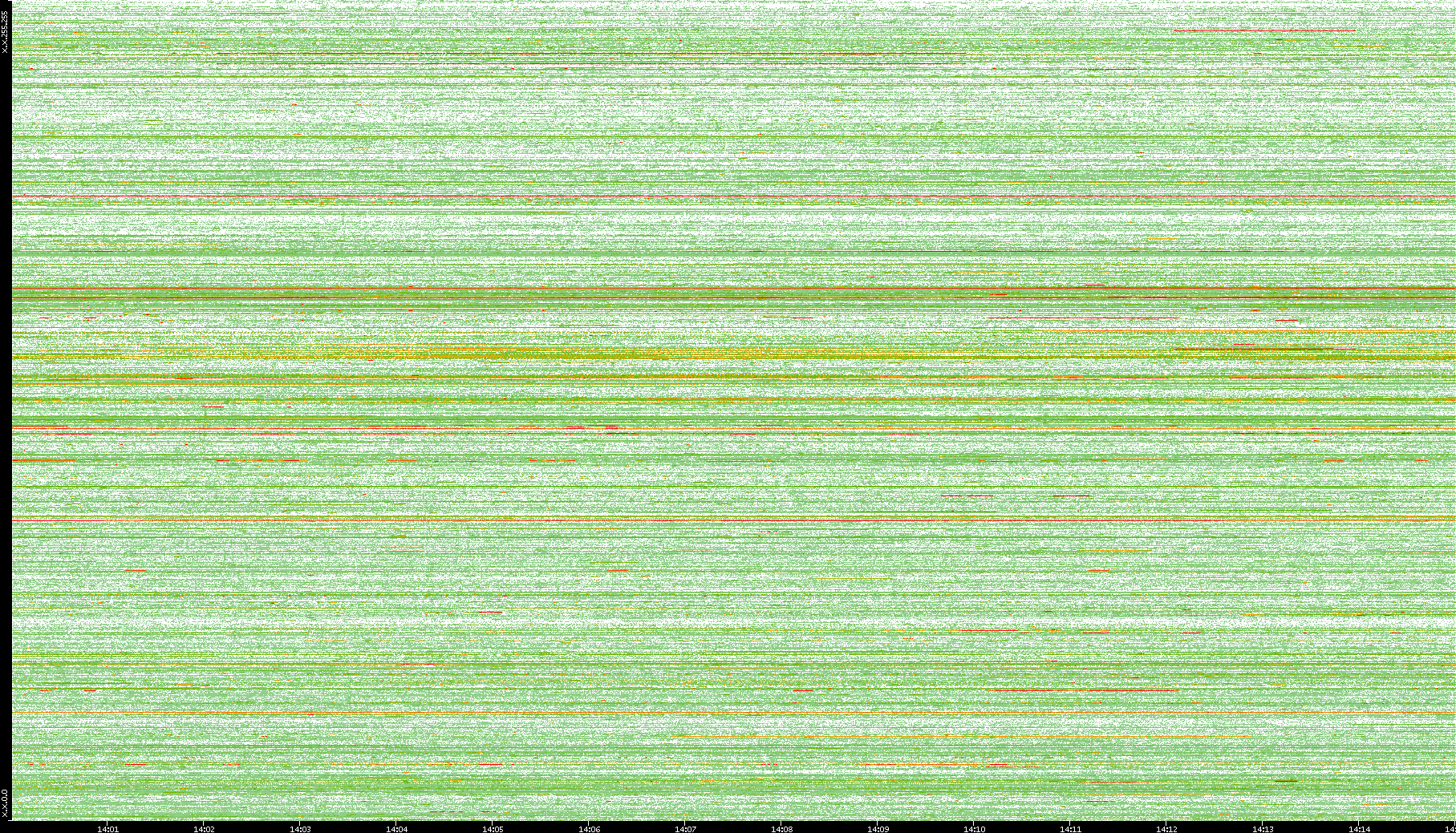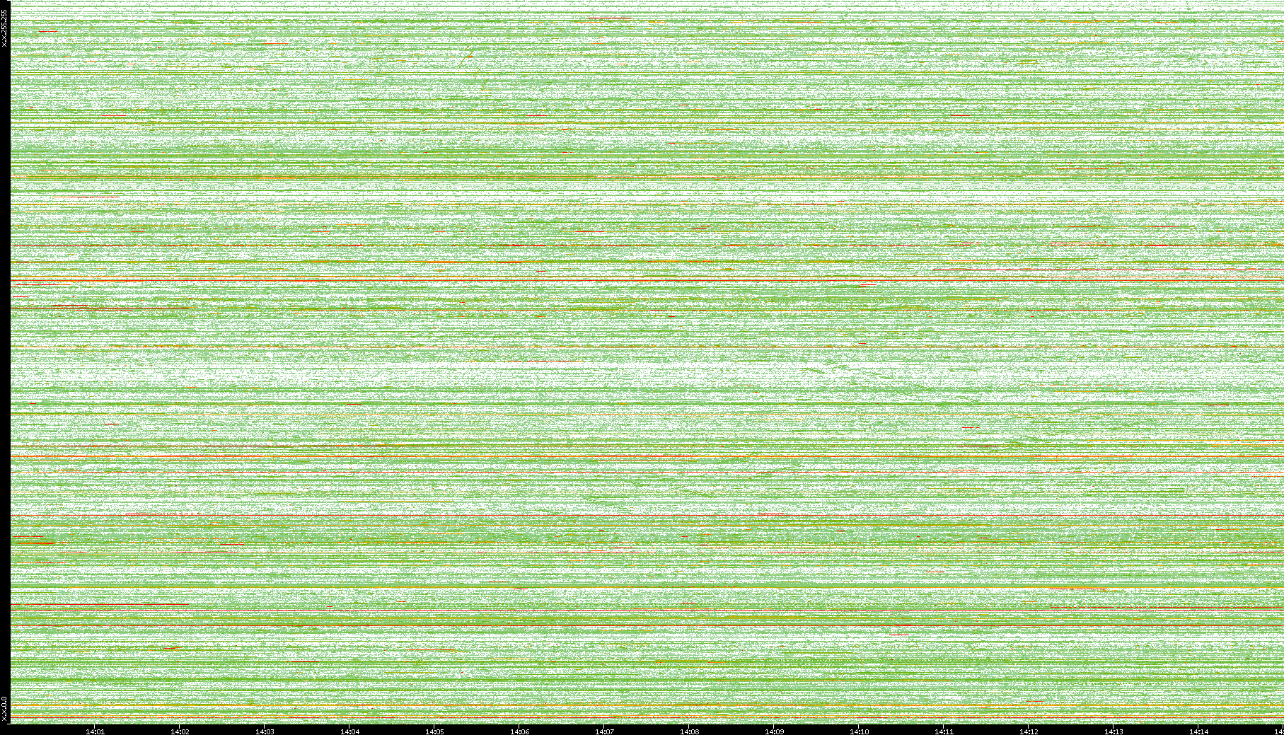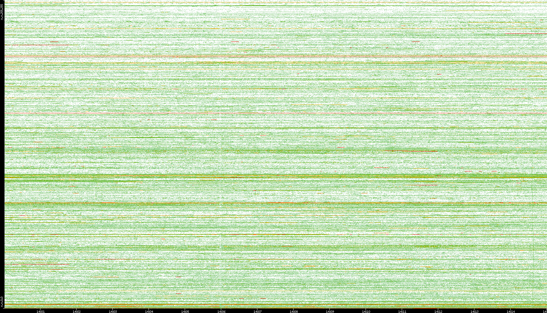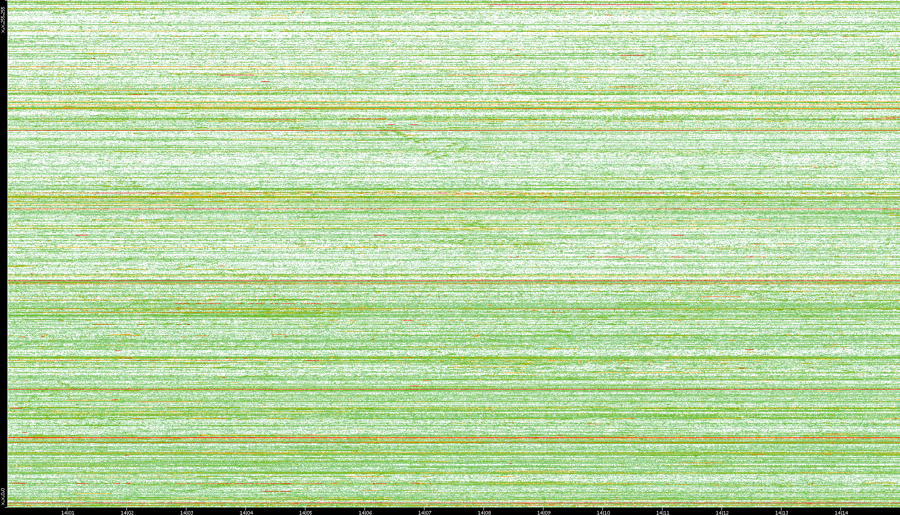 | Date | Dest. IP vs. Time | Dest. Port vs. Time | Src. IP vs. Time | Src. Port vs. Time | Nb. of Packets vs. Time | Throughput vs. Time | Average Packet Size vs. Time | Entropy of Port vs. Time |