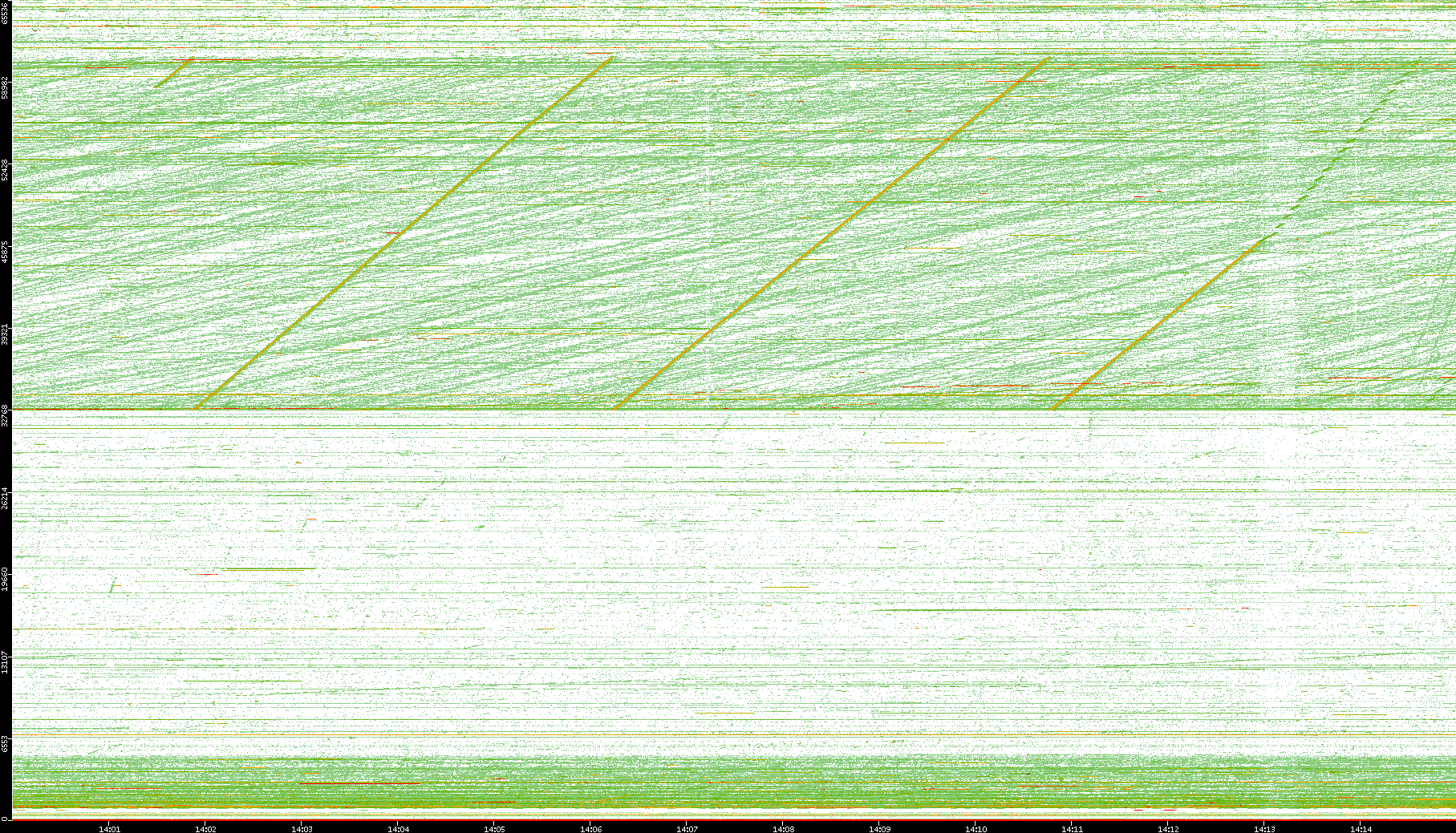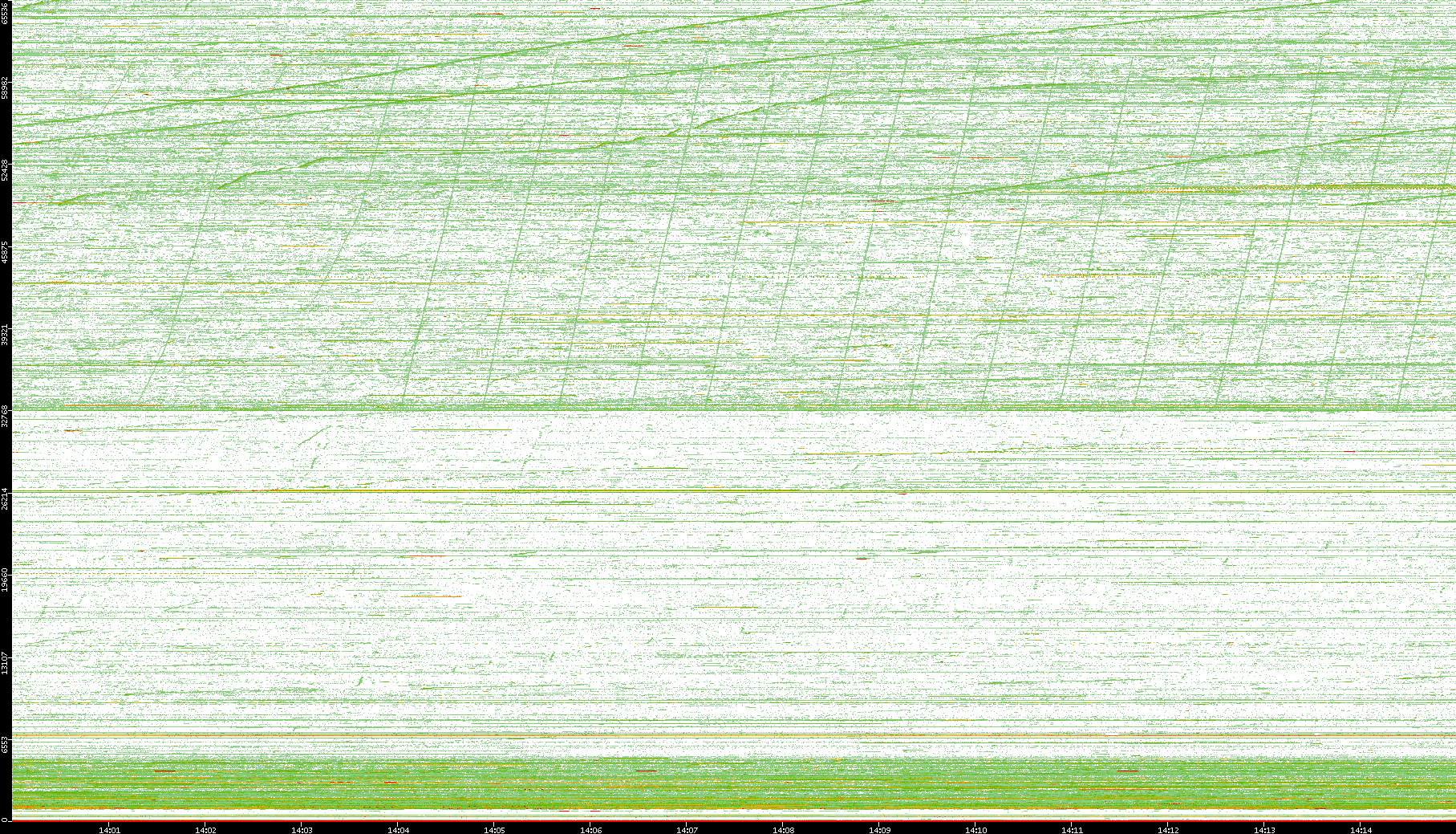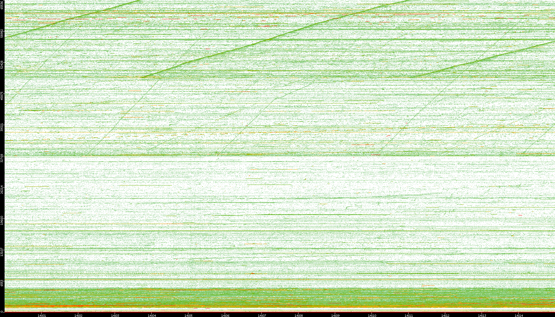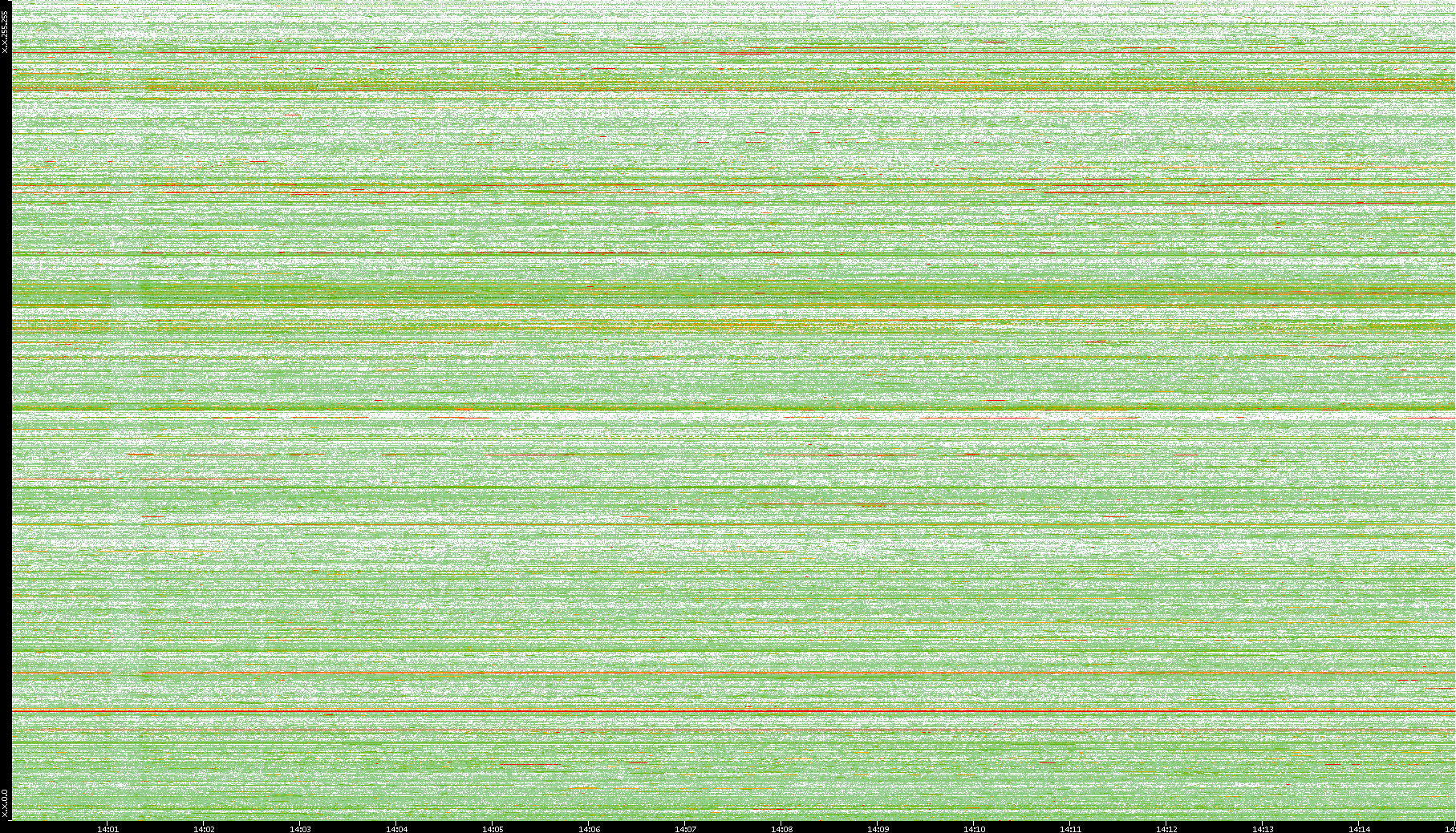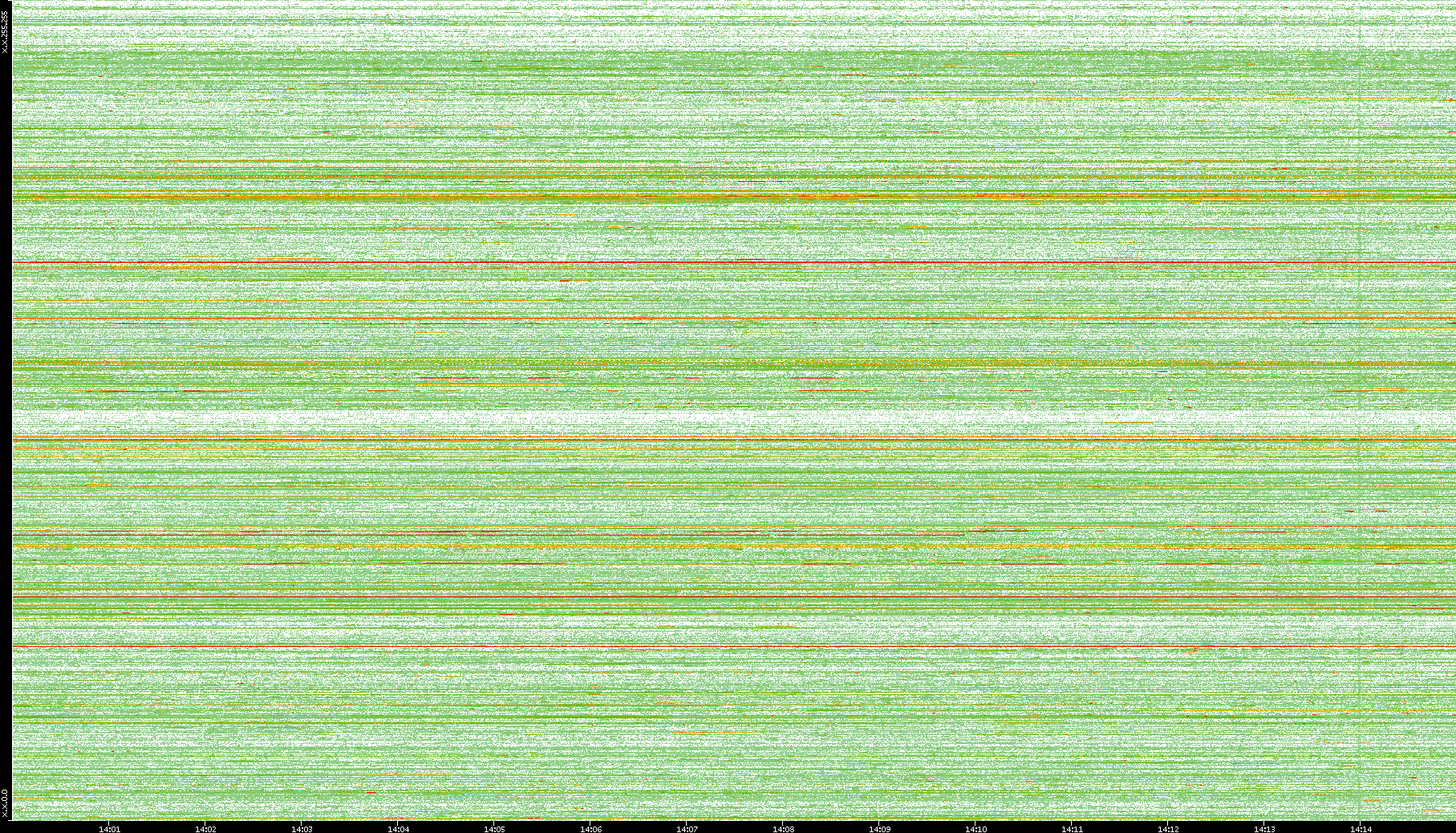 | Date | Dest. IP vs. Time | Dest. Port vs. Time | Src. IP vs. Time | Src. Port vs. Time | Nb. of Packets vs. Time | Throughput vs. Time | Average Packet Size vs. Time | Entropy of Port vs. Time |