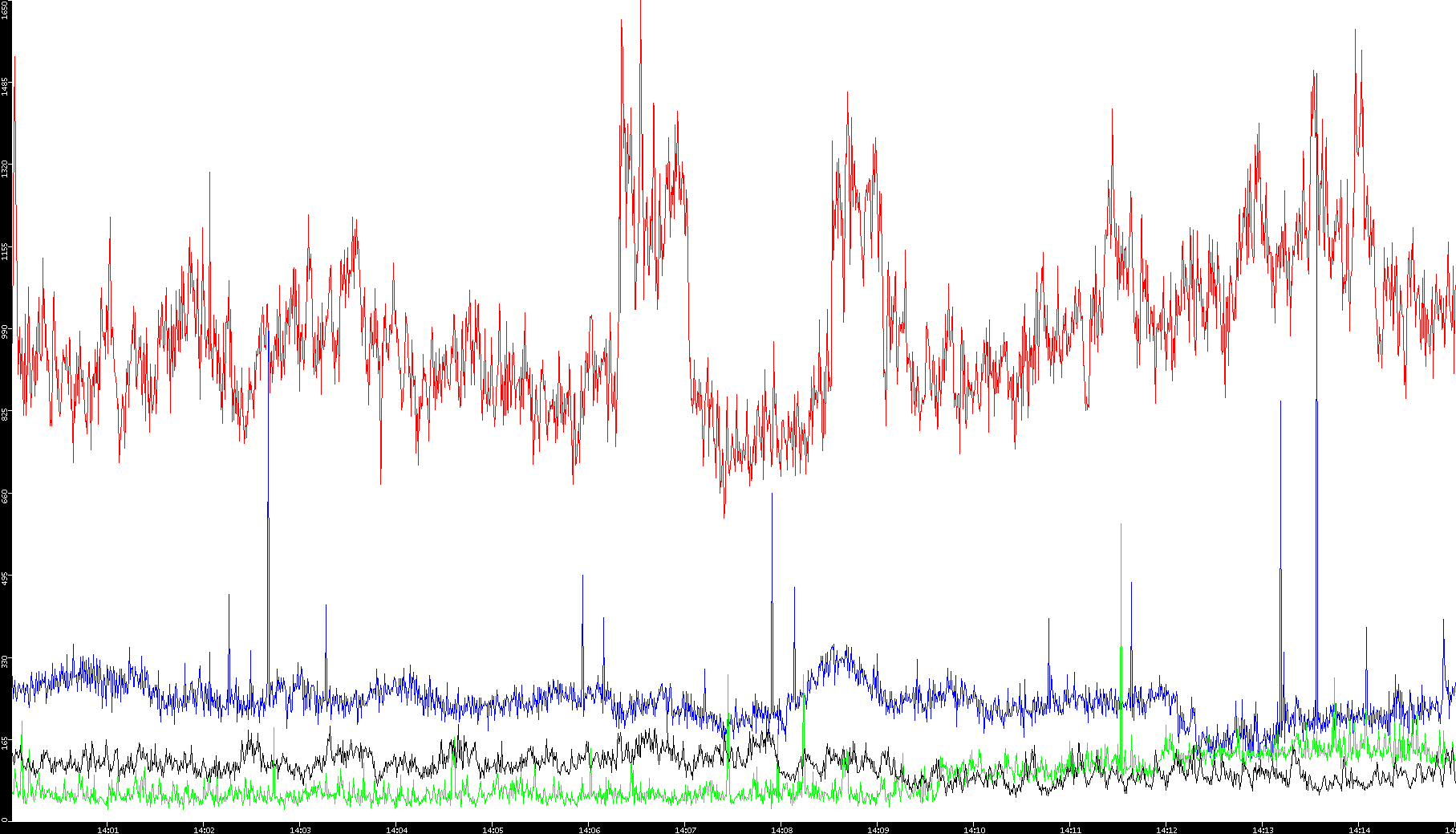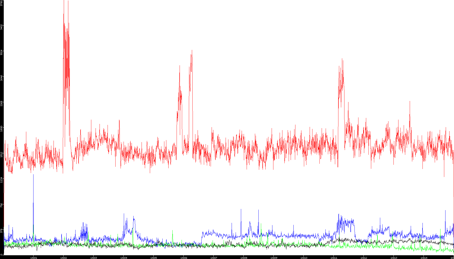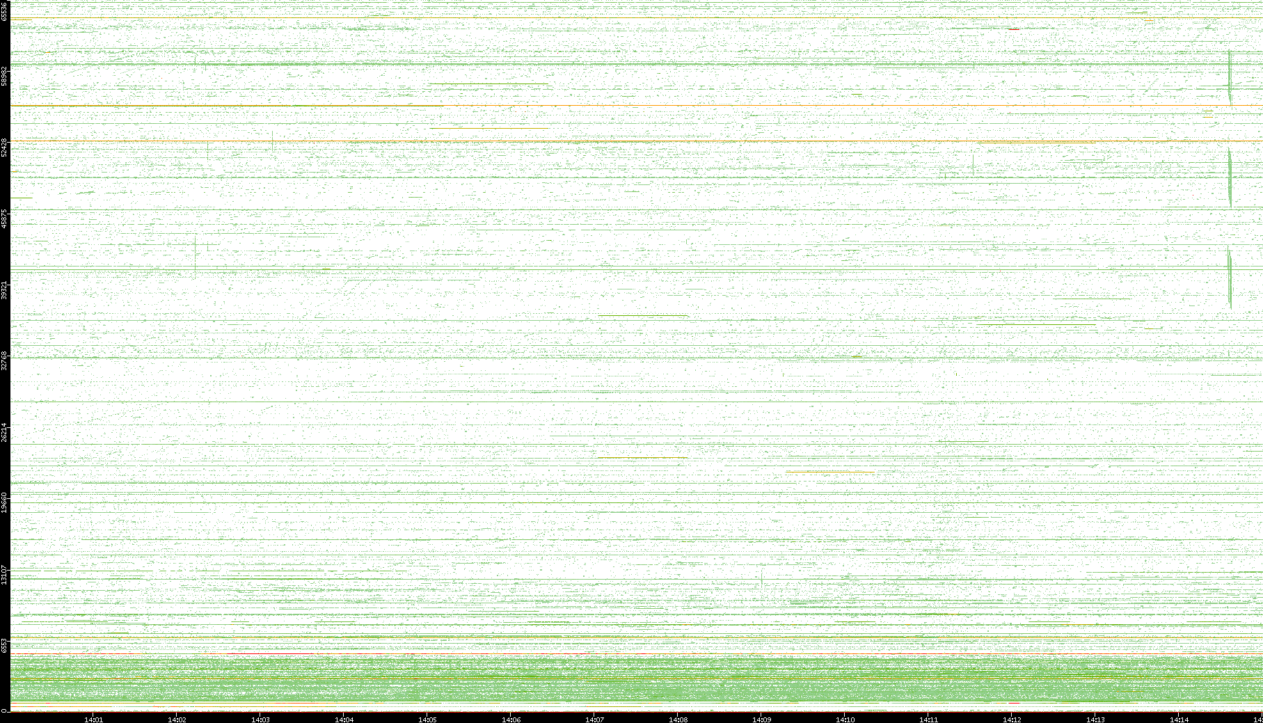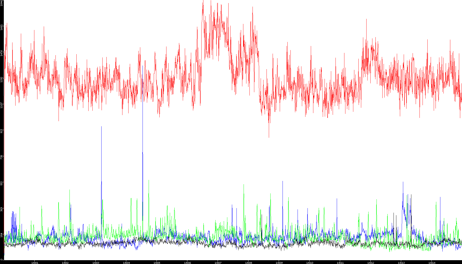 2006/12/14 Dest. IP vs. Time Dest. Port vs. Time Src. IP vs. Time Src. Port vs. Time Nb. of Packets vs. Time Throughput vs. Time Average Packet Size vs. Time Entropy of Port vs. Time