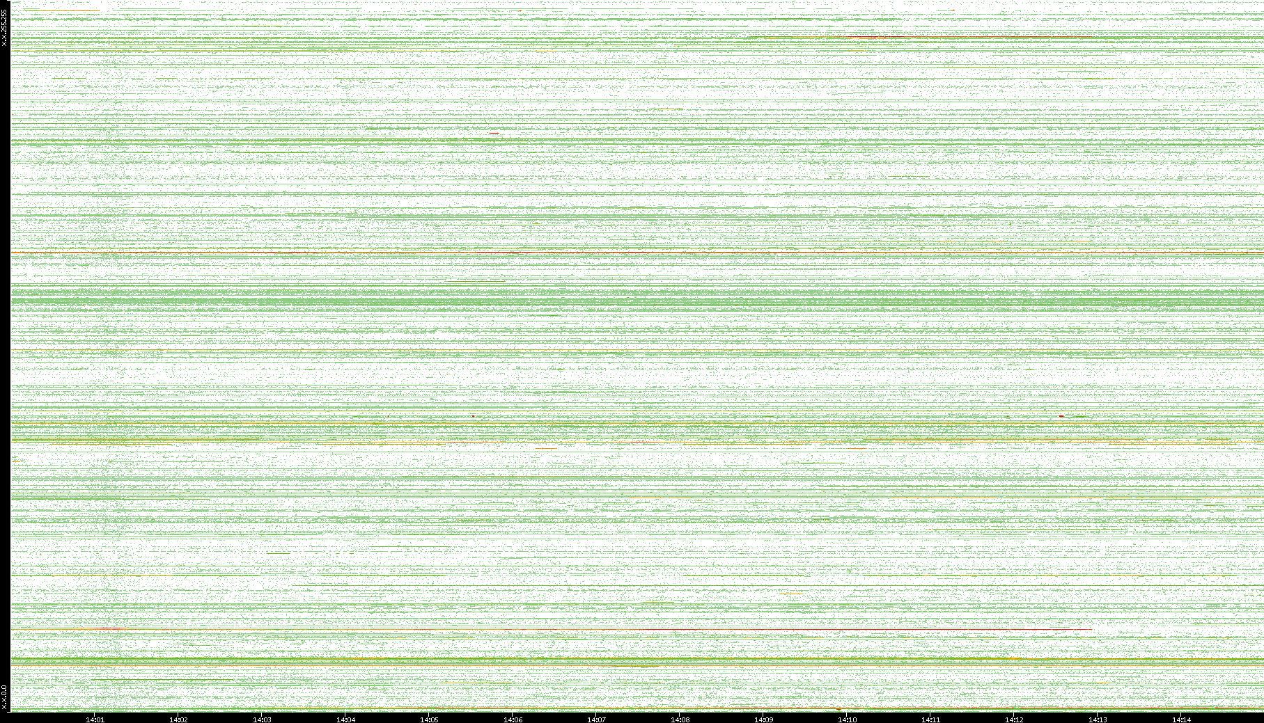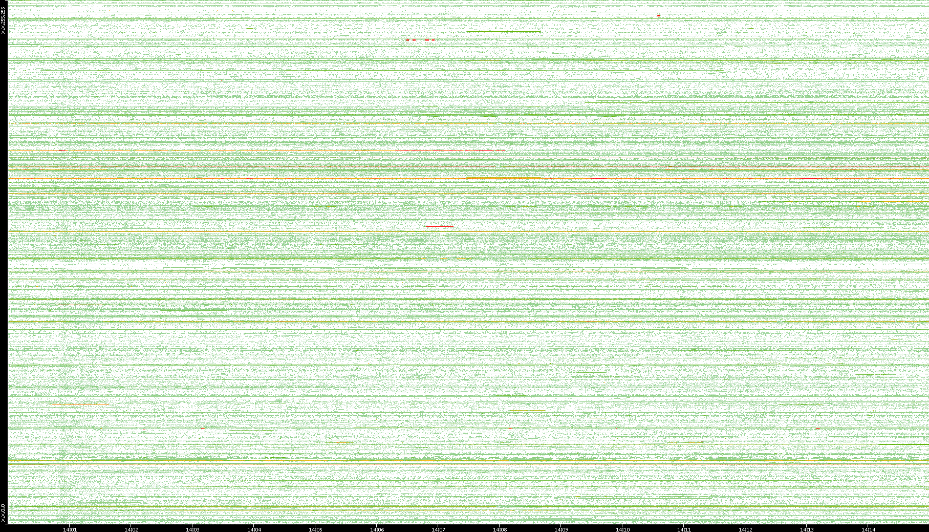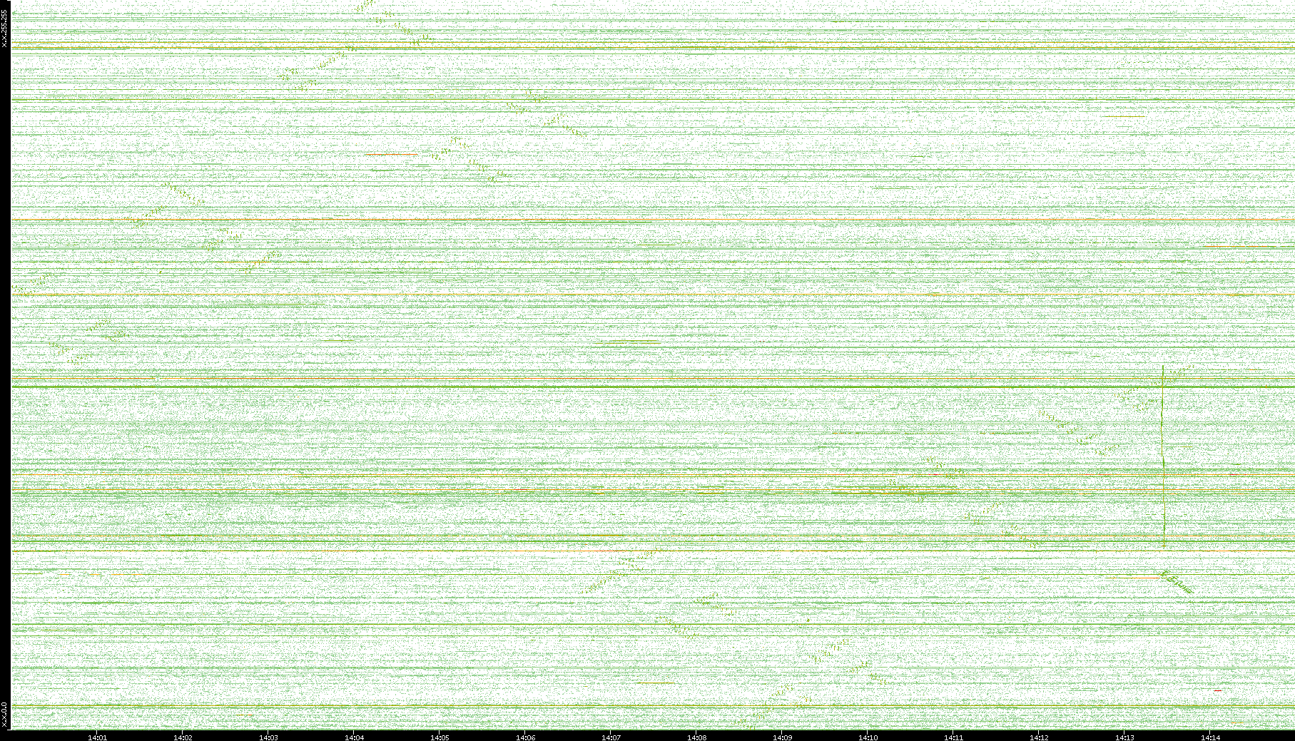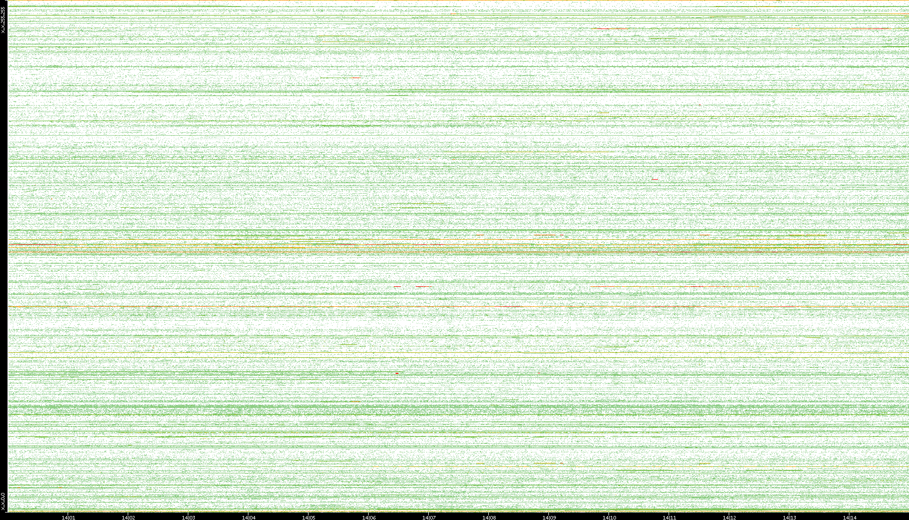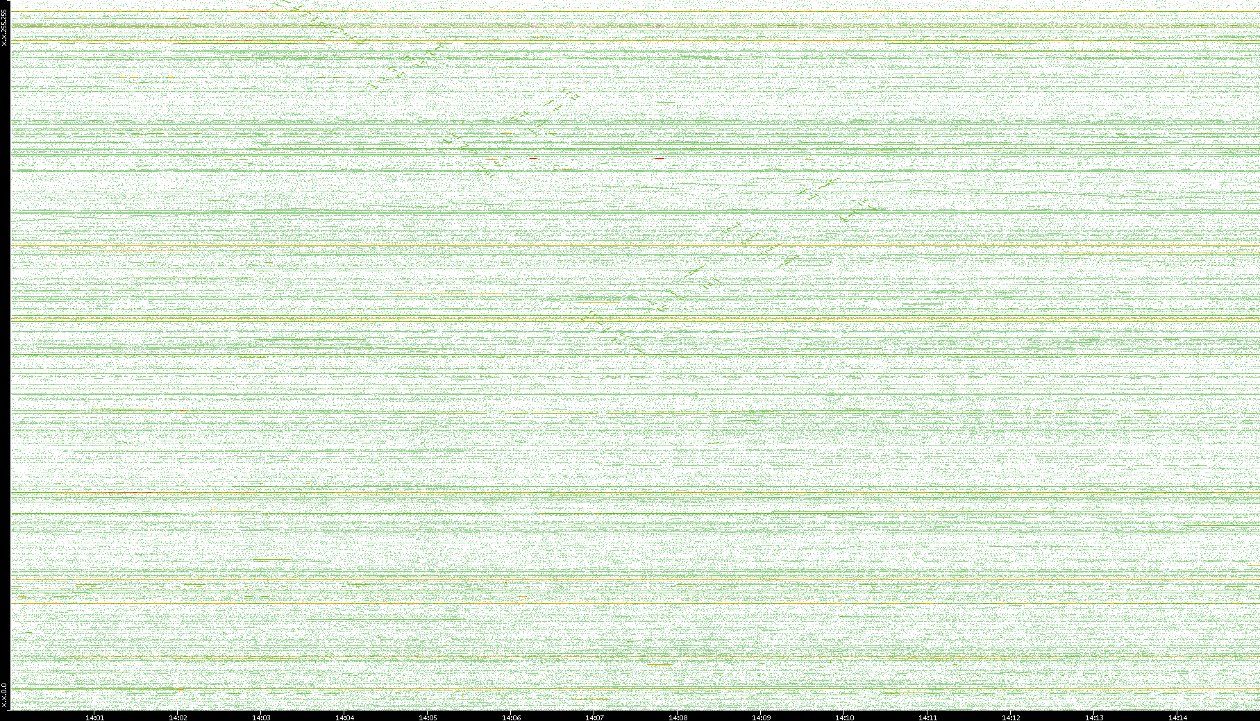 | Date | Dest. IP vs. Time | Dest. Port vs. Time | Src. IP vs. Time | Src. Port vs. Time | Nb. of Packets vs. Time | Throughput vs. Time | Average Packet Size vs. Time | Entropy of Port vs. Time |