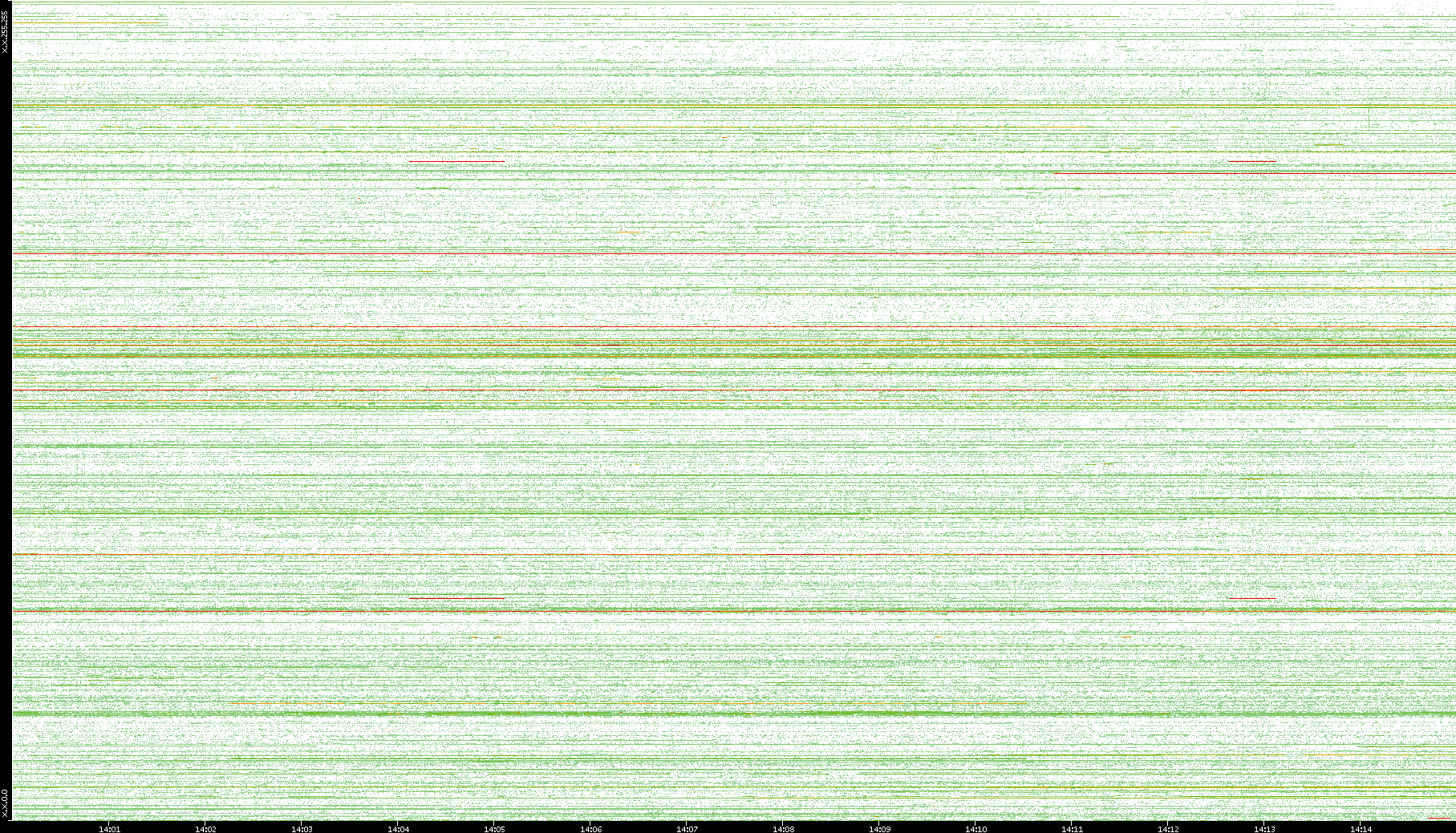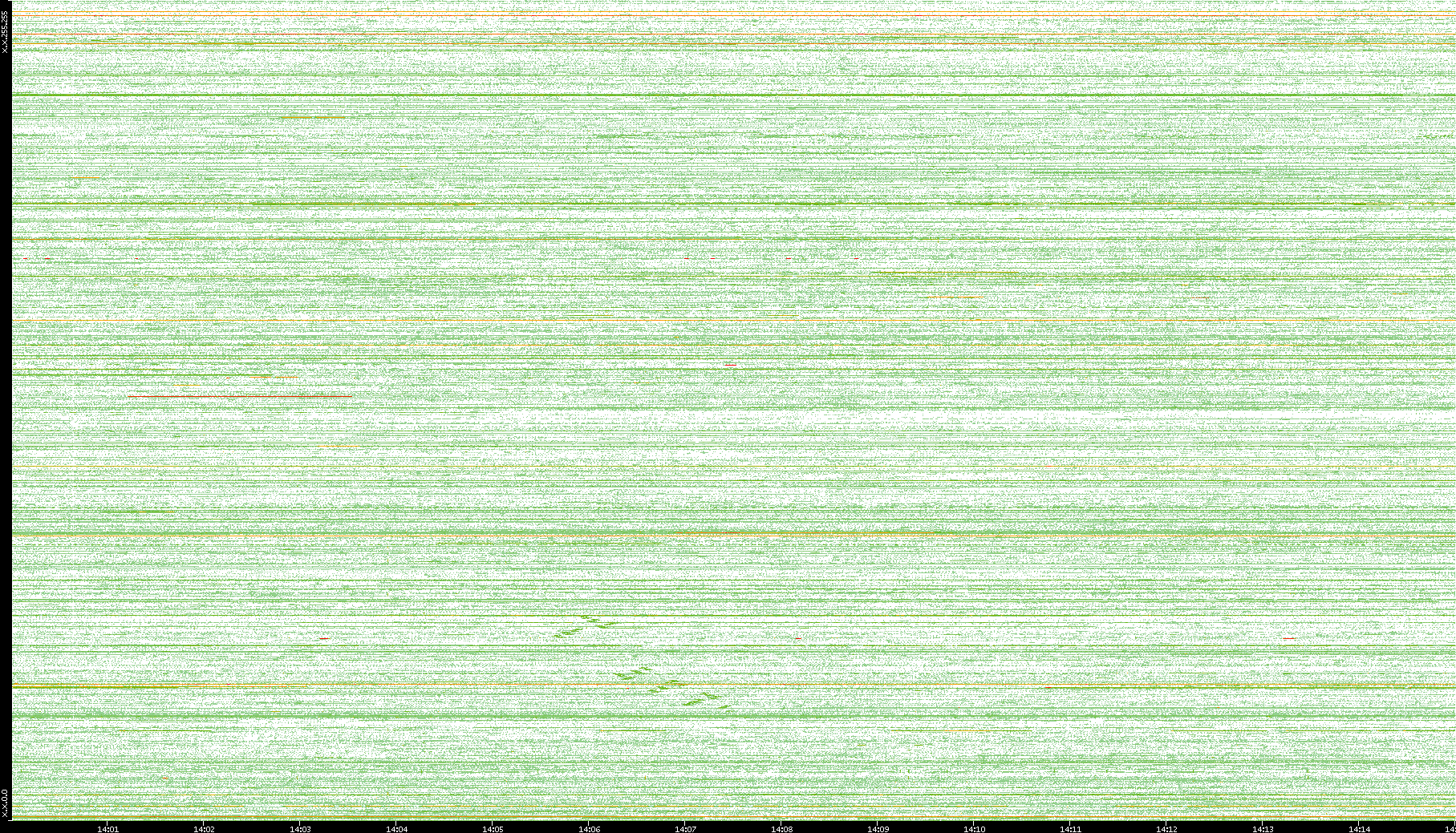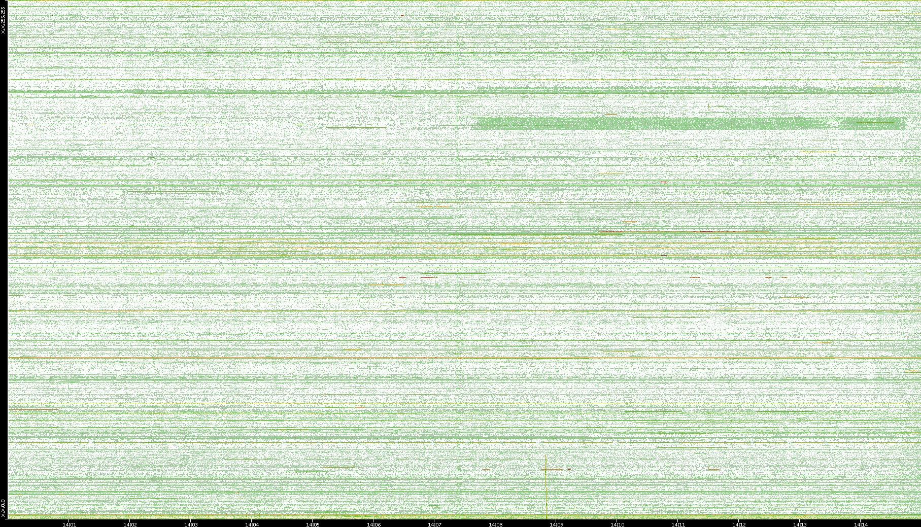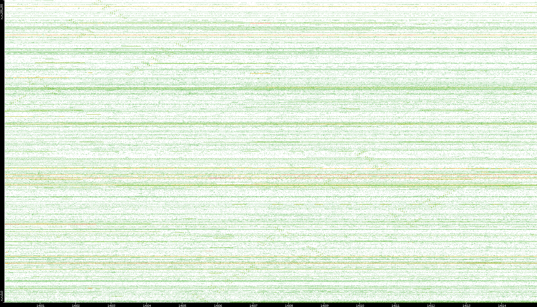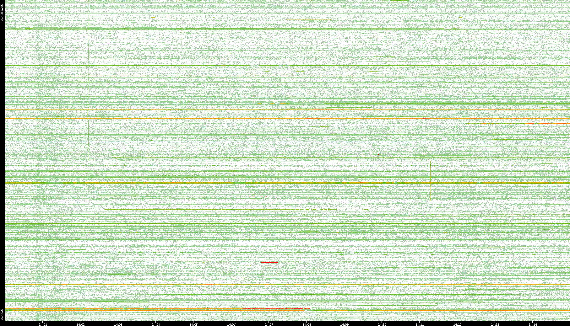 | Date | Dest. IP vs. Time | Dest. Port vs. Time | Src. IP vs. Time | Src. Port vs. Time | Nb. of Packets vs. Time | Throughput vs. Time | Average Packet Size vs. Time | Entropy of Port vs. Time |