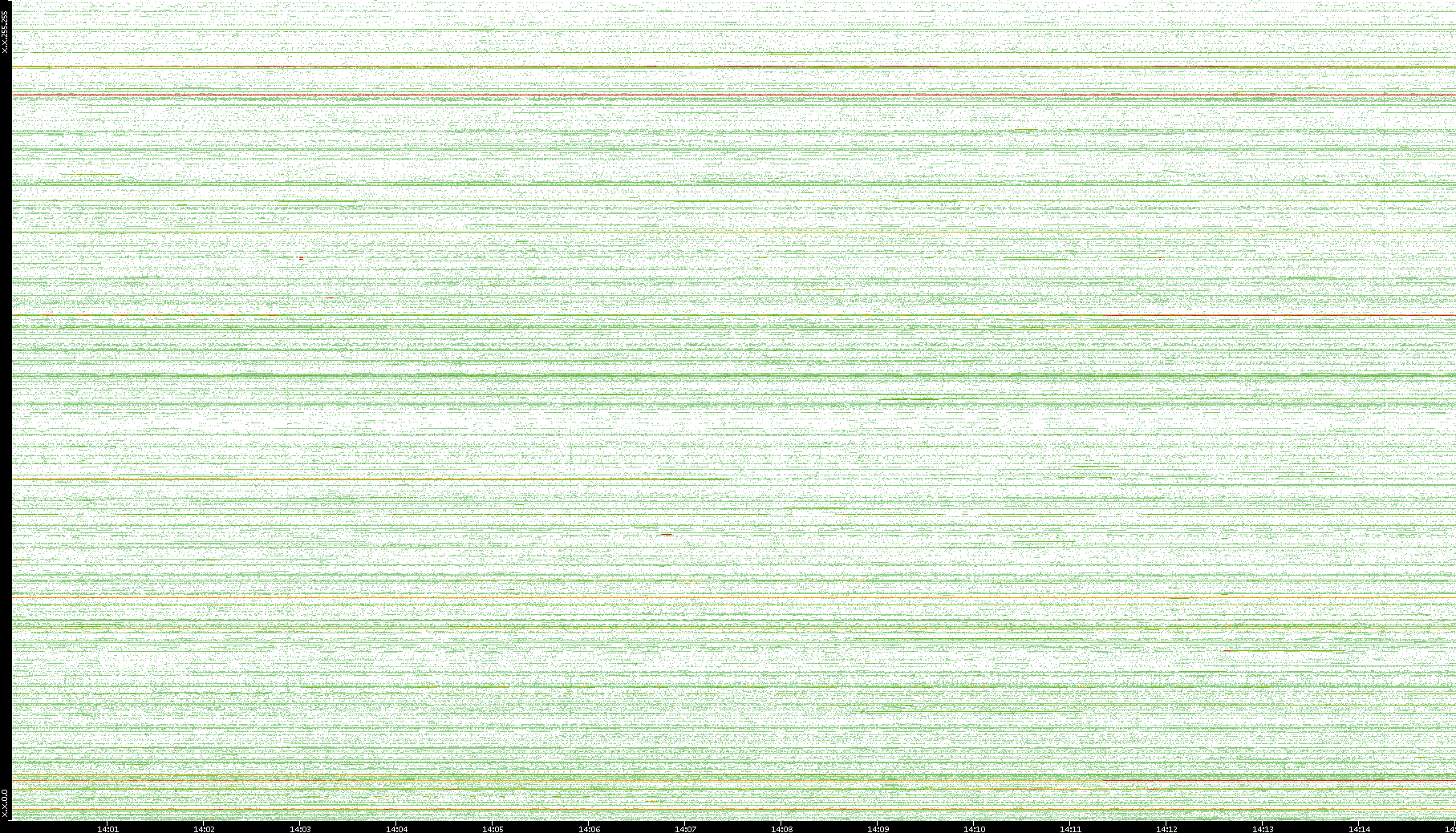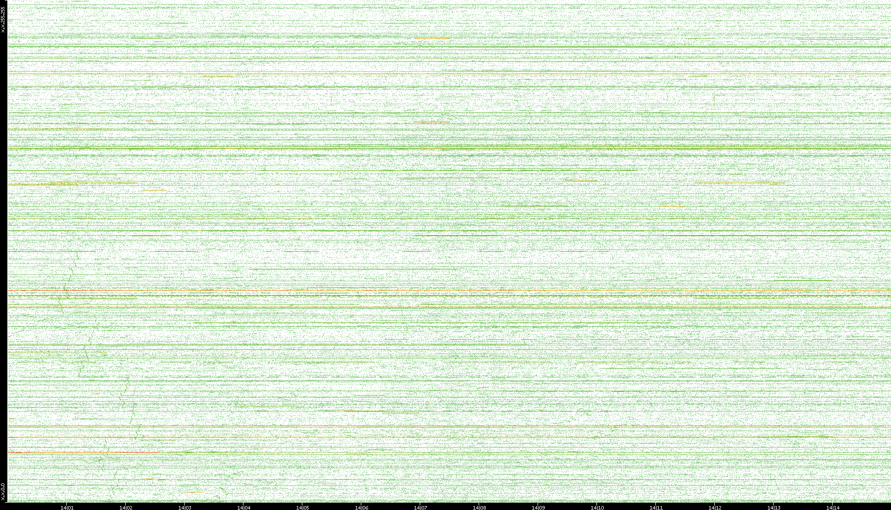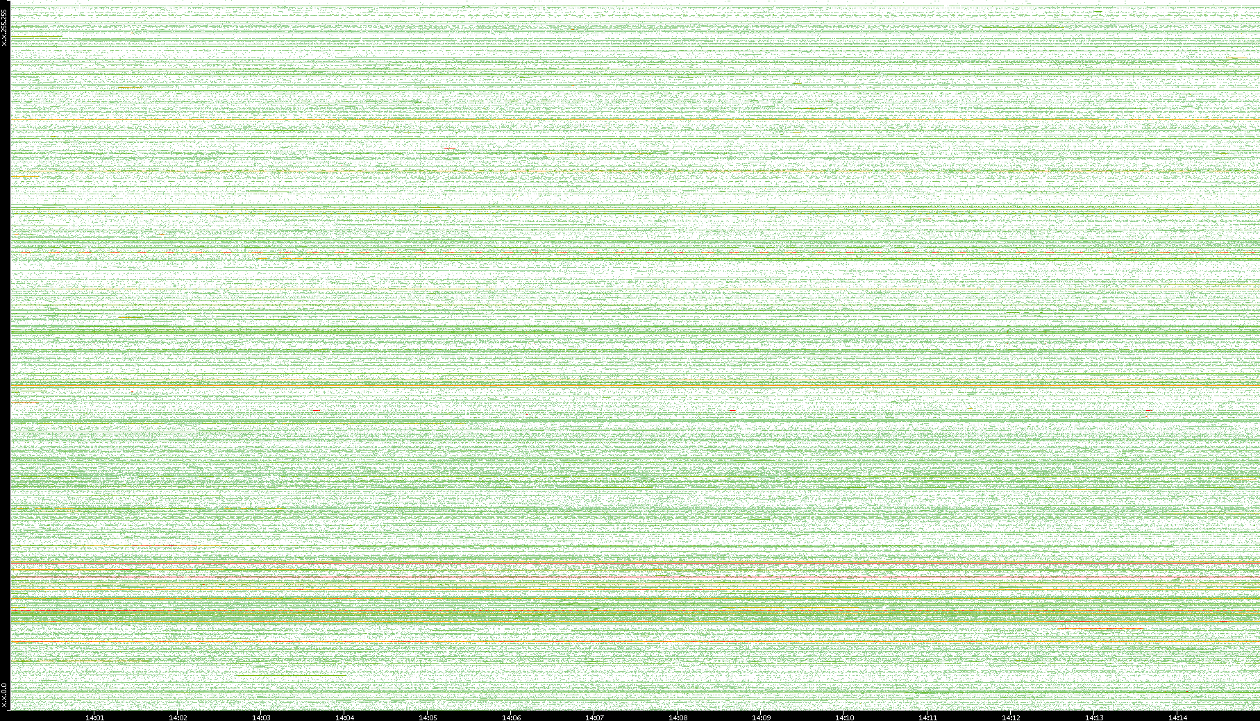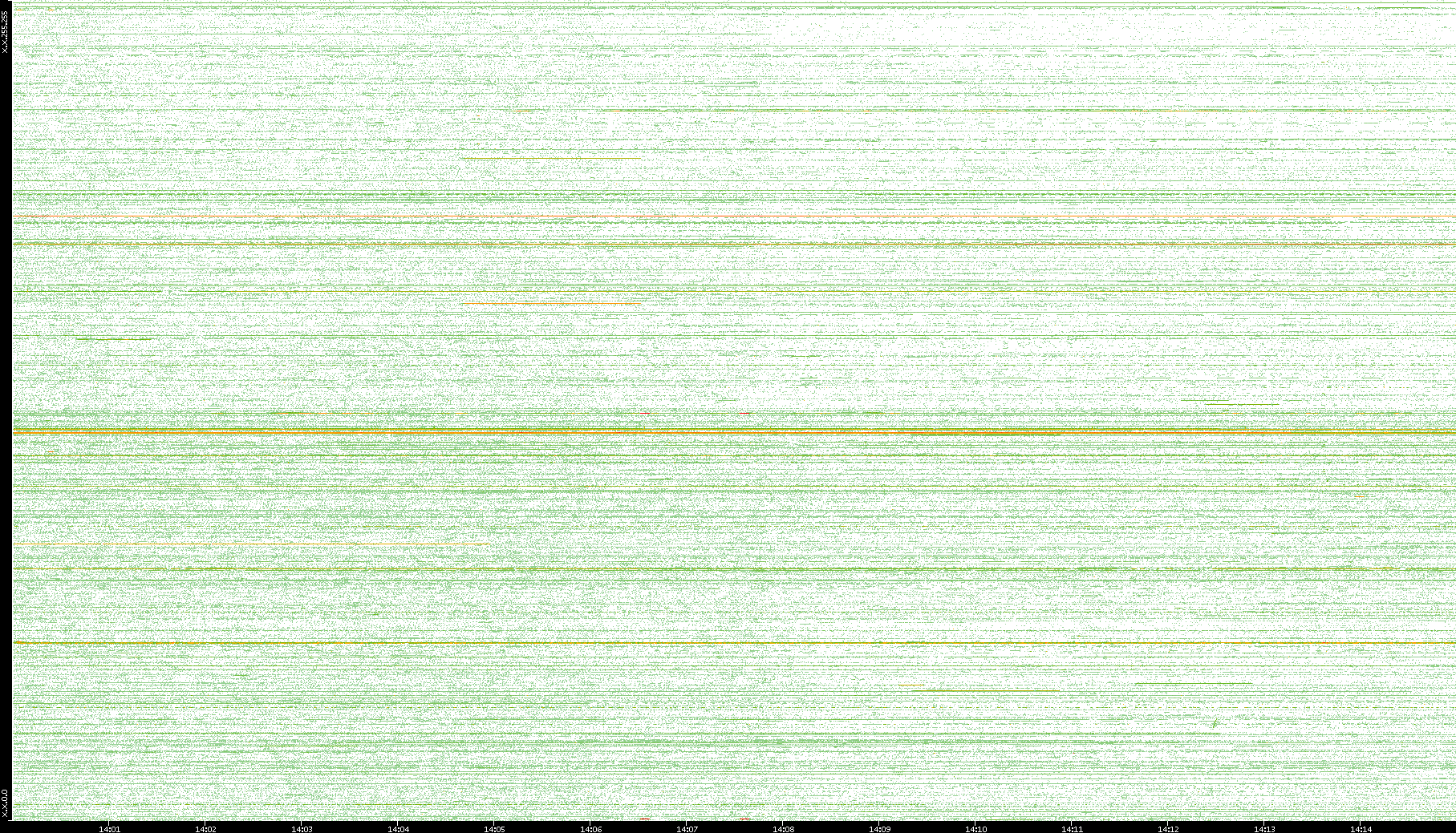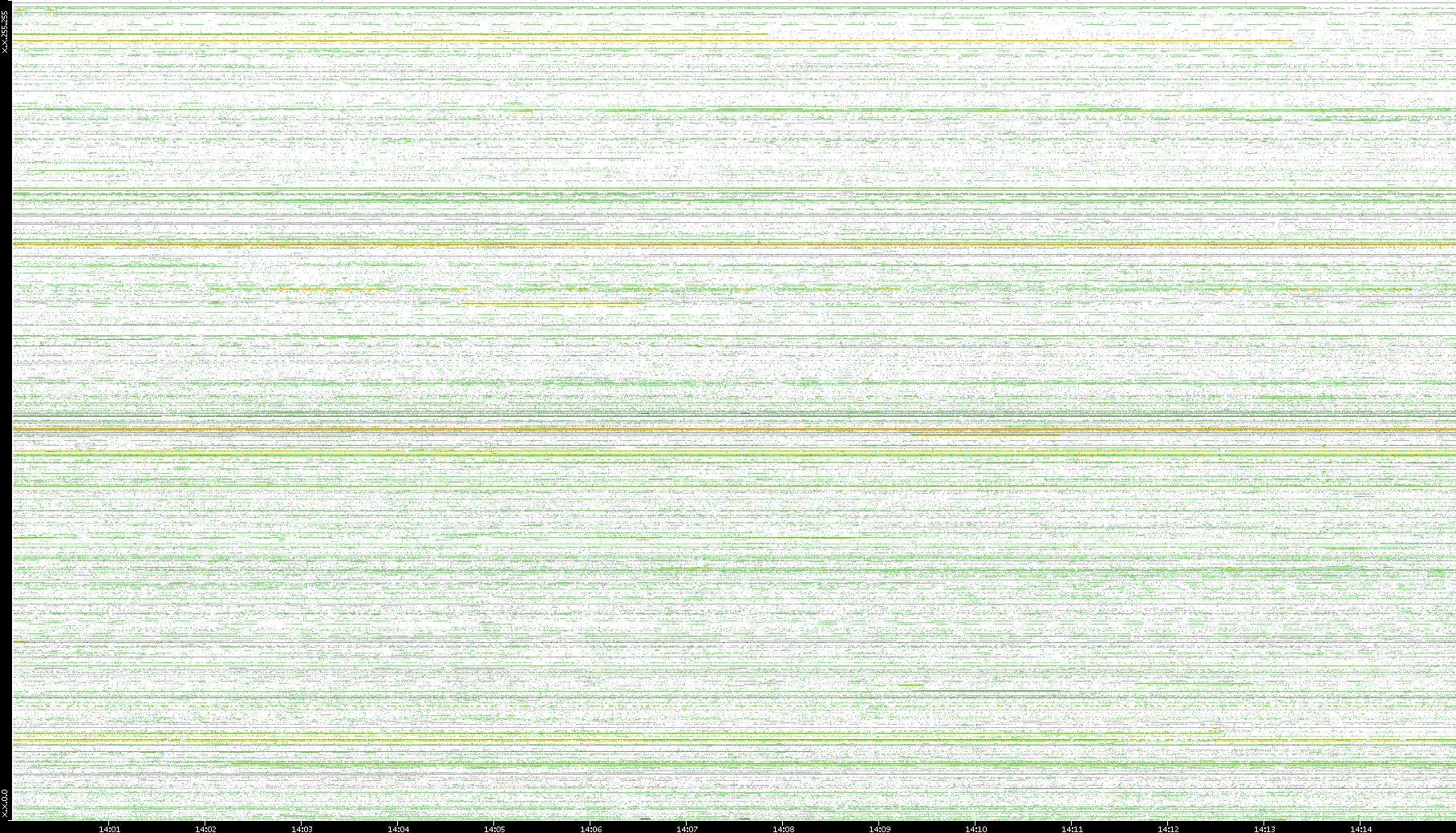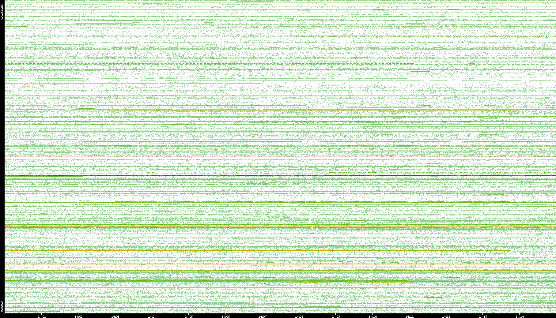 | Date | Dest. IP vs. Time | Dest. Port vs. Time | Src. IP vs. Time | Src. Port vs. Time | Nb. of Packets vs. Time | Throughput vs. Time | Average Packet Size vs. Time | Entropy of Port vs. Time |