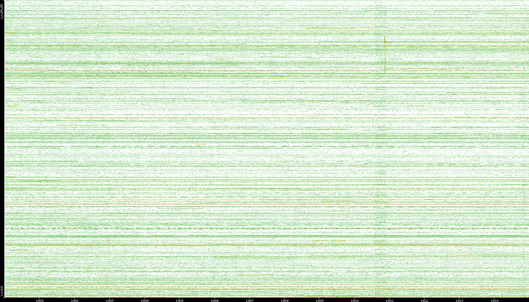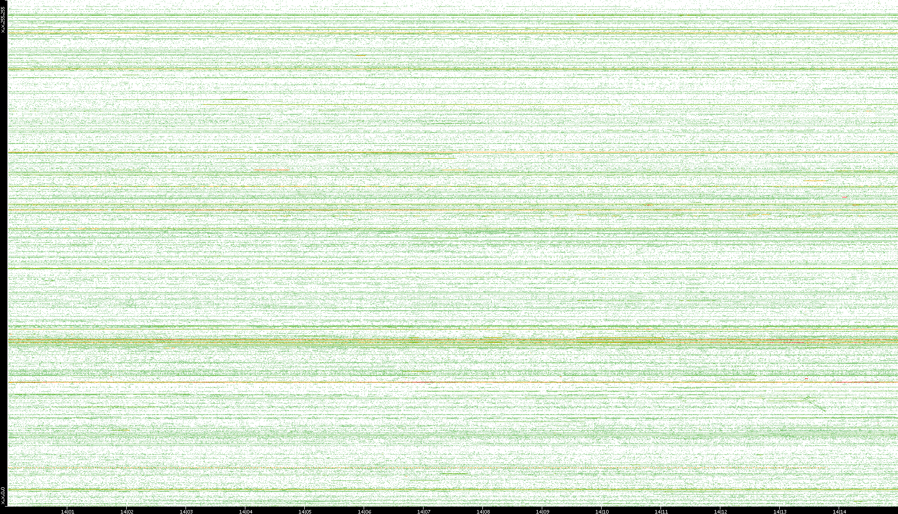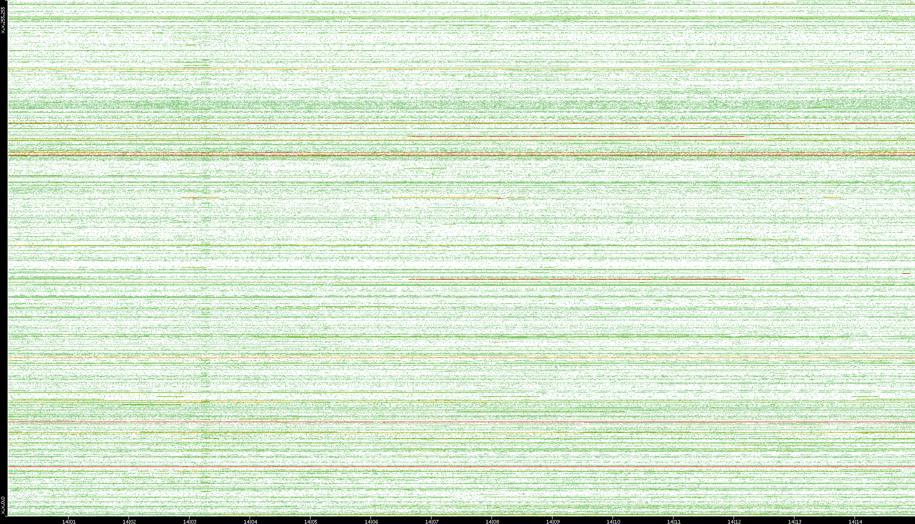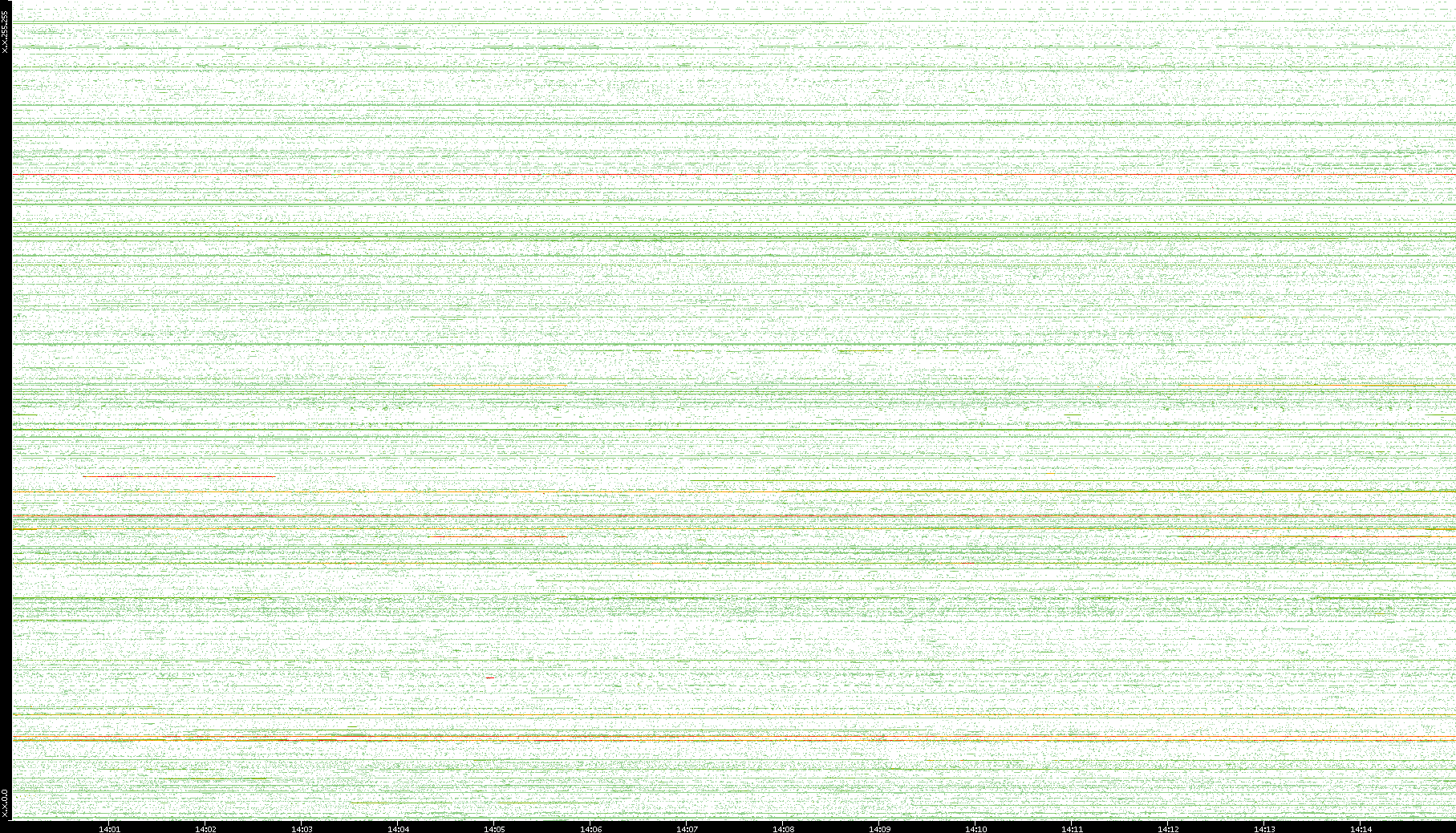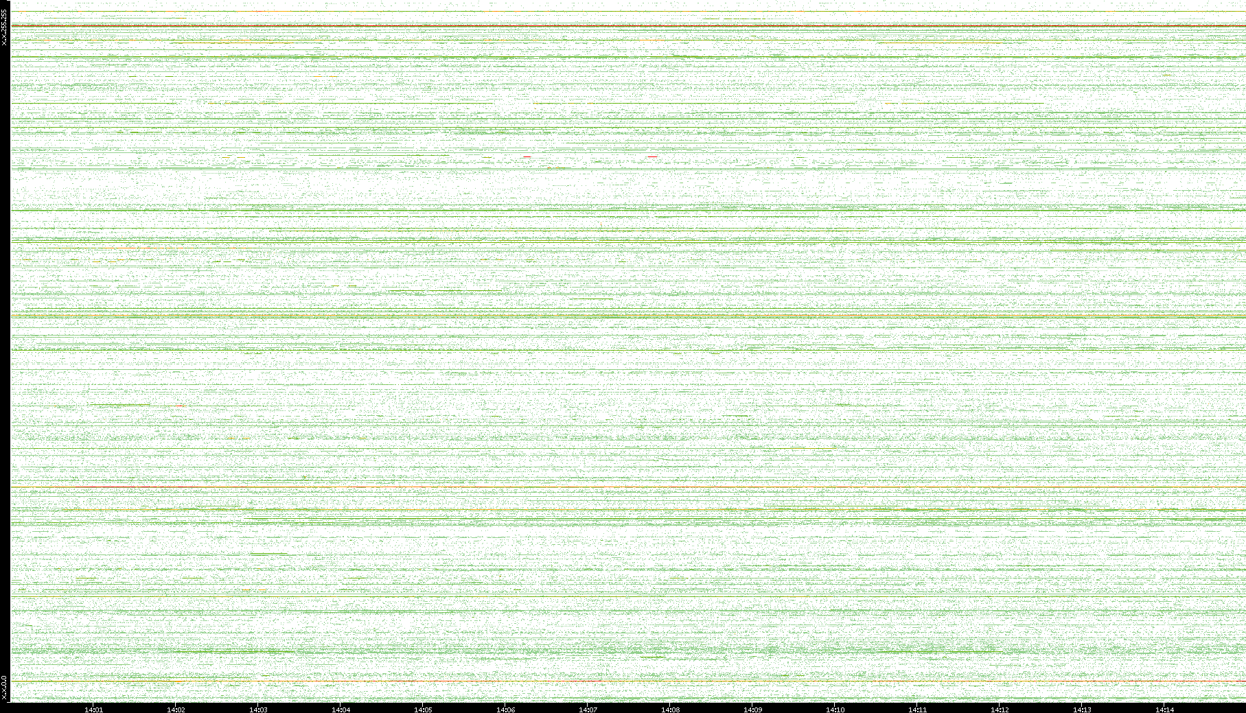 | Date | Dest. IP vs. Time | Dest. Port vs. Time | Src. IP vs. Time | Src. Port vs. Time | Nb. of Packets vs. Time | Throughput vs. Time | Average Packet Size vs. Time | Entropy of Port vs. Time |