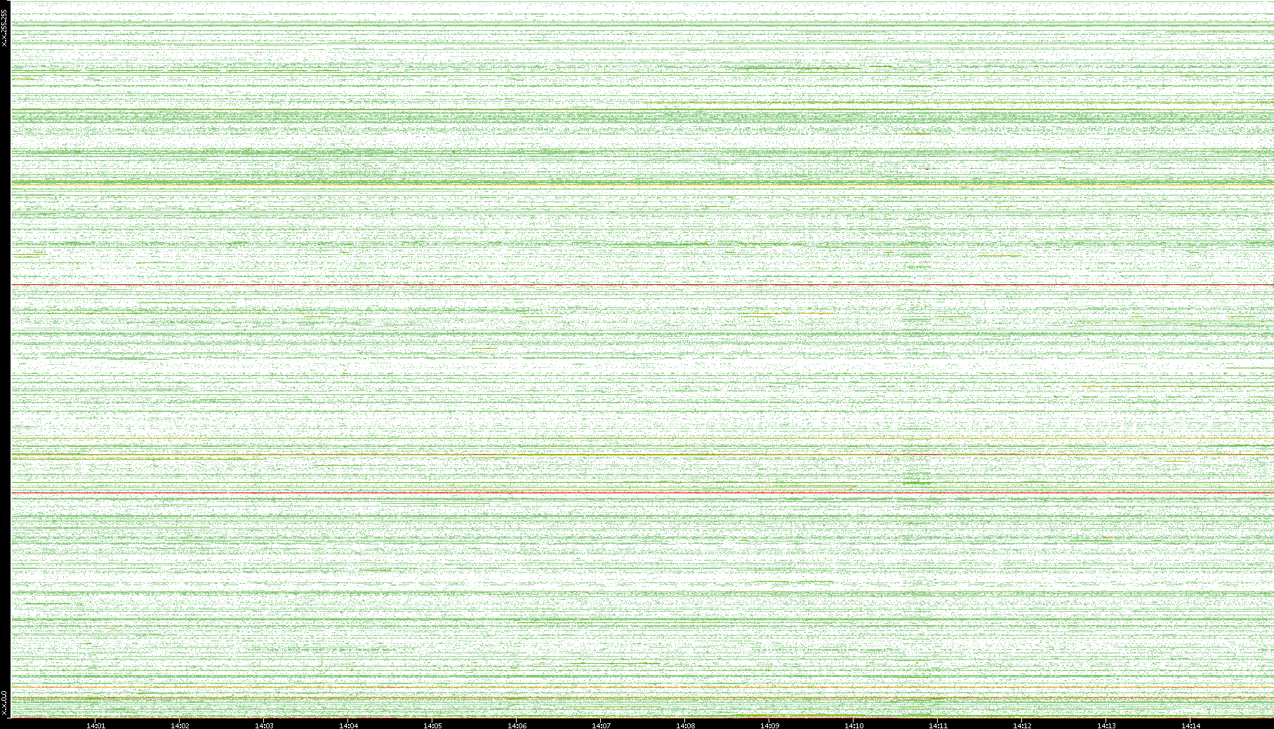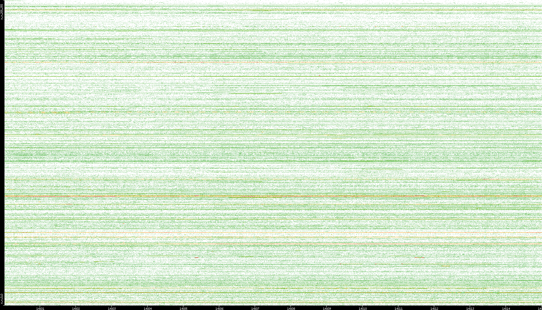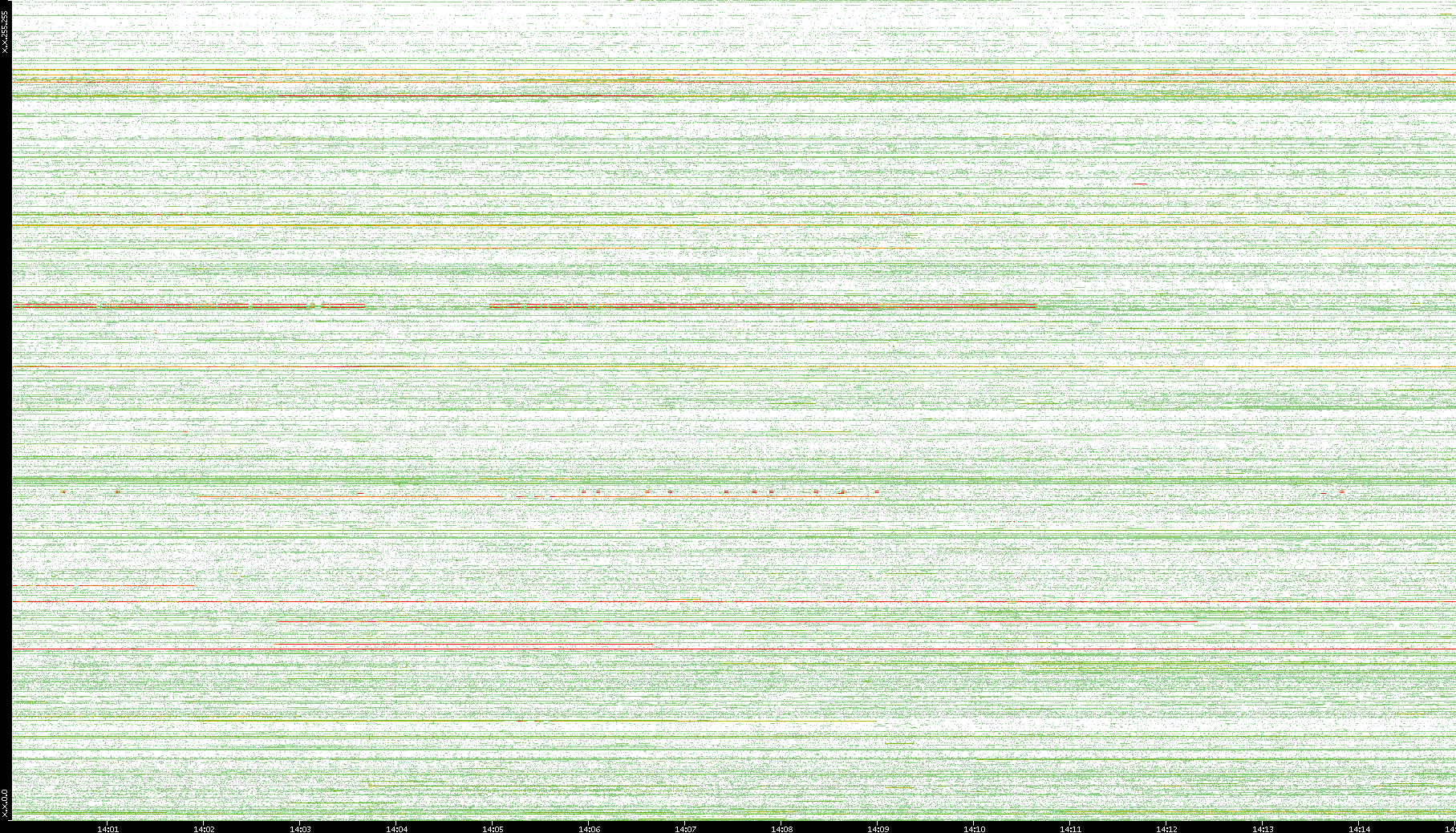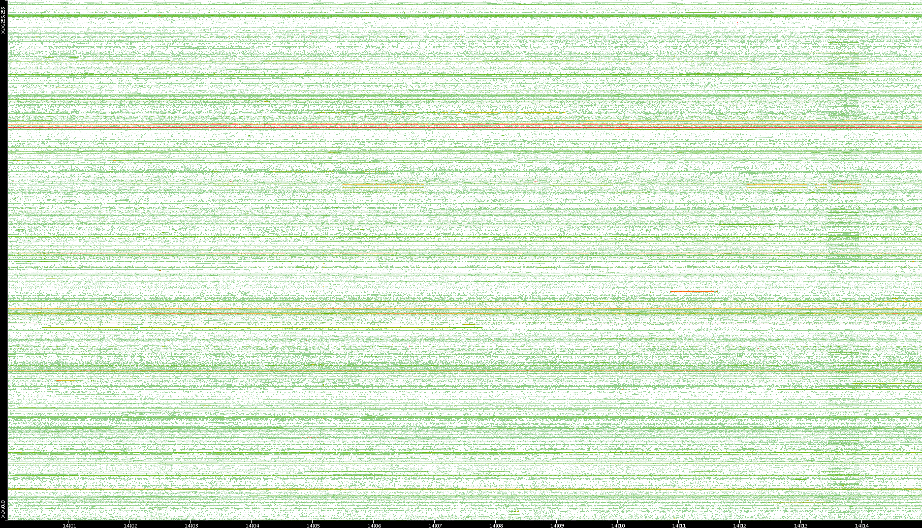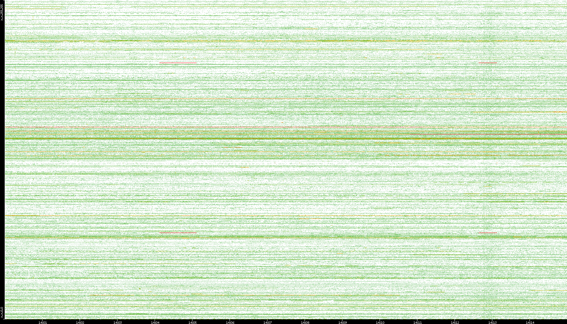 | Date | Dest. IP vs. Time | Dest. Port vs. Time | Src. IP vs. Time | Src. Port vs. Time | Nb. of Packets vs. Time | Throughput vs. Time | Average Packet Size vs. Time | Entropy of Port vs. Time |