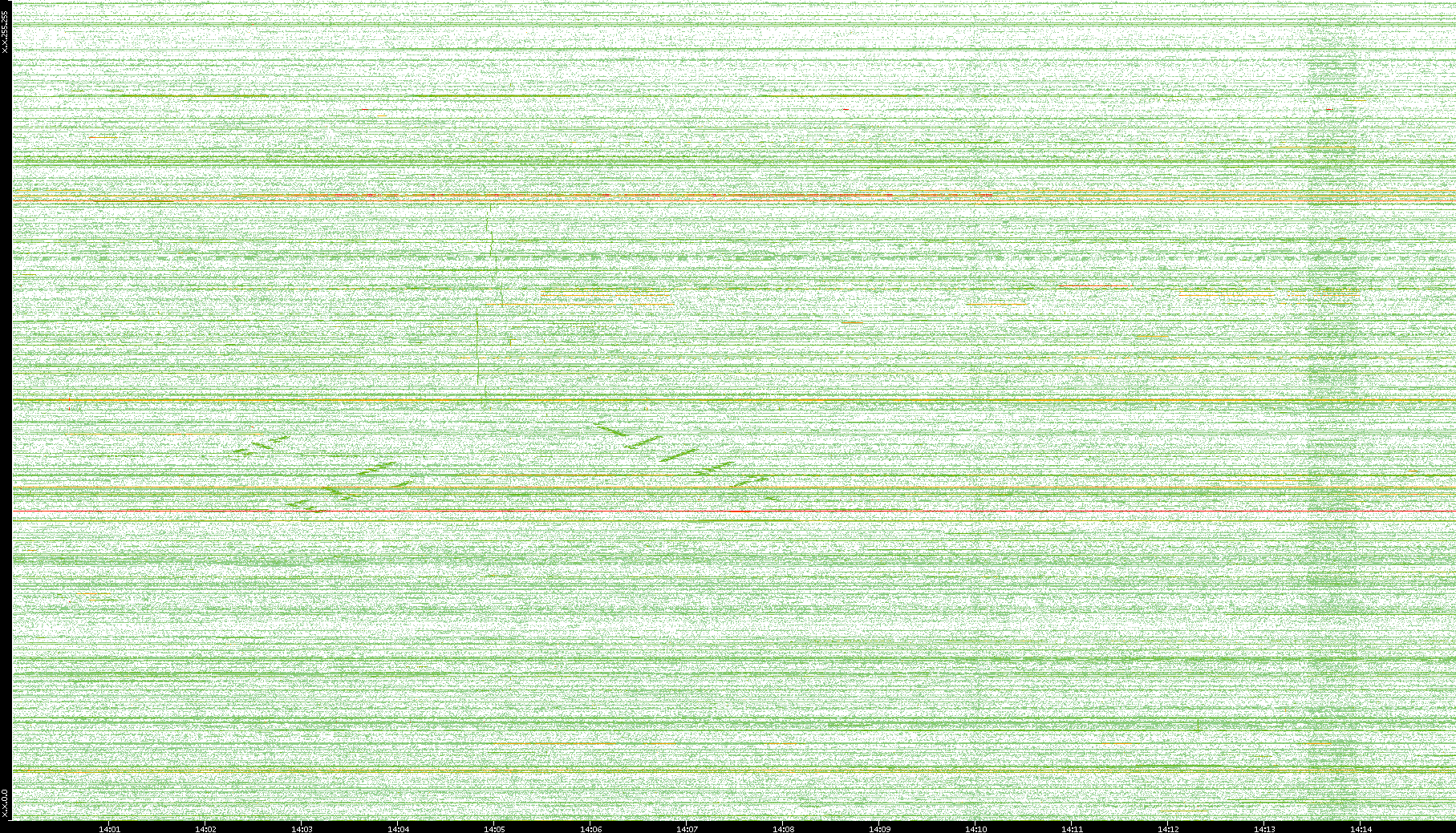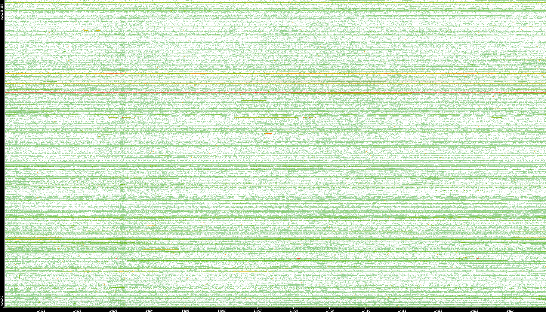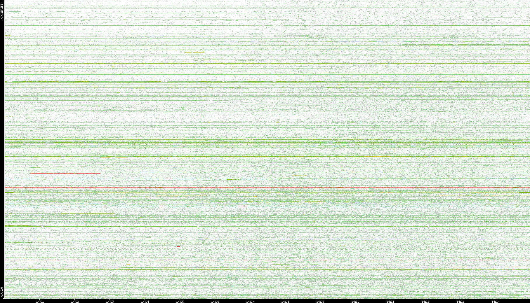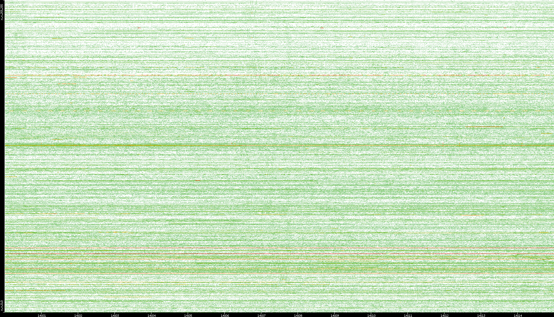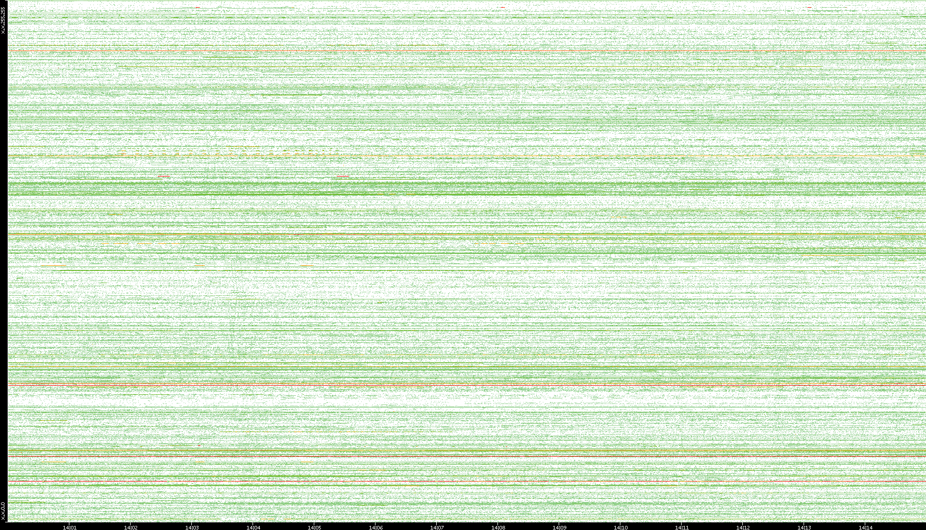 | Date | Dest. IP vs. Time | Dest. Port vs. Time | Src. IP vs. Time | Src. Port vs. Time | Nb. of Packets vs. Time | Throughput vs. Time | Average Packet Size vs. Time | Entropy of Port vs. Time |
