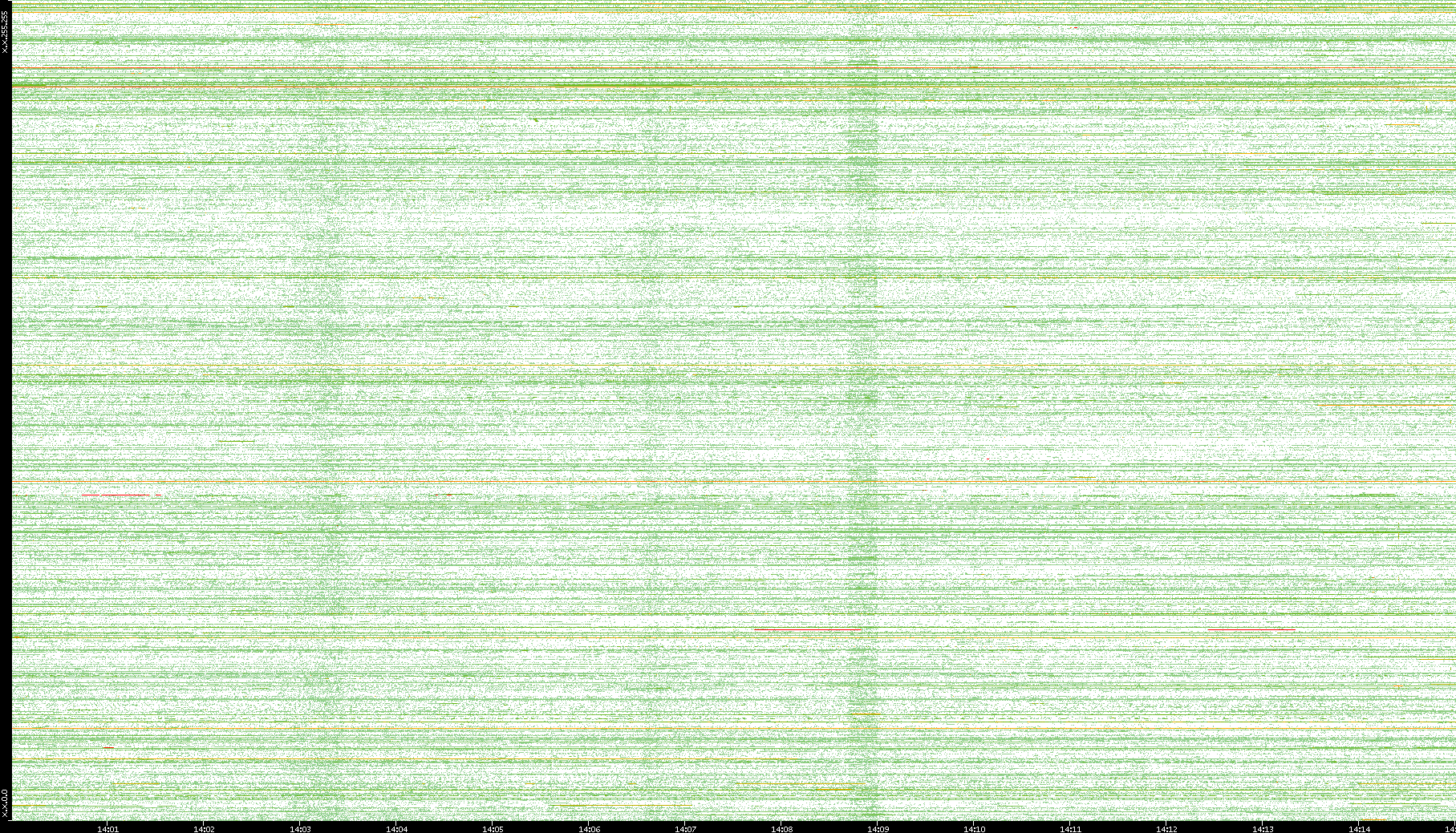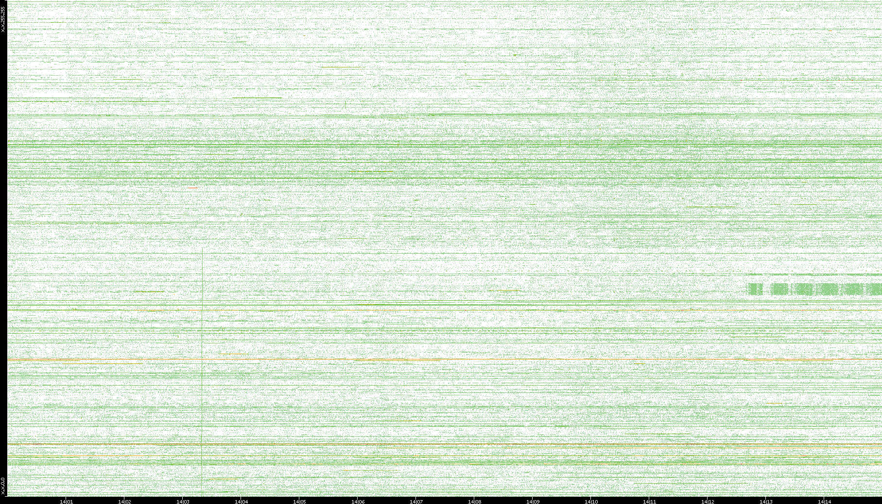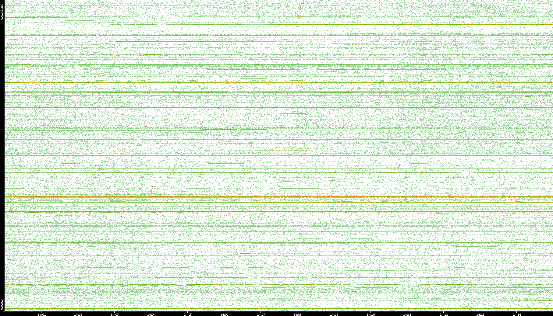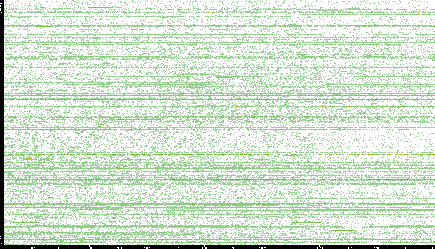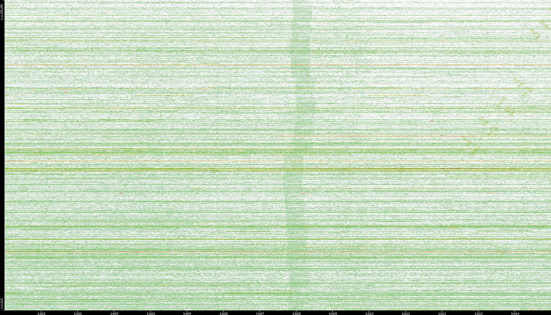| Date | Dest. IP vs. Time | Dest. Port vs. Time | Src. IP vs. Time | Src. Port vs. Time | Nb. of Packets vs. Time | Throughput vs. Time | Average Packet Size vs. Time | Entropy of Port vs. Time |