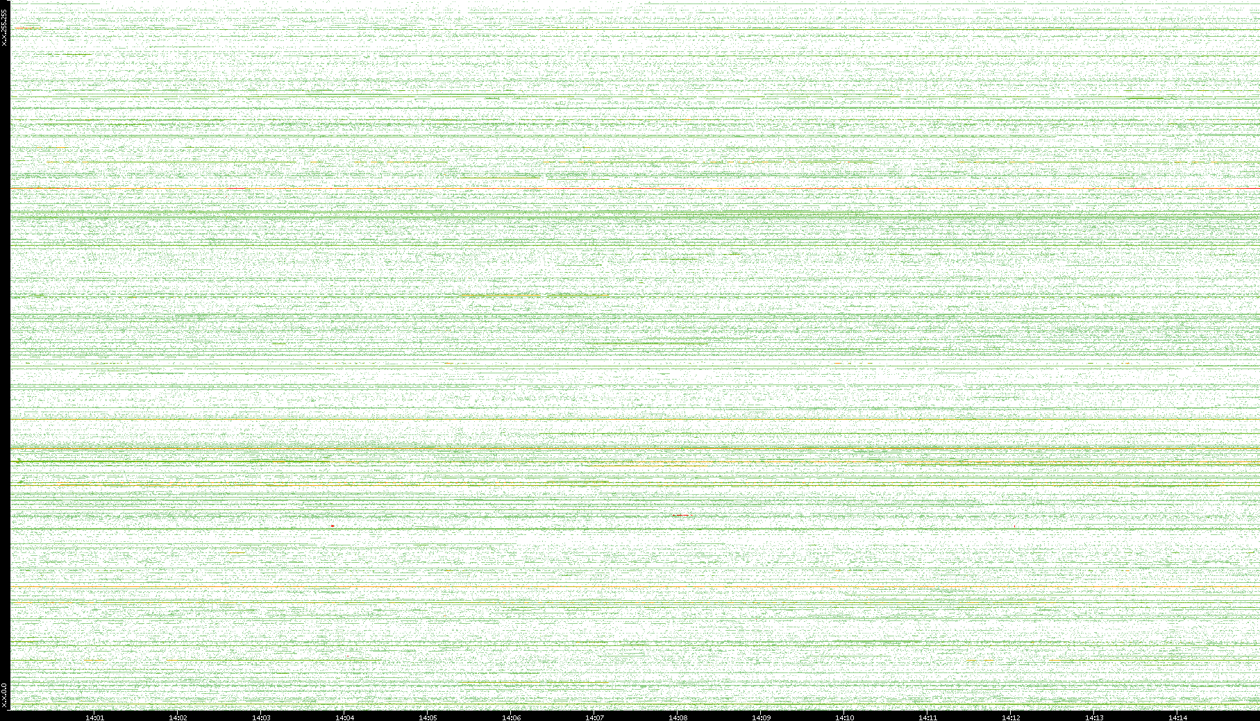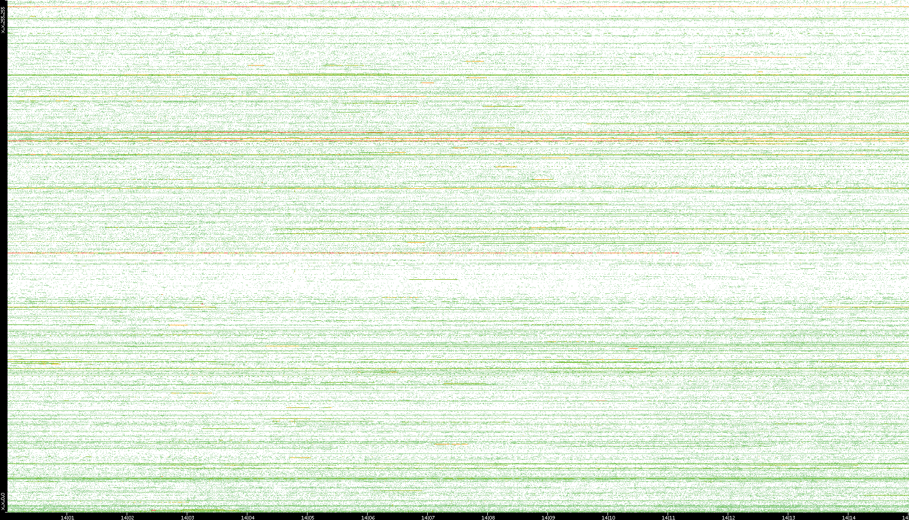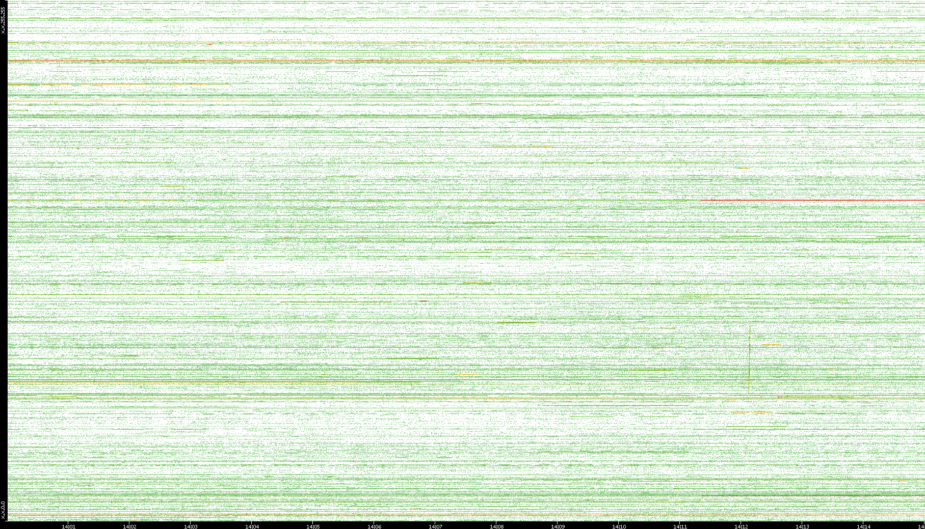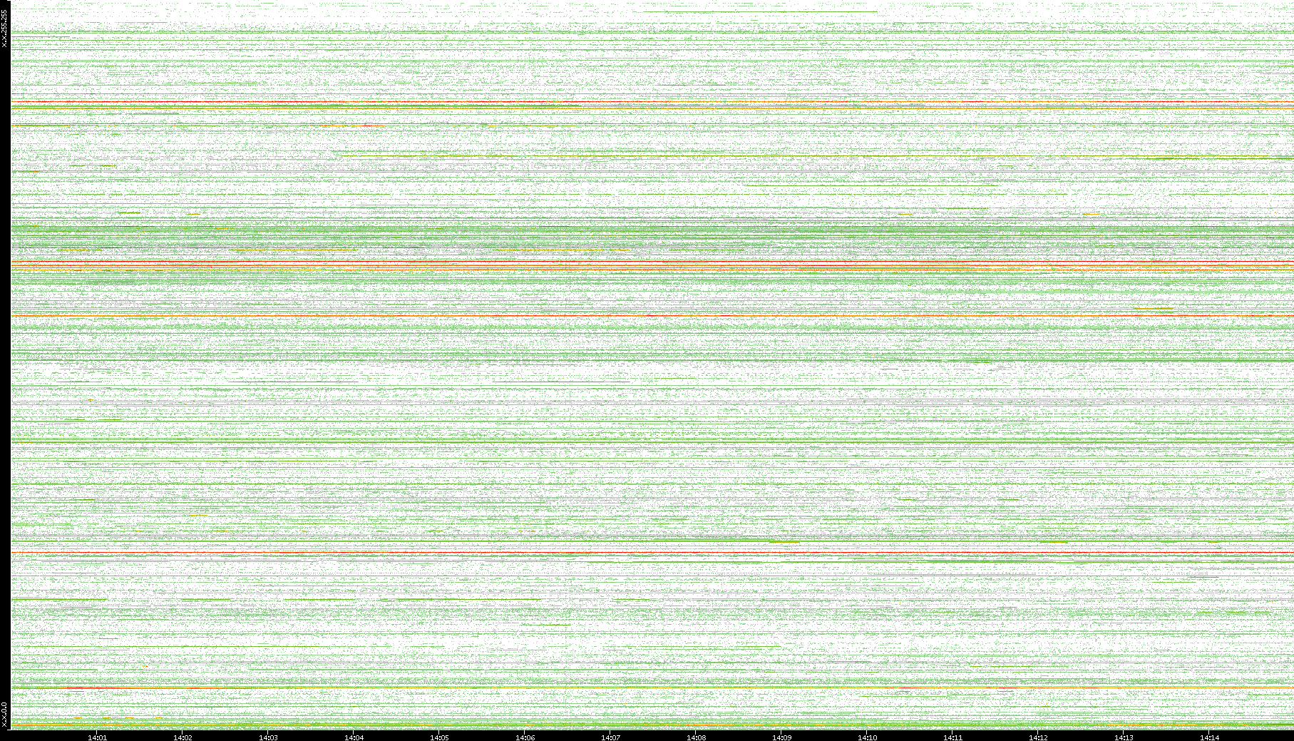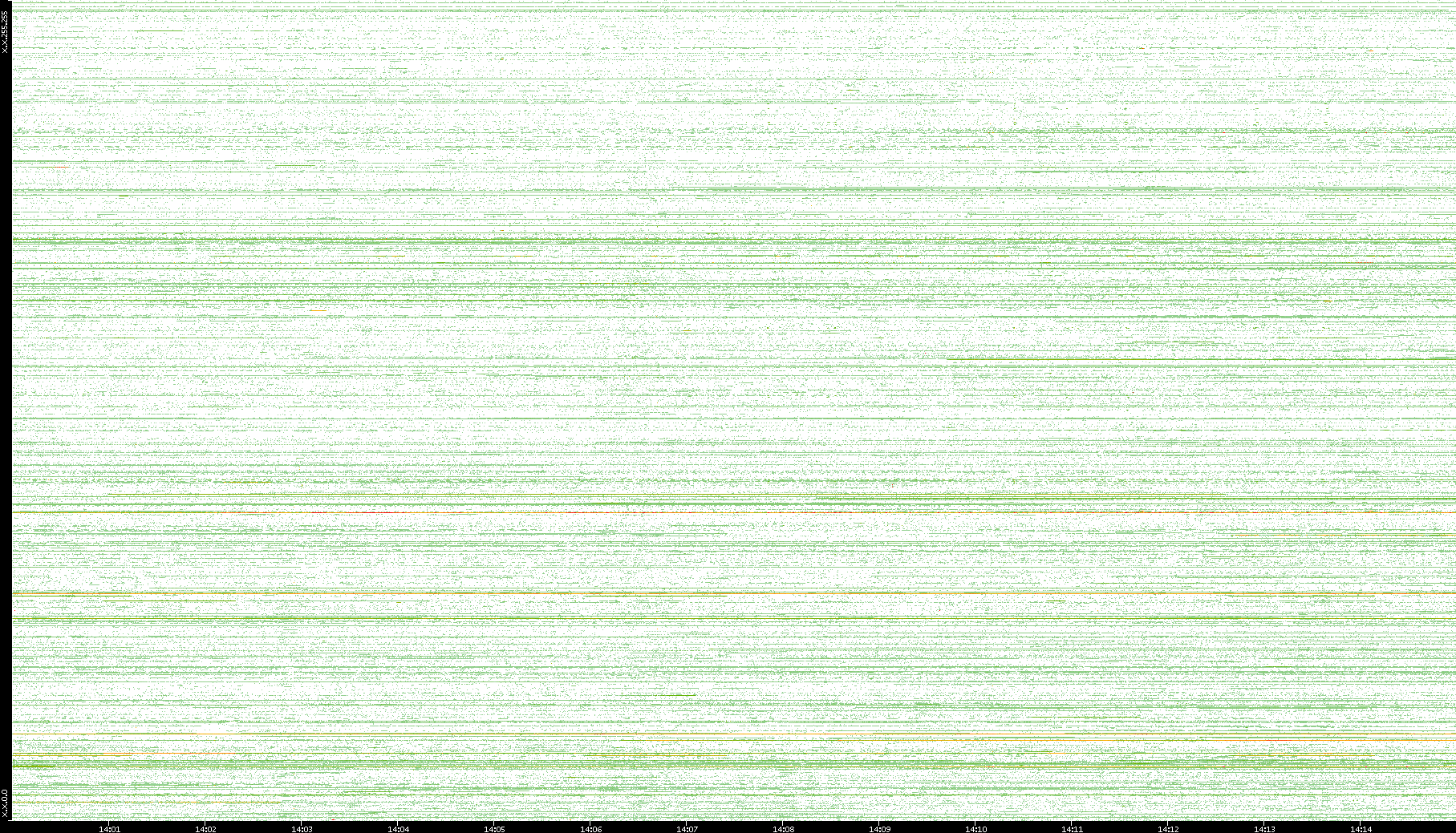 | Date | Dest. IP vs. Time | Dest. Port vs. Time | Src. IP vs. Time | Src. Port vs. Time | Nb. of Packets vs. Time | Throughput vs. Time | Average Packet Size vs. Time | Entropy of Port vs. Time |