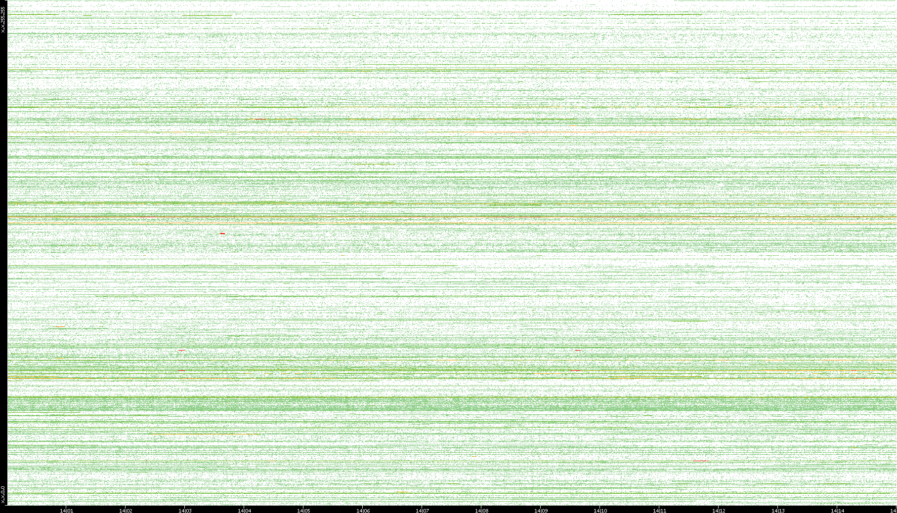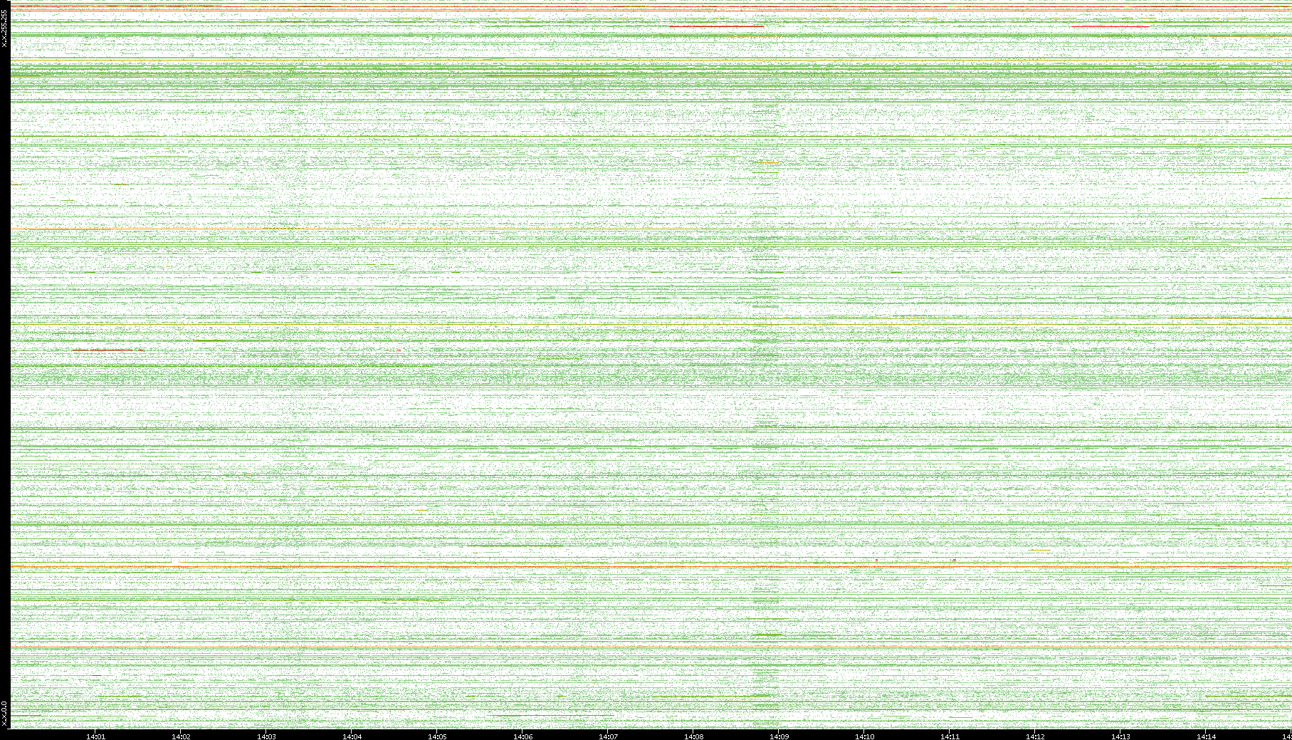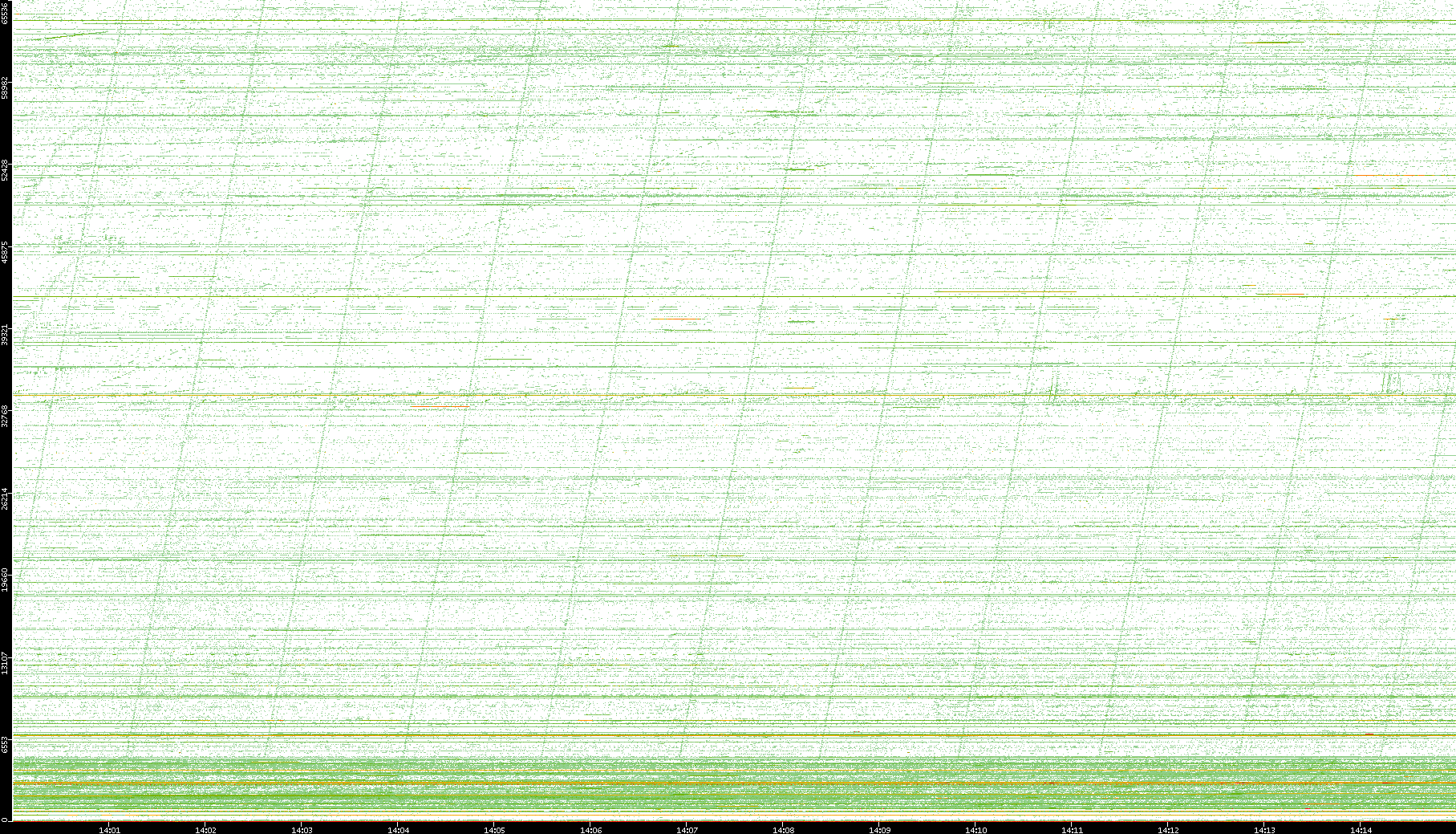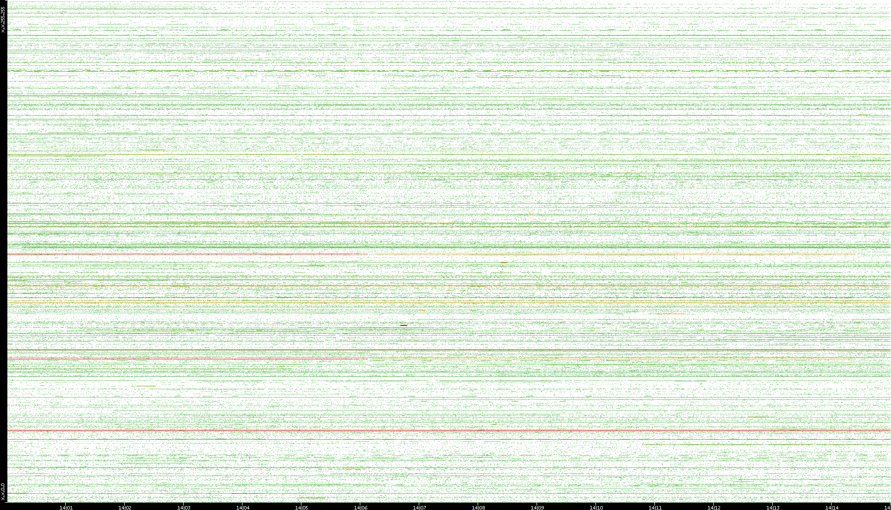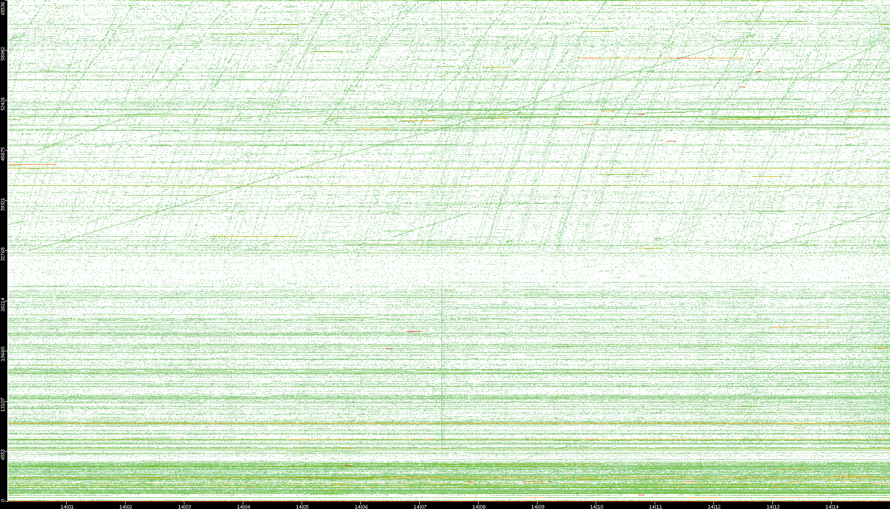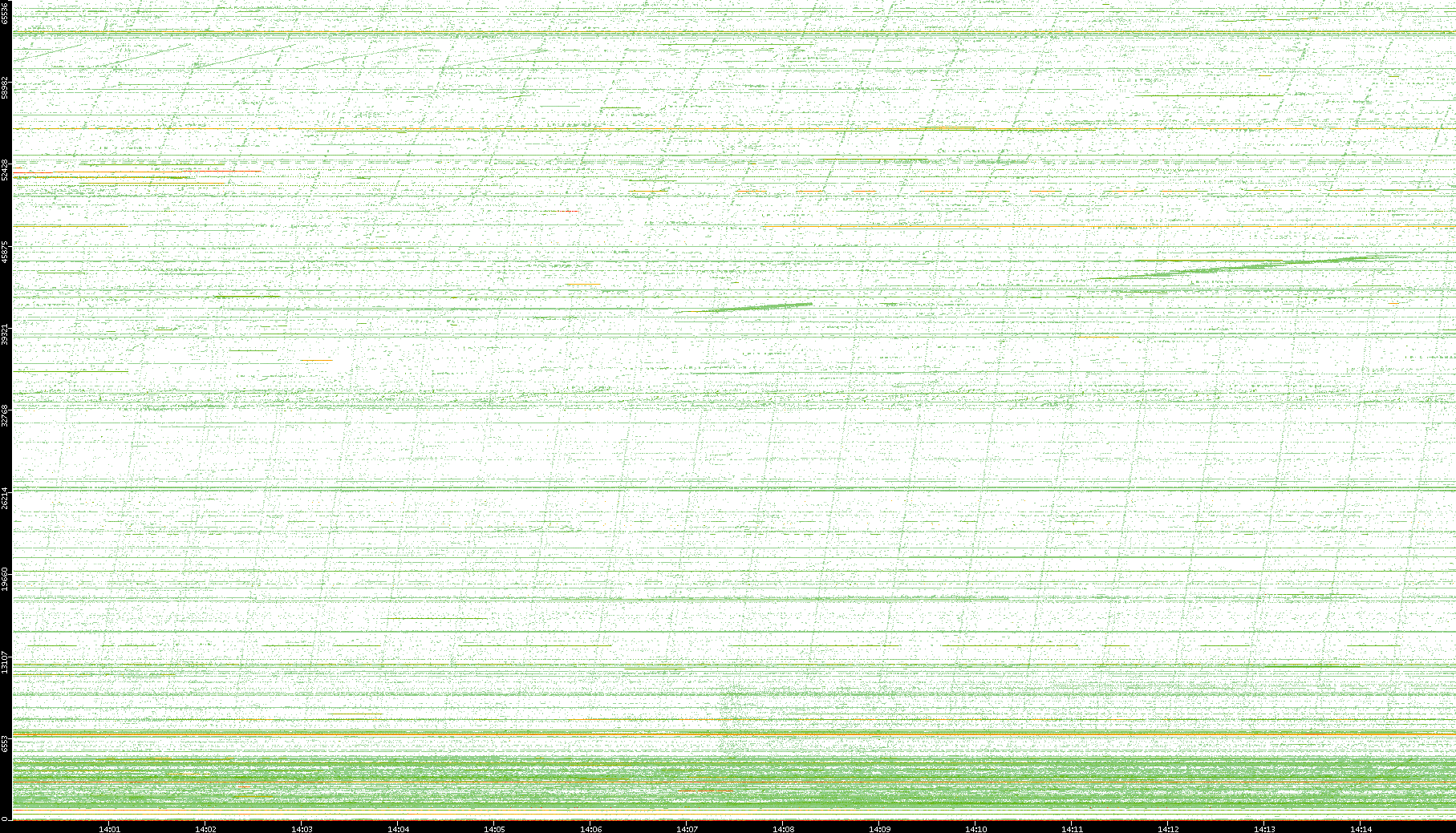 | Date | Dest. IP vs. Time | Dest. Port vs. Time | Src. IP vs. Time | Src. Port vs. Time | Nb. of Packets vs. Time | Throughput vs. Time | Average Packet Size vs. Time | Entropy of Port vs. Time |