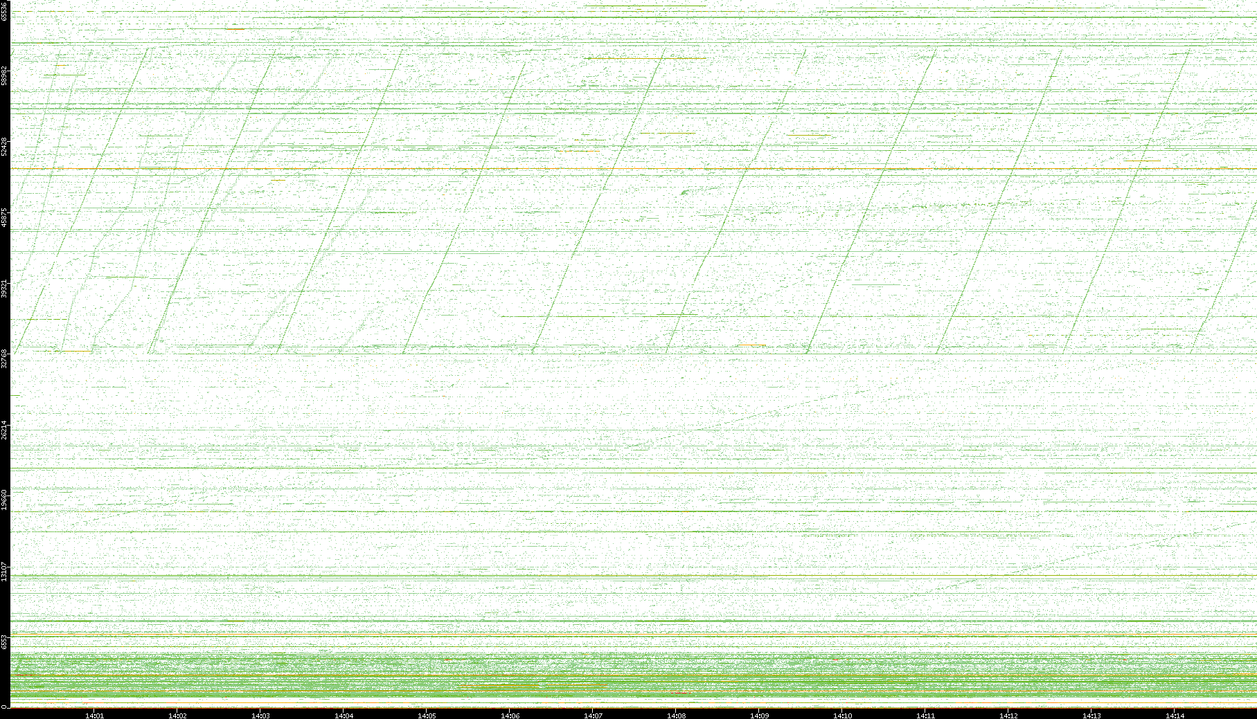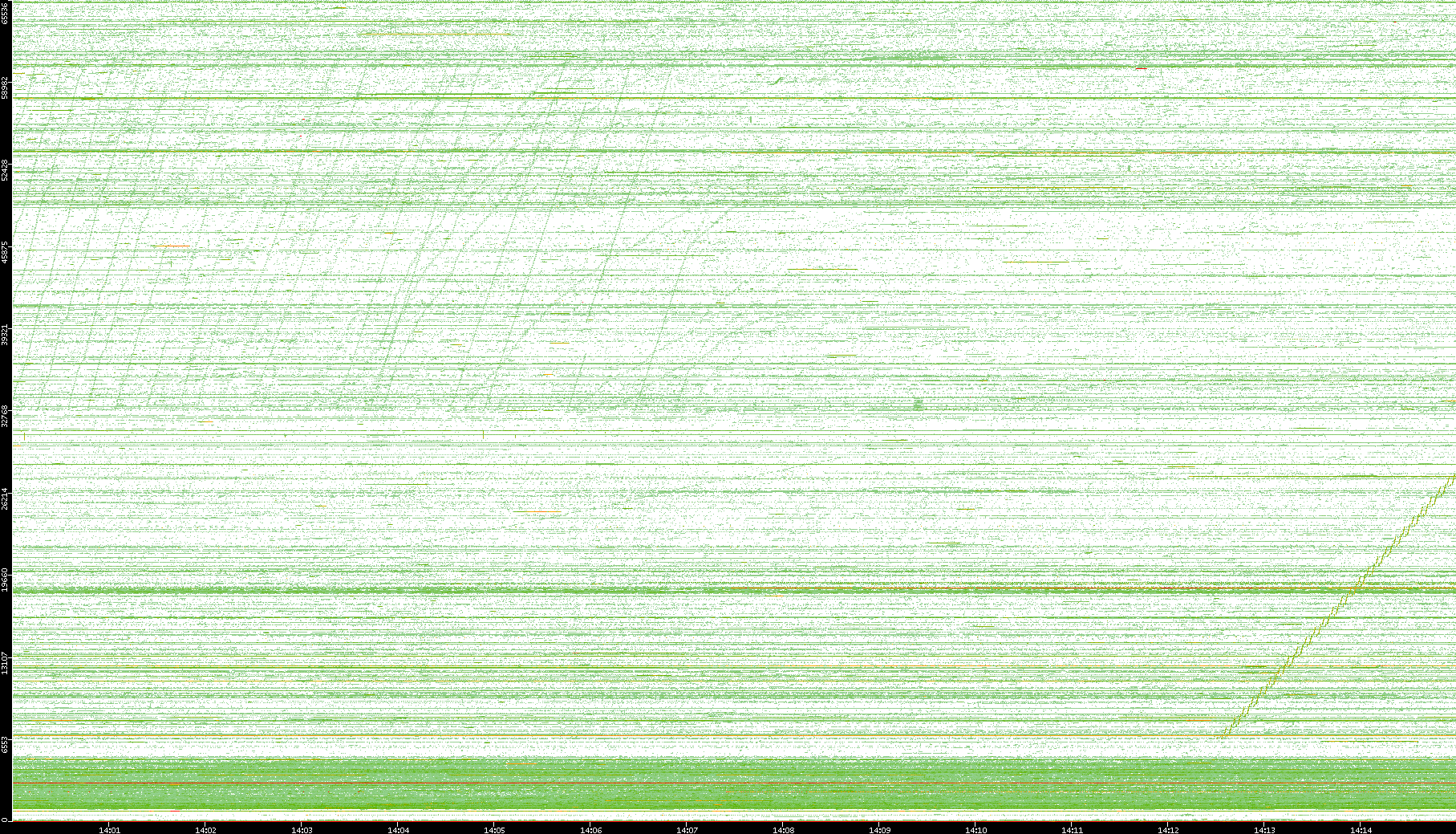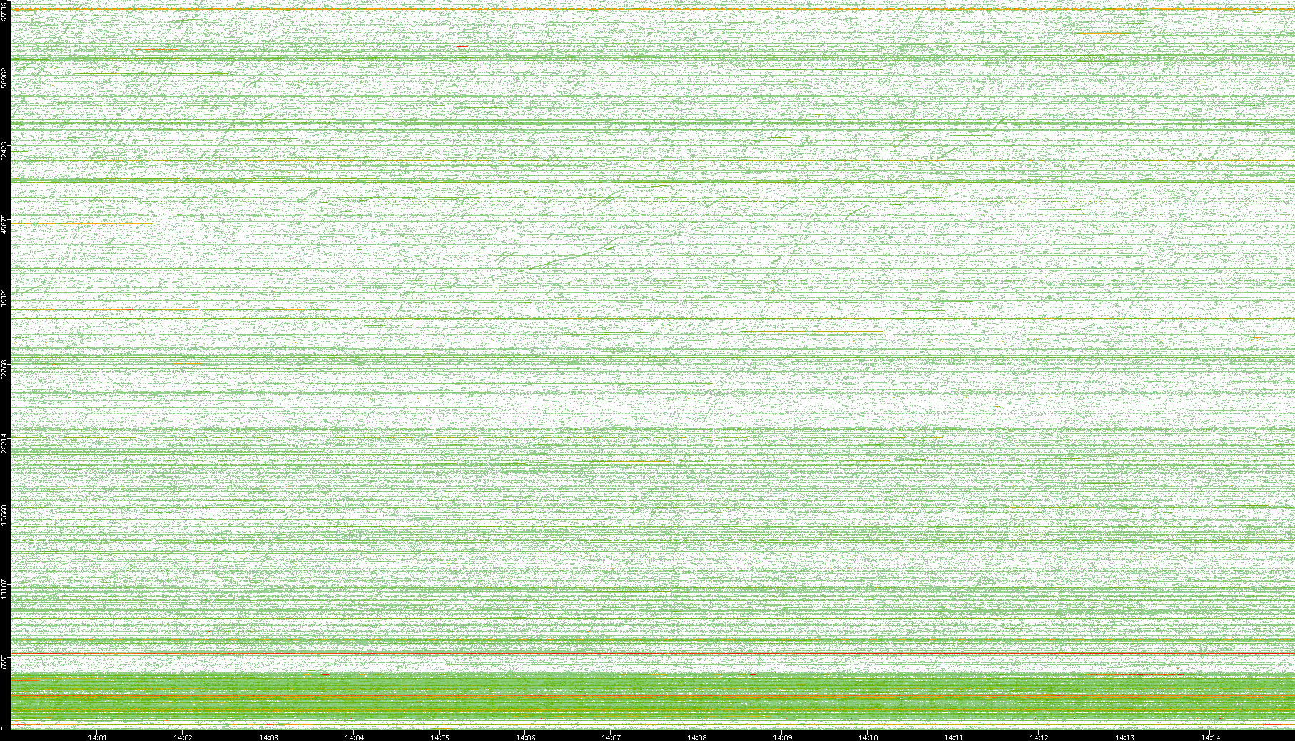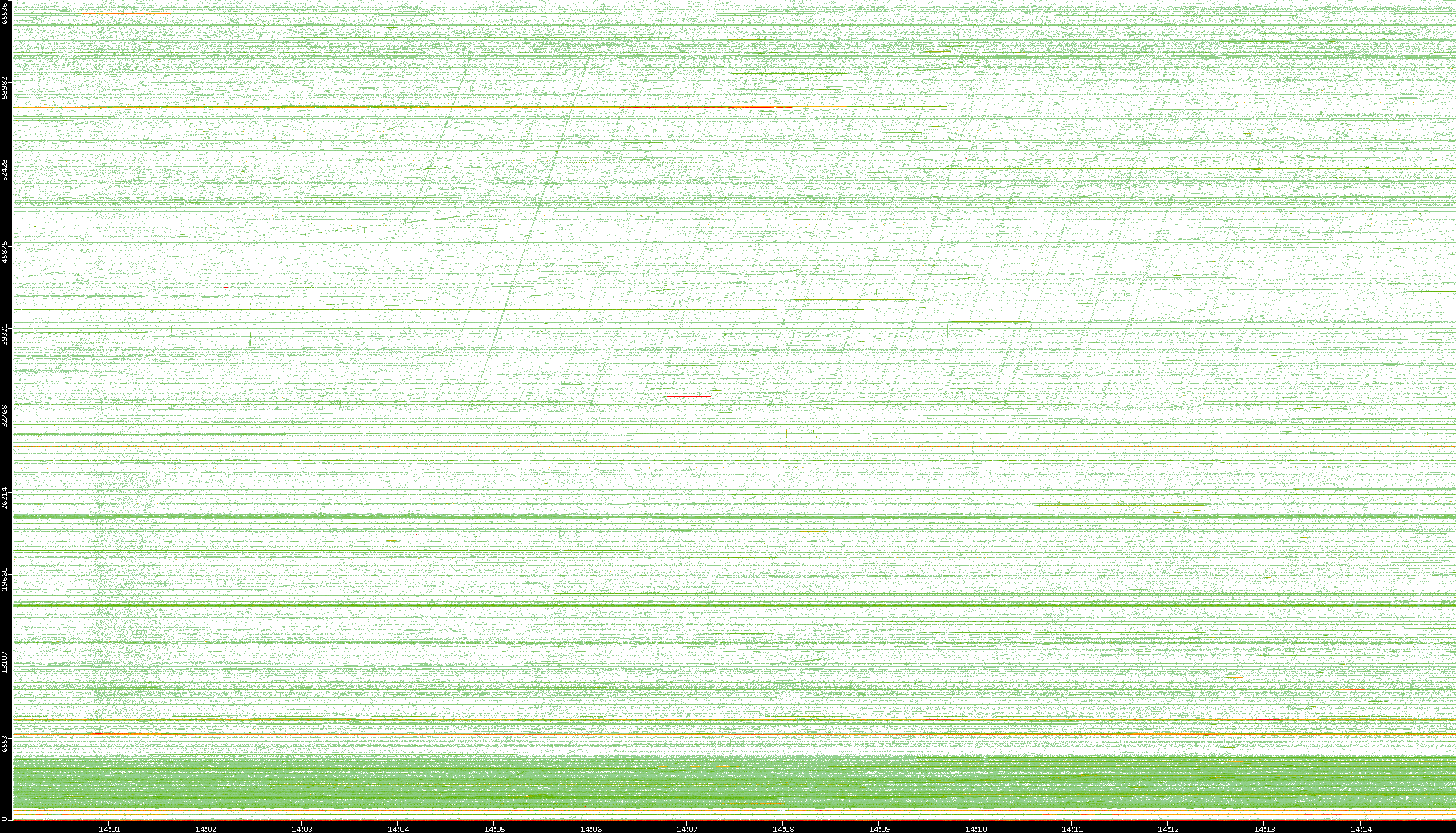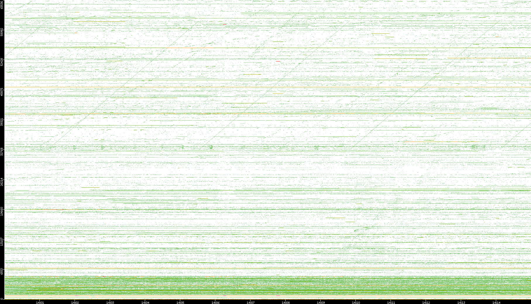 | Date | Dest. IP vs. Time | Dest. Port vs. Time | Src. IP vs. Time | Src. Port vs. Time | Nb. of Packets vs. Time | Throughput vs. Time | Average Packet Size vs. Time | Entropy of Port vs. Time |