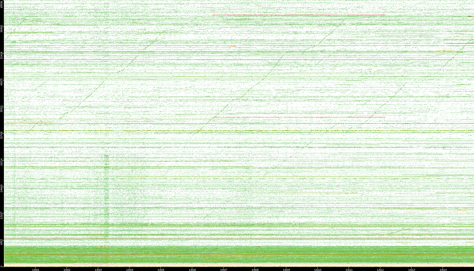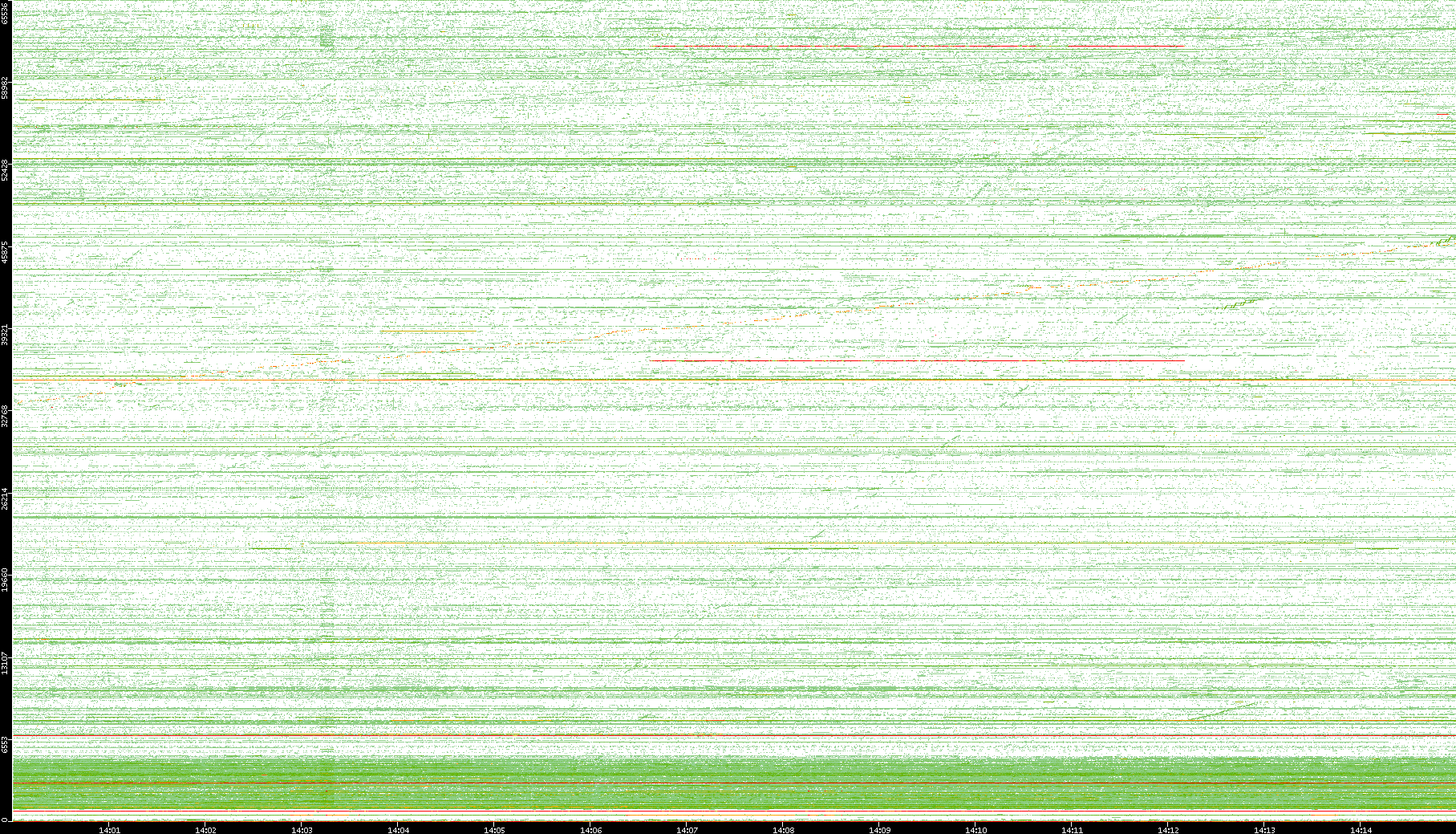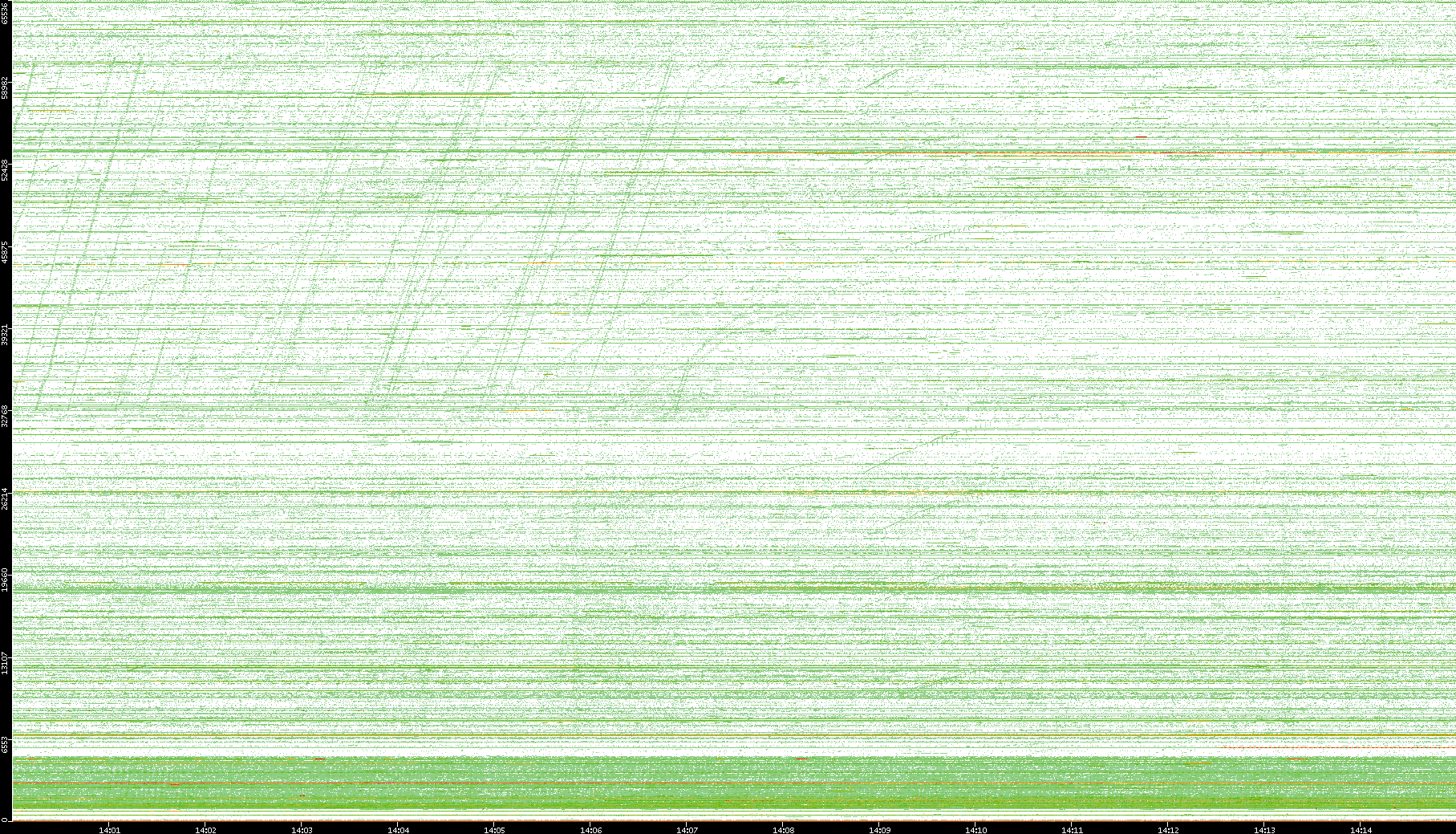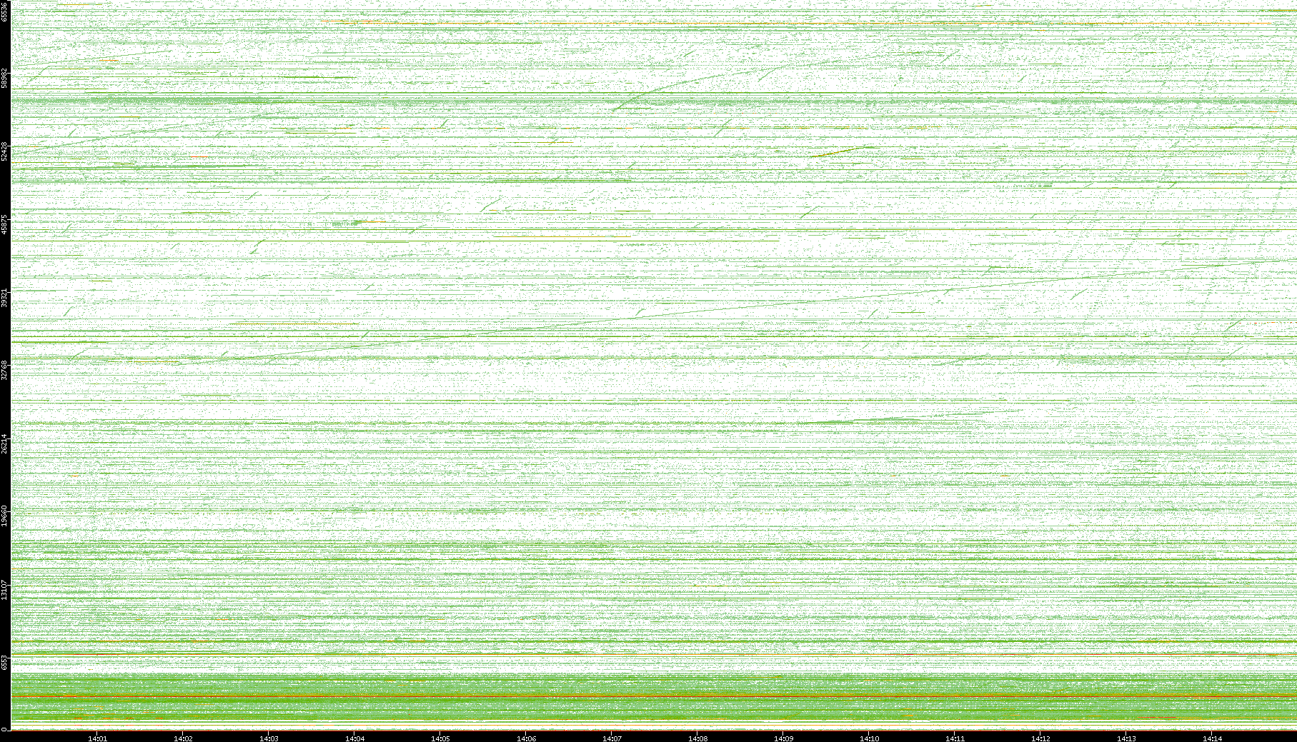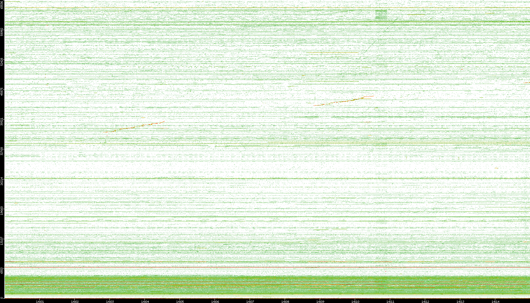 | Date | Dest. IP vs. Time | Dest. Port vs. Time | Src. IP vs. Time | Src. Port vs. Time | Nb. of Packets vs. Time | Throughput vs. Time | Average Packet Size vs. Time | Entropy of Port vs. Time |
