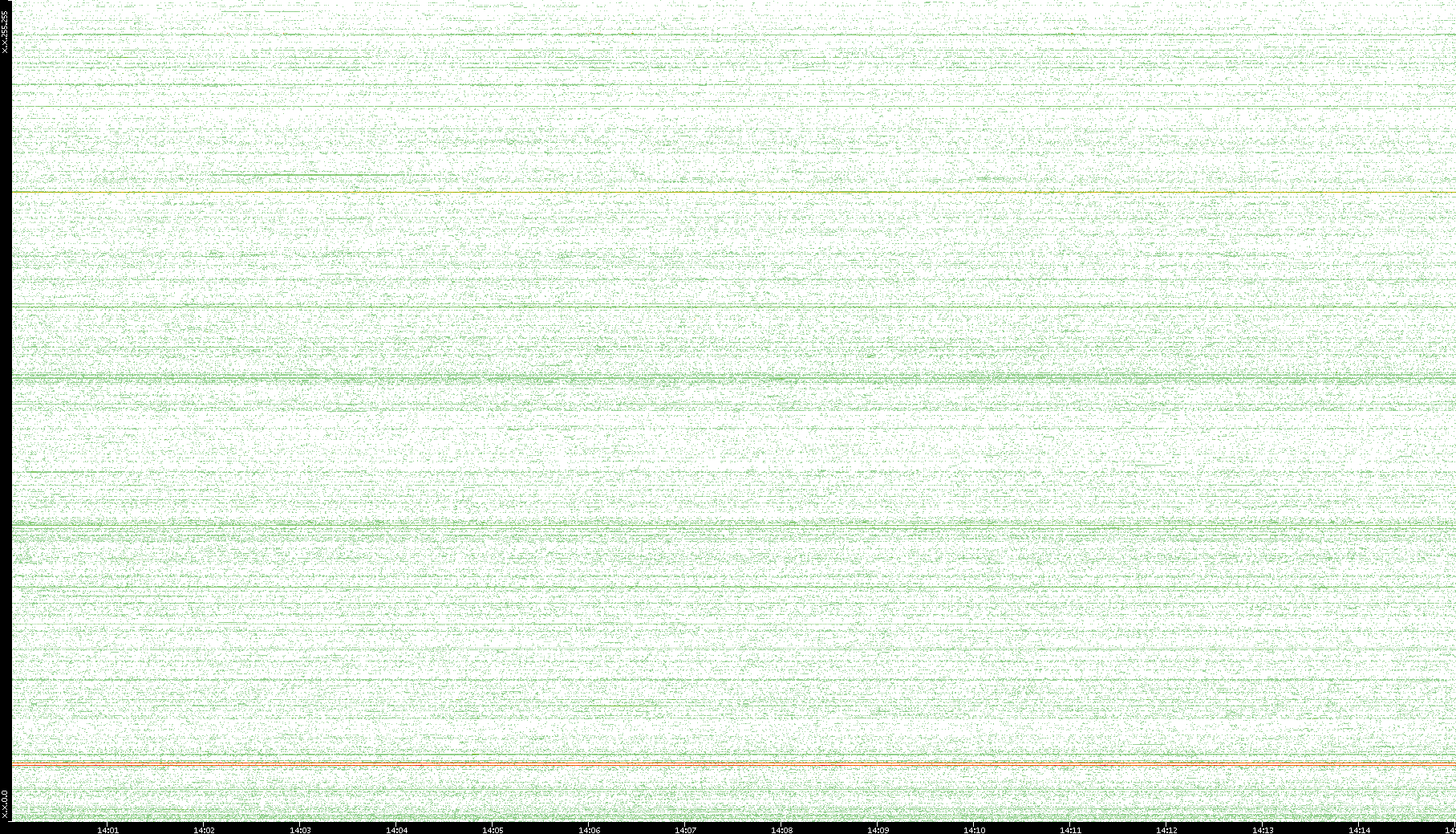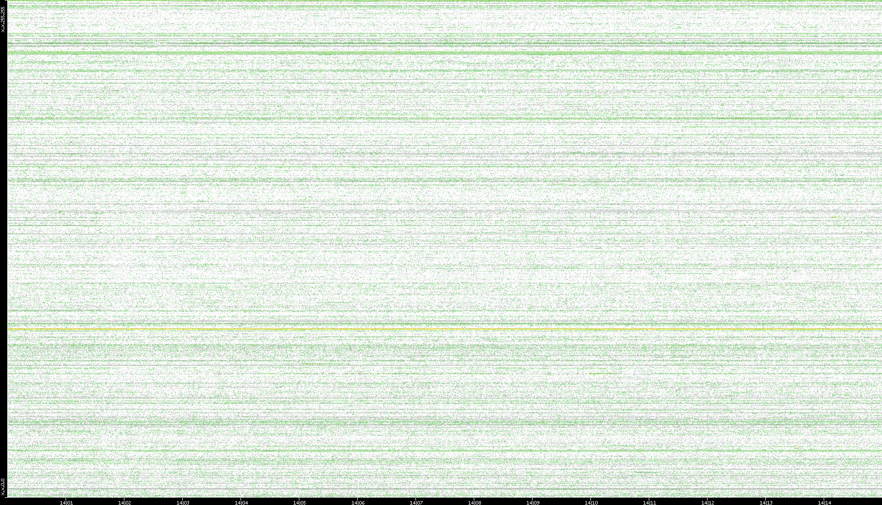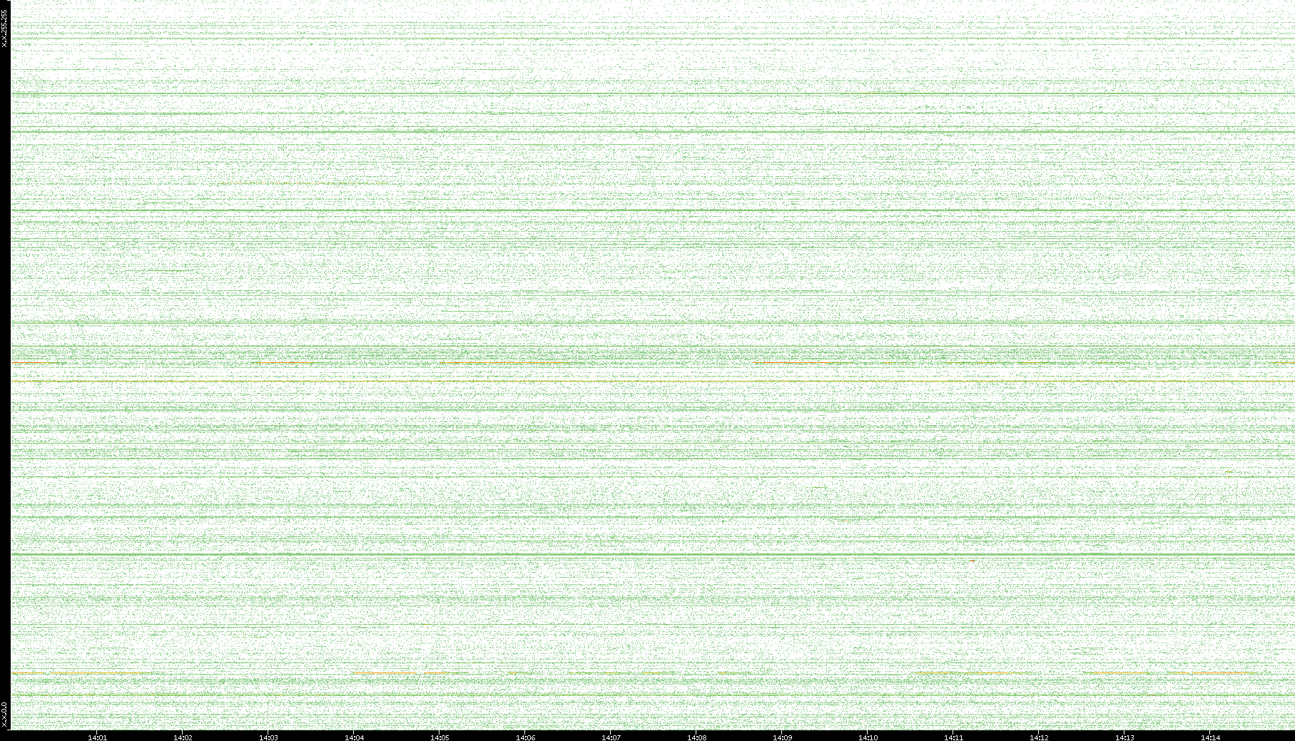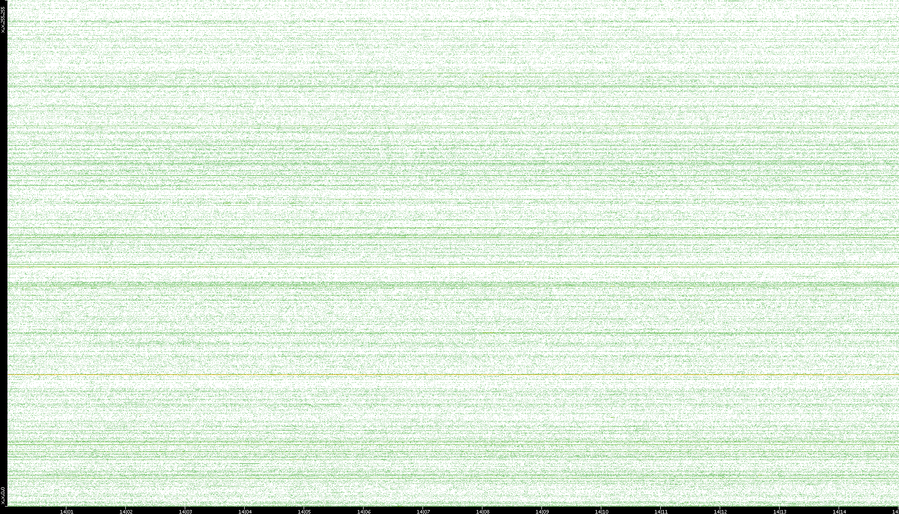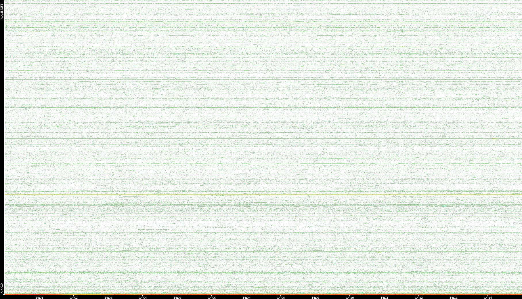 2007/03/14 Dest. IP vs. Time Dest. Port vs. Time Src. IP vs. Time Src. Port vs. Time Nb. of Packets vs. Time Throughput vs. Time Average Packet Size vs. Time Entropy of Port vs. Time