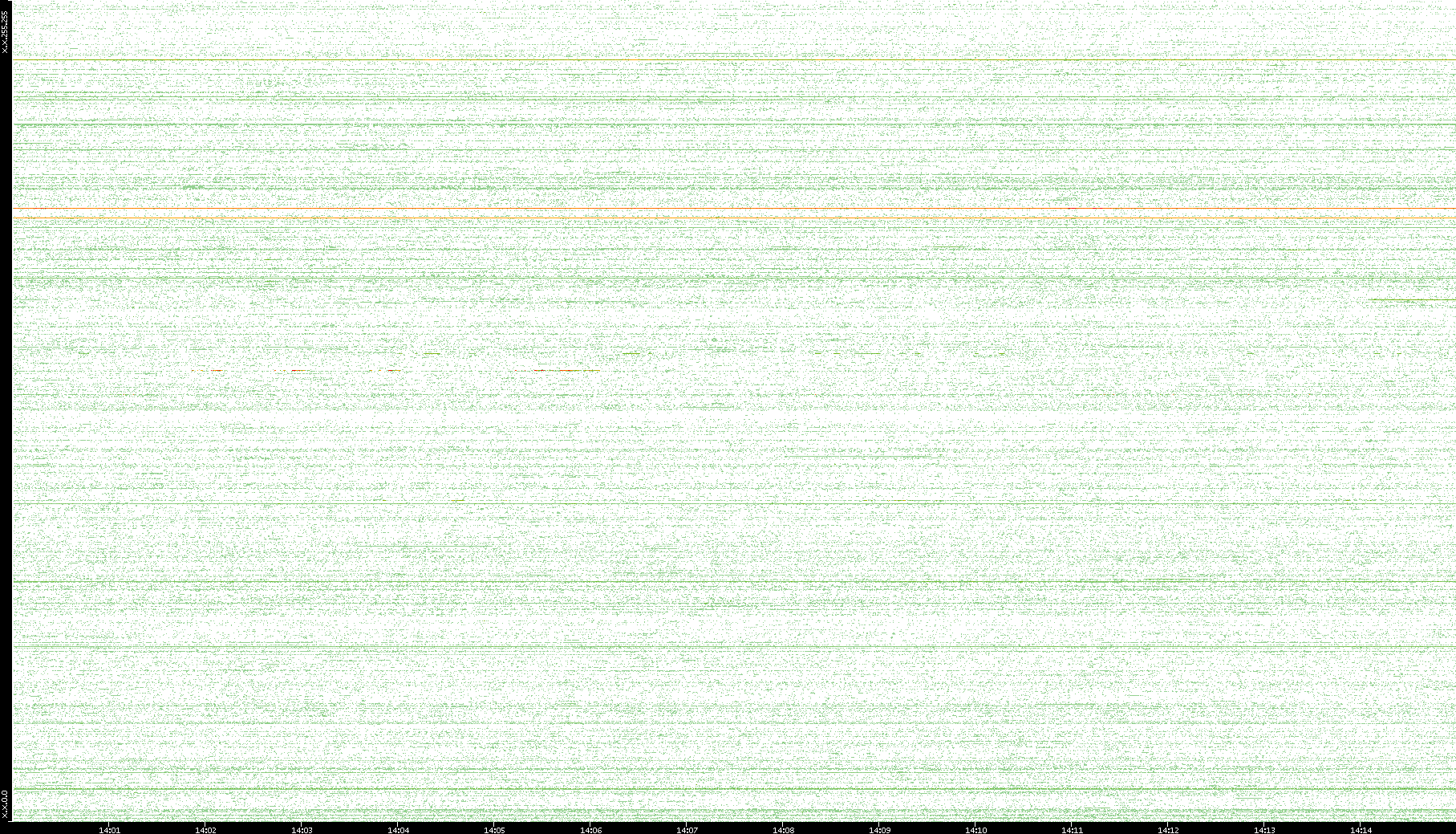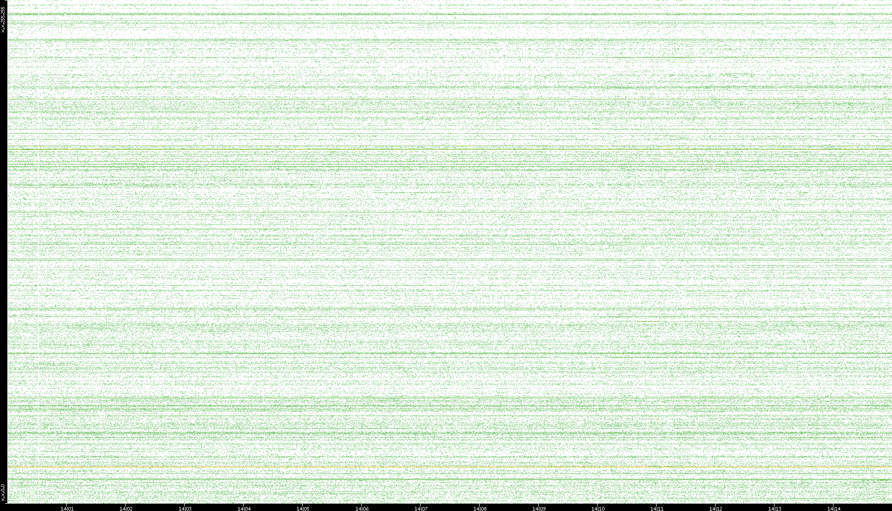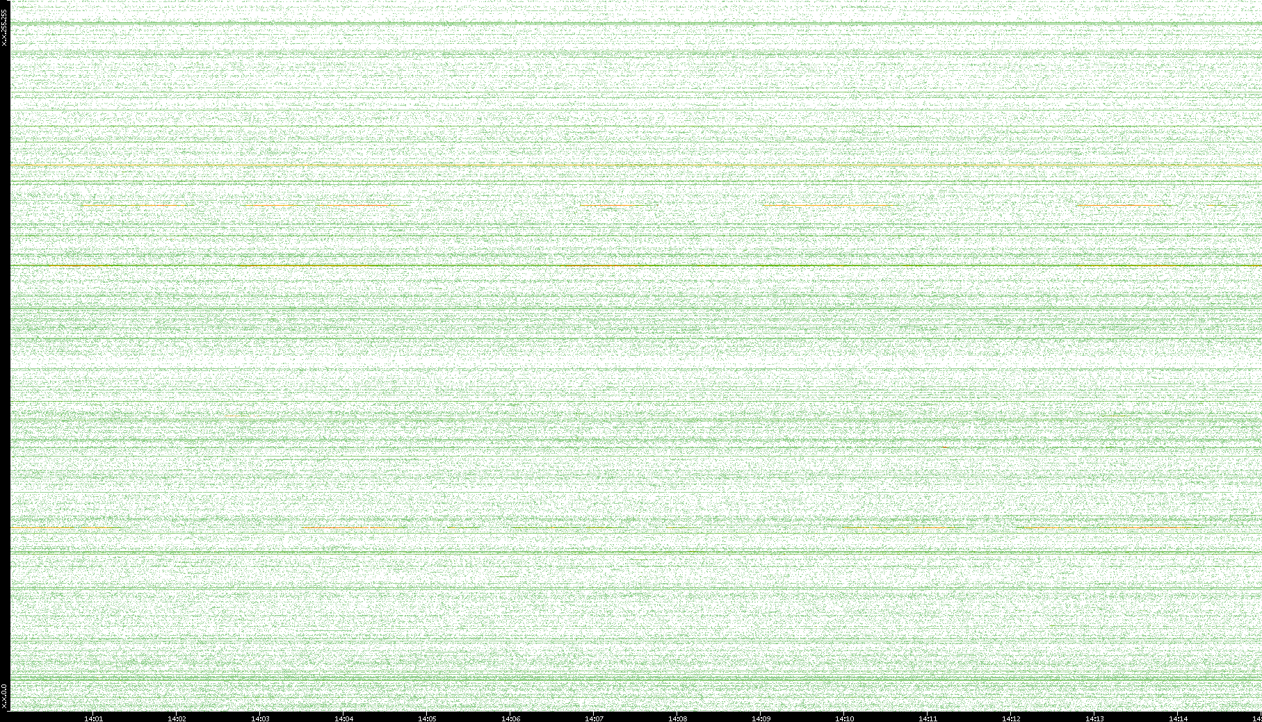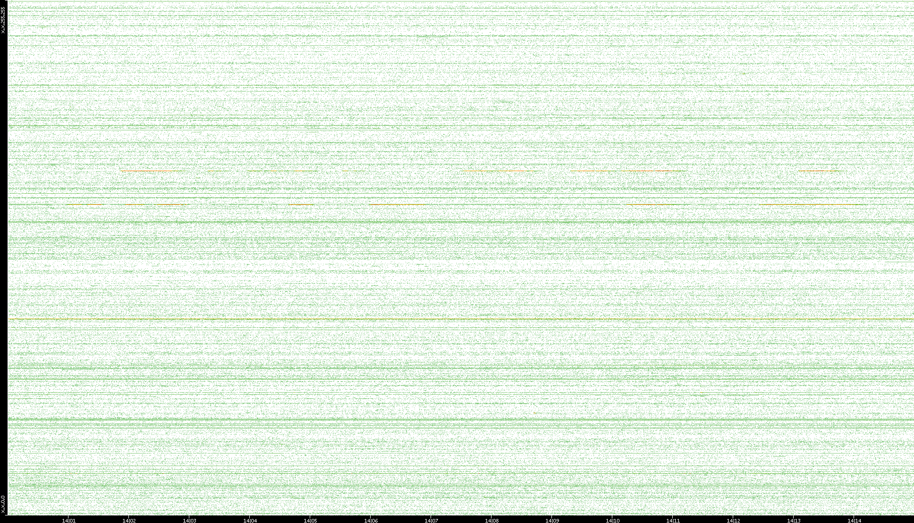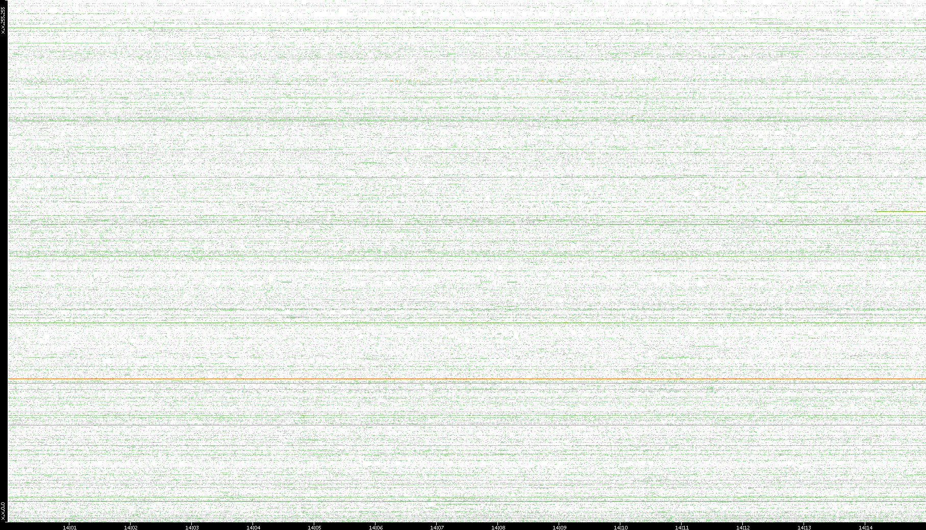 2007/03/14 Dest. IP vs. Time Dest. Port vs. Time Src. IP vs. Time Src. Port vs. Time Nb. of Packets vs. Time Throughput vs. Time Average Packet Size vs. Time Entropy of Port vs. Time