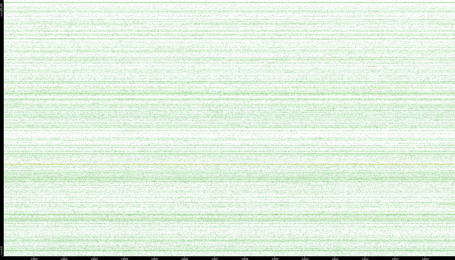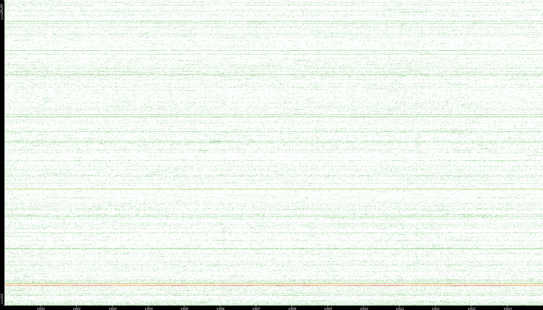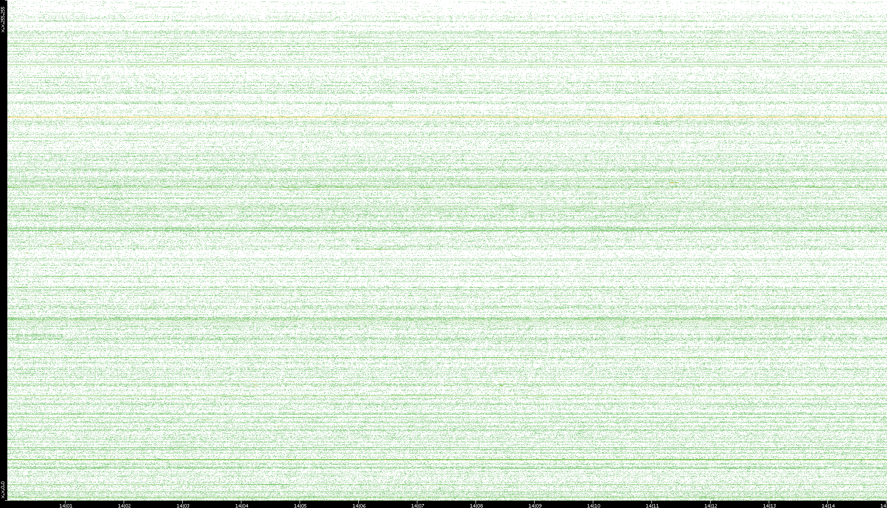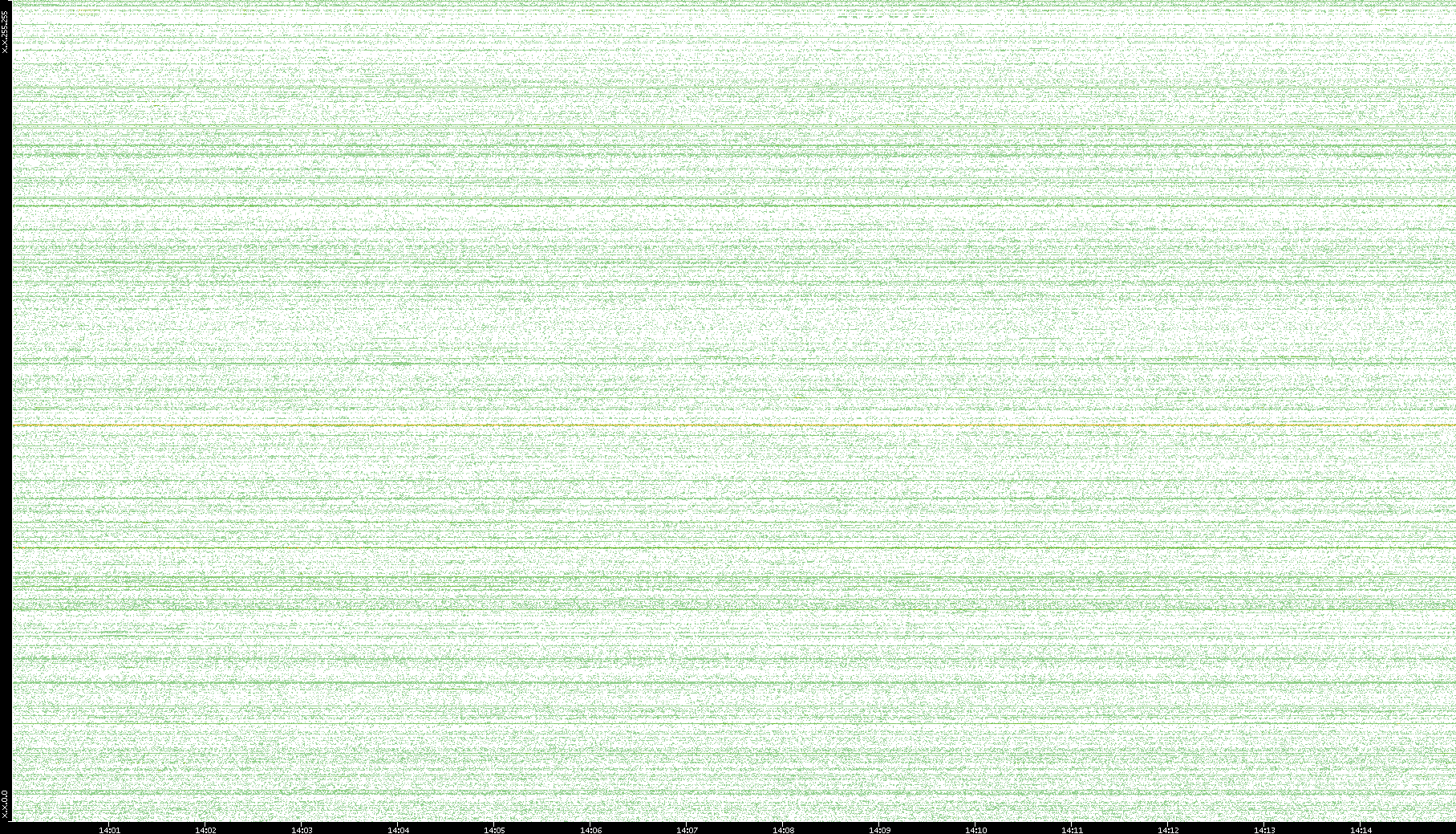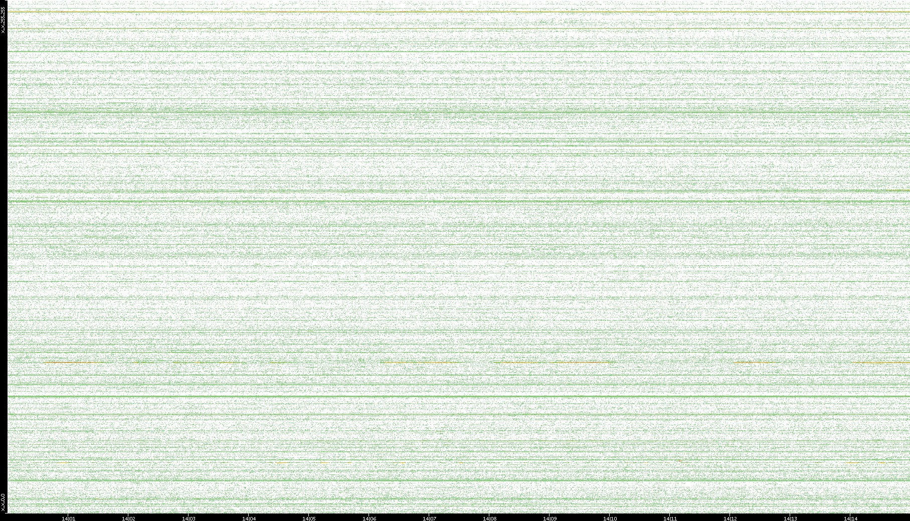2007/03/14 Dest. IP vs. Time Dest. Port vs. Time Src. IP vs. Time Src. Port vs. Time Nb. of Packets vs. Time Throughput vs. Time Average Packet Size vs. Time Entropy of Port vs. Time