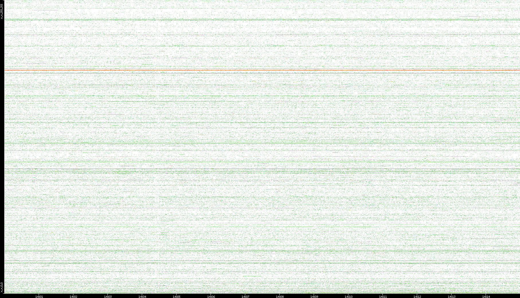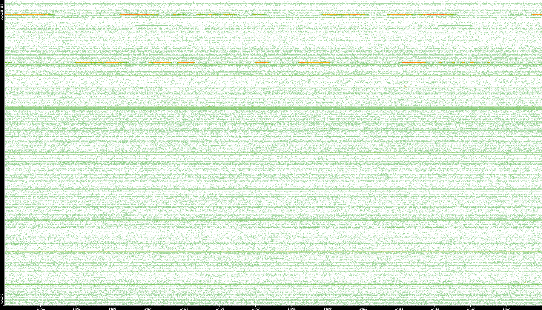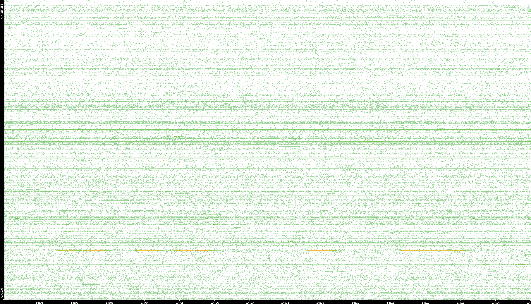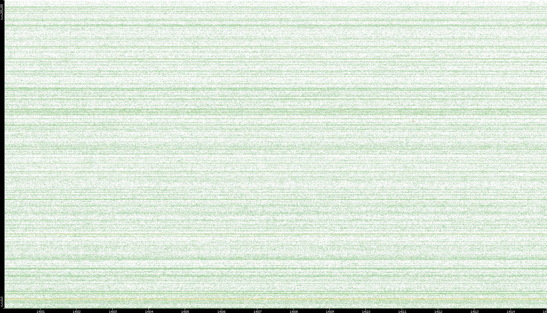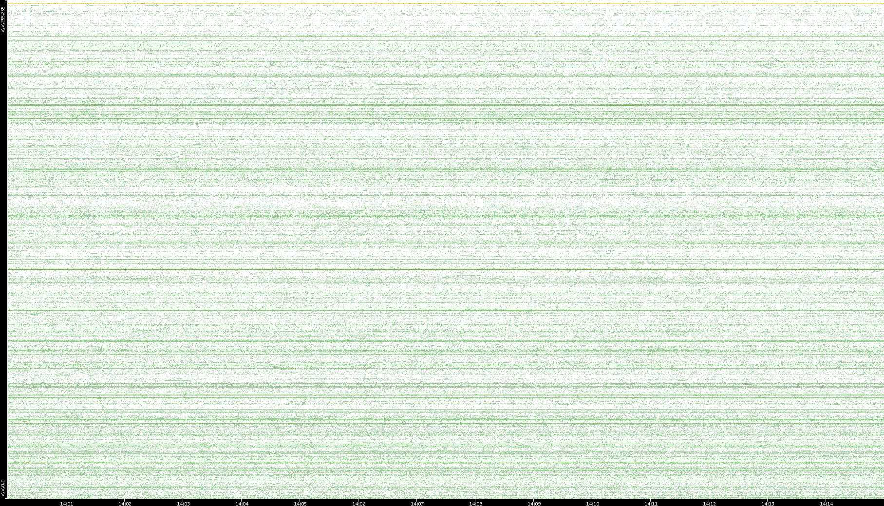 2007/03/14 Dest. IP vs. Time Dest. Port vs. Time Src. IP vs. Time Src. Port vs. Time Nb. of Packets vs. Time Throughput vs. Time Average Packet Size vs. Time Entropy of Port vs. Time