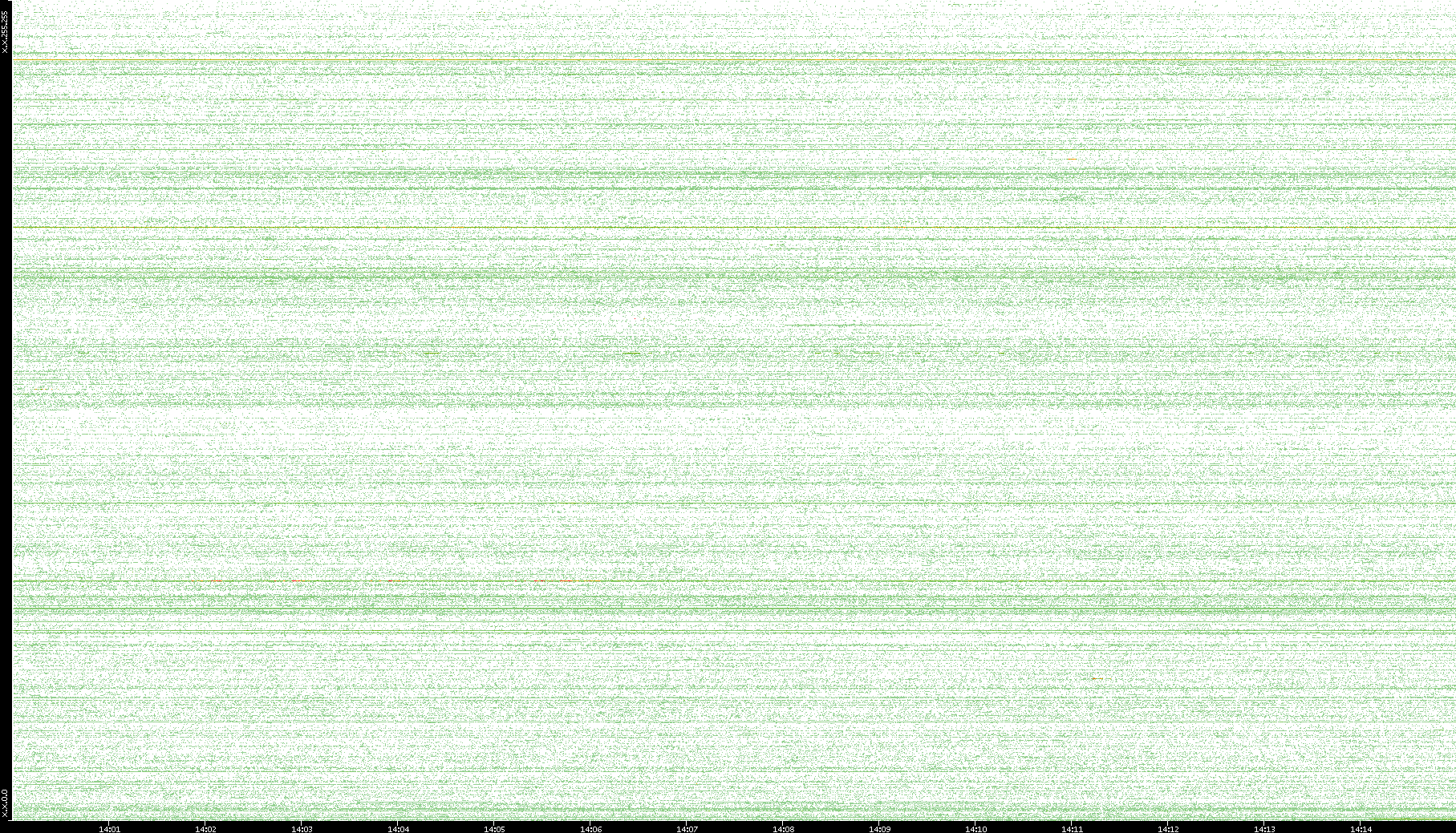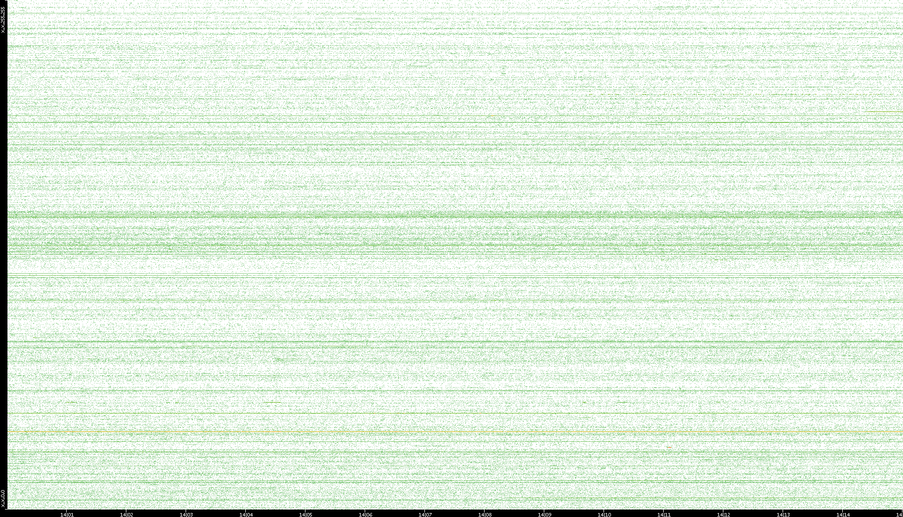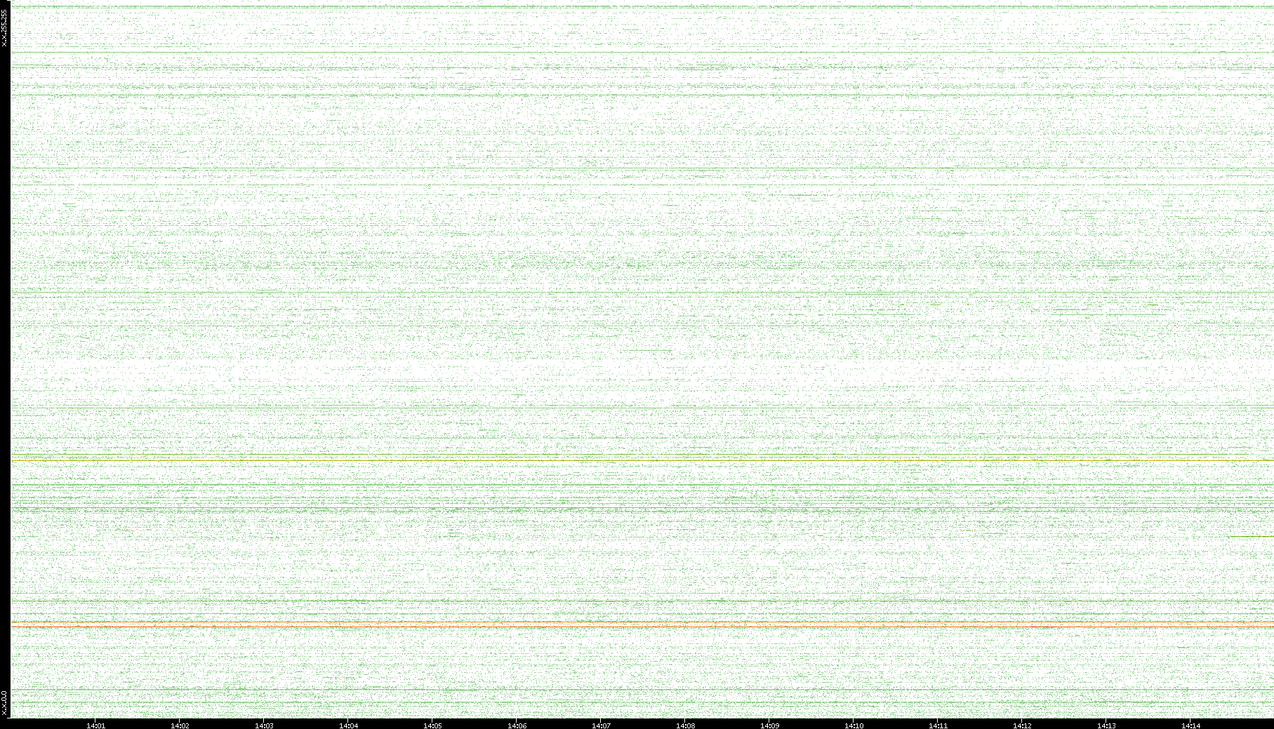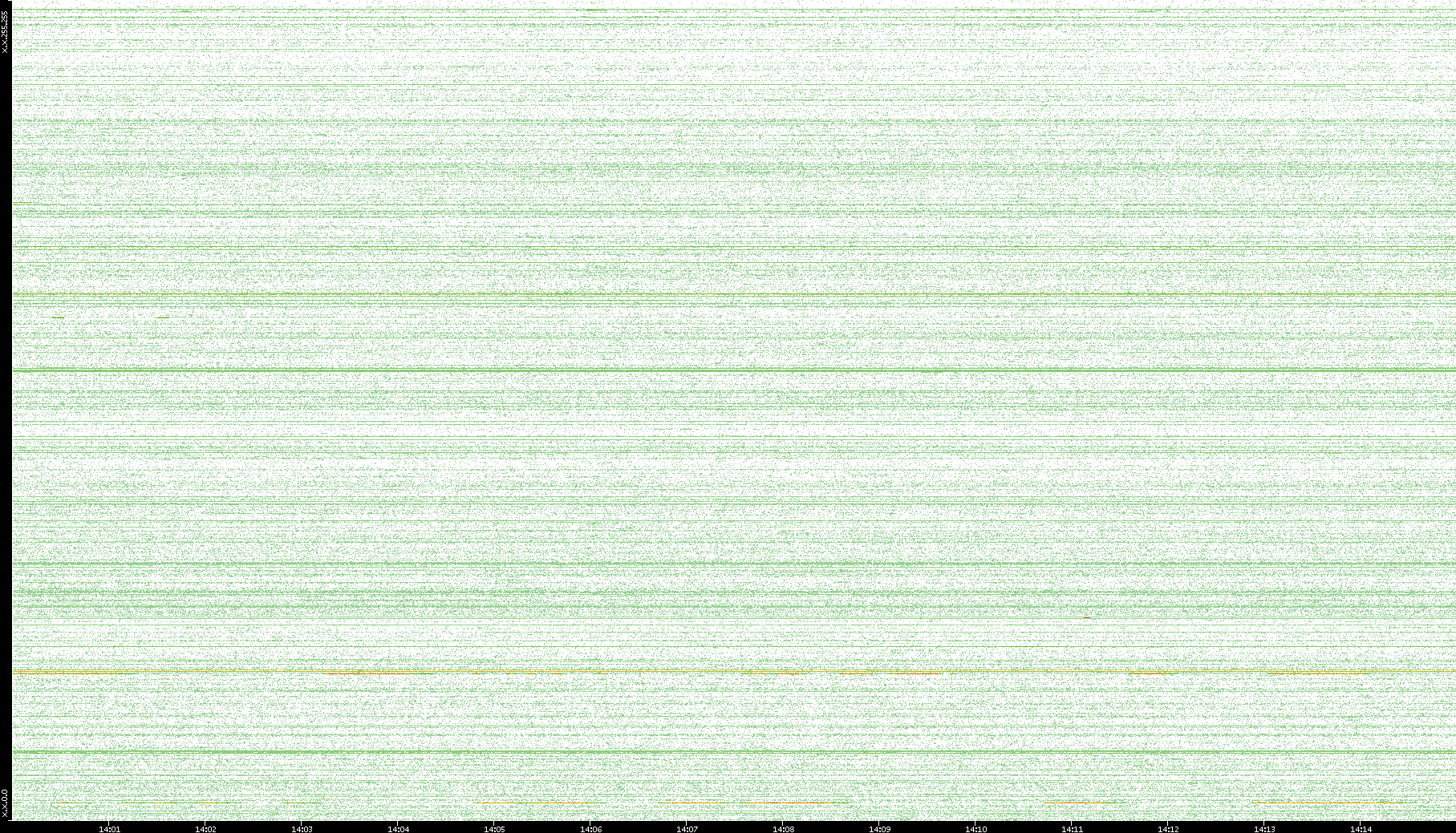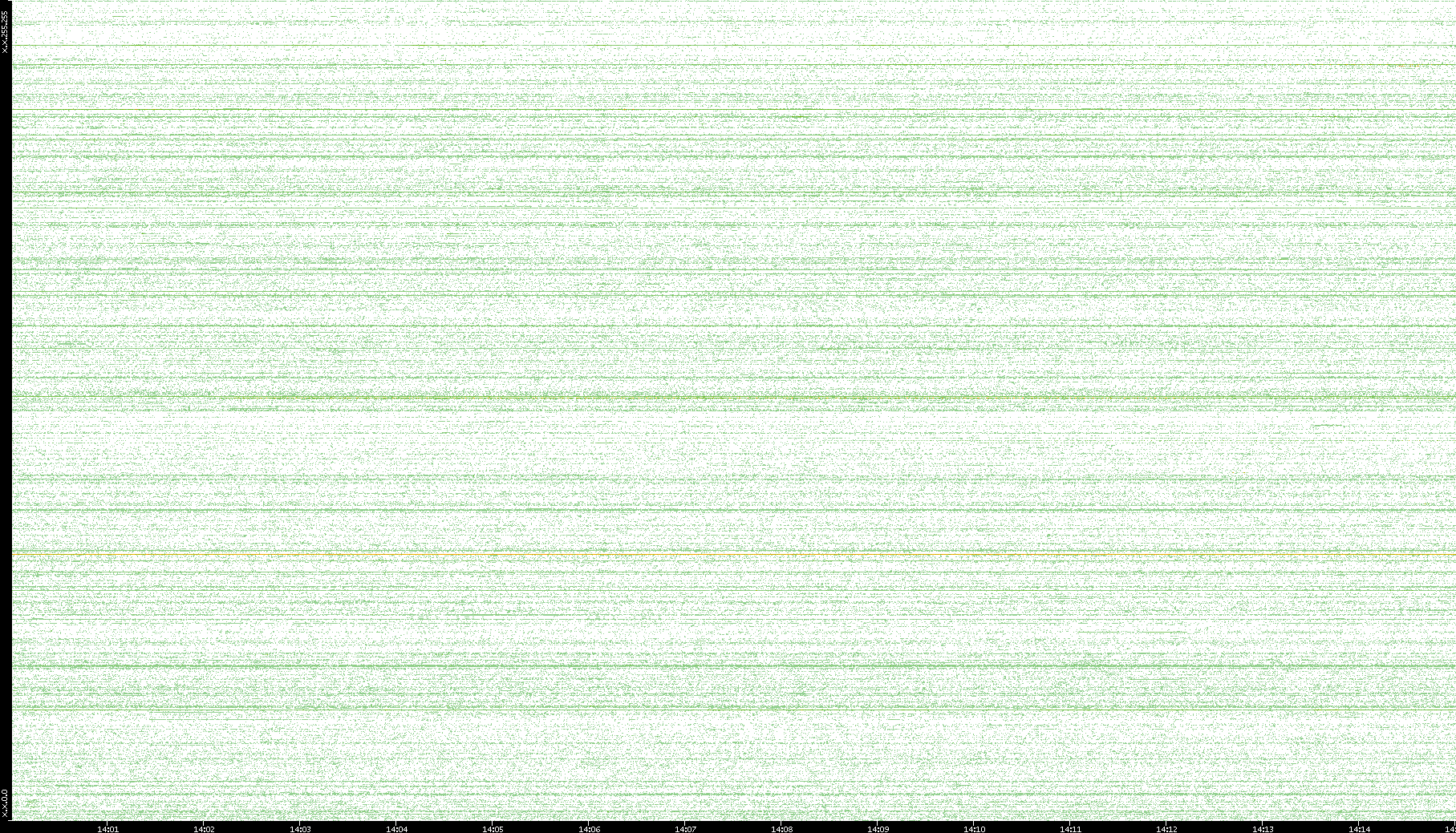 2007/03/14 Dest. IP vs. Time Dest. Port vs. Time Src. IP vs. Time Src. Port vs. Time Nb. of Packets vs. Time Throughput vs. Time Average Packet Size vs. Time Entropy of Port vs. Time