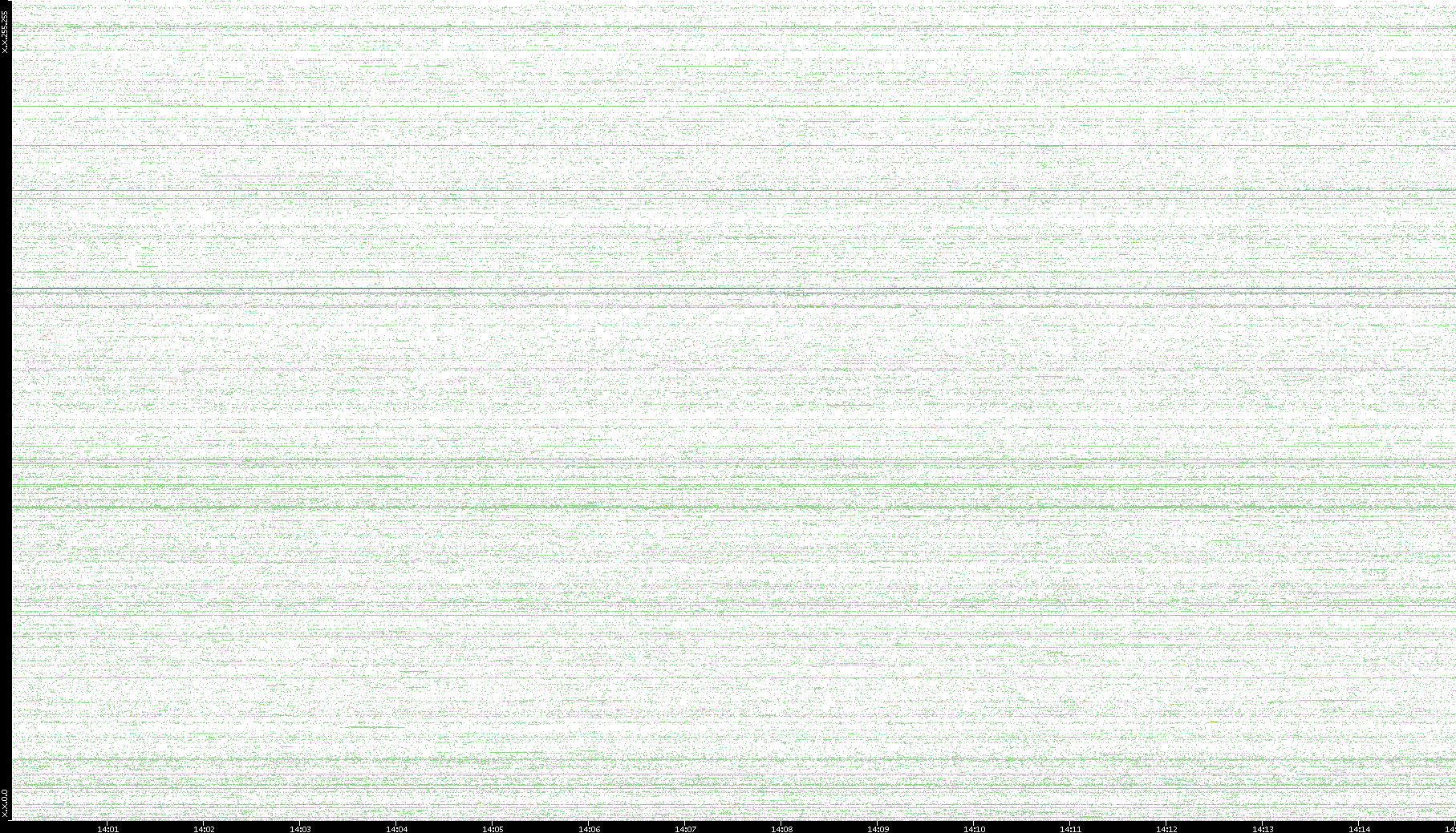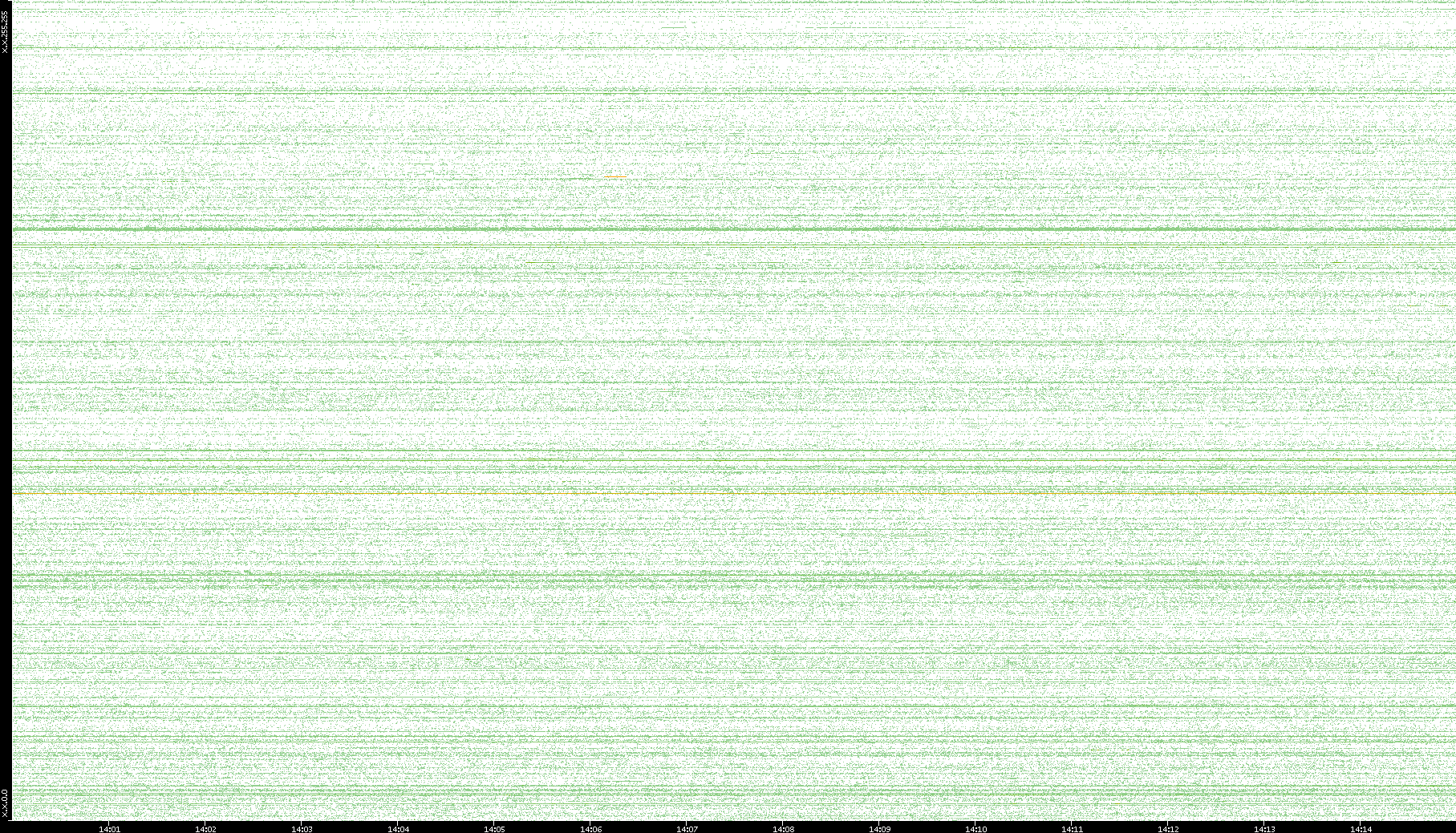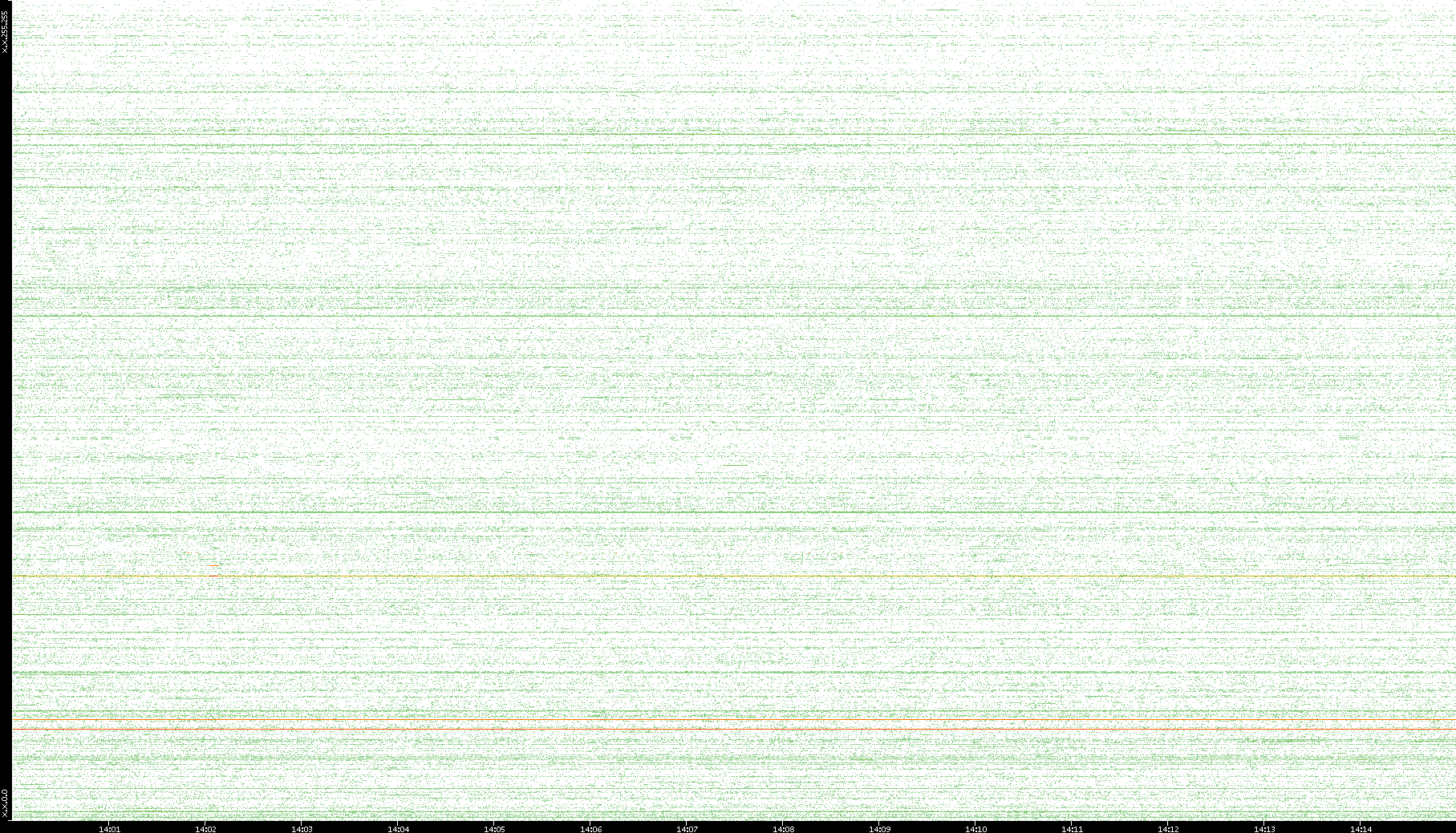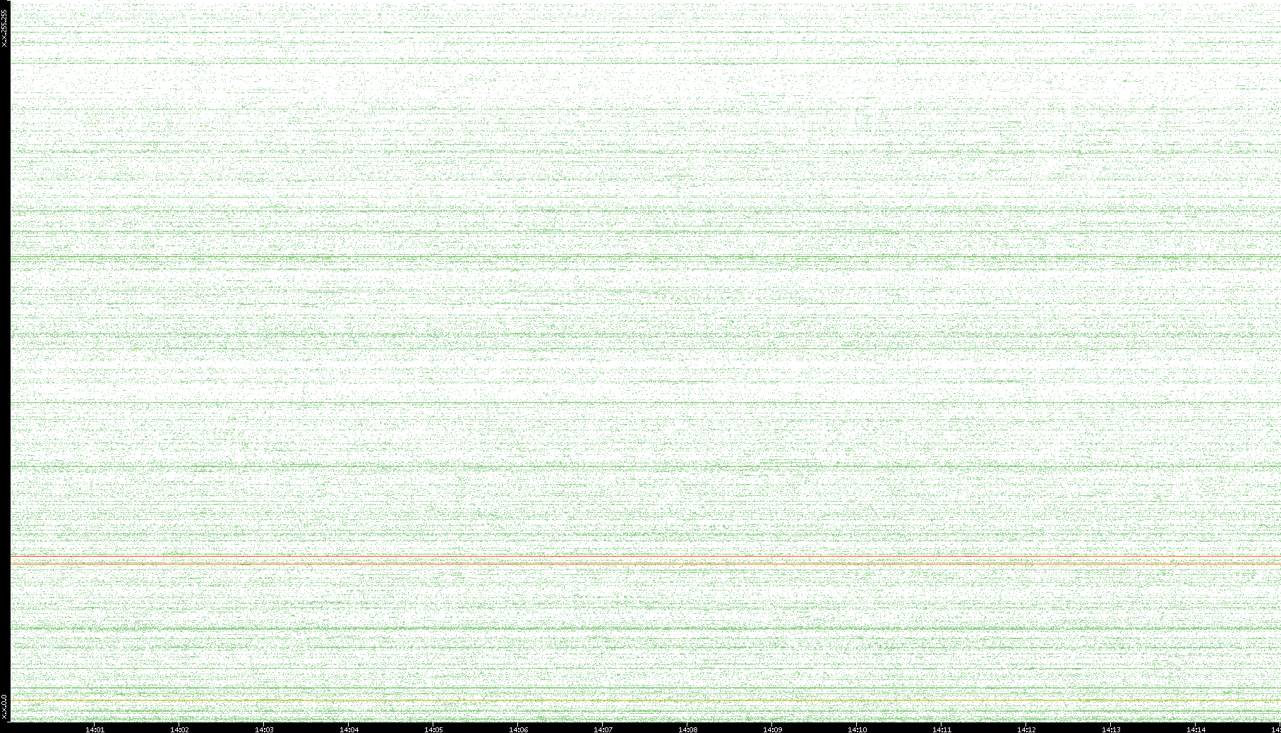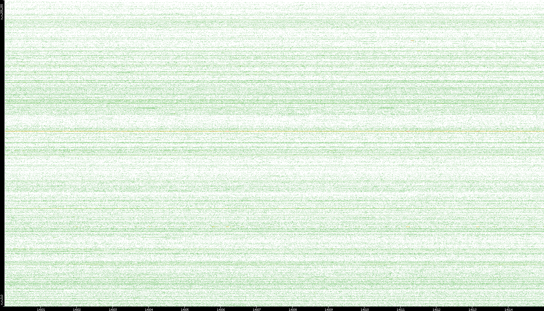 2007/03/14 Dest. IP vs. Time Dest. Port vs. Time Src. IP vs. Time Src. Port vs. Time Nb. of Packets vs. Time Throughput vs. Time Average Packet Size vs. Time Entropy of Port vs. Time