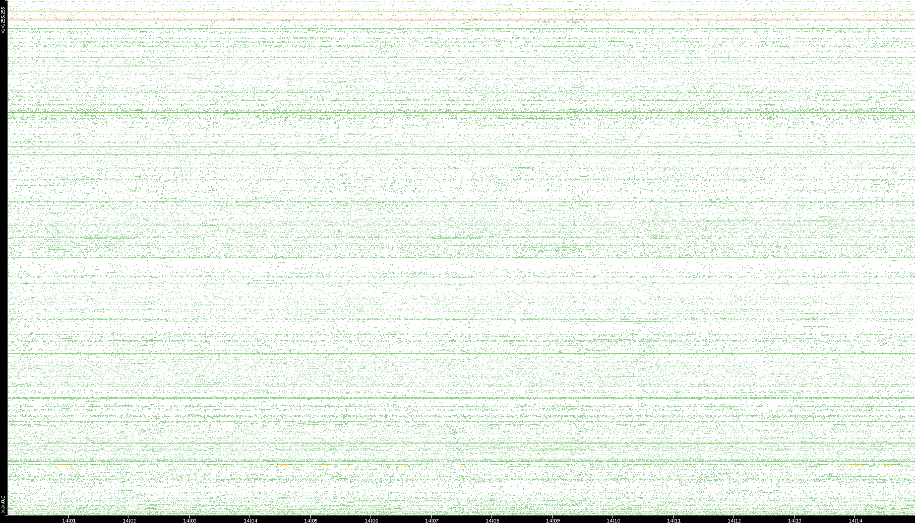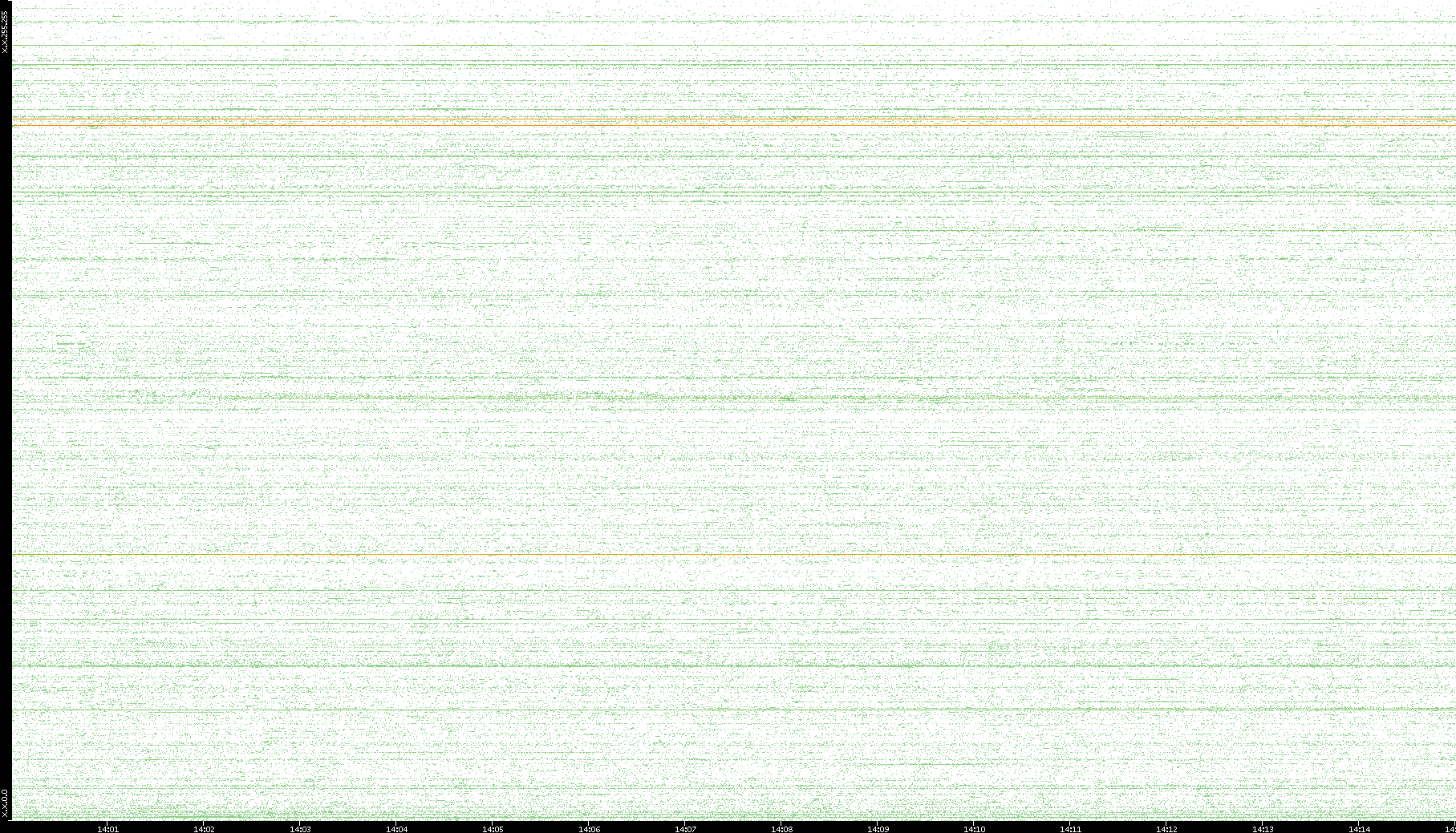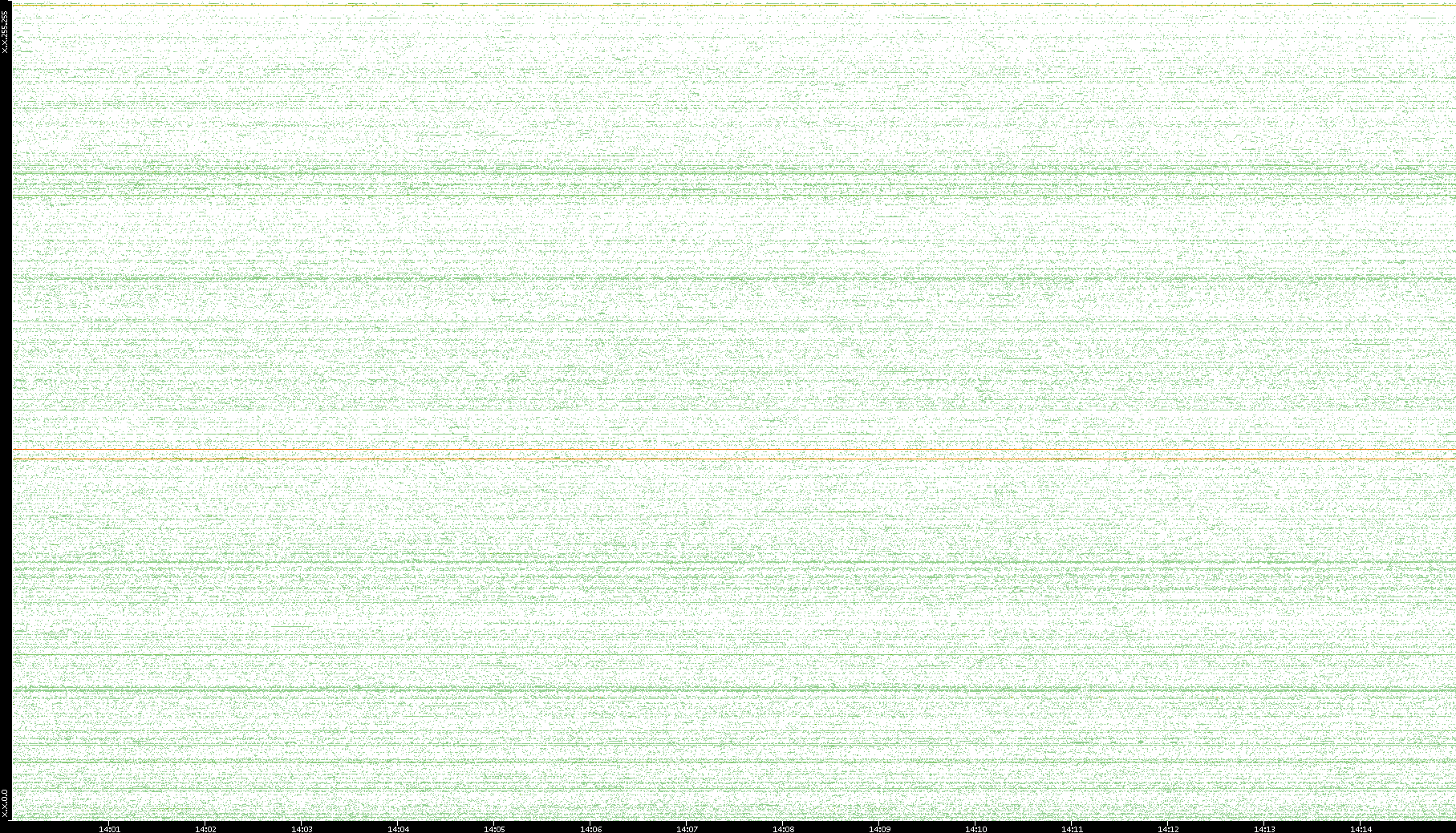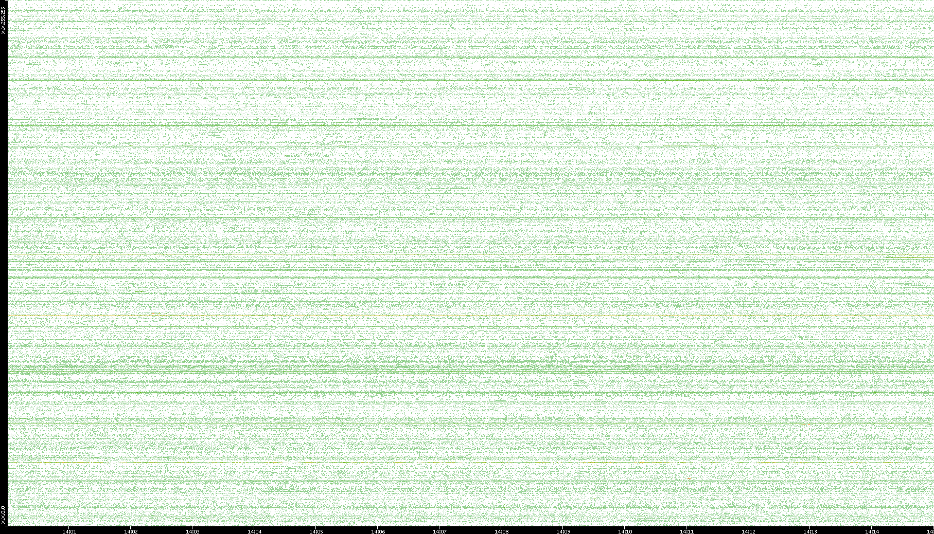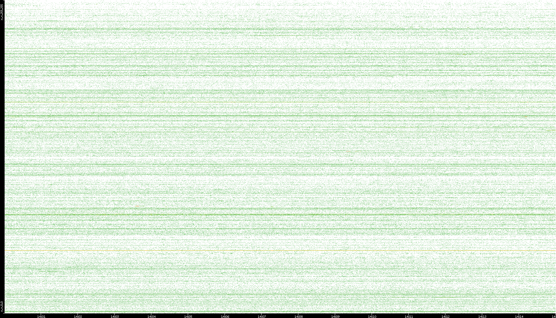 2007/03/14 Dest. IP vs. Time Dest. Port vs. Time Src. IP vs. Time Src. Port vs. Time Nb. of Packets vs. Time Throughput vs. Time Average Packet Size vs. Time Entropy of Port vs. Time