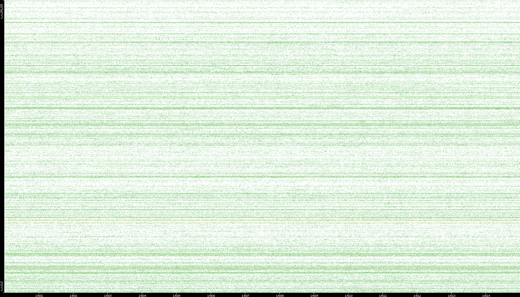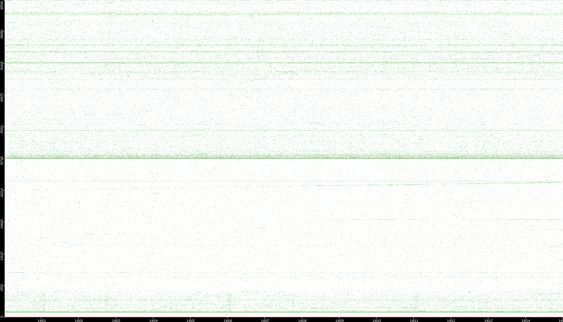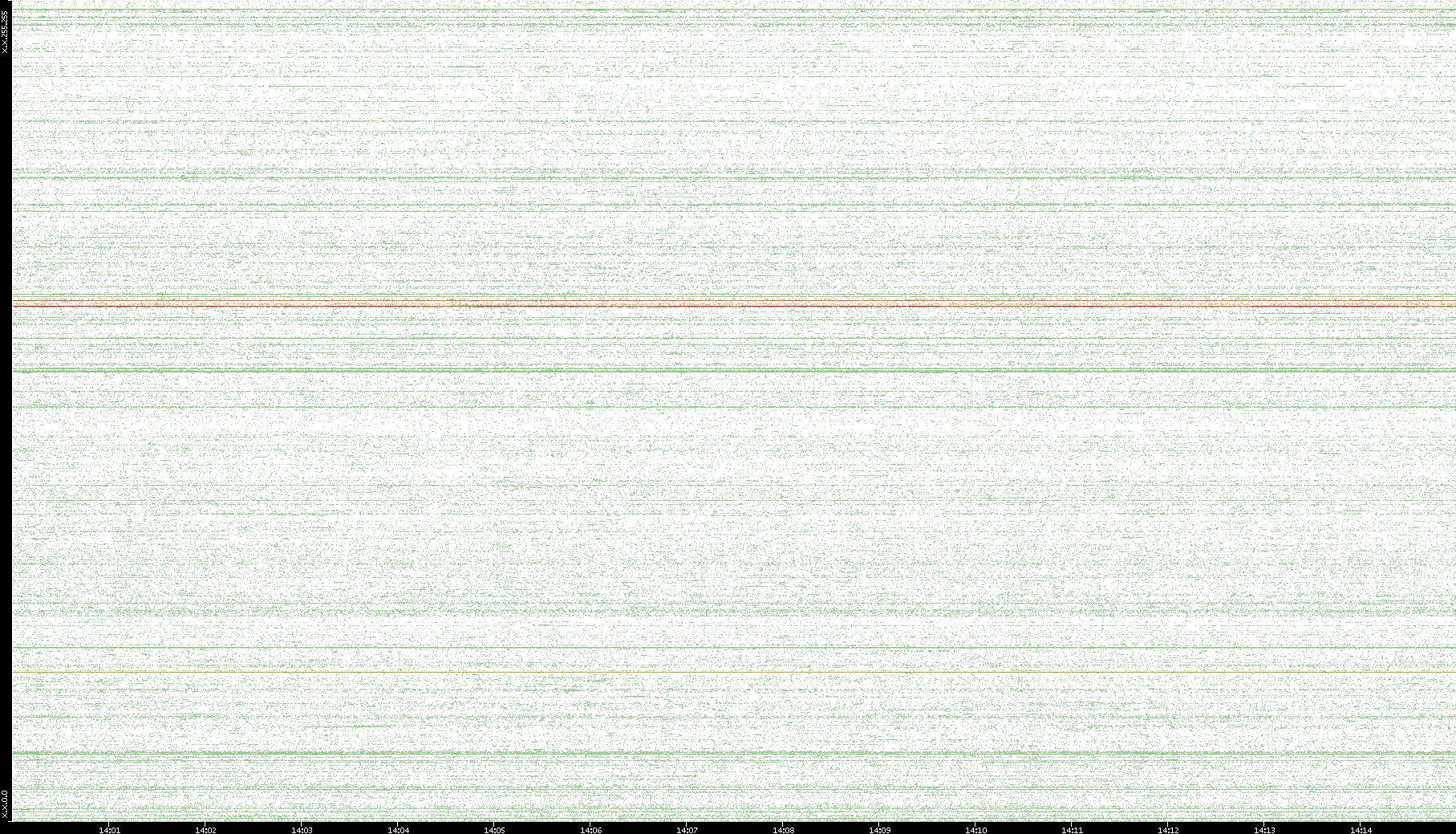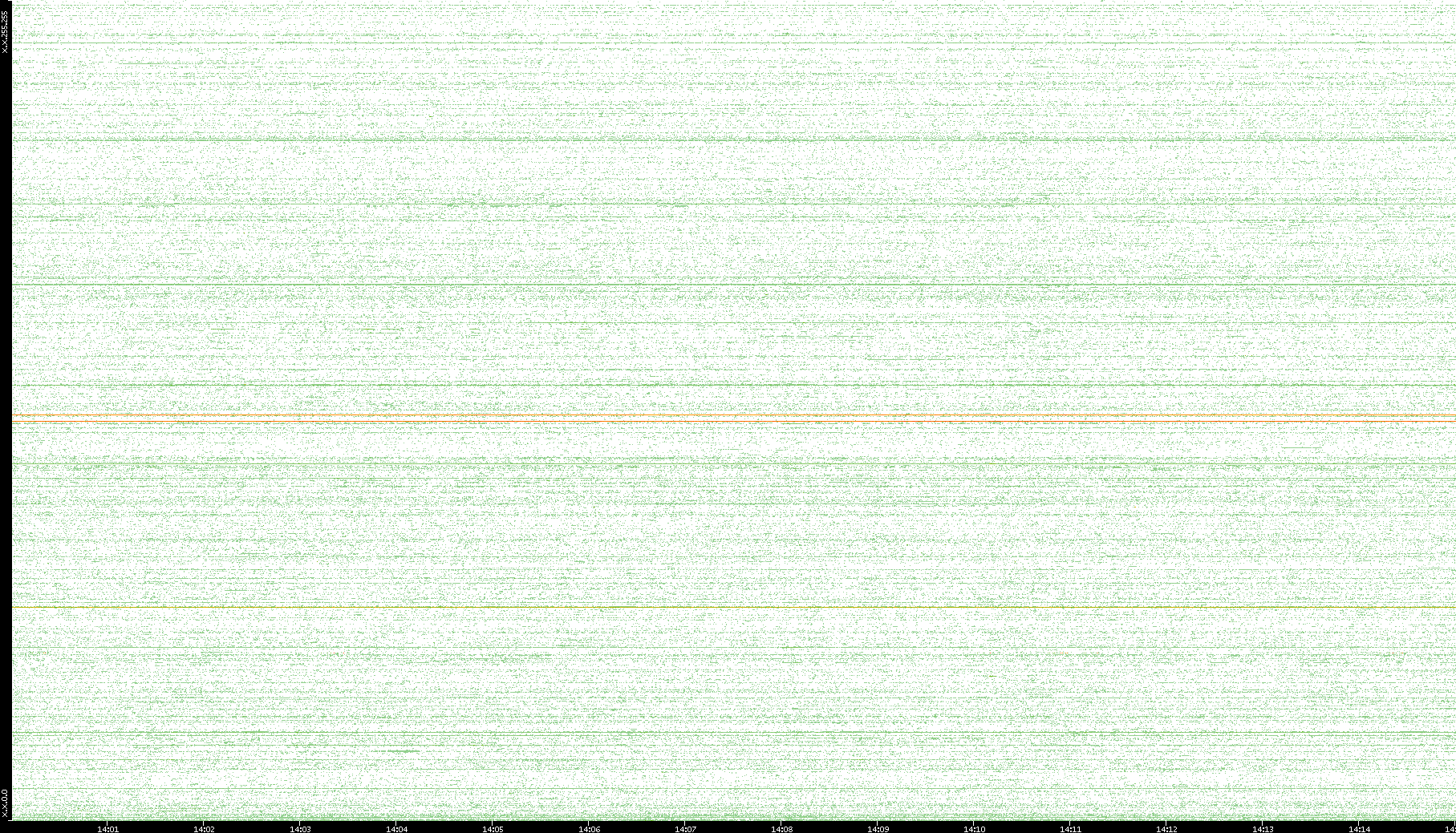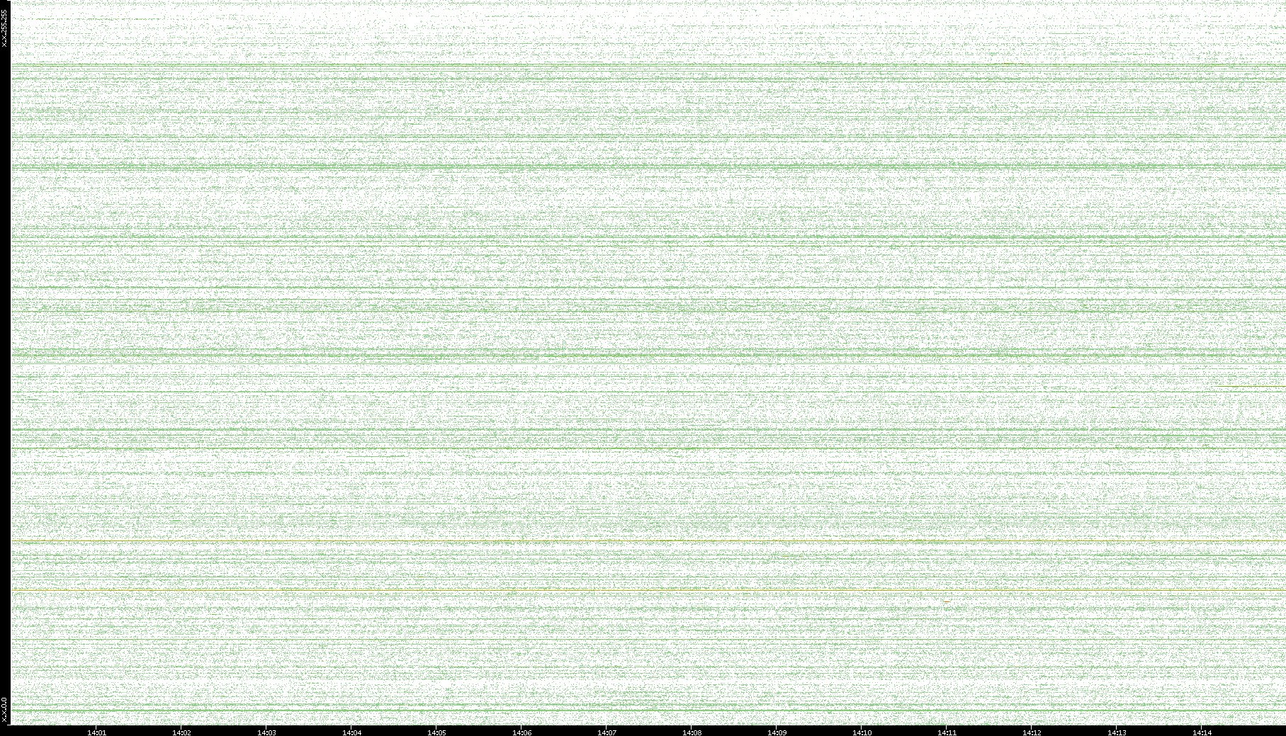 2007/03/14 Dest. IP vs. Time Dest. Port vs. Time Src. IP vs. Time Src. Port vs. Time Nb. of Packets vs. Time Throughput vs. Time Average Packet Size vs. Time Entropy of Port vs. Time