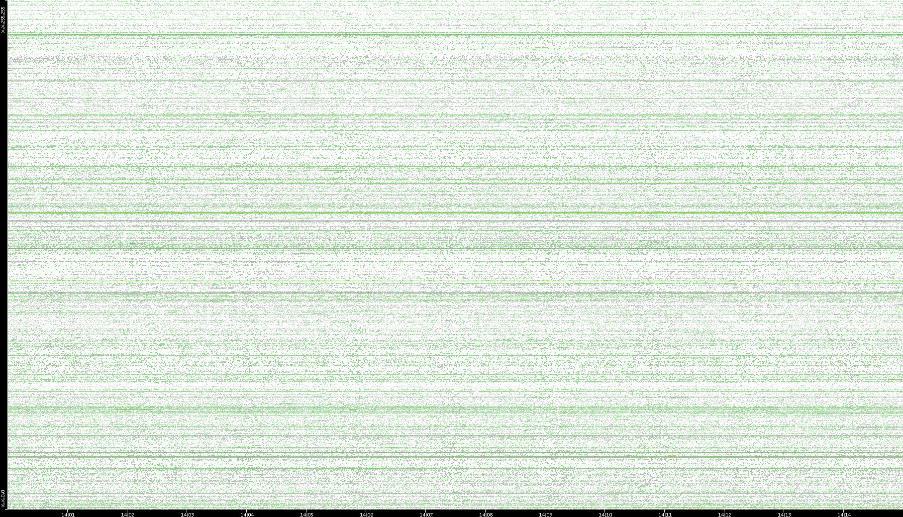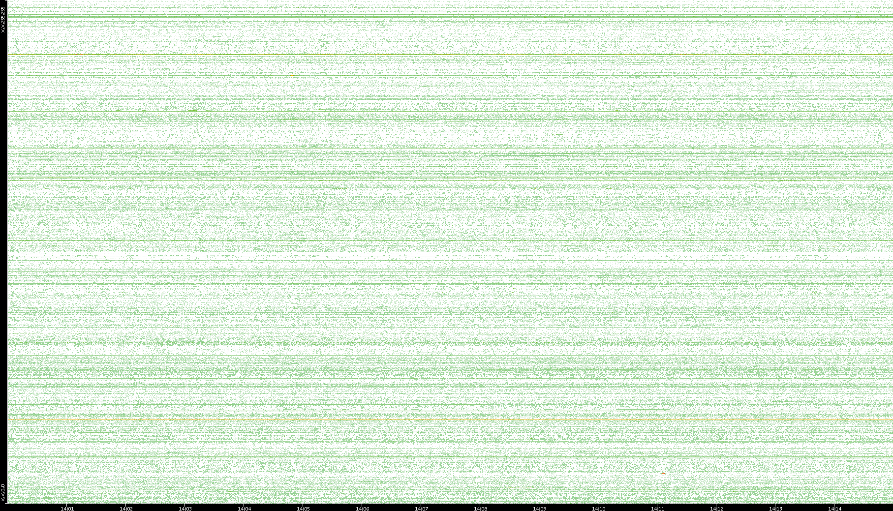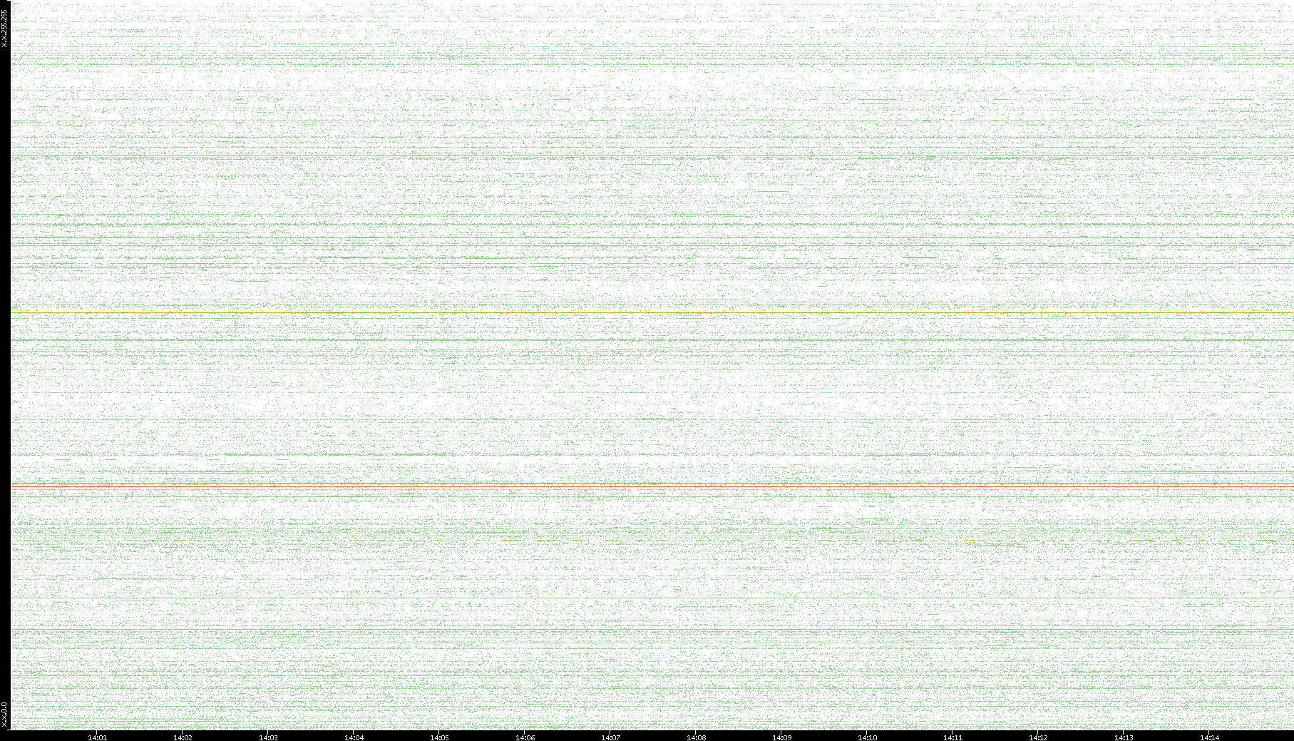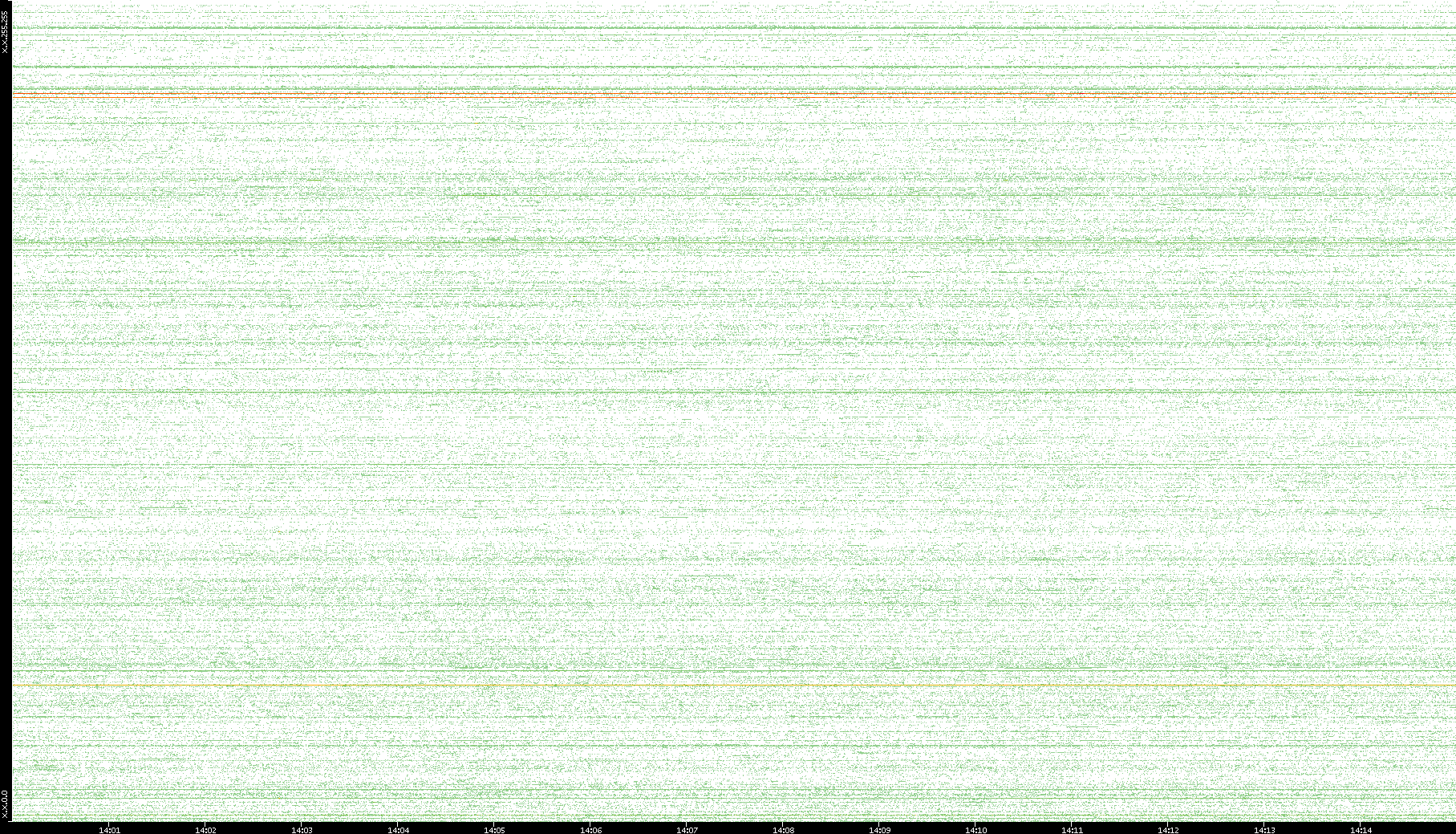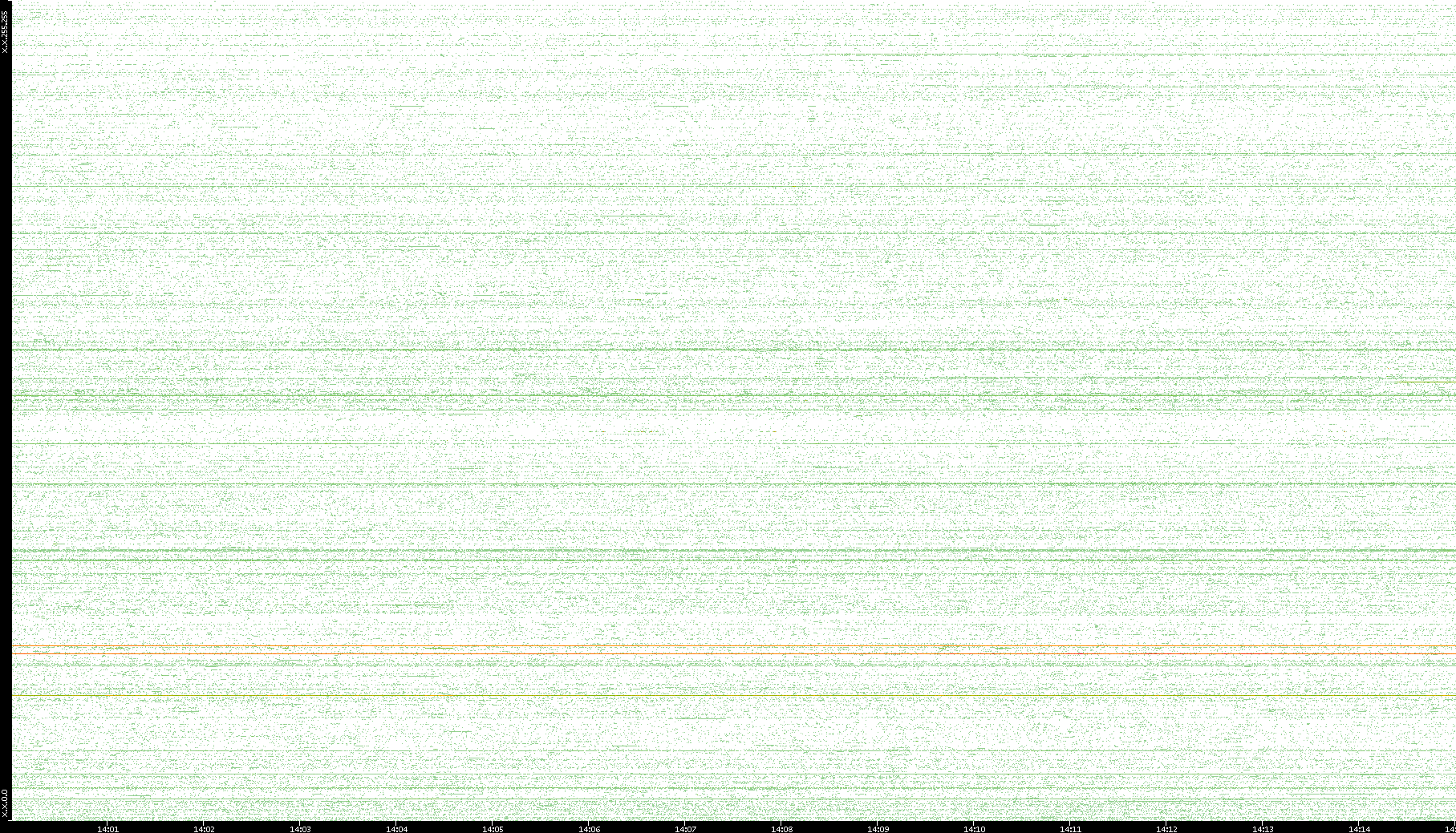 2007/03/14 Dest. IP vs. Time Dest. Port vs. Time Src. IP vs. Time Src. Port vs. Time Nb. of Packets vs. Time Throughput vs. Time Average Packet Size vs. Time Entropy of Port vs. Time