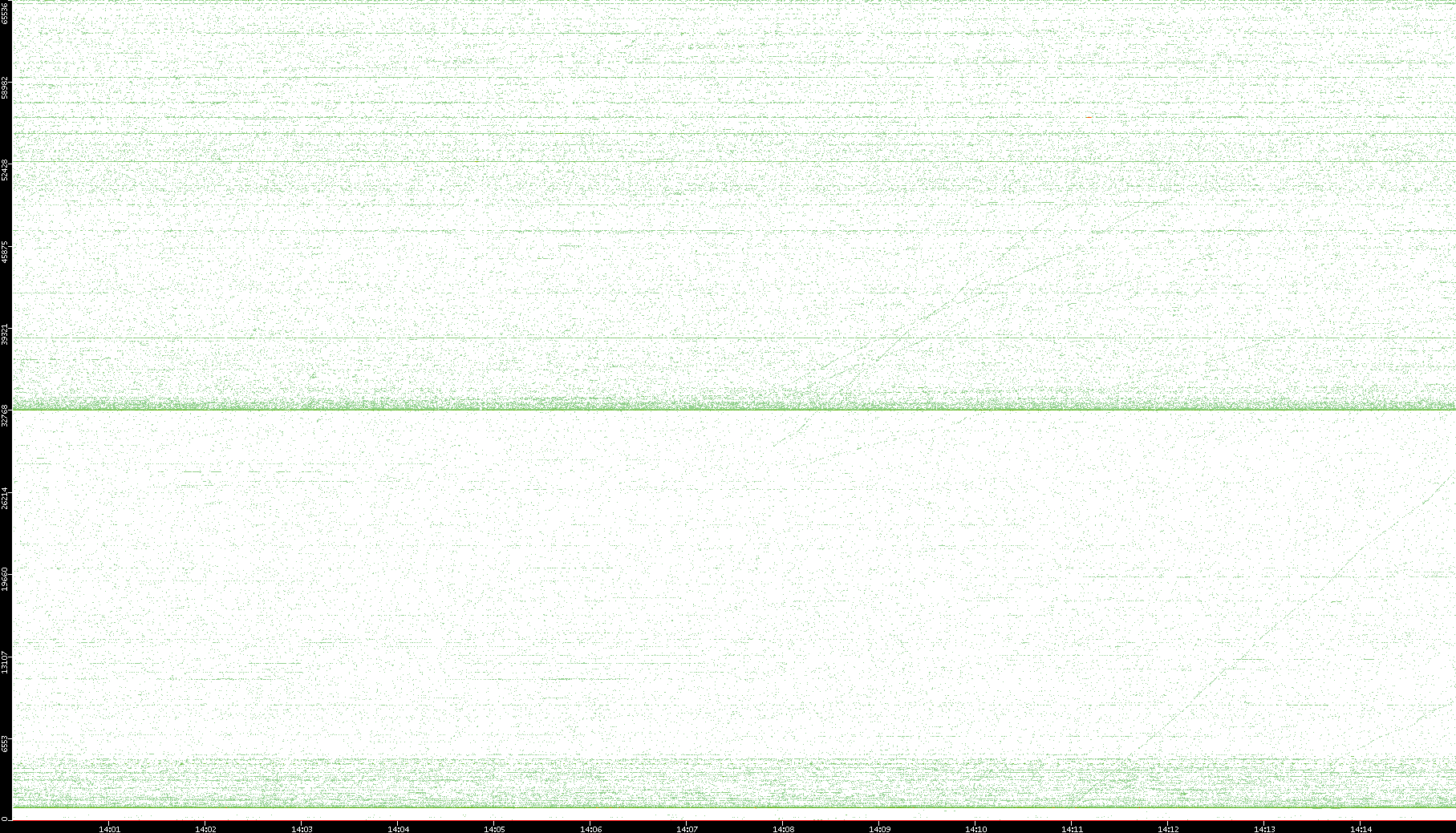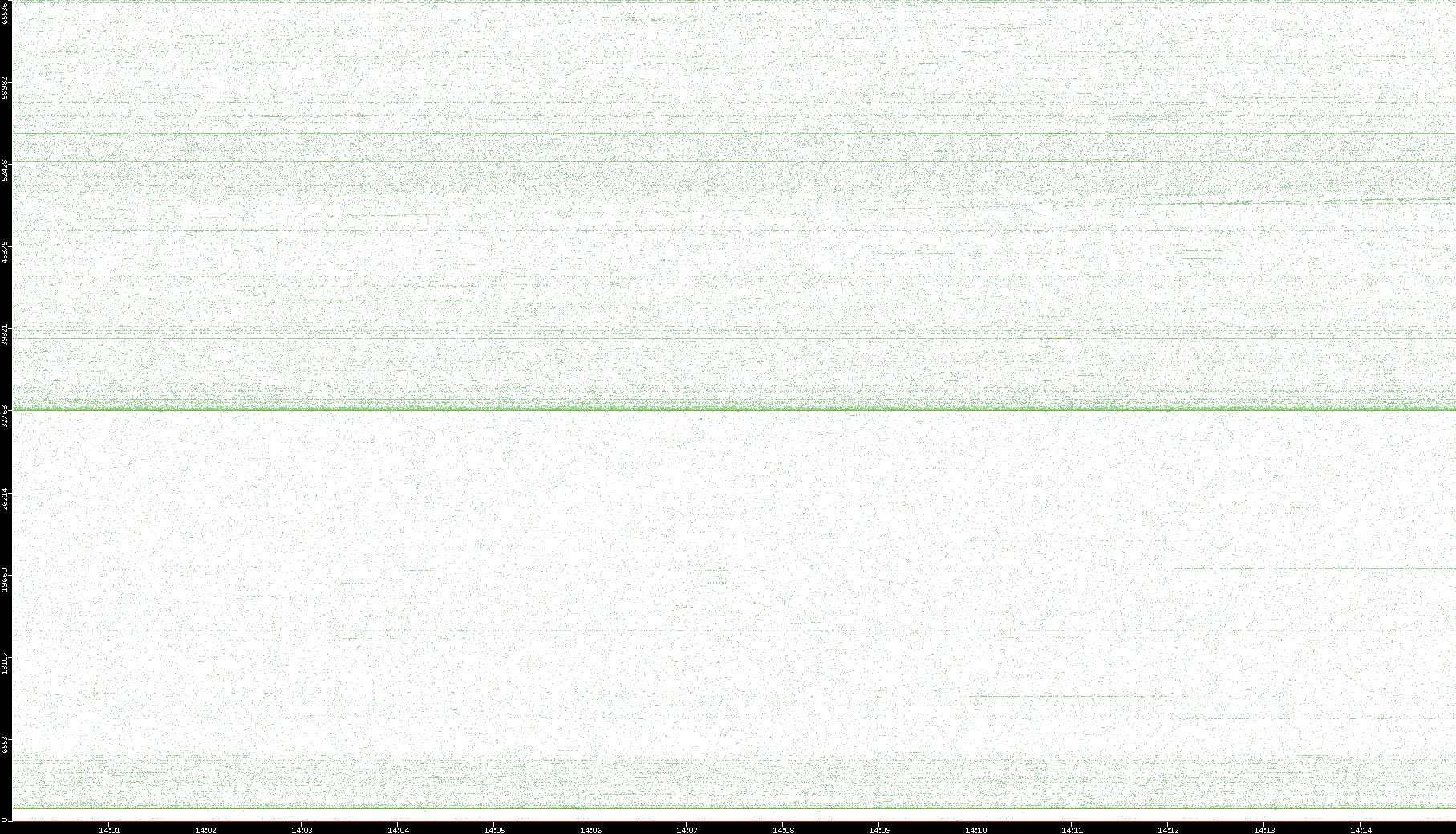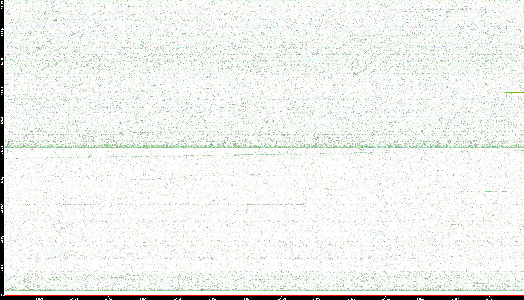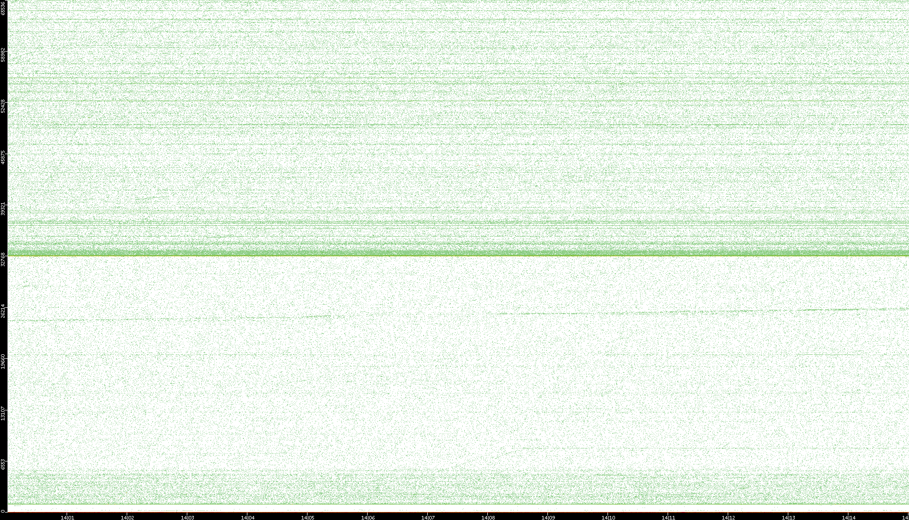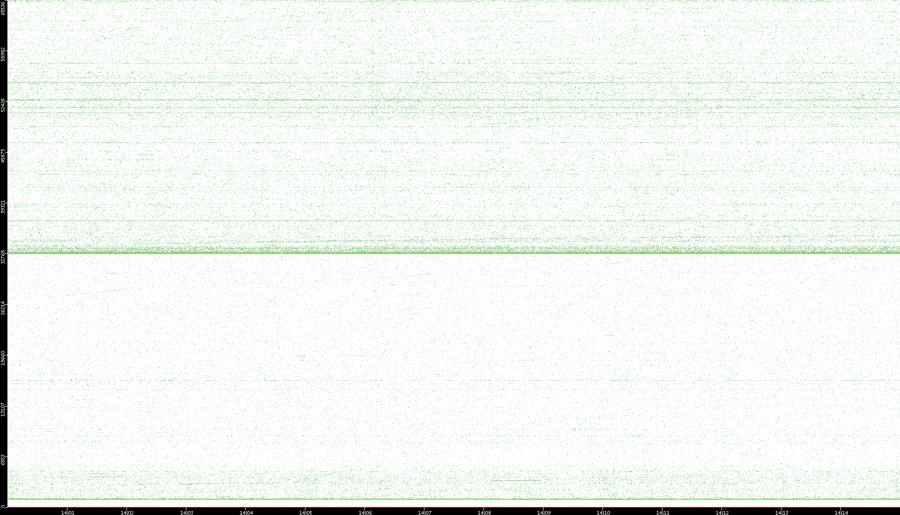 2007/03/14 Dest. IP vs. Time Dest. Port vs. Time Src. IP vs. Time Src. Port vs. Time Nb. of Packets vs. Time Throughput vs. Time Average Packet Size vs. Time Entropy of Port vs. Time