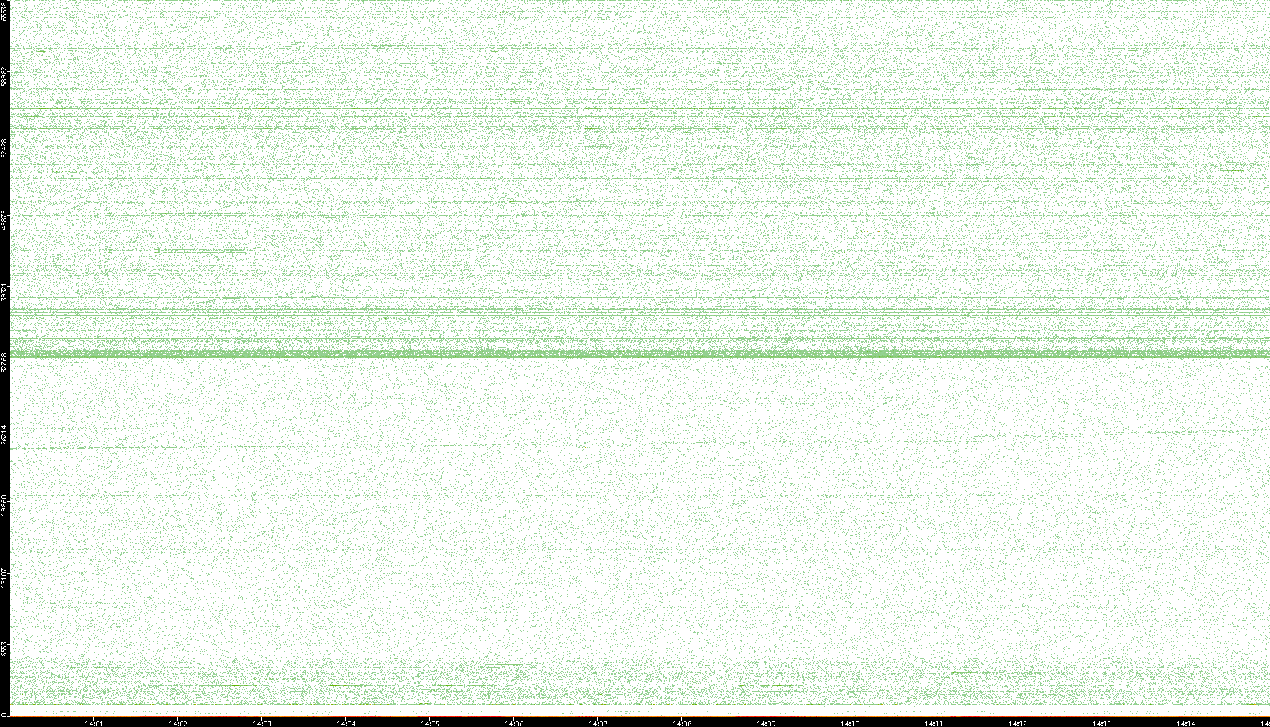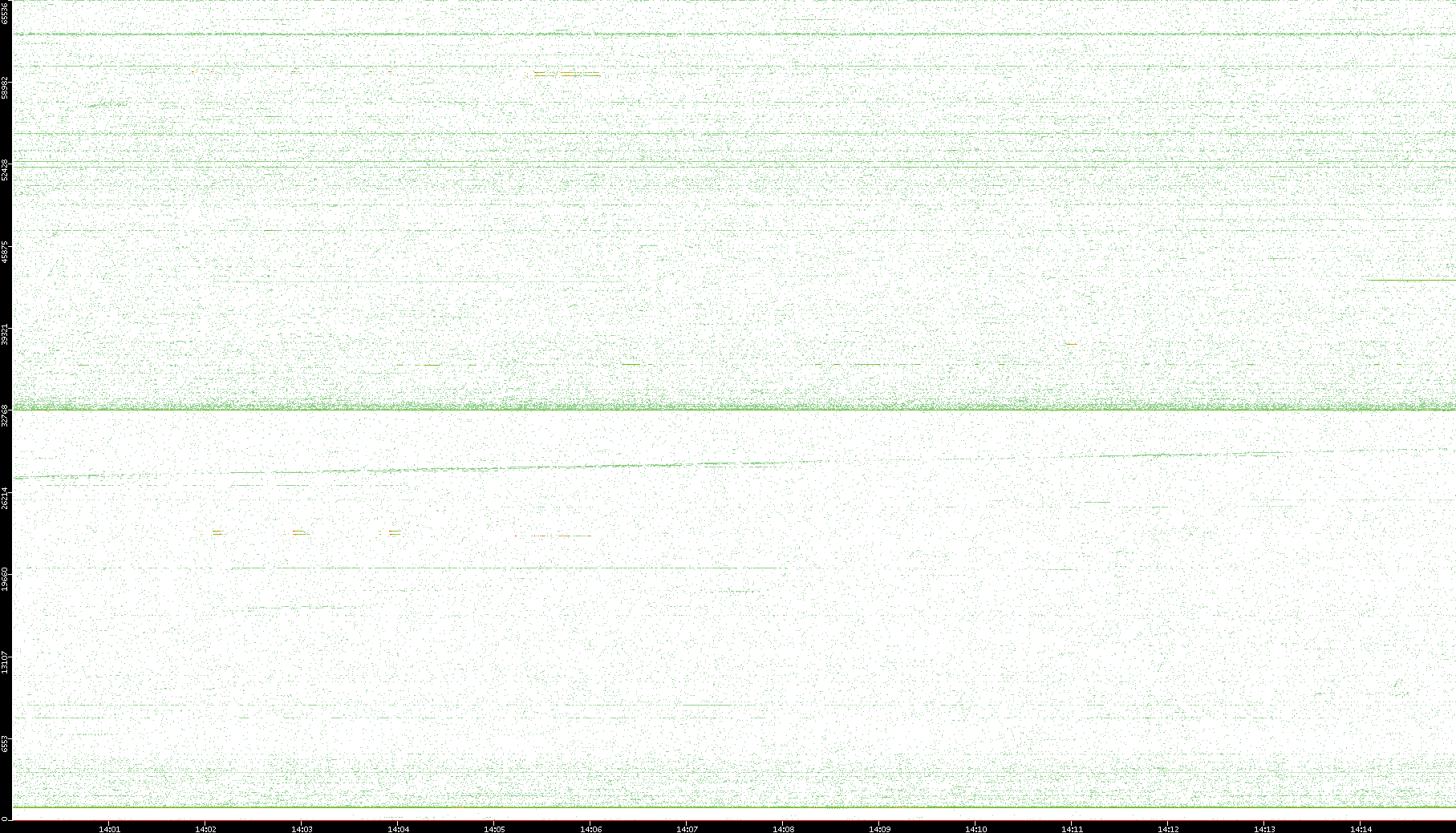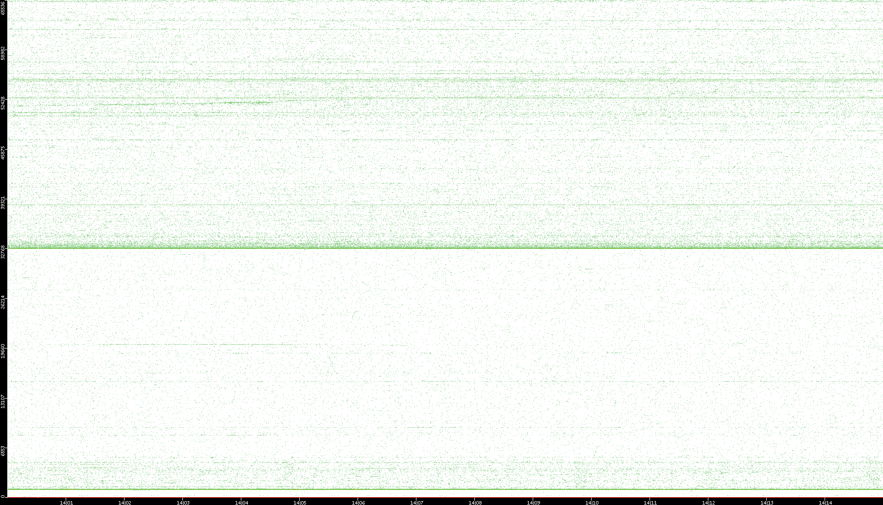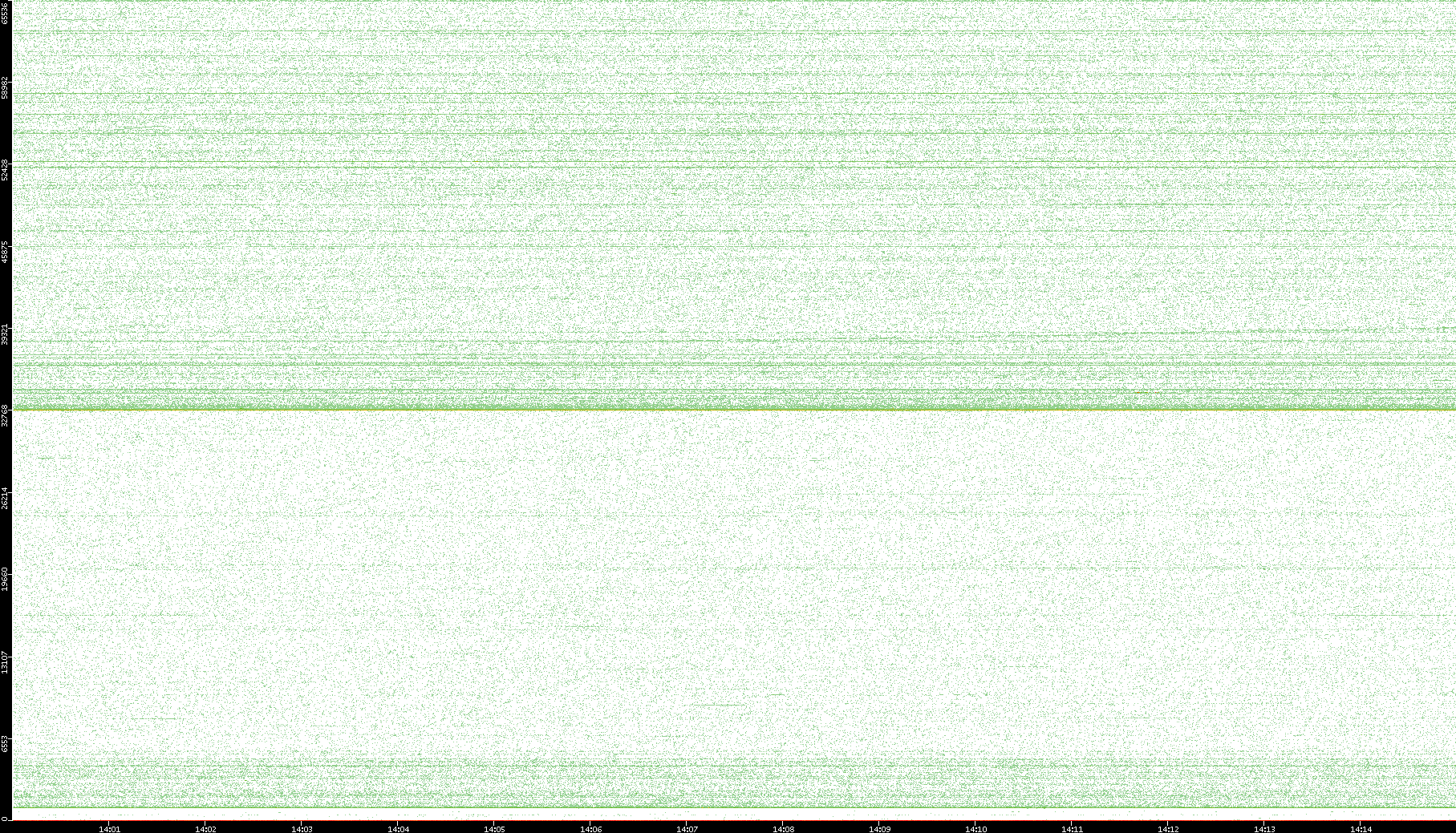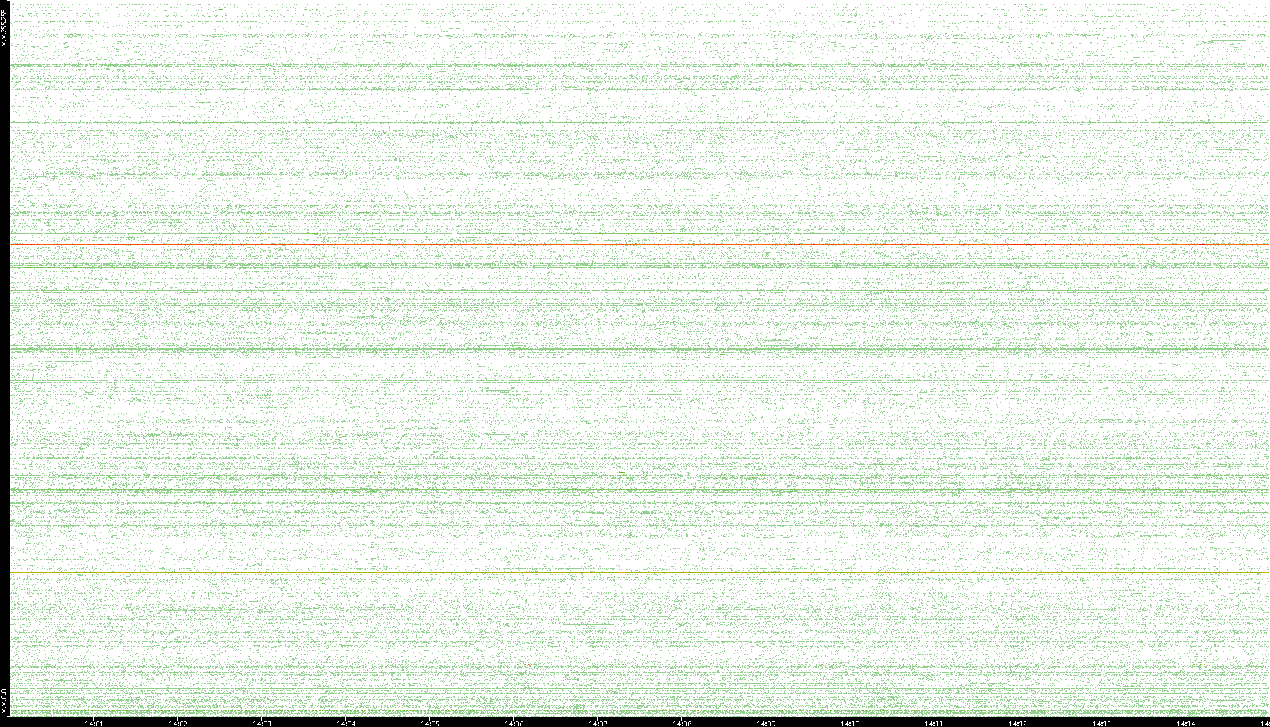 2007/03/14 Dest. IP vs. Time Dest. Port vs. Time Src. IP vs. Time Src. Port vs. Time Nb. of Packets vs. Time Throughput vs. Time Average Packet Size vs. Time Entropy of Port vs. Time