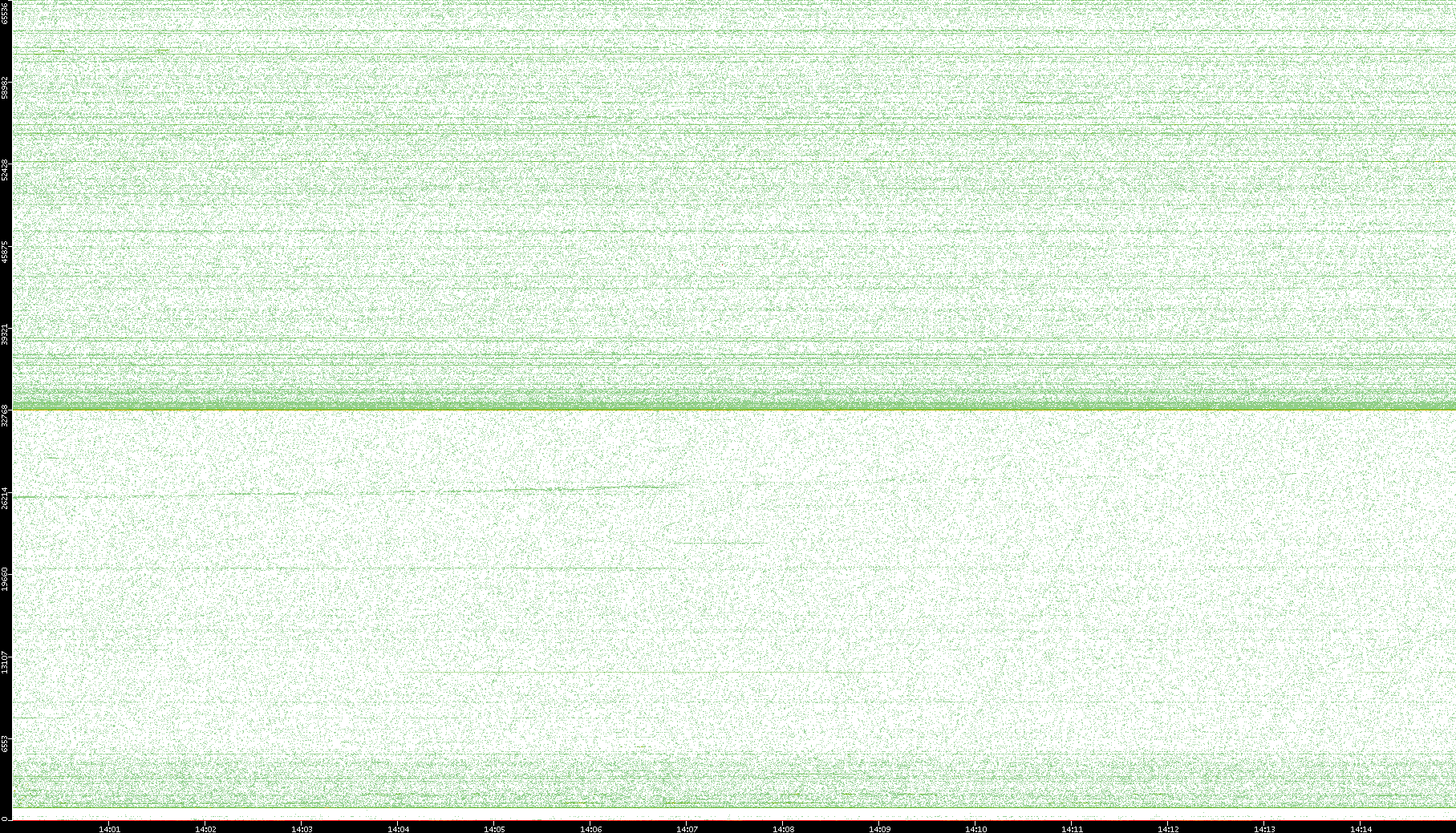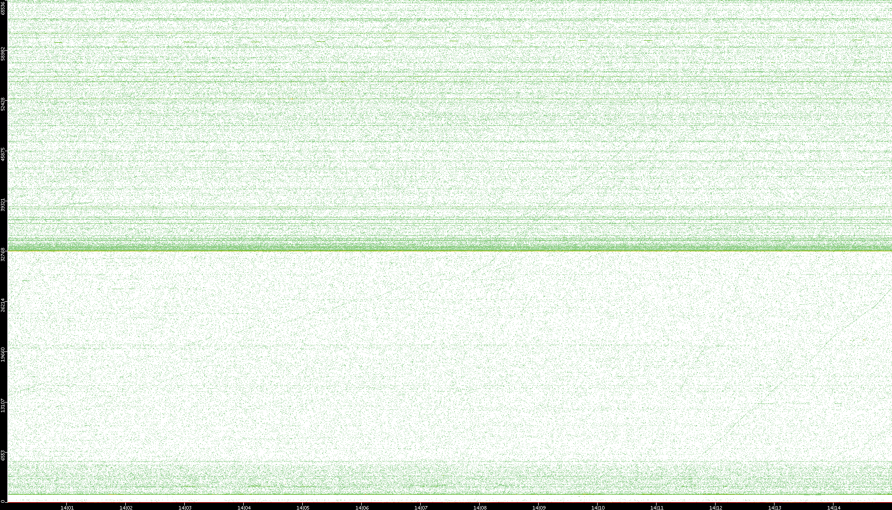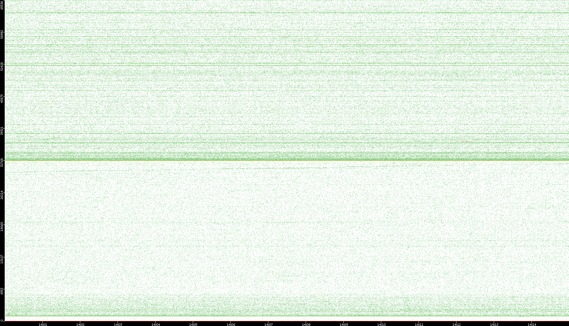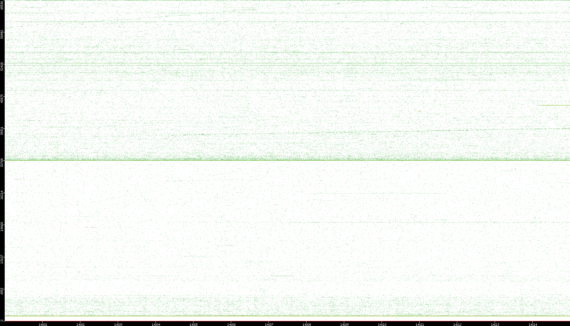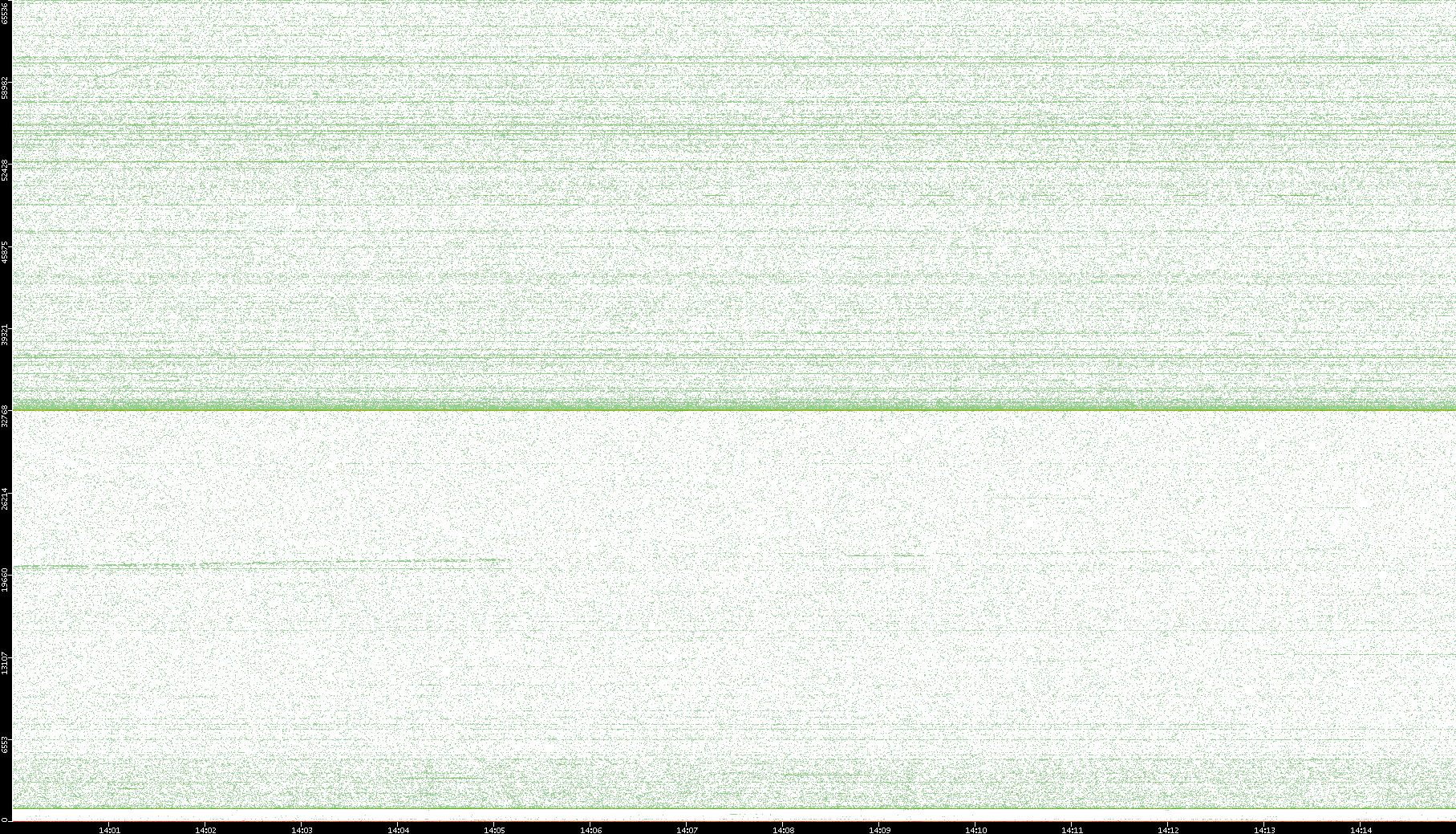 2007/03/14 Dest. IP vs. Time Dest. Port vs. Time Src. IP vs. Time Src. Port vs. Time Nb. of Packets vs. Time Throughput vs. Time Average Packet Size vs. Time Entropy of Port vs. Time
