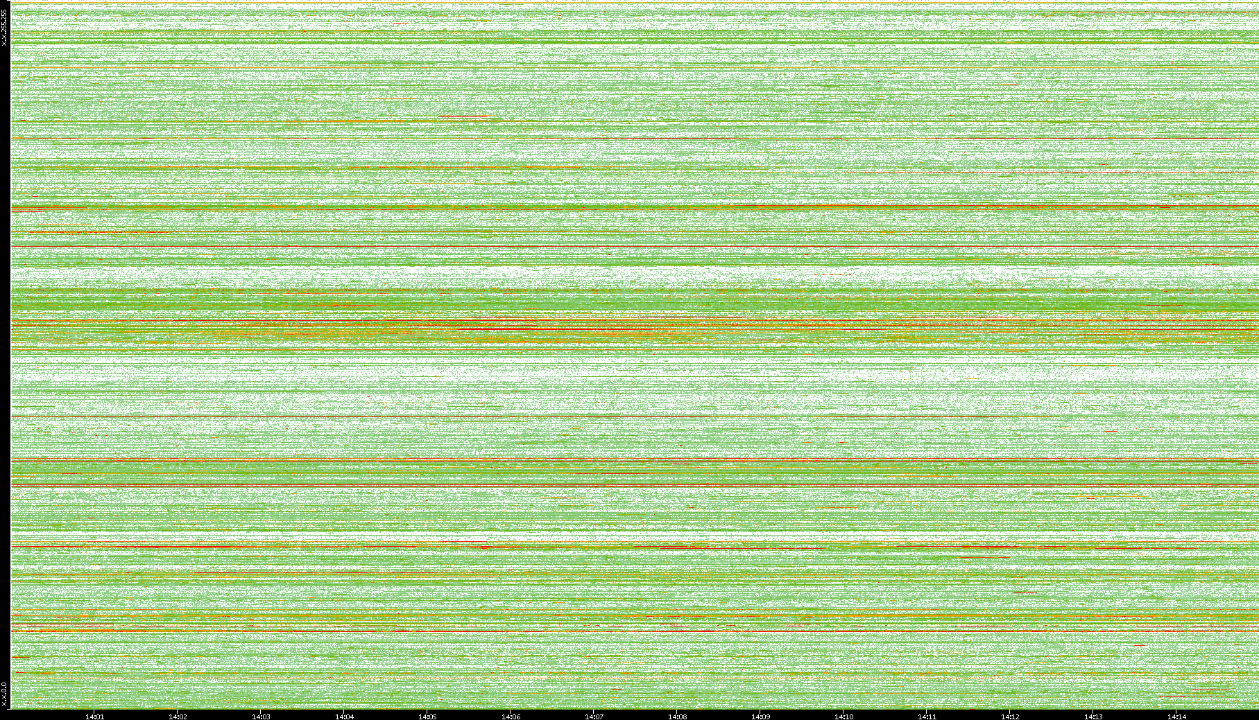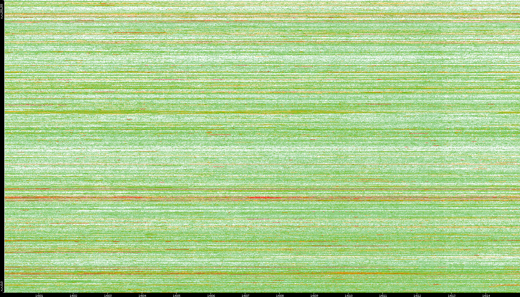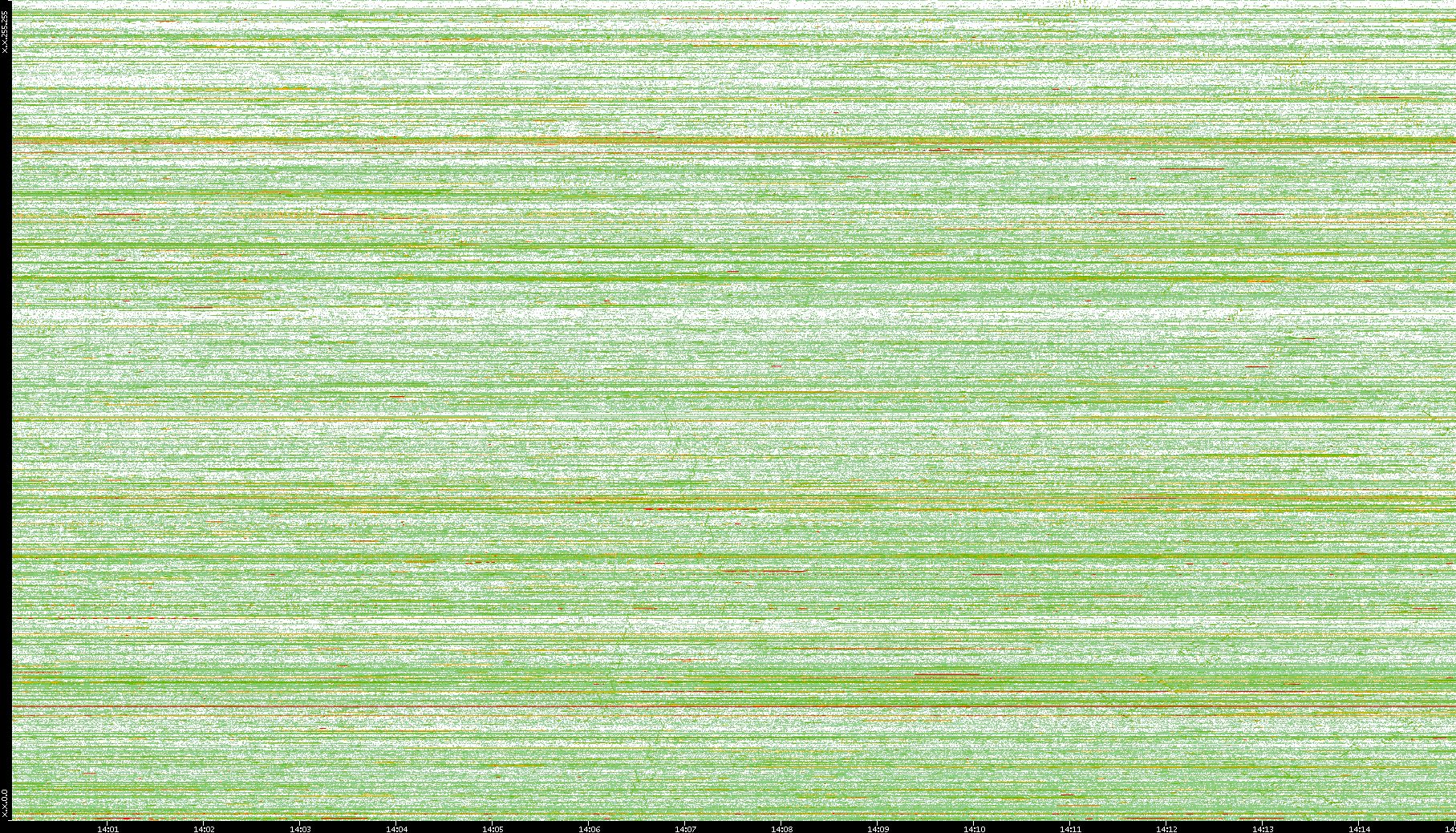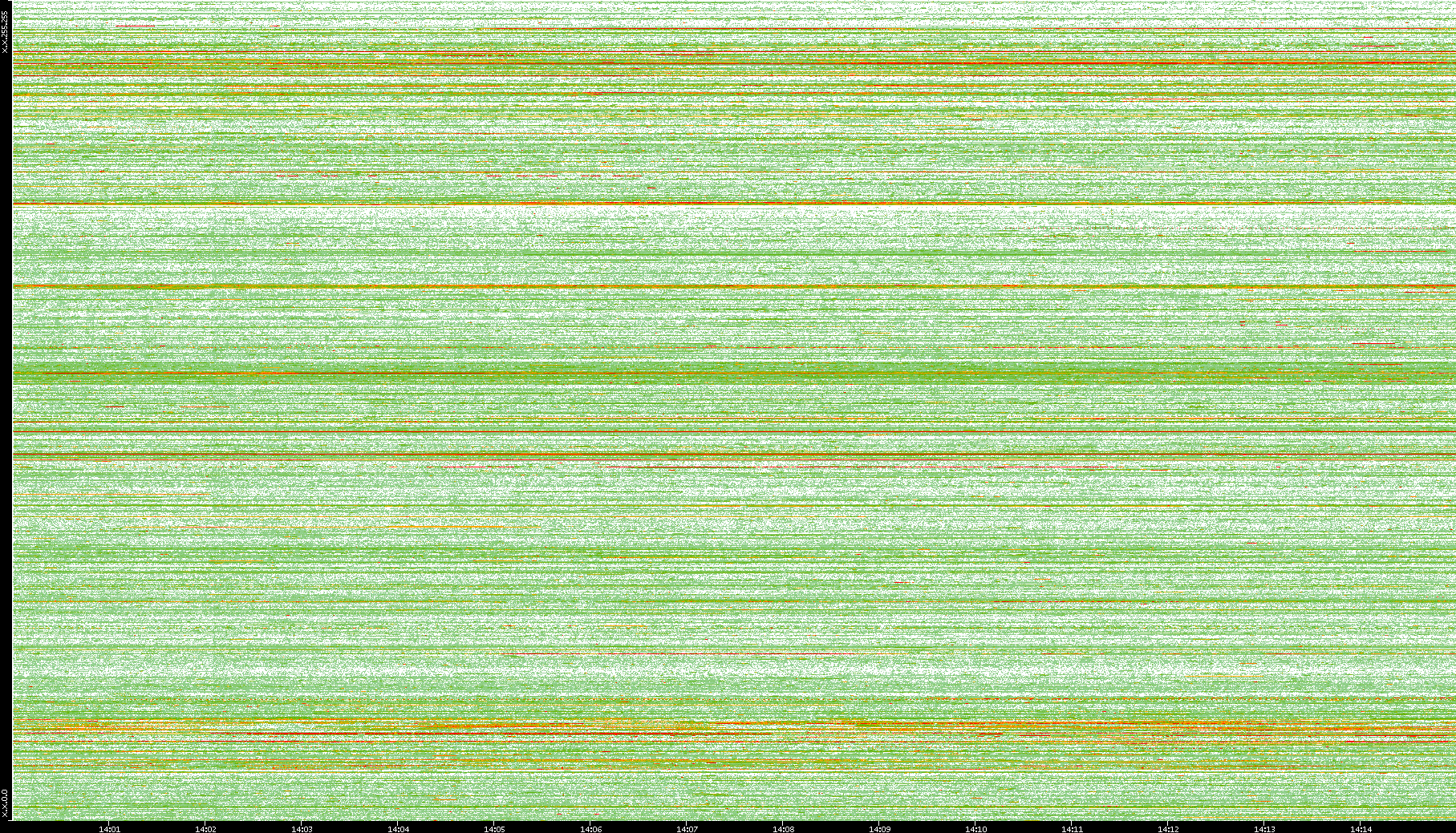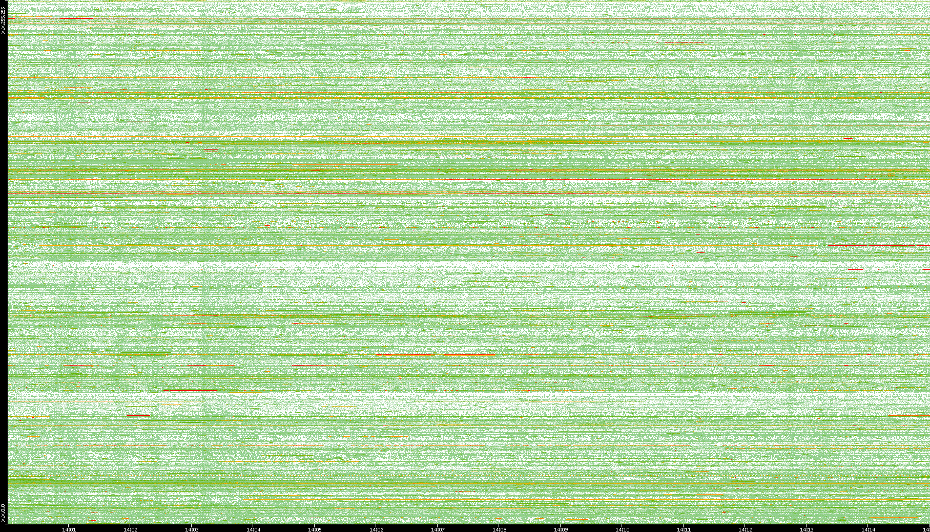 | Date | Dest. IP vs. Time | Dest. Port vs. Time | Src. IP vs. Time | Src. Port vs. Time | Nb. of Packets vs. Time | Throughput vs. Time | Average Packet Size vs. Time | Entropy of Port vs. Time |