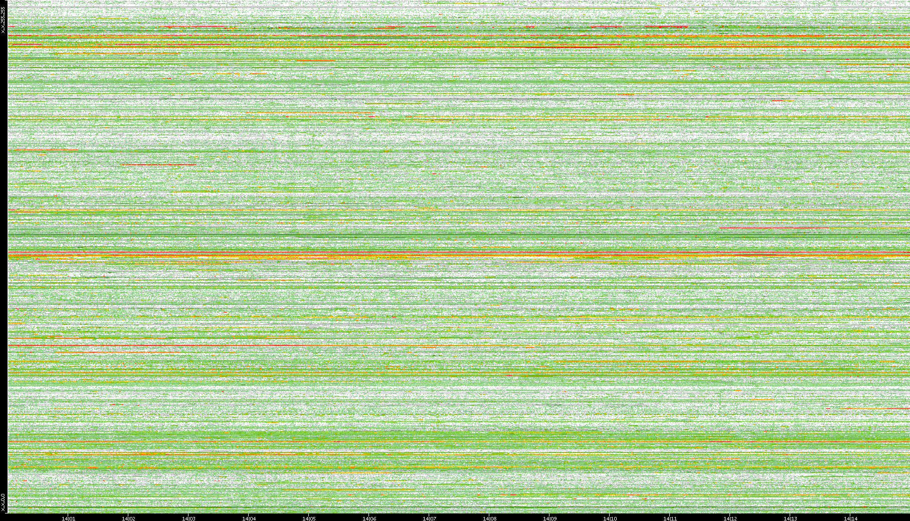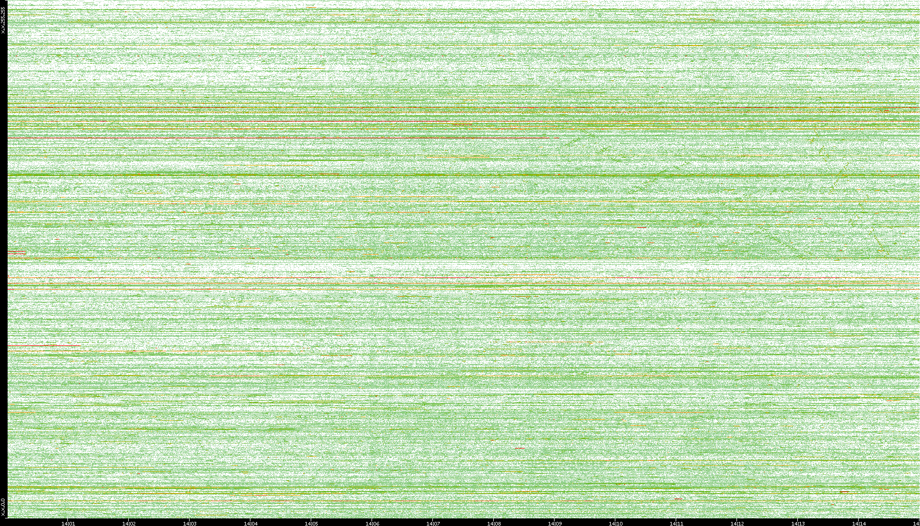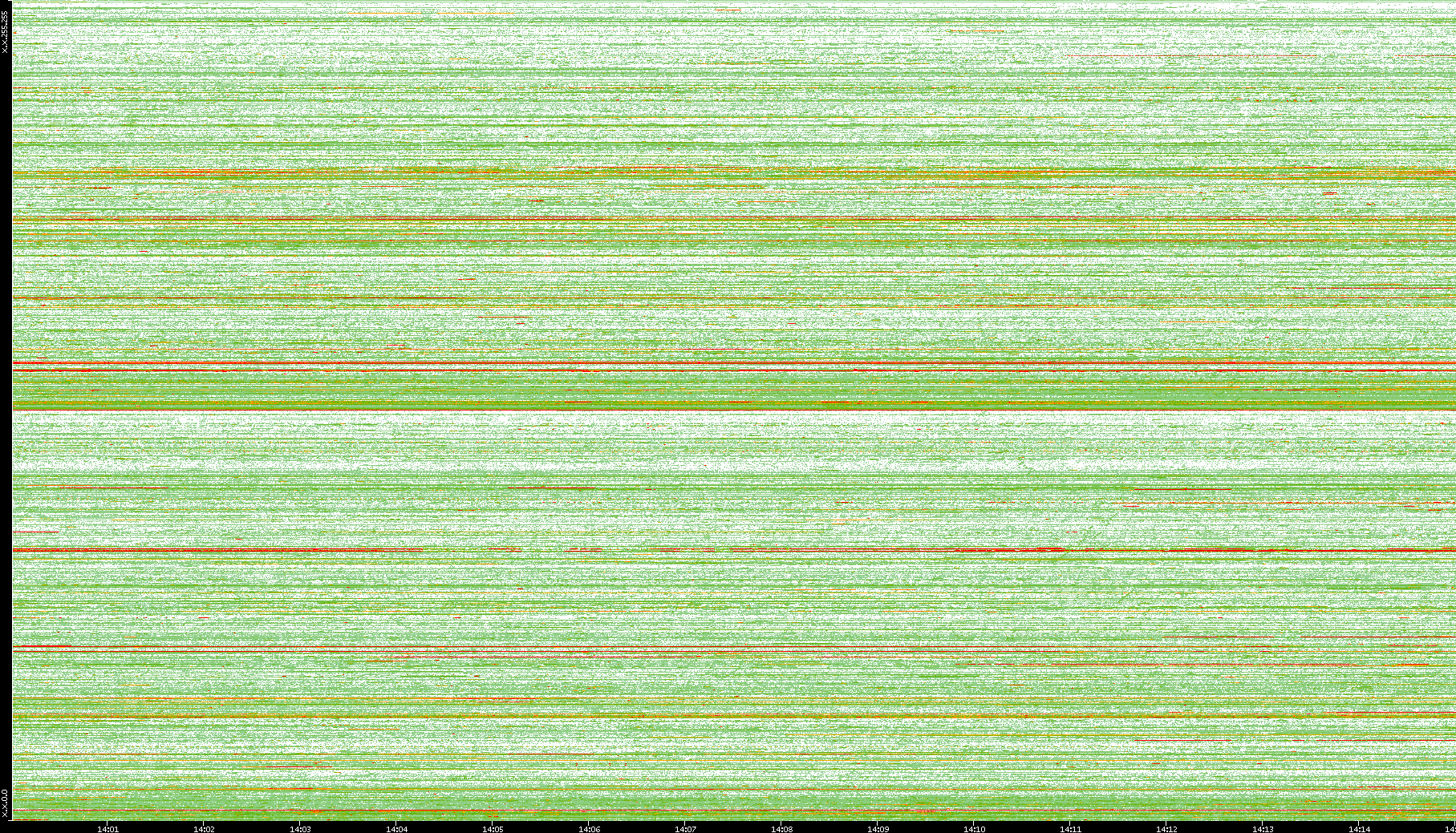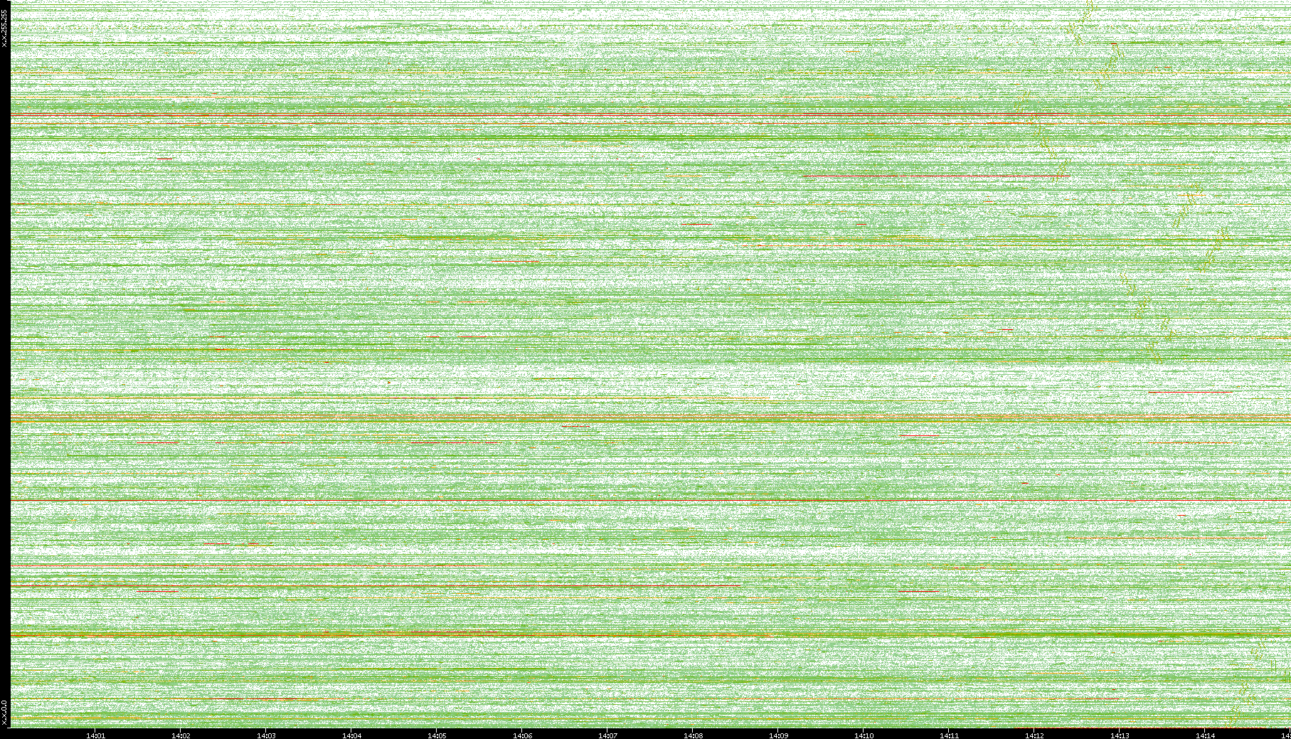 | Date | Dest. IP vs. Time | Dest. Port vs. Time | Src. IP vs. Time | Src. Port vs. Time | Nb. of Packets vs. Time | Throughput vs. Time | Average Packet Size vs. Time | Entropy of Port vs. Time |