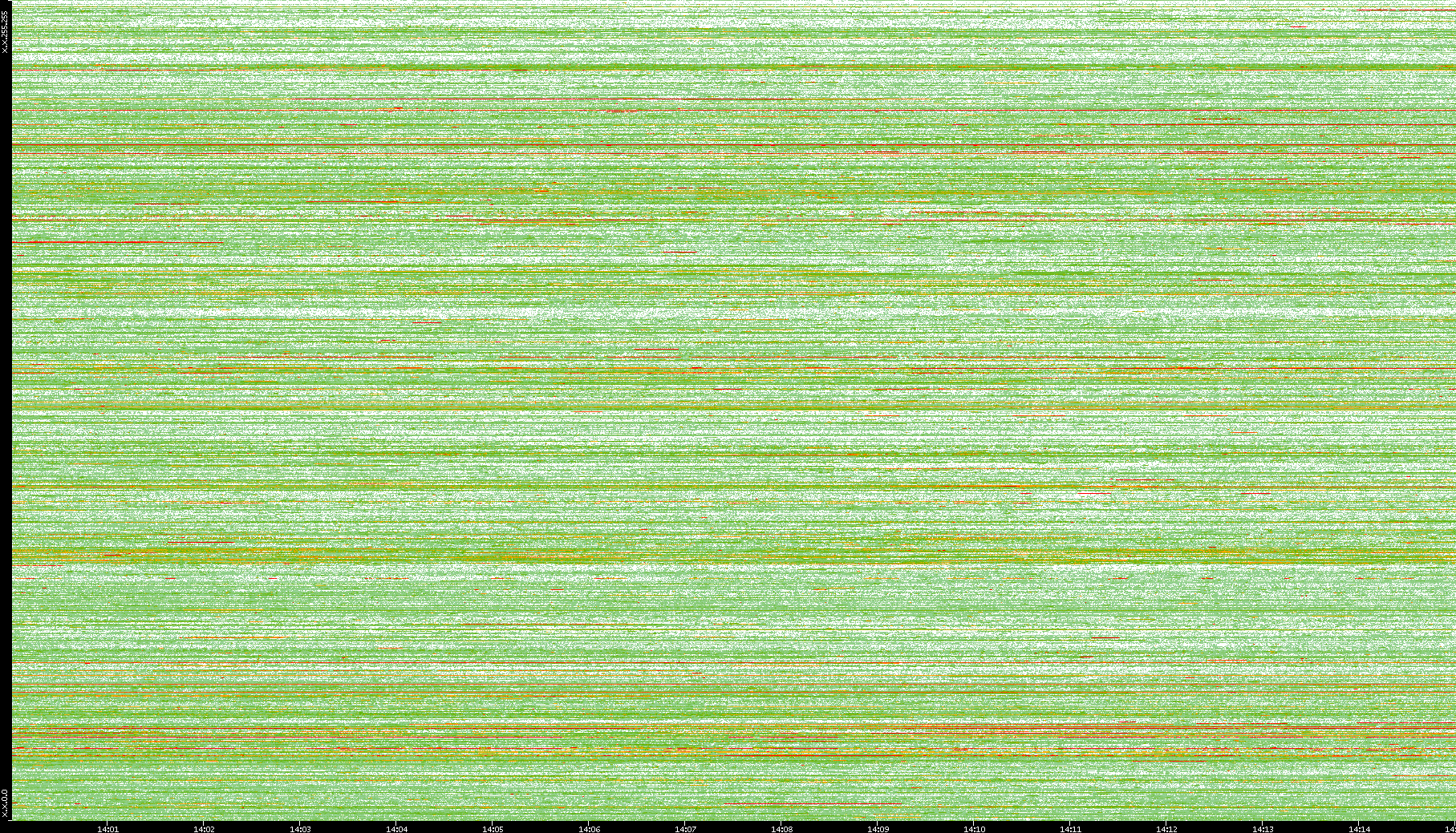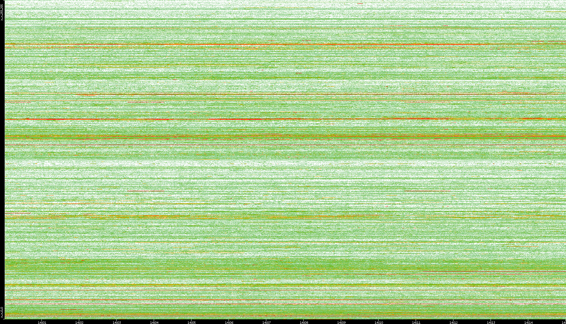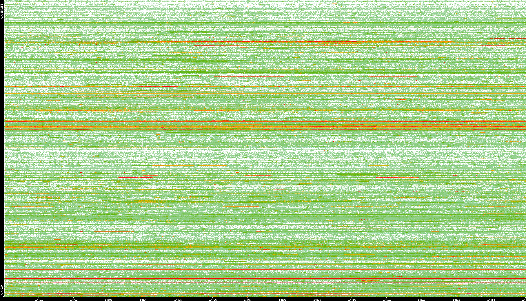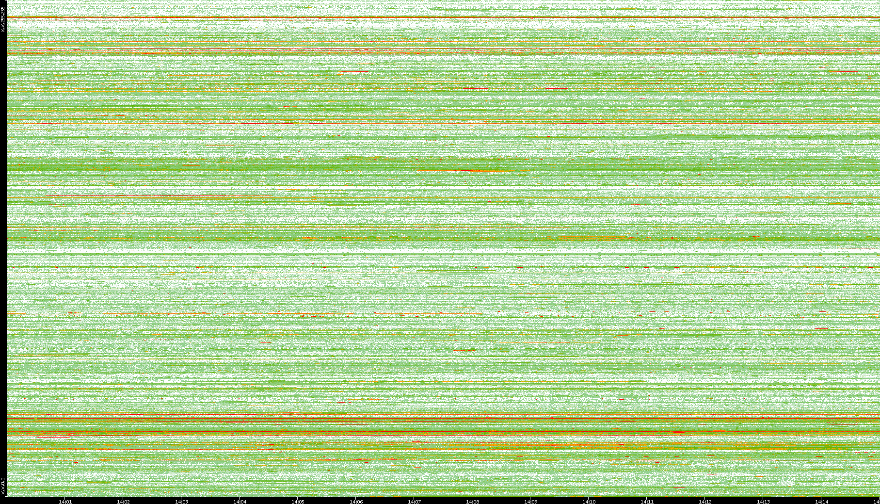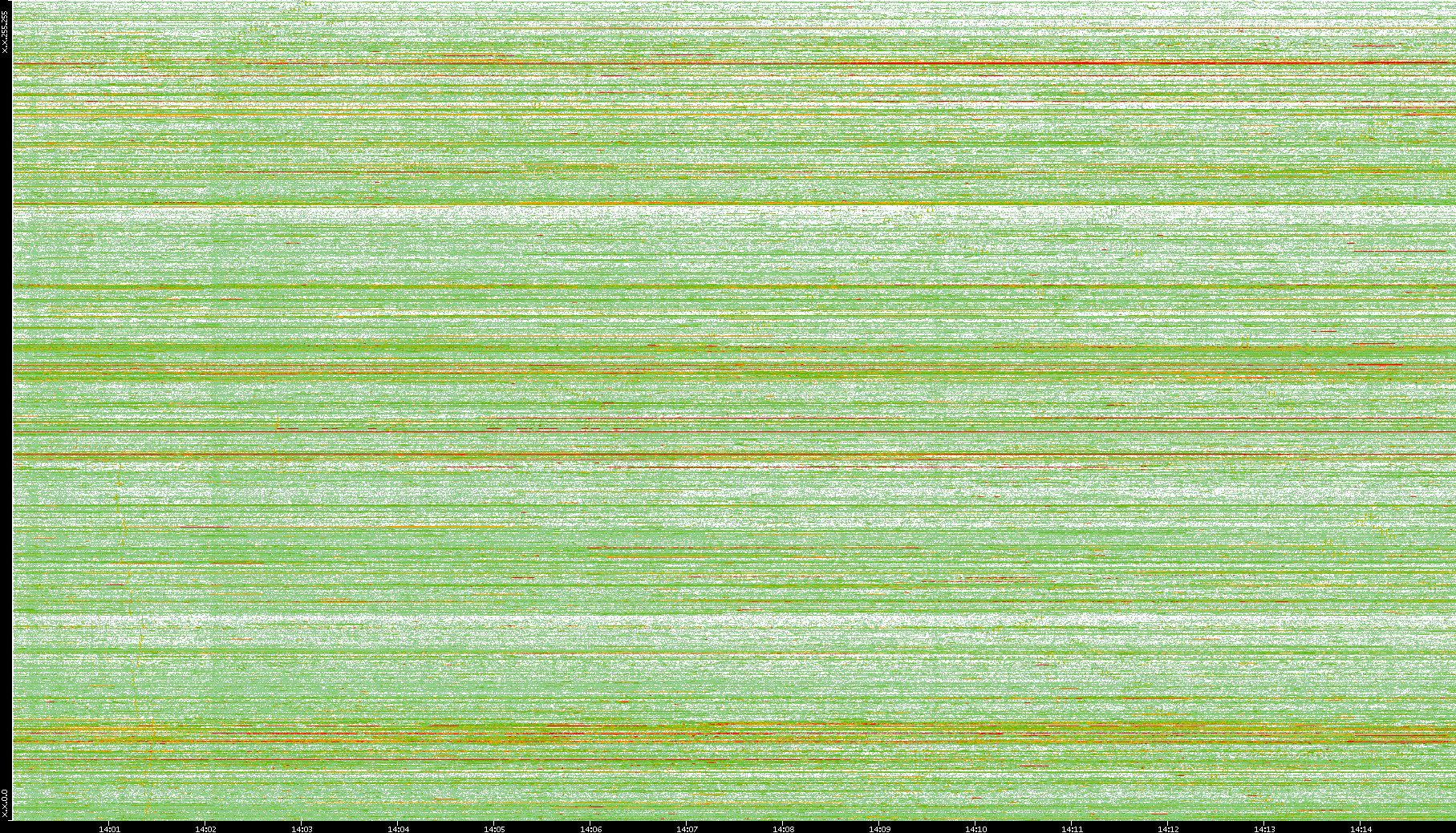 | Date | Dest. IP vs. Time | Dest. Port vs. Time | Src. IP vs. Time | Src. Port vs. Time | Nb. of Packets vs. Time | Throughput vs. Time | Average Packet Size vs. Time | Entropy of Port vs. Time |
