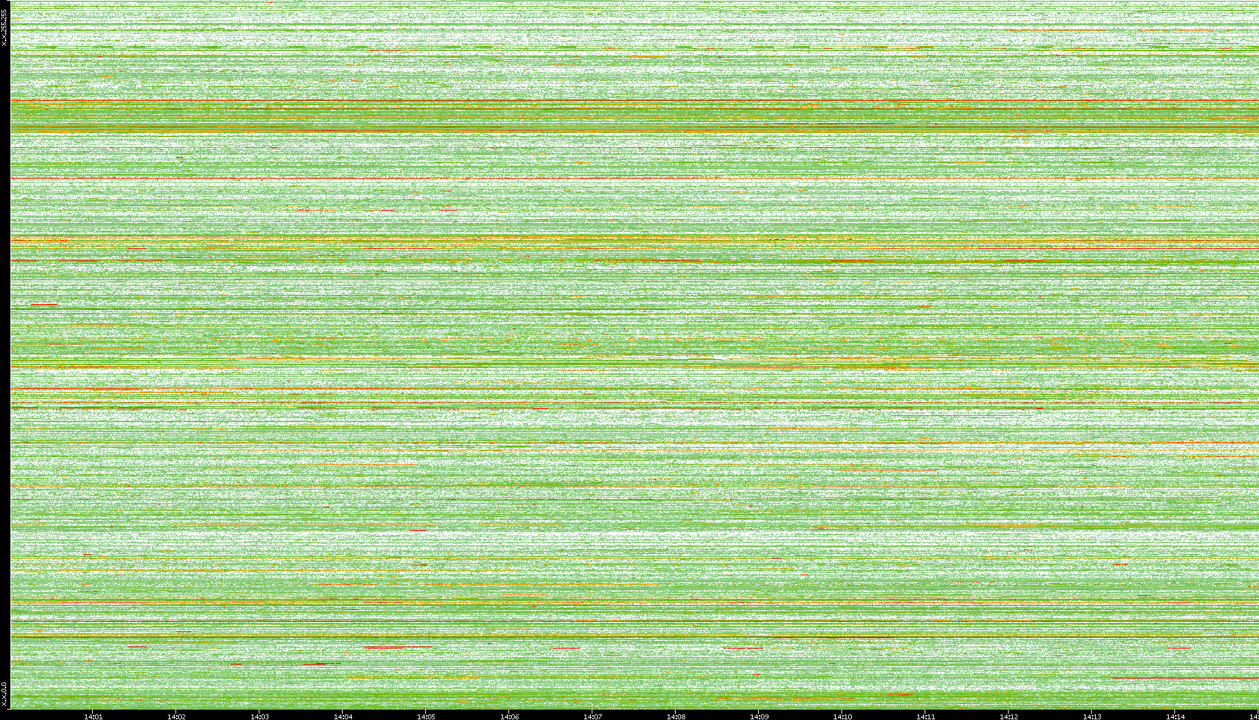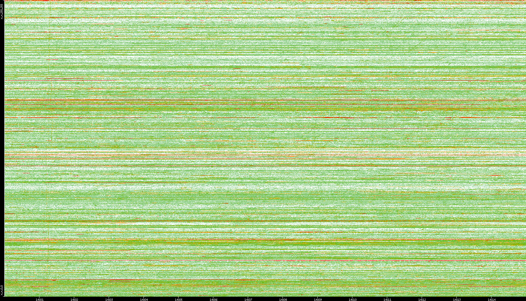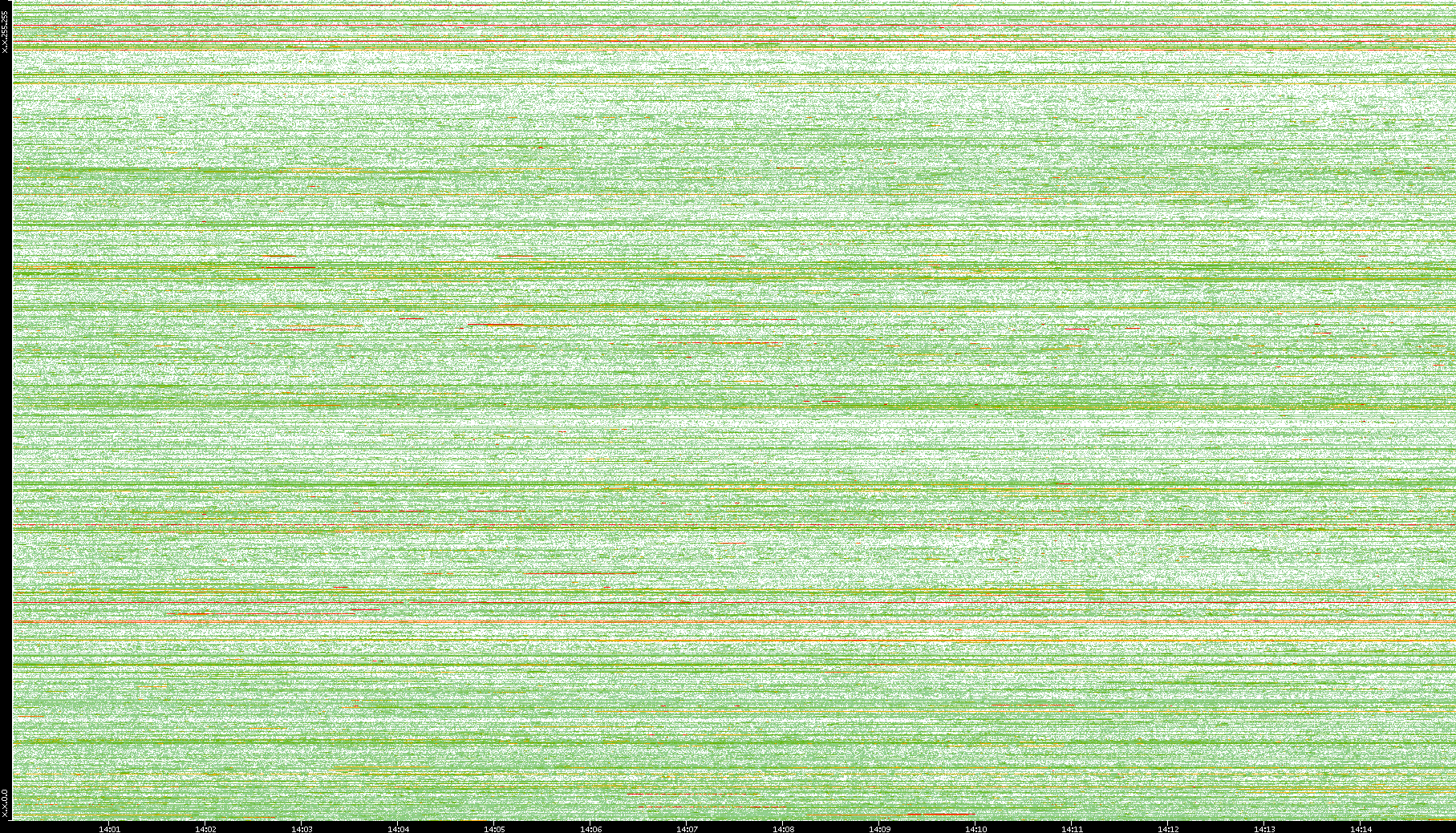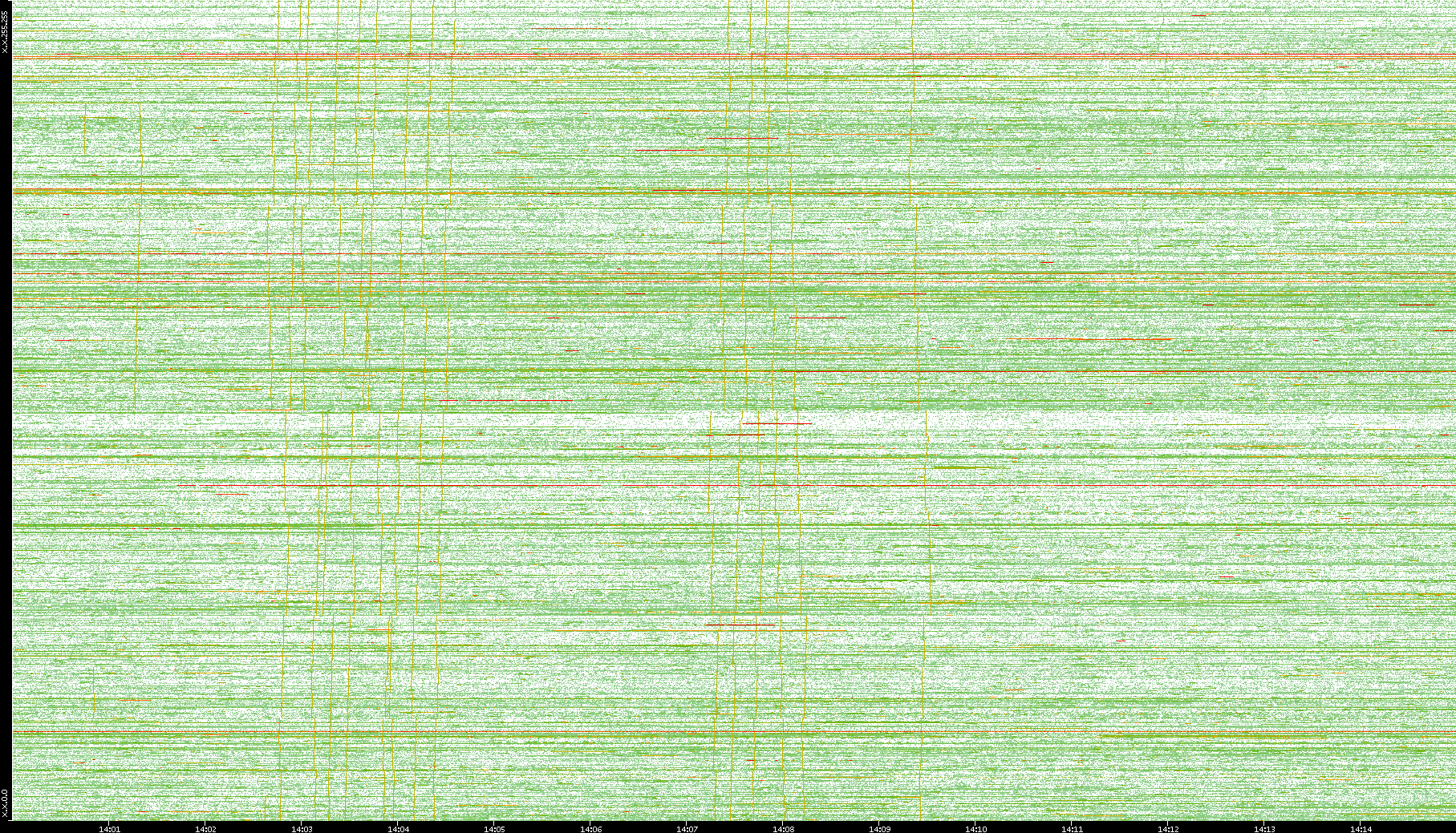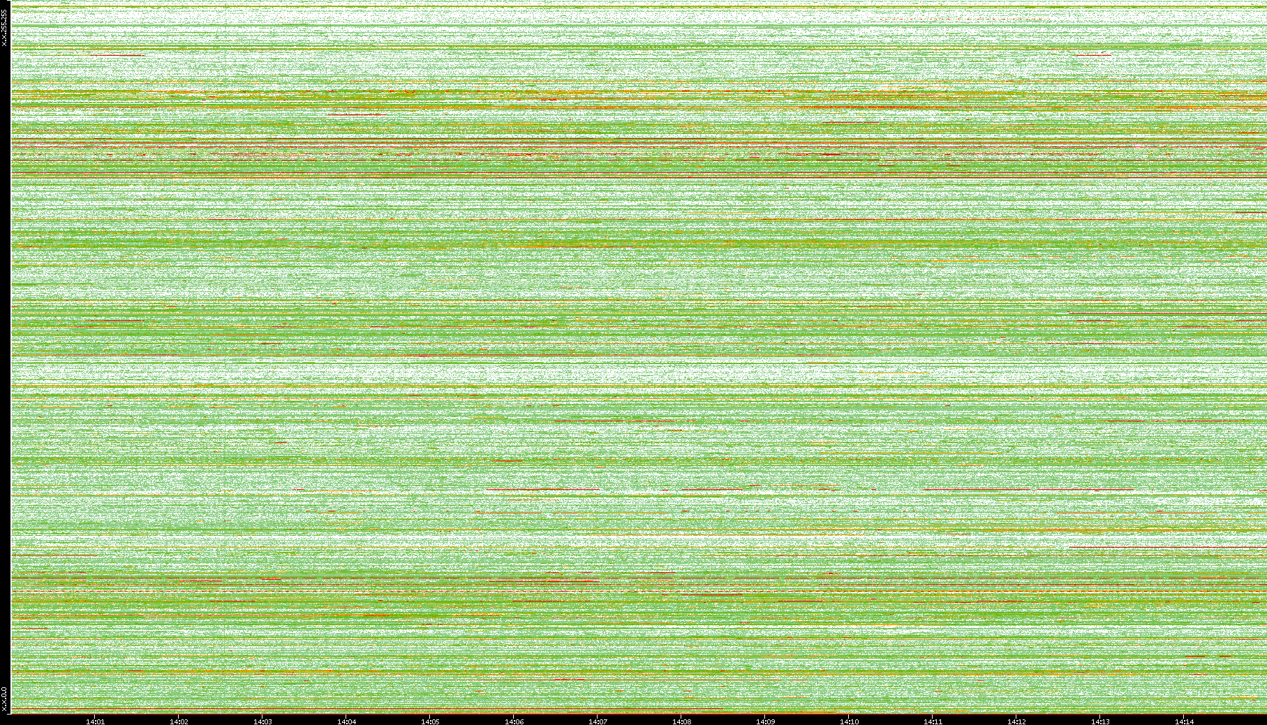 | Date | Dest. IP vs. Time | Dest. Port vs. Time | Src. IP vs. Time | Src. Port vs. Time | Nb. of Packets vs. Time | Throughput vs. Time | Average Packet Size vs. Time | Entropy of Port vs. Time |