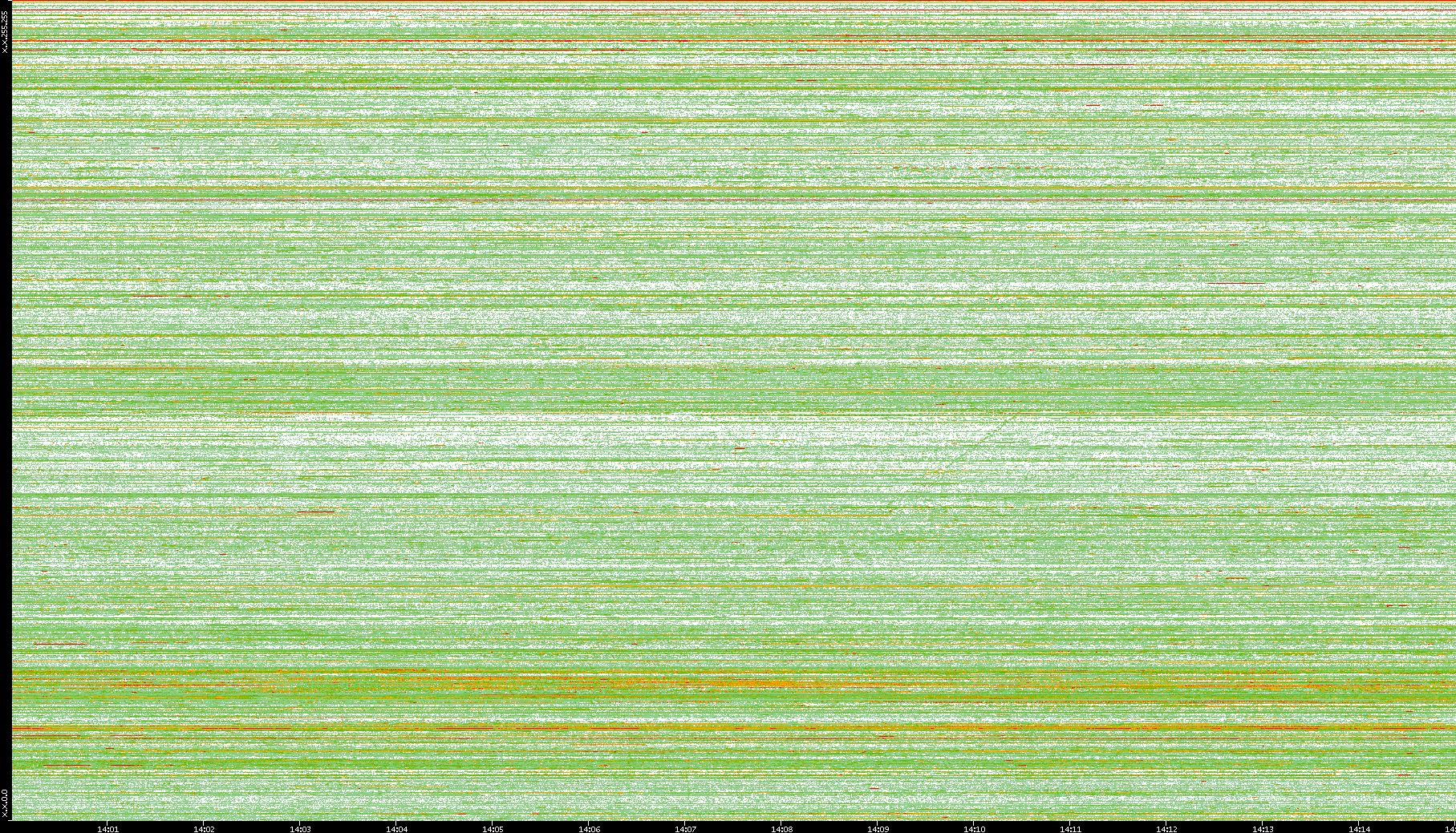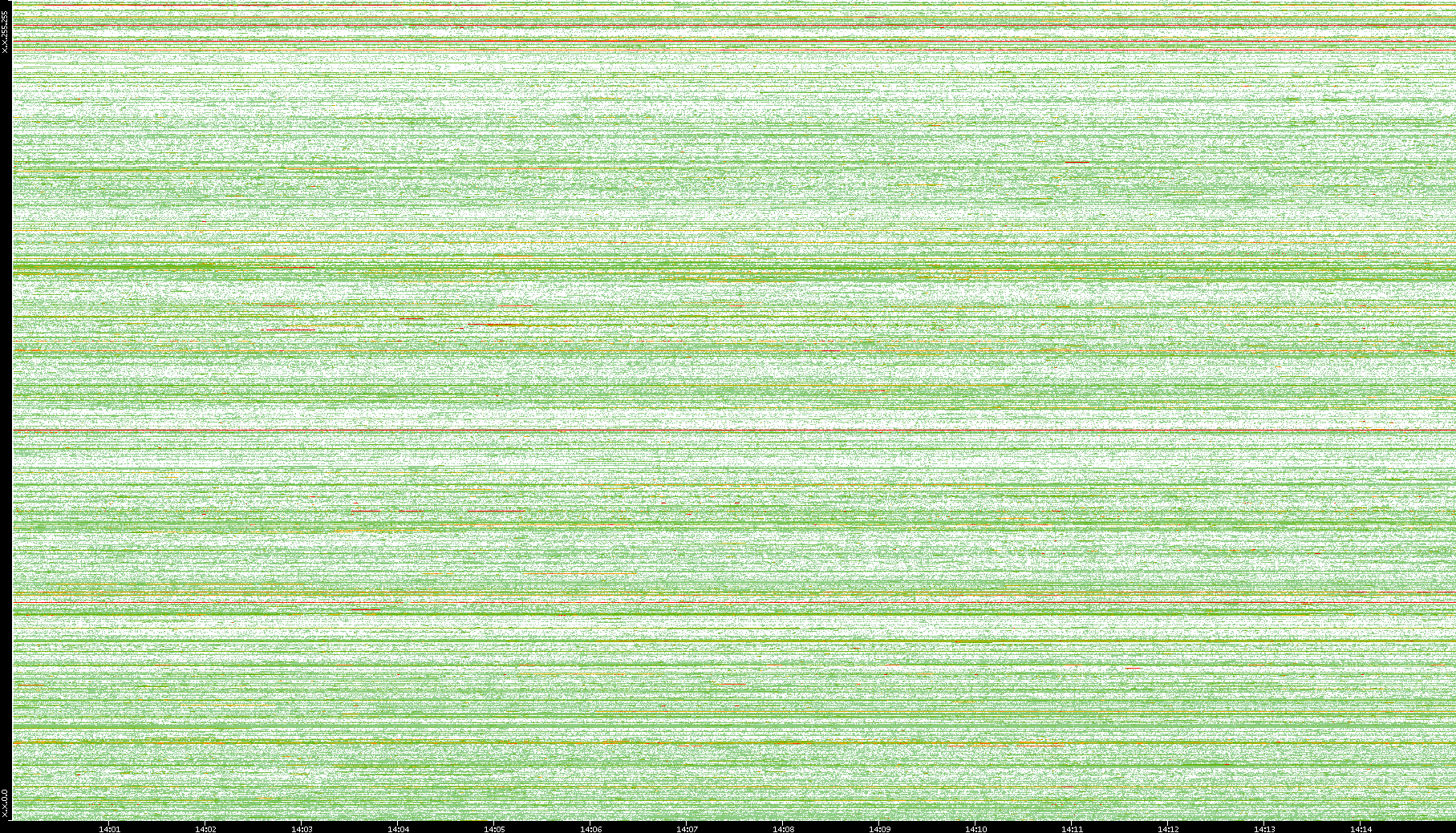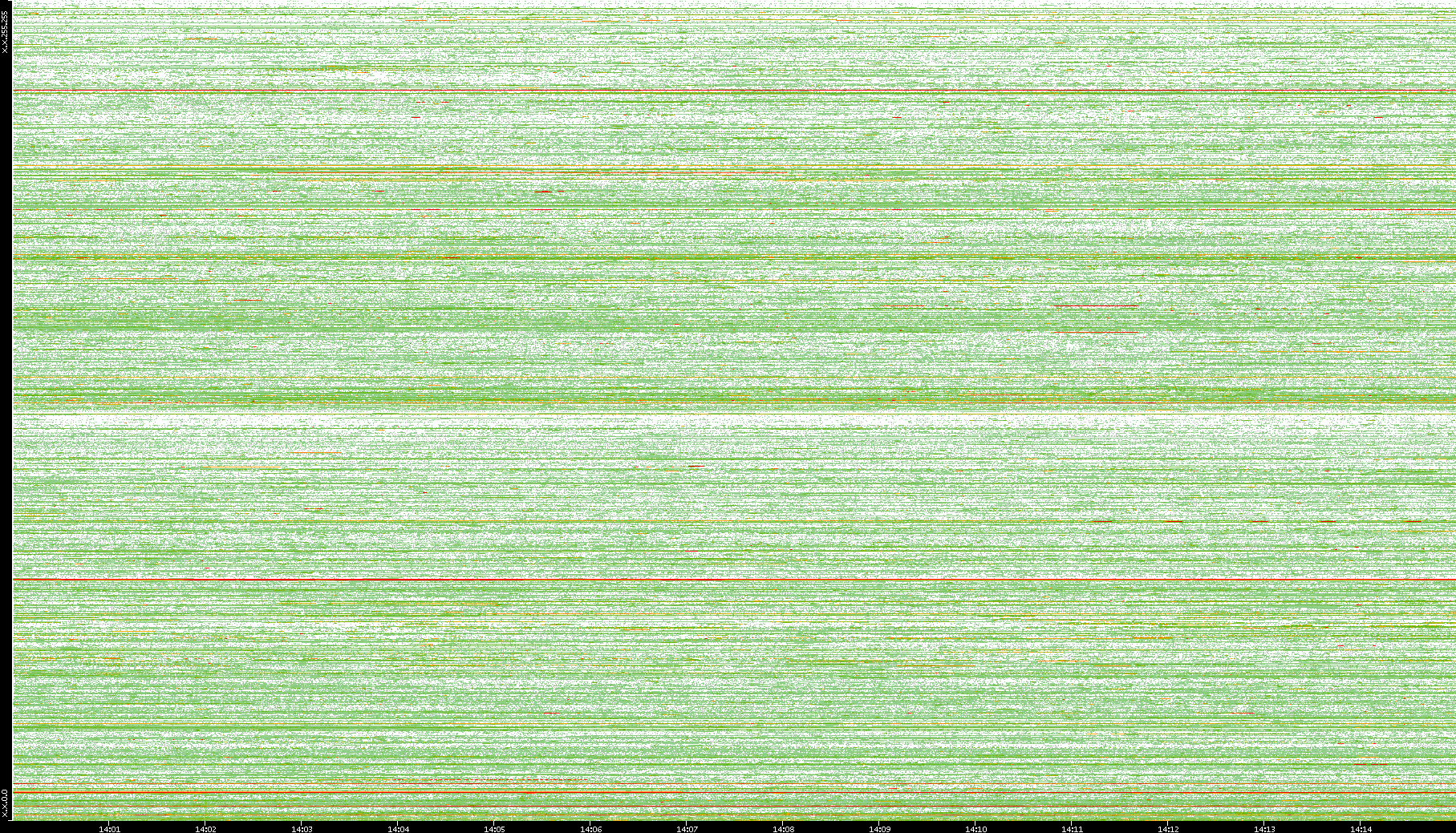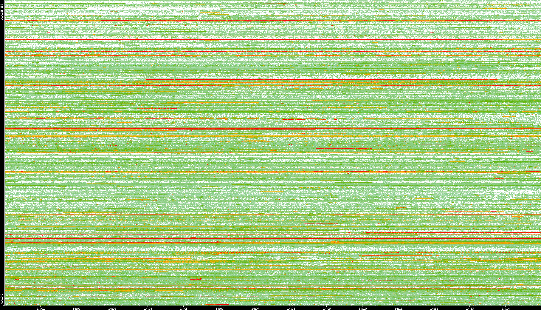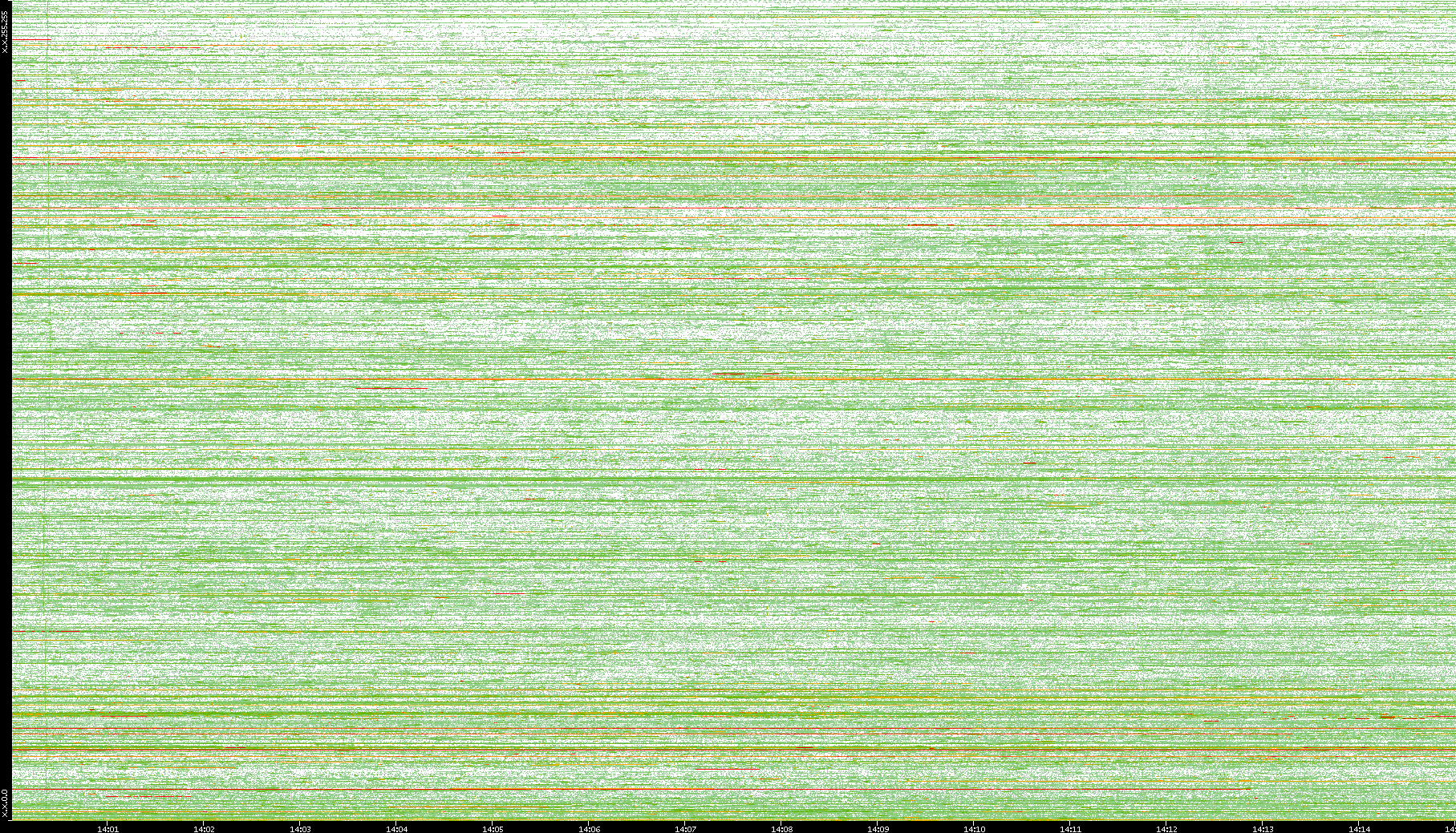 | Date | Dest. IP vs. Time | Dest. Port vs. Time | Src. IP vs. Time | Src. Port vs. Time | Nb. of Packets vs. Time | Throughput vs. Time | Average Packet Size vs. Time | Entropy of Port vs. Time |
