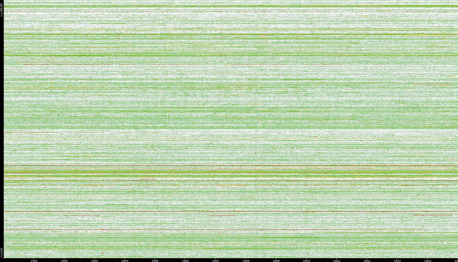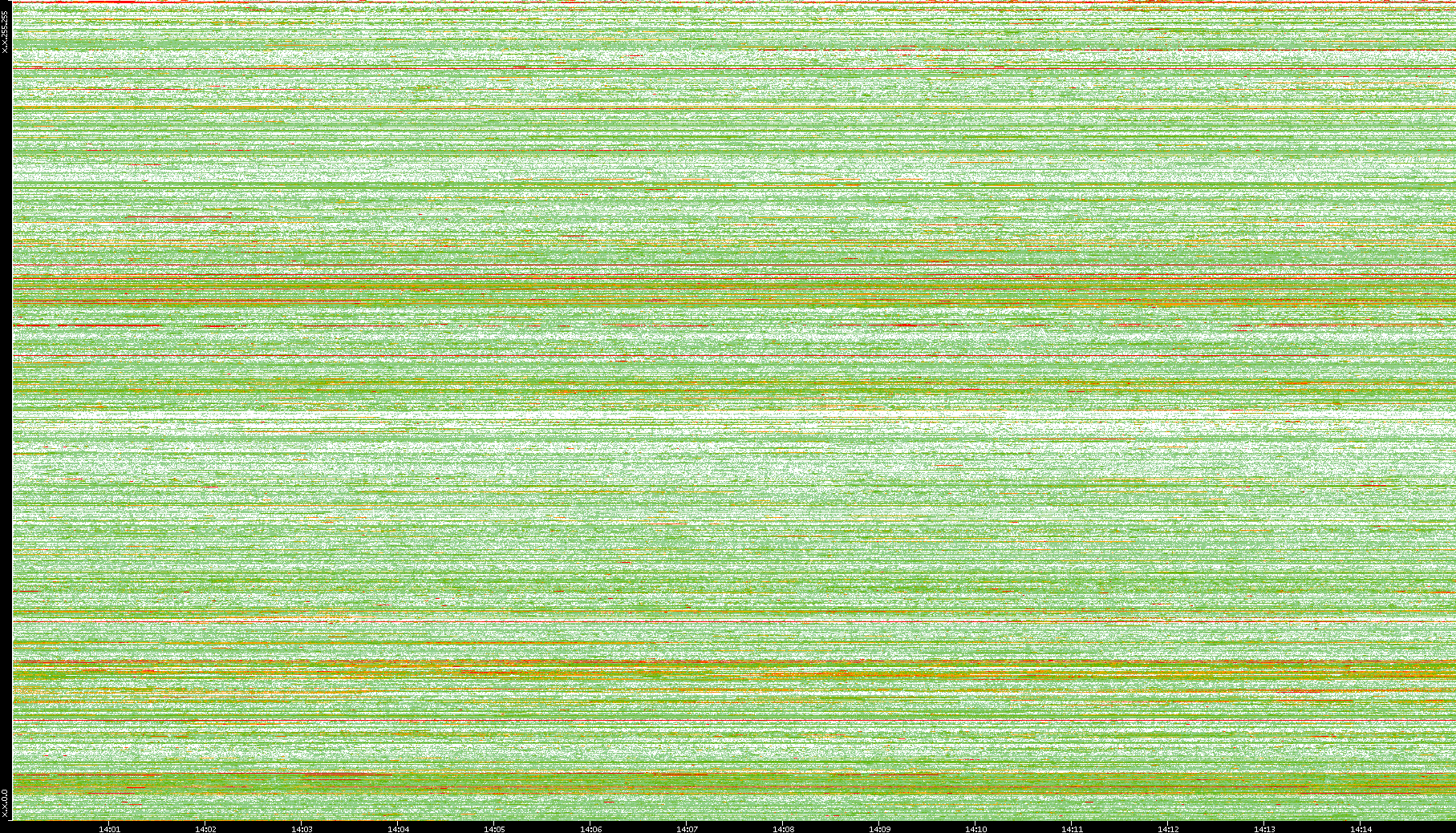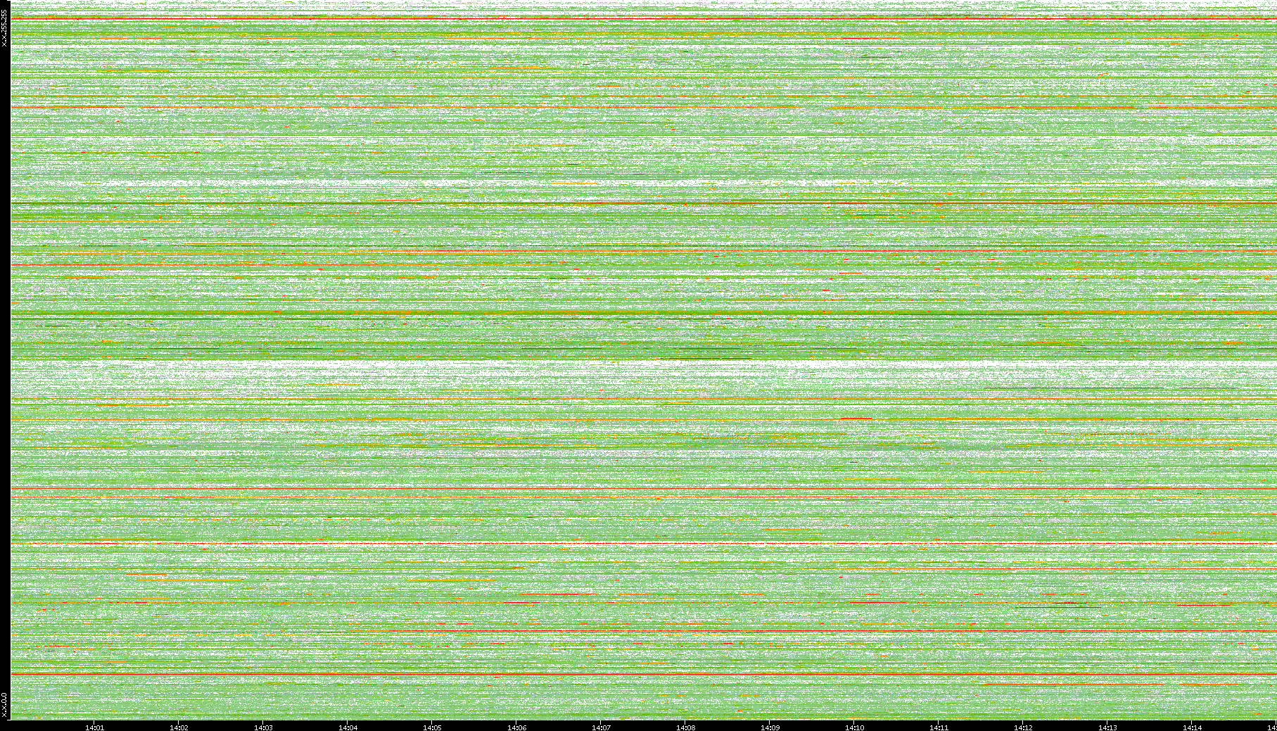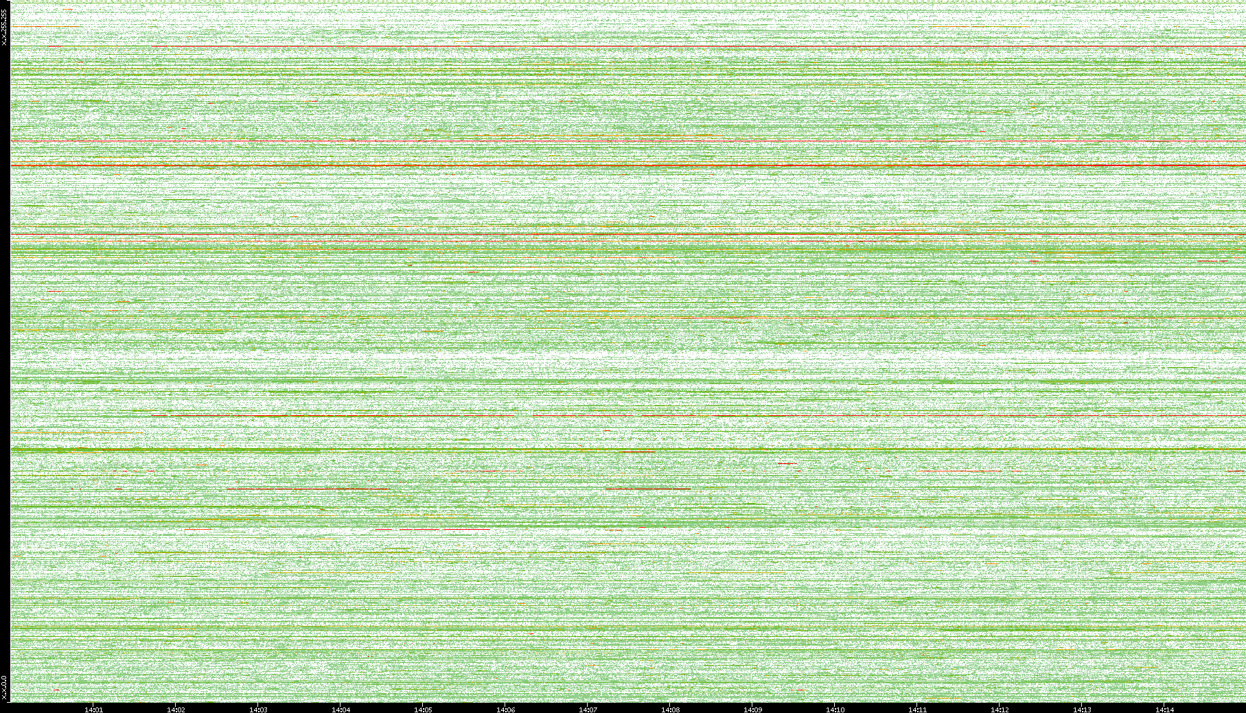 | Date | Dest. IP vs. Time | Dest. Port vs. Time | Src. IP vs. Time | Src. Port vs. Time | Nb. of Packets vs. Time | Throughput vs. Time | Average Packet Size vs. Time | Entropy of Port vs. Time |