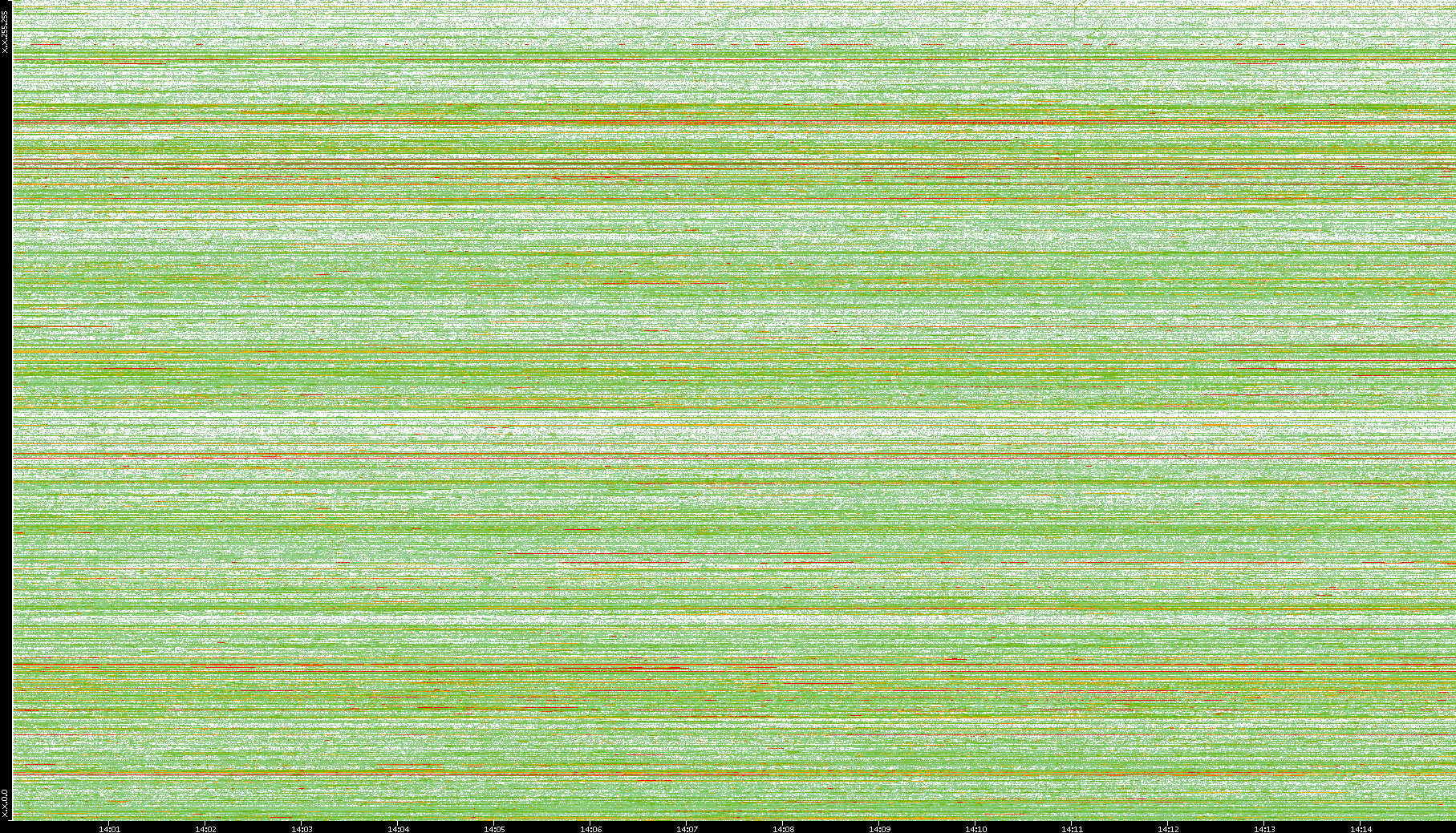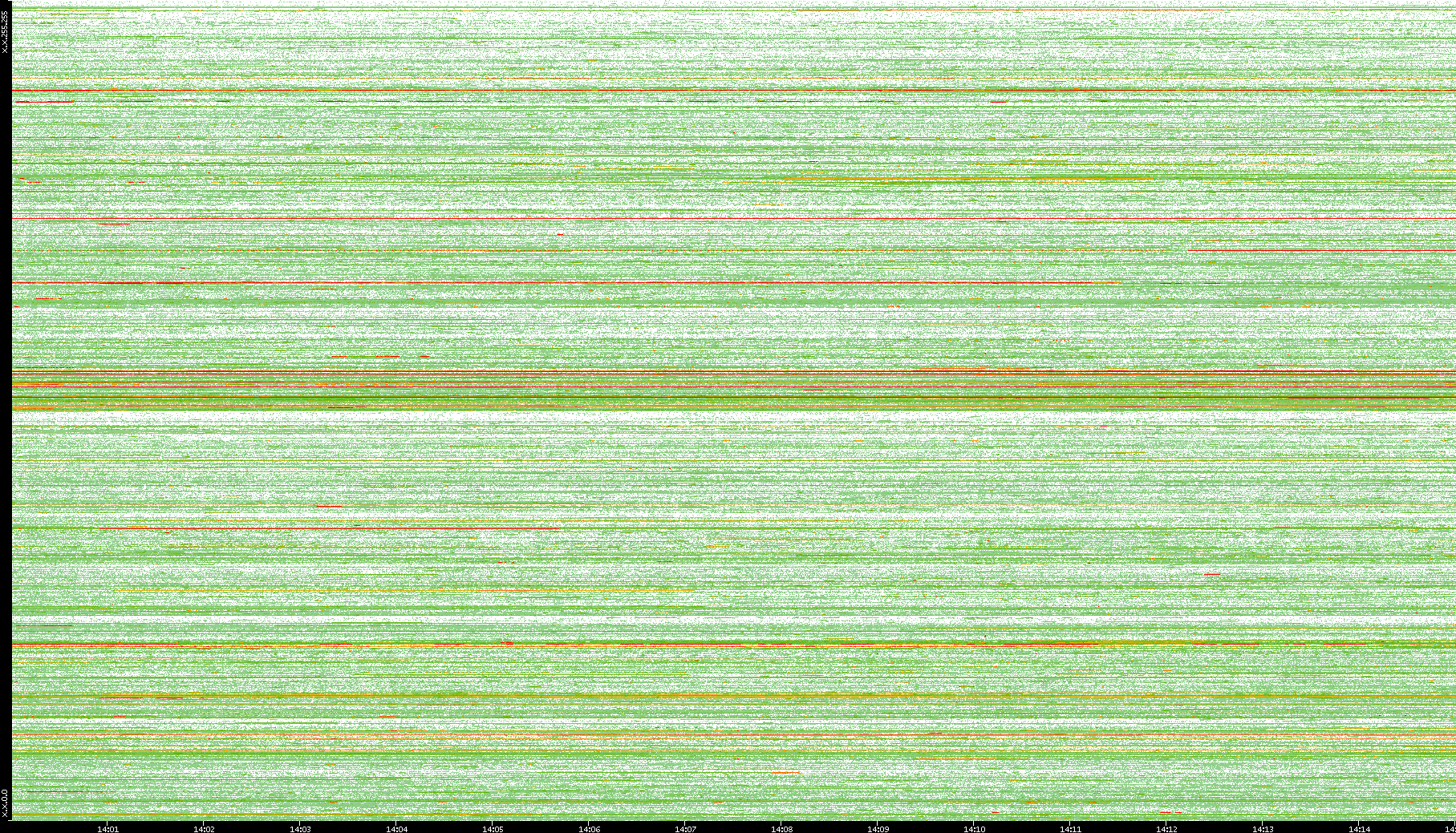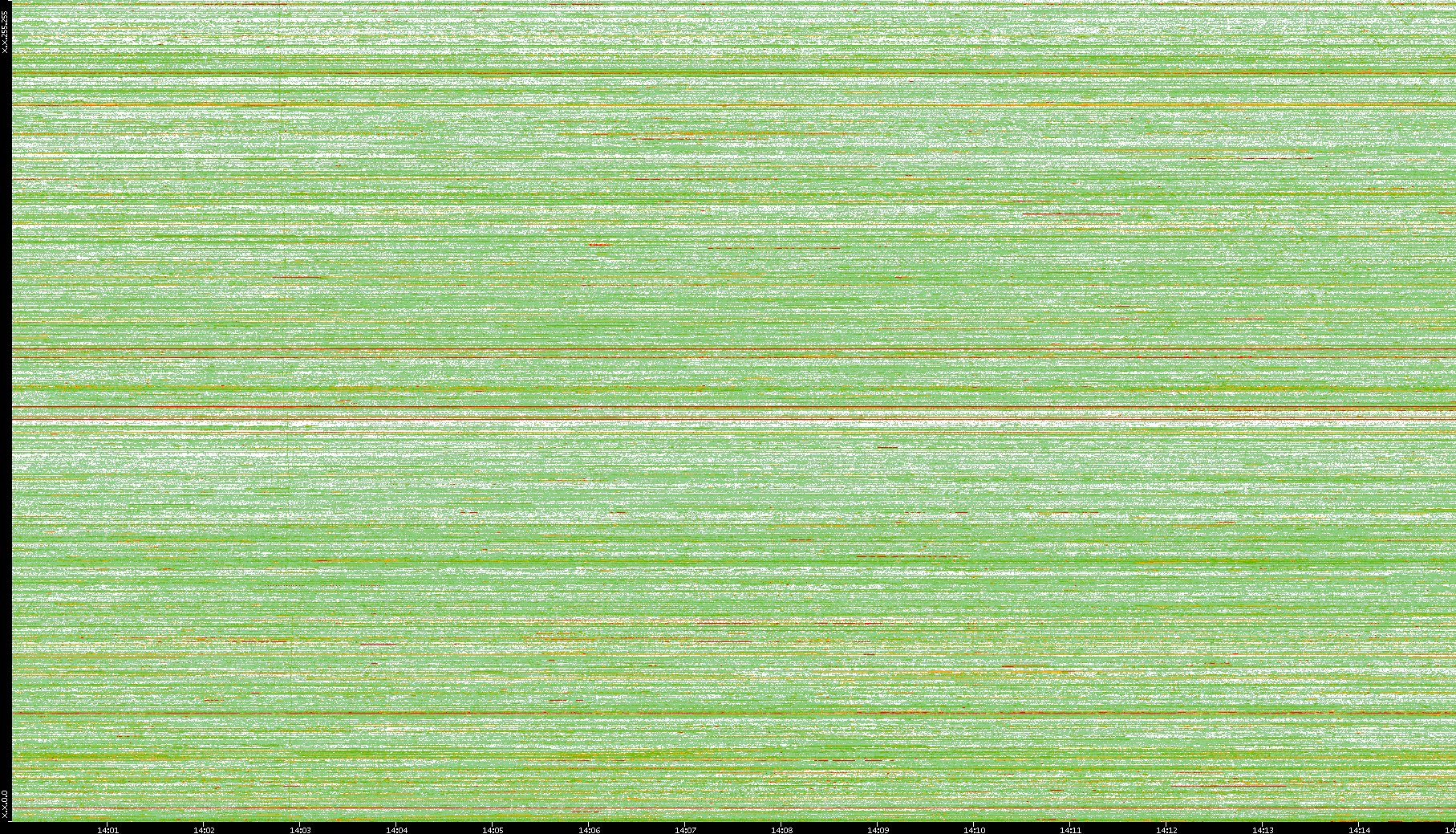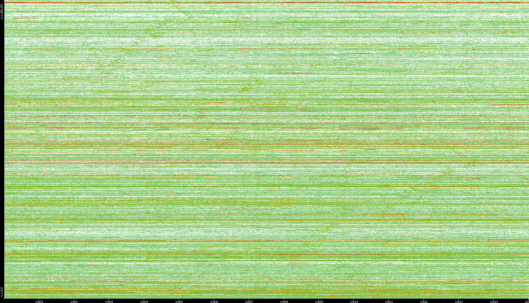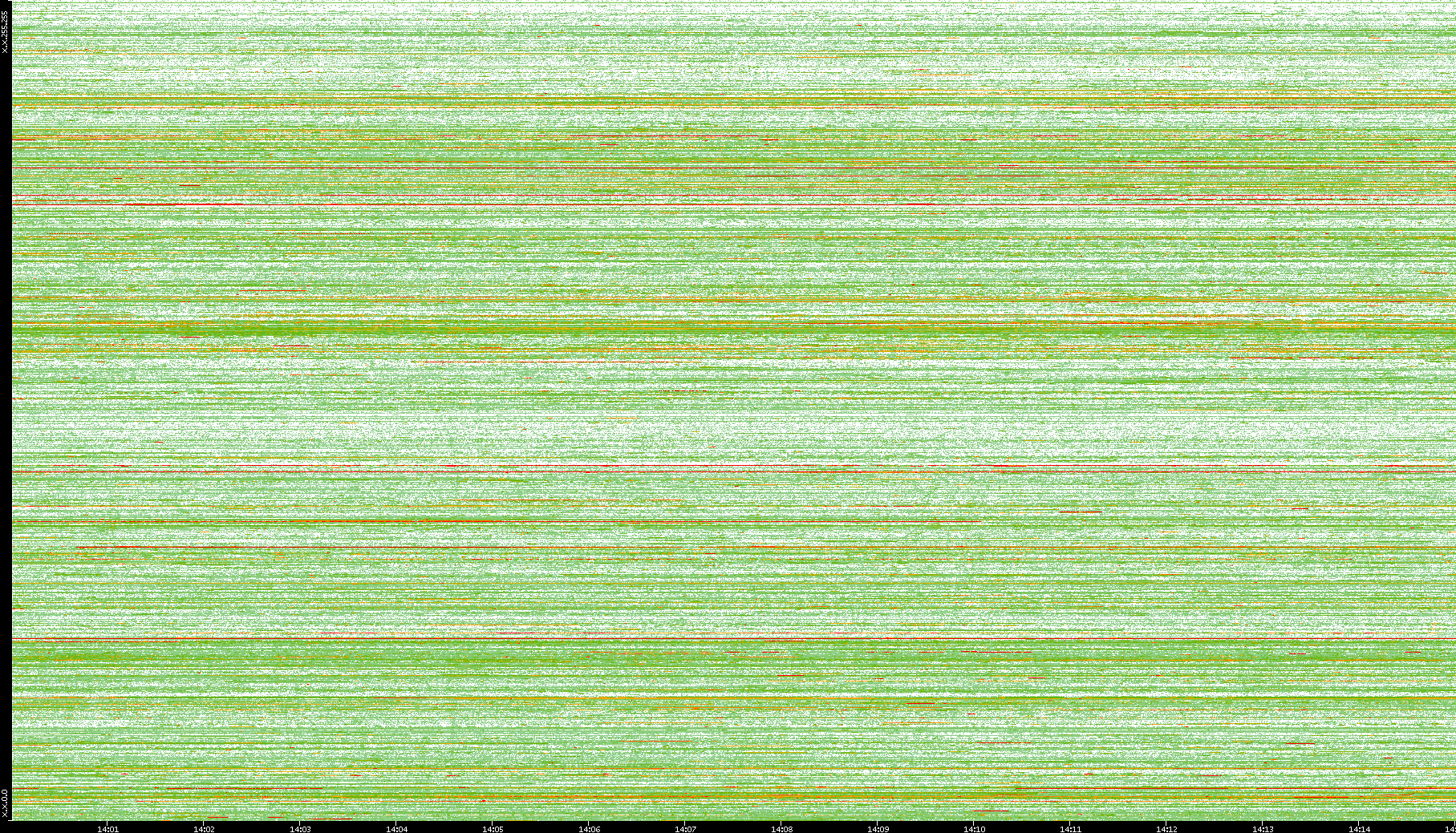 | Date | Dest. IP vs. Time | Dest. Port vs. Time | Src. IP vs. Time | Src. Port vs. Time | Nb. of Packets vs. Time | Throughput vs. Time | Average Packet Size vs. Time | Entropy of Port vs. Time |